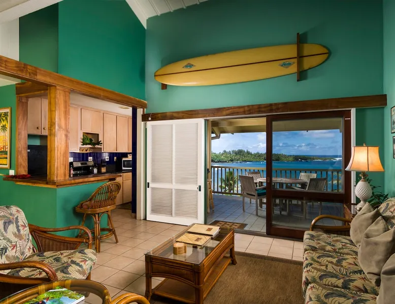 WELCOME TO HANA, MAUI ~ THE LAST HAWAIIAN PLACE HANA KAI MAUI welcomes you to our beautiful oceanfront vacation rentals on Hana Bay at Waikaloa Beach. The space Premium Oceanview 1BR/1BA Unit #201 Honolalani is a 1 bedroom / 1 bath upper floor, corner unit located in the Mauka (upper) building. This unit has an outstanding panoramic view overlooking Hana Bay. An open kitchen with Koa bar and Koa accents, shoji sliding doors in the bedroom and a wood paneled window from the living room to the bedroom allow the tradewinds to cool the unit throughout and the sight and sound of the ocean can be seen and heard from your bed! Our oceanfront property features exquisite grounds, beachside barbeque, fully equipped kitchens, private lanais, and free wireless internet service. Many of our units have panoramic oceanfront views where you can experience incredible sunrises and moonlit nights while turtles swim nearby in the surf. As you travel the beautiful Hana Highway through Maui’s untouched rainforest, you will be surrounded by breathtaking views, majestic waterfalls and a lush tropical landscape. Your journey ends as you reach the town of Hana. Here is unspoiled Hawaii, where you can relax and enjoy the true spirit of Aloha. The Hana coast offers some of Hawaii’s most beautiful beaches. From the black sands of Wainapanapa State Park (reservations required) to world famous Hamoa Beach, you can enjoy swimming, snorkeling or surfing close to your doorstep. Just eight miles away, Haleakala National Park - Kipahulu Division offers great scenery and hikers will enjoy a panoramic hike through the bamboo forest to Waimoku Falls. The trails at Wainapanapa will bring you to fresh-water caves or take you along the coast to spectacular views where you can sometimes see humpback whales as you hike along the cliffs. Fill your day with a stroll along the beach or find a quiet place to sit and enjoy the unspoiled beauty. Available nearby amenities include horseback riding, tennis, dining out or a relaxing in-room massage. Hana is a place where one loses track of time, where mystical days and tranquil nights simply unfold. Hana Kai Maui offers an unforgettable vacation for you and your family. Guest access All spaces are accessible to guests, with the exception of 1 small locked cabinet. Guests check in at the front desk and are issued keys to the unit. After hours checkin is also available via a lockbox and key code. Other things to note We offer WiFi free of charge. Our units are NOT equipped with Televisions or Air Conditioning. Units are cooled by the gentle ocean breeze and we also have ceiling fans. Unit #201 is on the 2nd (top) floor of the Mauka (mountain) building. Unencumbered views and very private. Registration Details 140050400014, TA-036-175-0528-01