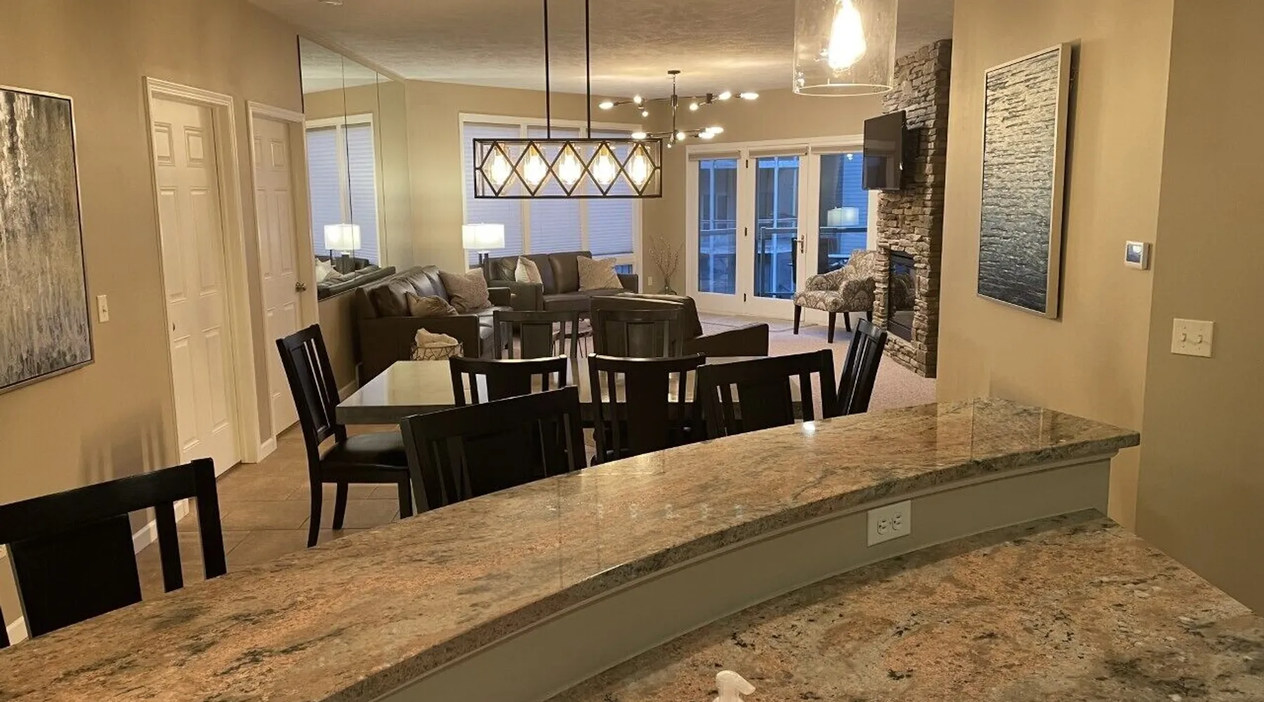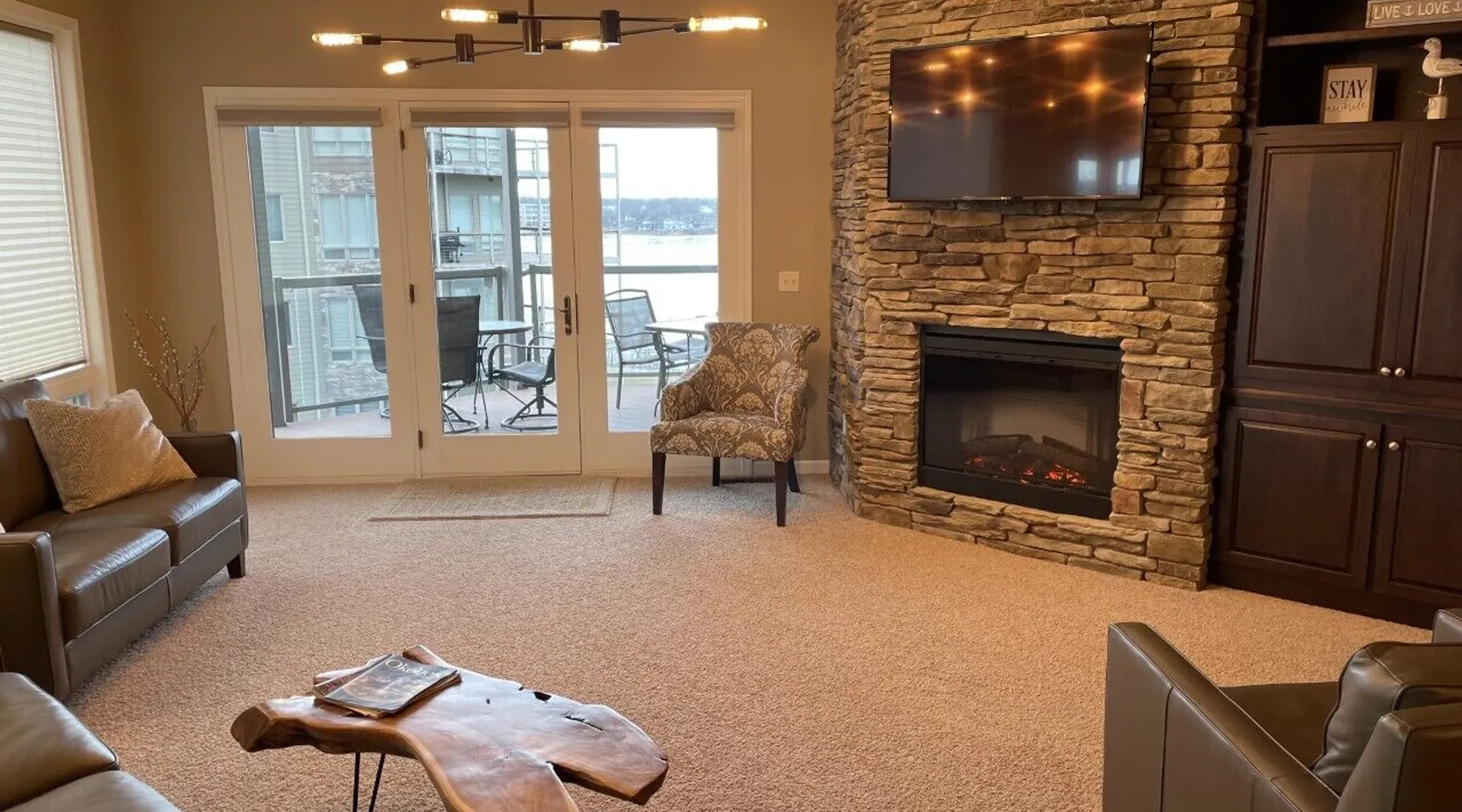 Welcome to your favorite family vacation destination with beautiful views of Lake Okoboji! Whether you are looking to rent for a week or a weekend you will not run out of things to do! Start by parking in our underground heated garage and use the elevator to bring your gear up to the condo. Our newly updated condo boasts almost 1500 ft.² of living space, with all the conveniences of home. The condo has three bedrooms including a master with king bed, second bedroom with queen bed, and third bedroom with two triple twin-size bunk beds. We have room to sleep 10 comfortably, two bathrooms stocked with bath towels and washcloths, full kitchen stocked with plates, cups, utensils and appliances to cook your own meals. The living room is very comfortable and has a fireplace to enjoy as you wind down at the end of the day. Our deck has a great view of East Lake that you will enjoy as you are using the grill or having a cup of coffee from the Keurig coffee maker in the morning! There is also a common area a short walk from the condo where you can sit by a fire pit and enjoy views of the lake. Our condo comes with six passes to Bridges Bay waterpark, just a short walk away. Between Memorial Day weekend and Labor Day both the indoor and outdoor waterpark are open daily, as well as a private condo pool next to the condo building. The indoor waterpark is open weekends and holidays between Labor Day and Memorial Day weekend. The waterpark is great for kids or adults of all ages, with waterslides for the older kids and a zero entry splash pool for the little ones! There is a lazy river and also a hot tub to enjoy! Coming to the area to go boating or fishing? East and West Okoboji lakes have fantastic fishing opportunities, from walleye to panfish! There is even scuba diving in the lake! There is also boat trailer parking and a boat ramp near the condo and an option to rent a boat slip from Bridges Bay. https://bridgesbayresort.com/amenities/boat-hoist-rentals/ Not interested in cooking??? There are fantastic restaurants within walking distance on the Bridges Bay property. Bracco (http://braccorestaurant.com/bracco/okoboji/ ) often has live music in the summer and an outdoor fire pit area to enjoy while looking over the lake. There are also plenty of additional eating options within a short drive from the condo. If you are traveling with a group please consider our additional Bridges Bay properties, and we will work with you to accommodate your group 515-422-2023. www.vrbo.com/2892045 www.vrbo.com/2499378 www.vrbo.com/4056774 www.vrbo.com/3272847 www.vrbo.com/3711411 www.vrbo.com/3500554