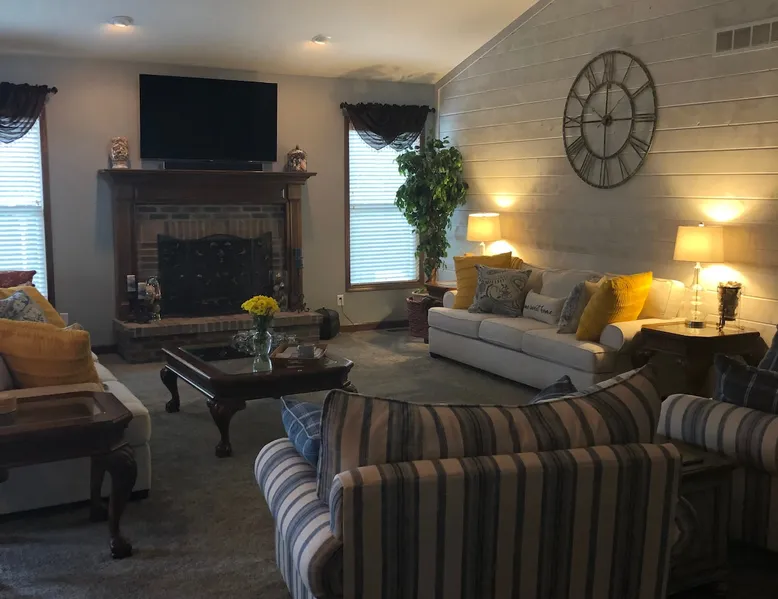 Stunning home backing up to the 9th tee box of a private golf course. Located just 2.4 miles from the Memorial Tournament at Muirfield Village,Columbus Zoo, Zoombezi Bay and 4 miles to Polaris! Over 5100 ft.² of living space with 3 king suites each with private bath. Down stairs there is a queen bedroom with full attached bath. Sleeps up to 8. Step downstairs to the amazing pub room featuring a custom 22 foot wet bar with (2) 65 inch flatscreen tv’s. Pool table, ring toss, and surround sound. The space Paver patio with large gas grill, fire pit, and comfortable seating. Parking for 4 in driveway. Guest access Complete access to home. Other things to note Easy access to 270, 23, 315, 33 and 71.