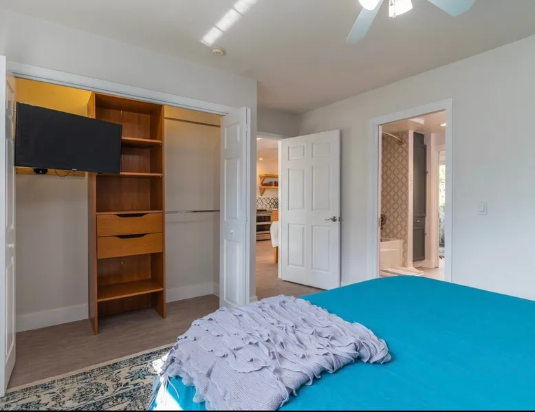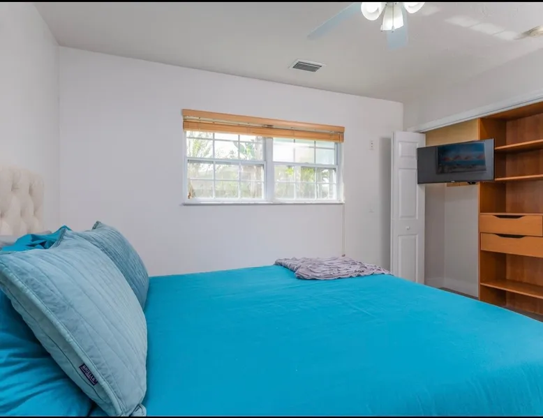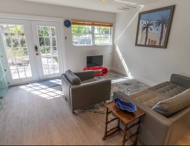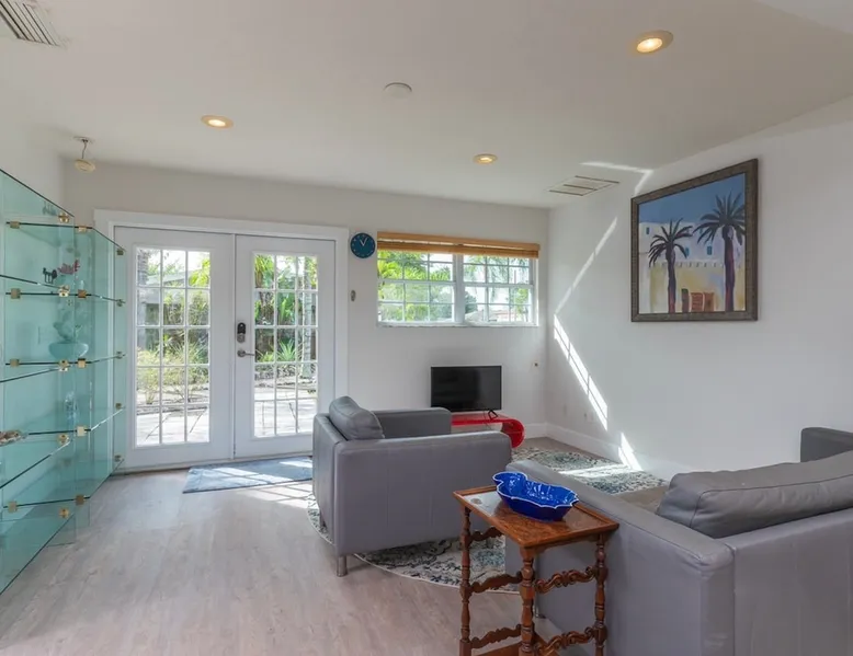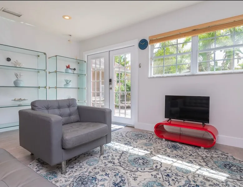 The Sunshine Suite.Lots of natural light in this totally updated modern 3 bed/1 bath home.It is a completely separate dwelling w separate entry from the other dwelling on the property sharing no common walls. Smart thermostat & door lock. Keyless entry.Brand new AC, gas oven, quartz counter w/ custom marble backsplash, modern & comfortable furniture, private outdoor area, gas BBQ grill, off street parking.Great location! Minutes to Siesta Key beach, shopping/UTC, interstate, hospital & downtown The space I remodeled this home because I love this home. I hope you will too! Guest access I have seating and a table on the rear patio as well as at the front entry. I provide beach chairs, beach umbrella and beach towels. New in January 2021 gas grill (not pictured) now located in private rear patio area. There is a detached separate part of the home. It’s got its own entrance & is a completely different dwelling. Other things to note There is off street parking for the Sunshine Suite which is by designated by signage at the head of the driveway. There is room in the driveway for up to 3 vehicles and if needed, more can park on the grass.