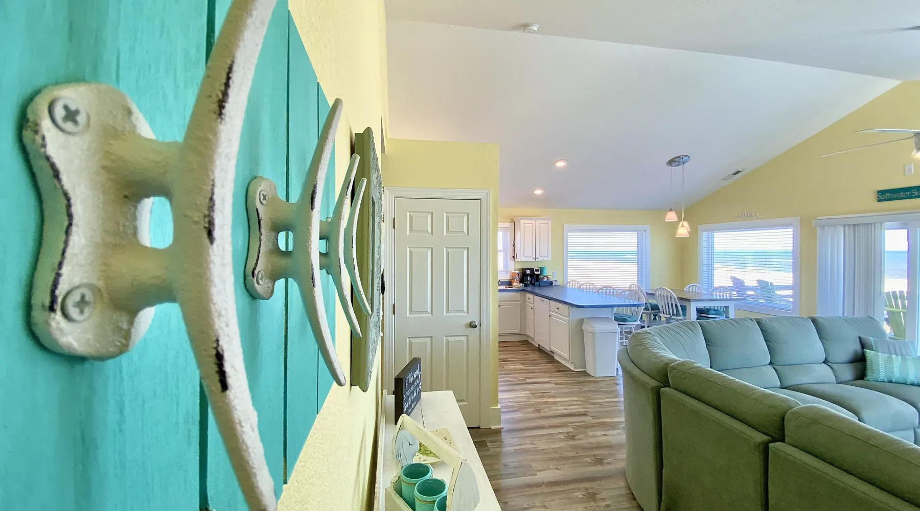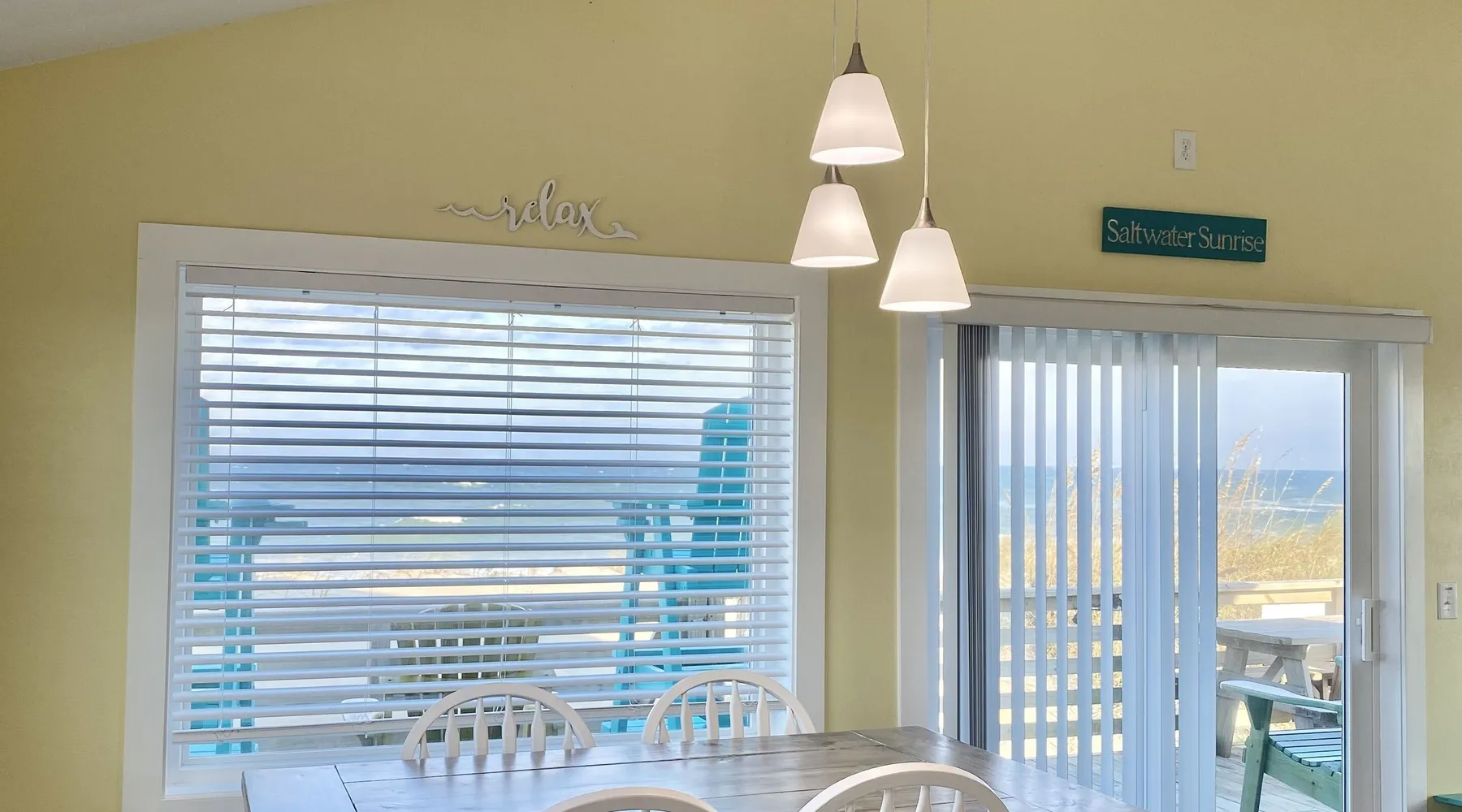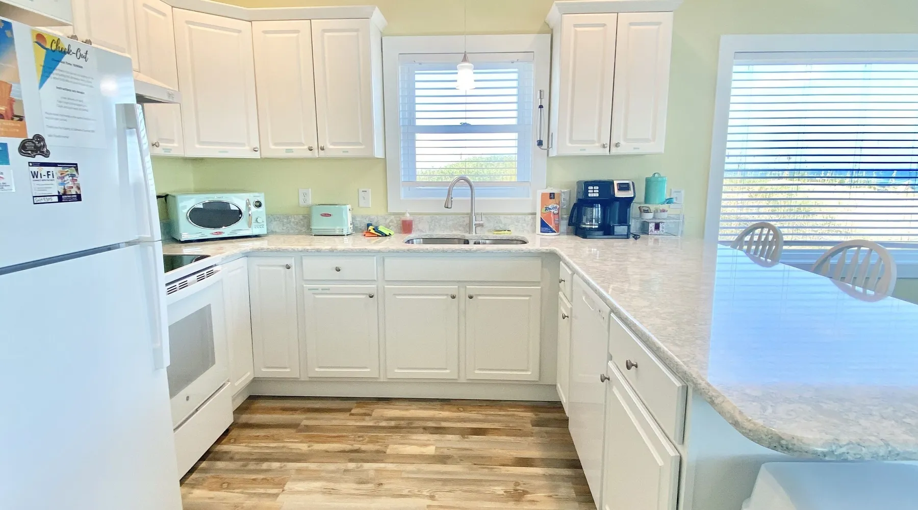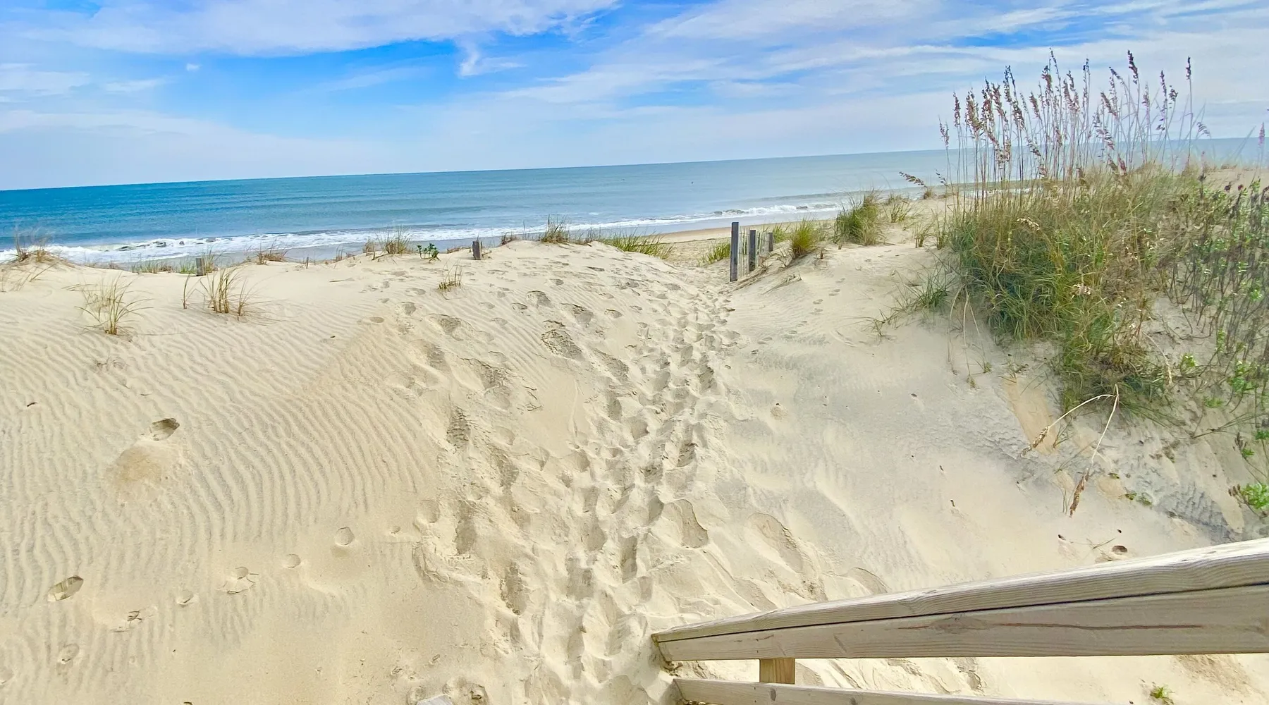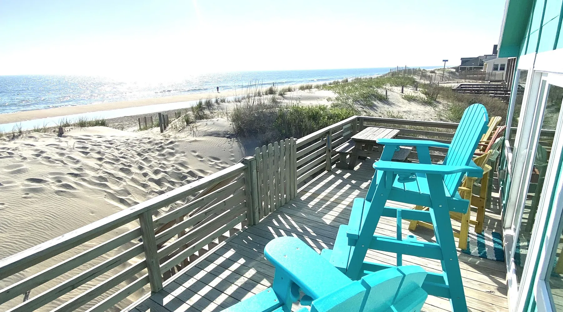 NO CLEANING FEES! NO DOG FEES! NO LINEN FEES! DIRECT BEACH ACCESS! *Jan/Feb/Nov/Dec welcome short stays. Please inquiry for accurate pricing. Experience Oceanfront Living at its finest with this Extremely Clean & Comfortable Oceanfront Gem! With new kitchen appliances and quartz countertops, this vintage style beach cottage is fully updated on the inside! You can see the ocean from every room! This property is lovingly and routinely maintained. Located directly on the beach with spectacular panoramic ocean views both inside and outside the house. With 52" Overlook chairs on the deck to watch the dolphins and maybe even a whale swim by. Shorter chairs are also provided for those not comfortable that high up! Unfamiliar with KITTY HAWK? It is Located just over the Wright Memorial Bridge in the Outer Banks (OBX). Brilliantly located in a small family vintage "Beach Box" town with miles of beautiful beach and single family properties. Safe and super convenient to shopping, groceries, local restaurants, vet and human medical care; it's easy to explore all the towns in the OBX since Kitty Hawk is centrally located. Travel to the Northern Beaches to find the Wild Horses or travel to the more remote beaches further south. Kitty Hawk really is the perfect, centrally located family and dog centered beach town! We understand the investment you are making in your vacation, and we want to be sure you are getting the value you deserve. What you see is what you get...well actually what you get is far more spectacular in person! Our pictures are accurate, and we update them as quickly as we can however there may be updates to the decor as we replace and freshen the home continuously. As close to the ocean as you can get. This home sits on the beach with direct ocean access off the deck steps. The ocean views are the bees' knees. A sweet and clean dog friendly beach cottage that is conveniently located on the beach just past Mile Post 3 in Kitty Hawk, N.C. Local dining, gas stations, drug stores and grocery stores are easily accessible. Travel to the northern beaches to see the wild horses or head to the southern beaches for more seclusion. Explore all the towns, light houses, historical landmarks, wildlife refuges, aquarium, golf, great dunes, sunsets on the sound side or just stay home and watch the dolphins while sipping coffee or your favorite beverage. Walk off the deck and surf fish for fun or for a fresh caught dinner! The location of this home cannot be beat nor can the tasteful beach decor and comfortable furniture. There's a King, Queen and Twin Bedroom, an adjoining full bathroom (shower stall) to the King bedroom and a convenient full bathroom (shower stall) in the hallway. A full size stackable washer and dryer is located in the hallway and the full kitchen with breakfast bar is well equipped with dining essentials and more. Dine at the table with the ocean in view or relax on the Lay Z Boy reclining sectional and gaze out the windows as the Pelicans fly by. The oceanside deck boasts 2 Overlook chairs and 4 tall captains chairs which you may find yourself sitting in most of the time. There is parking for 3 vehicles and one vehicle can fit comfortably under cover (height restriction). A handy outdoor shower and charcoal grill complete the experience. Please note: the sand dunes wax and wane throughout the seasons. You are allowed to walk on the dunes on our property to access the beach. If you are looking for a pool, please check out our other OBX SALT LIFE property, SALT ON THE RIM OBX Vrbo 2562748 which is also in Kitty Hawk and is a 4 BR/ 2 BA property with a pool and hot tub. RATES & FEES: No one likes added fees. So obxsaltlife beach houses don't have them. Cleaning, pets (up to 2), bed and bath linens are all included in the rate!