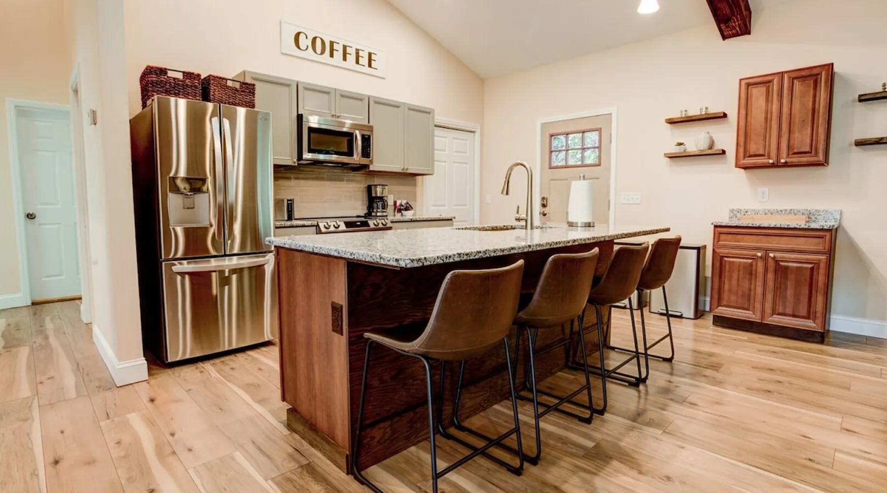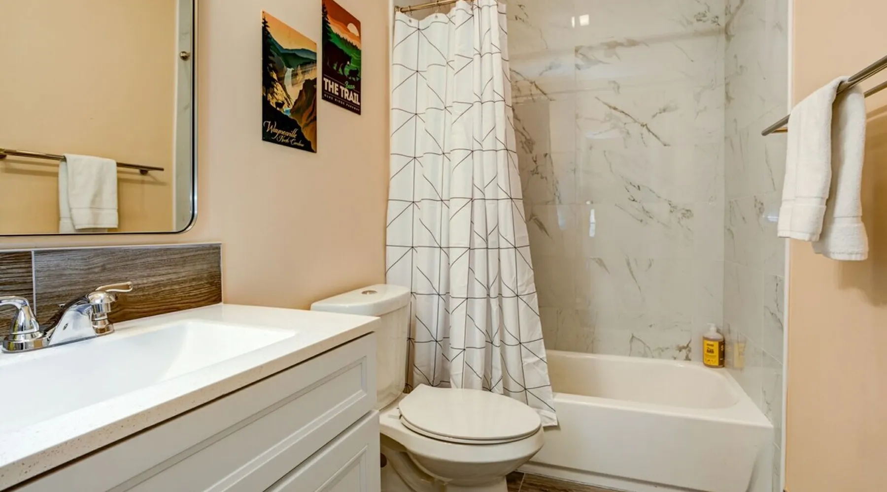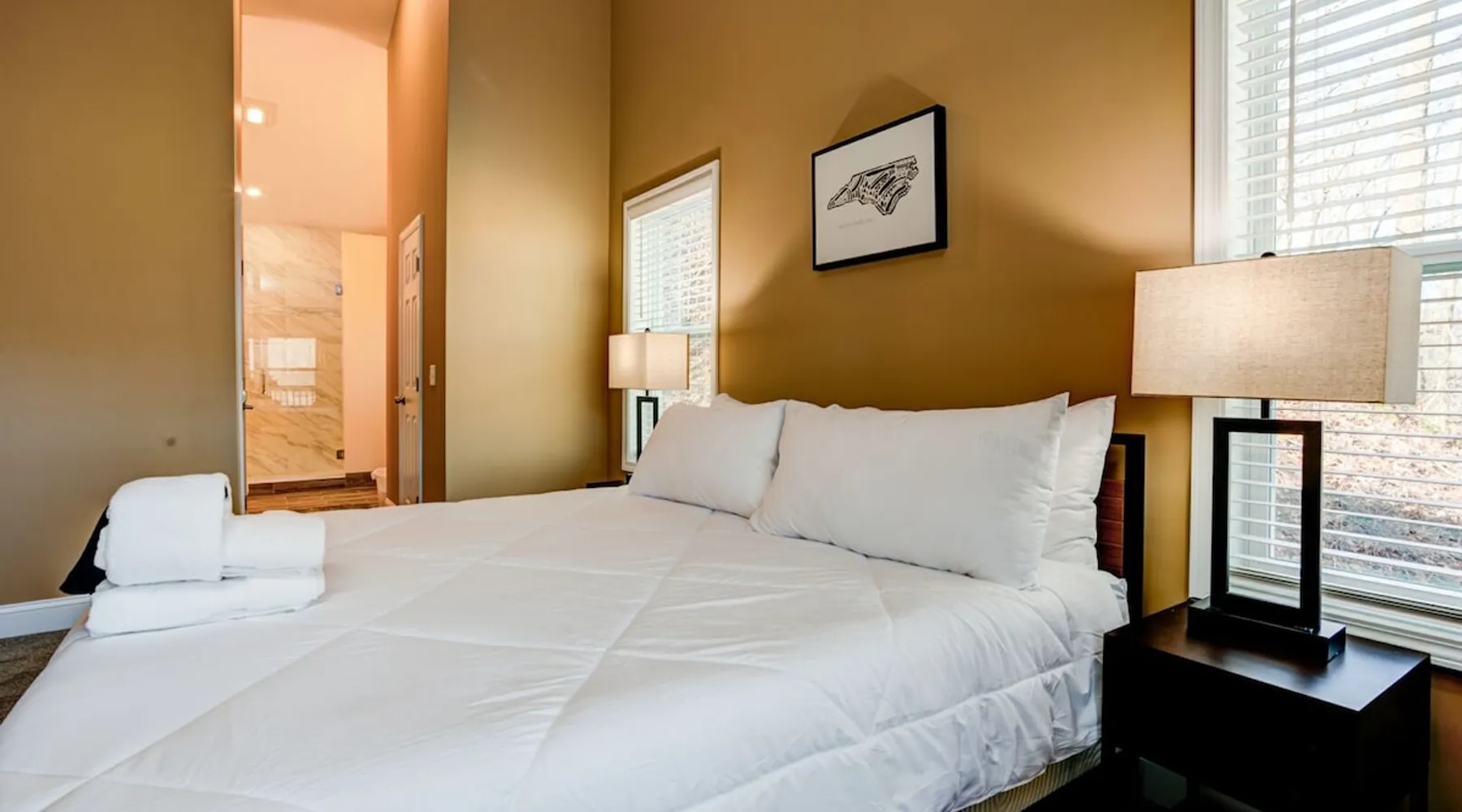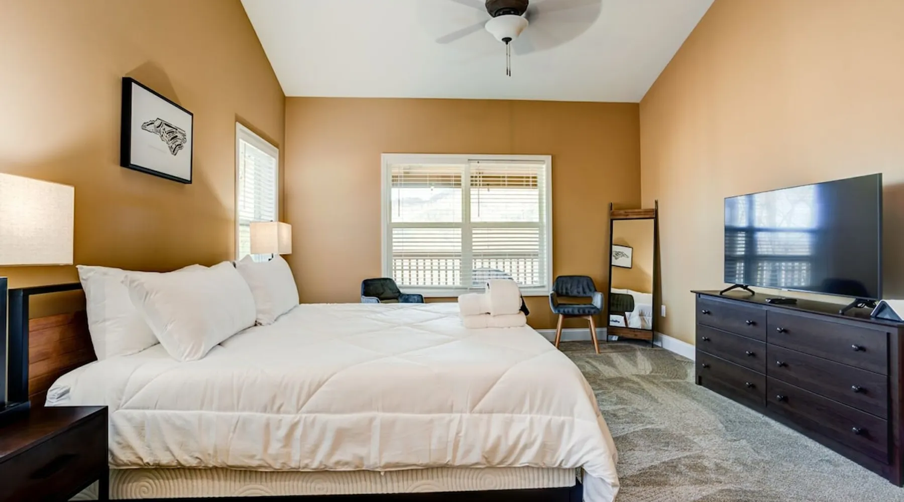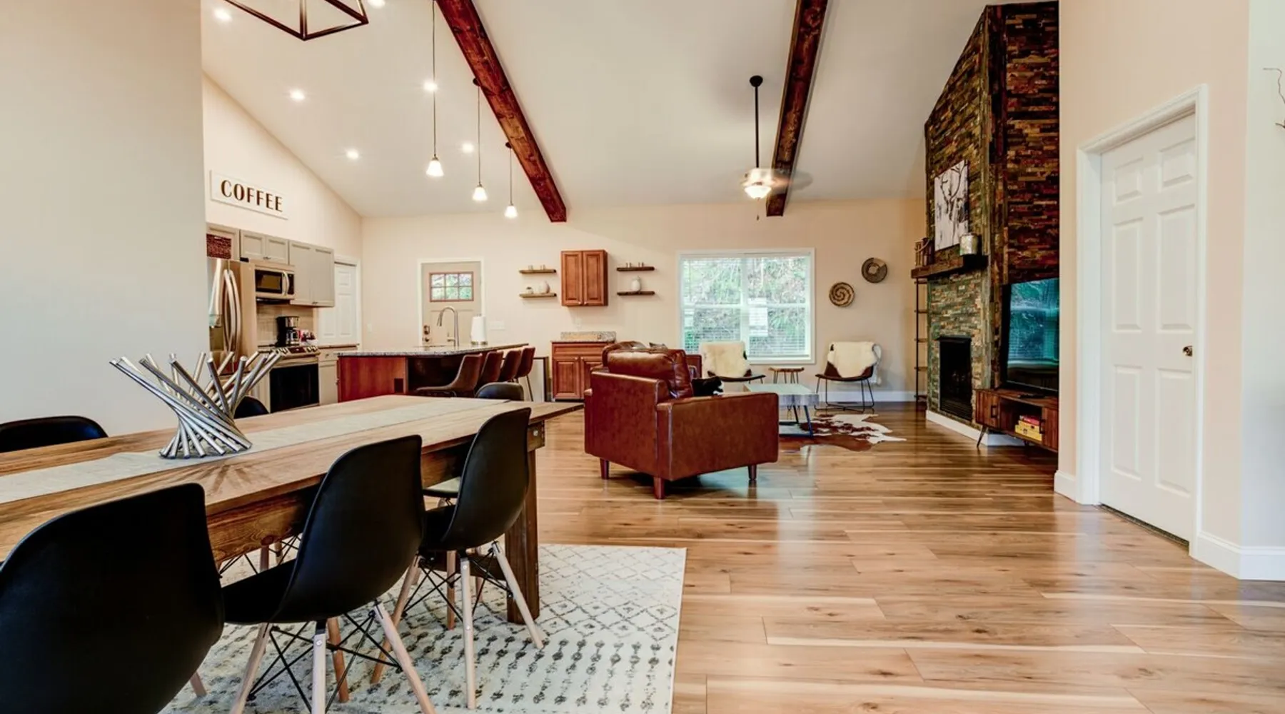 Antler View Ridge provides just what the name suggests; a mountain escape, located "amidst the Blue Ridge Mountains", on what feels like your own private ridge, with long-range views that may just afford a peek at deer! Antler View Ridge is a one-of-a-kind mountain home experience.....a new Yonder gem, creating memories for a lifetime! This hidden mountain gem sits on a newly constructed homestead, in a private development, and offers both short & long-range mountain views year-round. The space Come escape to your own memorable vacation destination! Location: Private mountain retreat located in Waynesville, overlooking scenic mountain vistas, app. 10 minutes outside of downtown Waynesville, and only 40 minutes to downtown Asheville, 45 minutes to Asheville Regional airport, 40 minutes to the gates of Biltmore Estate. You are less than 10 minutes to the Blue Ridge Parkway, and under 20 minutes to the ski slopes and downtown Maggie Valley. Close to virtually everything. Accommodations: (Sleeps 6-8) 3 bedroom, 2 full baths Occupancy Summary / Sleeps in beds: 6 Max. Occupancy: 8 (PLEASE NOTE: we provide linens for all beds; other occupancy will require guests providing their own linens.) Description: Welcome to Antler View Ridge! Yet another spectacular vacation rental hitches its wagon to our portfolio of luxury mountain rentals! And everyone has raved about their vacations ever since! This splendidly situated, and newly constructed mountain home has been built and outfitted with the goal of entertaining travelers for years, as they flock to experience the wonder that is the Blue Ridge mountains. Escape to greater Asheville and the Waynesville area to discover Antler View Ridge. This private mountain retreat offers an escape from the daily grind, complete with an expansive front porch overlooking the Appalachian Mountains! A true mountain home with modern updates & amenities; you will be relaxed by the mountain craftsman inspired accents, featuring an open living space surrounding you with the warmth of wood, offering a calming atmosphere with natural elements all around. The fireplace draws you to unwind and let all your cares float away, as you share stories, break bread, and congregate after a day of exploring all that WNC has to offer tourists. A large front porch area offers the incredible views of the mountainous skyline that our mountains are known for, and the stunning Blue Ridge mountain vistas. Gather with some friends, family, or both, and celebrate, relax, and unwind together at Antler View Ridge. Enjoy a plethora of amenities, including privacy, wireless Internet access, a large stone fireplace for those chilly nights (year round), new central air conditioning for those warm days, wildlife sightings, and more! Extremely convenient to everything Waynesville, Asheville, Maggie Valley and the Blue Ridge Parkway; come enjoy the eclectic, artsy town that is the now world famous downtown Waynesville, venture out into the western North Carolina wilderness, stay in to enjoy this marvelous getaway, hop in the car for a short drive to Asheville, or simply do it all! Whatever you choose, you will relax and unwind in style at this luxurious private retreat! This spectacular vacation rental is located just outside downtown Waynesville and is approximately 40 minutes driving distance to downtown Asheville. You are just minutes from America's favorite scenic byway, The Blue Ridge Parkway, motorcycle touring, biking, hiking, white water rafting, rock climbing, kayaking, canoeing, zip lining, Segway tour…just about any outdoor activity! Or, take a quick ride up to downtown Asheville to enjoy the first-rate restaurants, shopping, galleries, spas, and entertainment. Exclusive Special: When you book Antler View Ridge you will receive a special code for discounted tickets to the Biltmore Estate! Contact us for more info. Bedroom/Bath Layout: 3 bedroom, 2 full baths Bedroom #1 – Main Level – Master Suite – King Bed – Private Full Bath (#1) Bedroom #2 – Main Level – Guest Room – Queen Bed – Hall Full Bath (#2) Bedroom #3 – Main Level – Guest Room – Queen Bed – Hall Full Bath (#2) Occupancy Summary / Sleeps in beds: 6 Max Occupancy: 8 (PLEASE NOTE: We provide linens for all beds; other occupancy will require guests providing their own linens.) New smart TV's in every bedroom Additional Rate and Fees information: We openly share our Cleaning Fees in a manner of full disclosure, as we think this is the most honest and forthright approach with respect to our guests. Our Cleaning Fees are backed by our Clean Guarantee, which reflects the highest level of standards, pristine environments for our guests, and a level of clean that surpasses any other vacation homes; we literally guarantee it! Processing fee Current local tax rate is 13% No Security Deposit / Guests are responsible for damages. Early Check In and/or Late Check Out may be possible, depending on cleaning schedules and other reservations. If it is possible, there may be an additional fee that would be determined based on the time that you wish to check in or out and the seasonal rates. Quiet Policy: Please note that the home is located in a very private, quiet and exclusive development. Parties, loud noise and unruly behavior are absolutely prohibited, and guests are expected to respect the neighbors and their development. Internet Speed: Download - 59.5 Mbps Upload - .65 Mbps Pets: Many of our guests have allergies so we have maintained a pet-free environment so they can enjoy their vacation without the potential of an allergic reaction. If you have a pet we can recommend some alternatives nearby. Please inquire for details regarding payment, the cancellation policy, military discounts, and trip insurance. Note: Reservations over 30 days are subject for review prior to acceptance. A separate rental agreement will be required for 90+ day stays. Last Minute Bookings: Reservations made within 7 days of check-in require ad