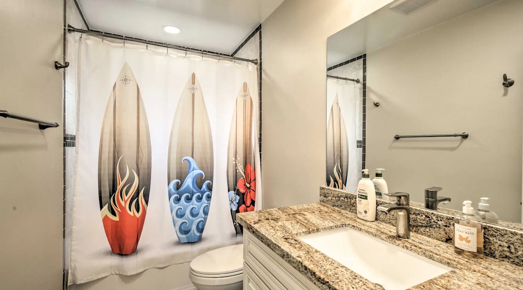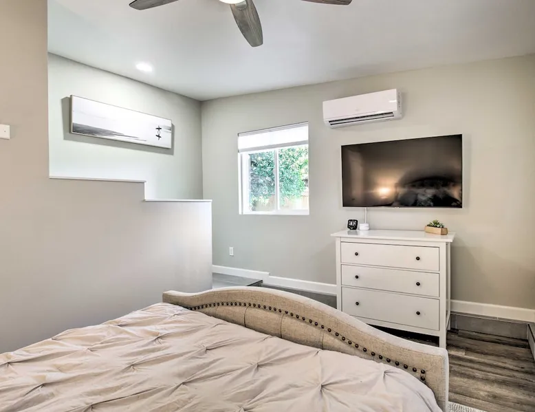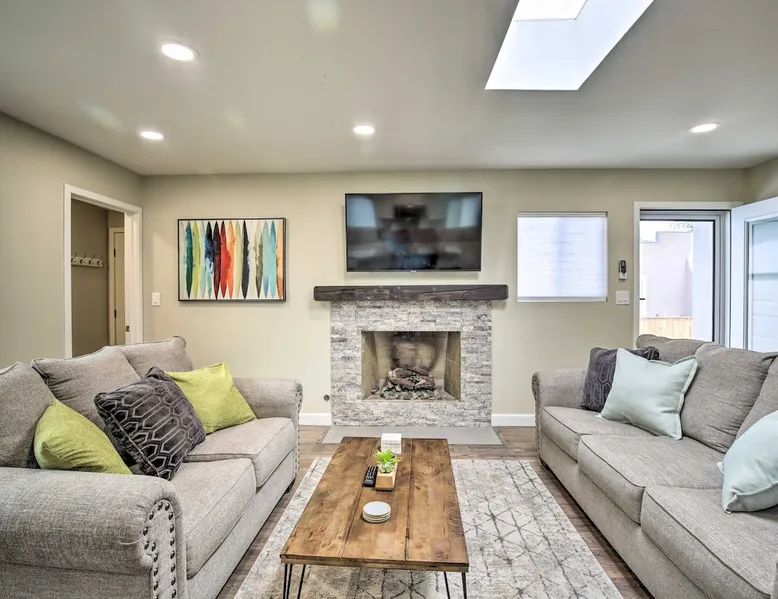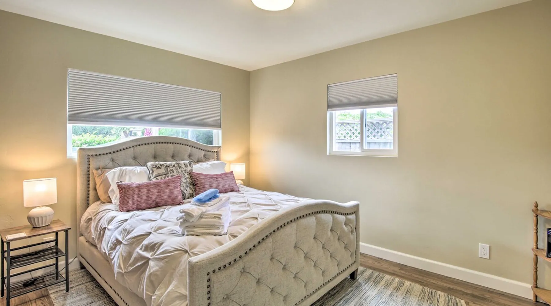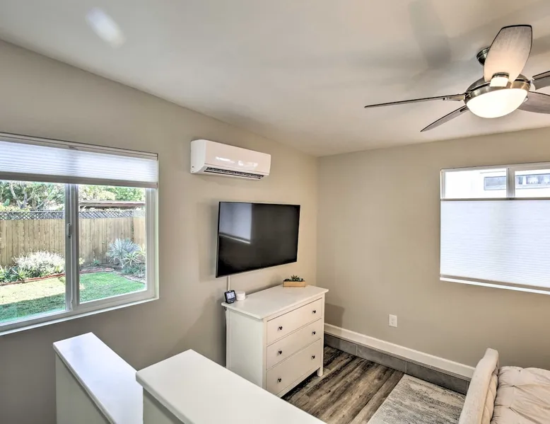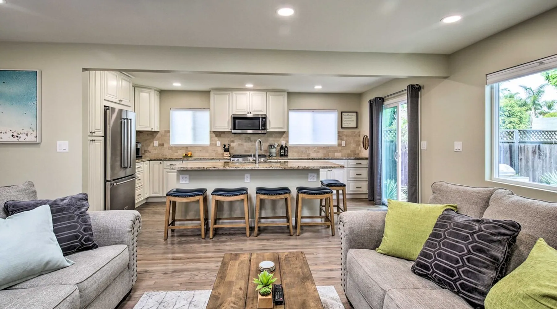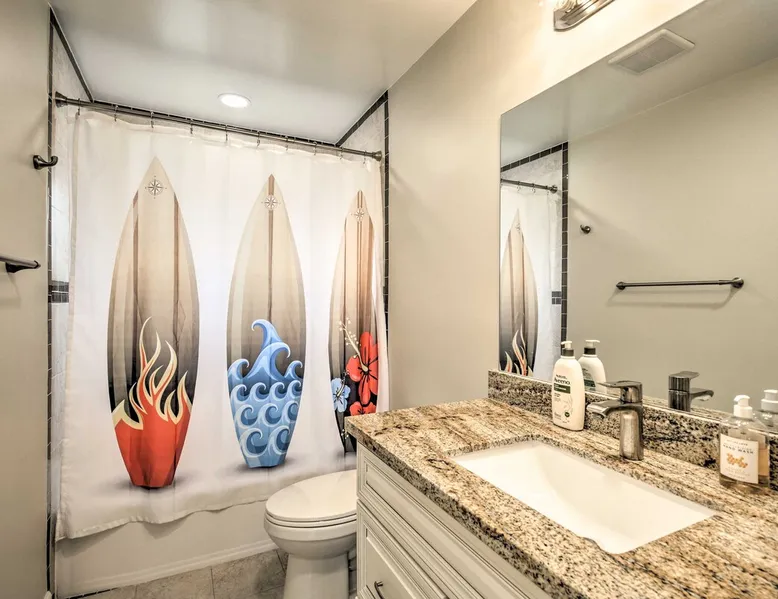 Enjoy days of strolling downtown, lounging by the beach, and soaking up the California sun when you stay at this 2-bedroom, 2-bath vacation rental in Carlsbad! Located just 1 mile from Tamarack Surf Beach and walking distance to Carlsbad Village, you'll never be far from entertainment. When you're not out catching waves, head to downtown San Diego and explore the local breweries and restaurants for the day. Conclude your evening gathered around the furnished patio with cocktails in hand! The space City of Carlsbad STR Permit BLRE007724-05-2020 | Single-Story Home | Air Conditioning | Furnished Patio Experience a laid-back oceanside lifestyle when you stay at this modern Carlsbad getaway, perfect for small groups with an affinity for surfing, outdoor adventure, and all things coastal! Bedroom 1: California King Bed | Bedroom 2: Queen Bed | Living Room: Queen Sleeper Sofa OUTDOOR LIVING: Private patio, gas fire pit table, cushioned seating, privacy fence, stainless steel gas grill, spacious yard INDOOR LIVING: Open layout, modern furnishings, flat-screen Smart TV, cable KITCHEN: Fully equipped, stainless steel appliances, gas range stove, granite counters, high-top breakfast bar, full knife set, Keurig coffee maker, cooking basics, dishware & flatware GENERAL: Free WiFi, linens/towels, first aid kit, A/C, beach chairs & towels, beach umbrella, washer dryer, trash bags, paper towels PARKING: Driveway (4 vehicles), street parking Guest access Guests will have access to the entire property via keyless entry Other things to note - No smoking - No pets allowed - No events, parties, or large gatherings - Additional fees and taxes may apply - Photo ID may be required upon check-in - NOTE: Your safety matters. There is a Ring security camera, located at the front of the property, pointing towards the street and driveway. It does not look into any interior spaces - STR Permit Number: # BLRE007724 Registration Details BLRE007724