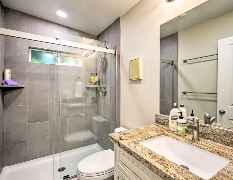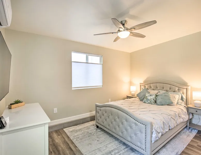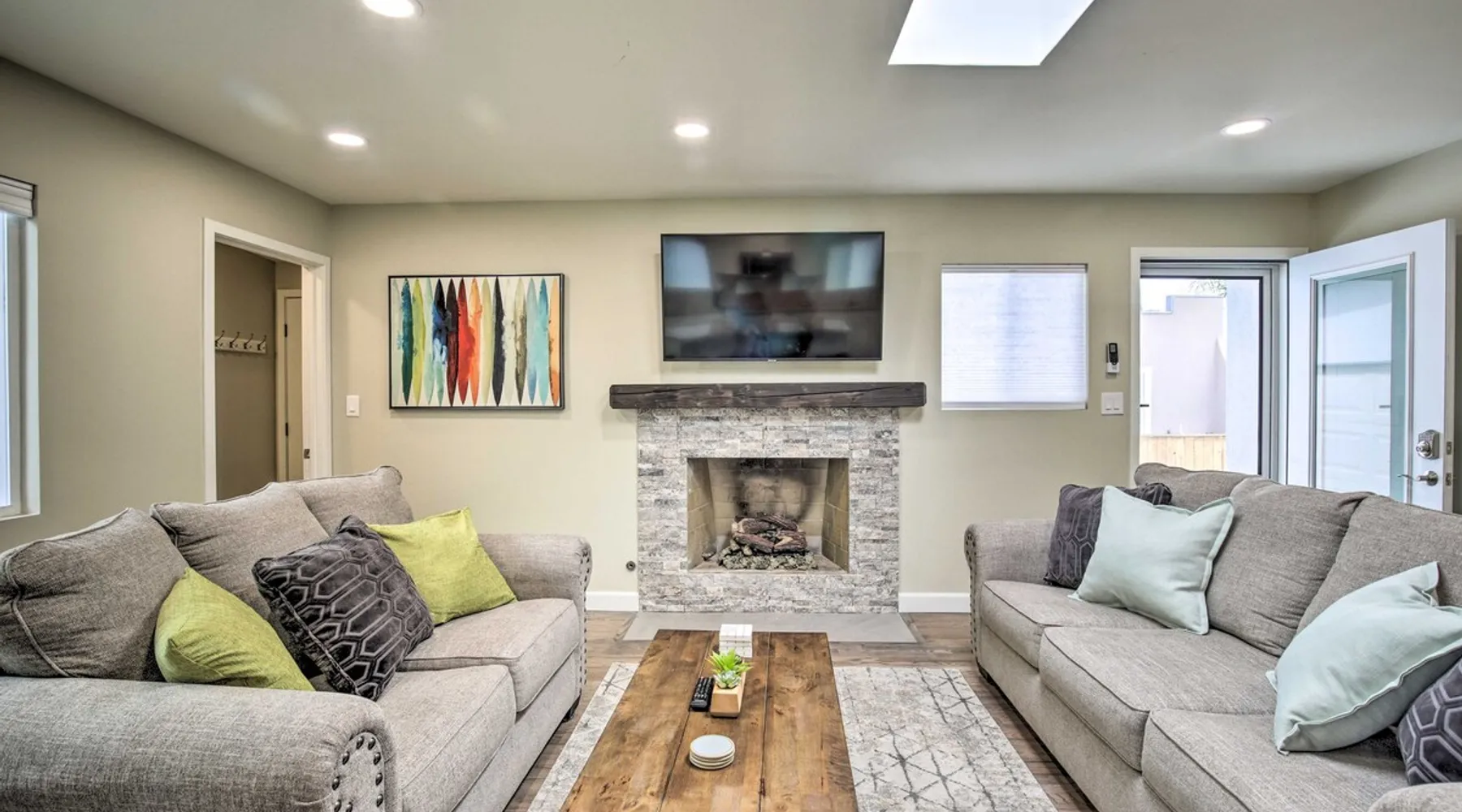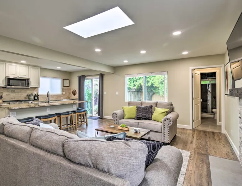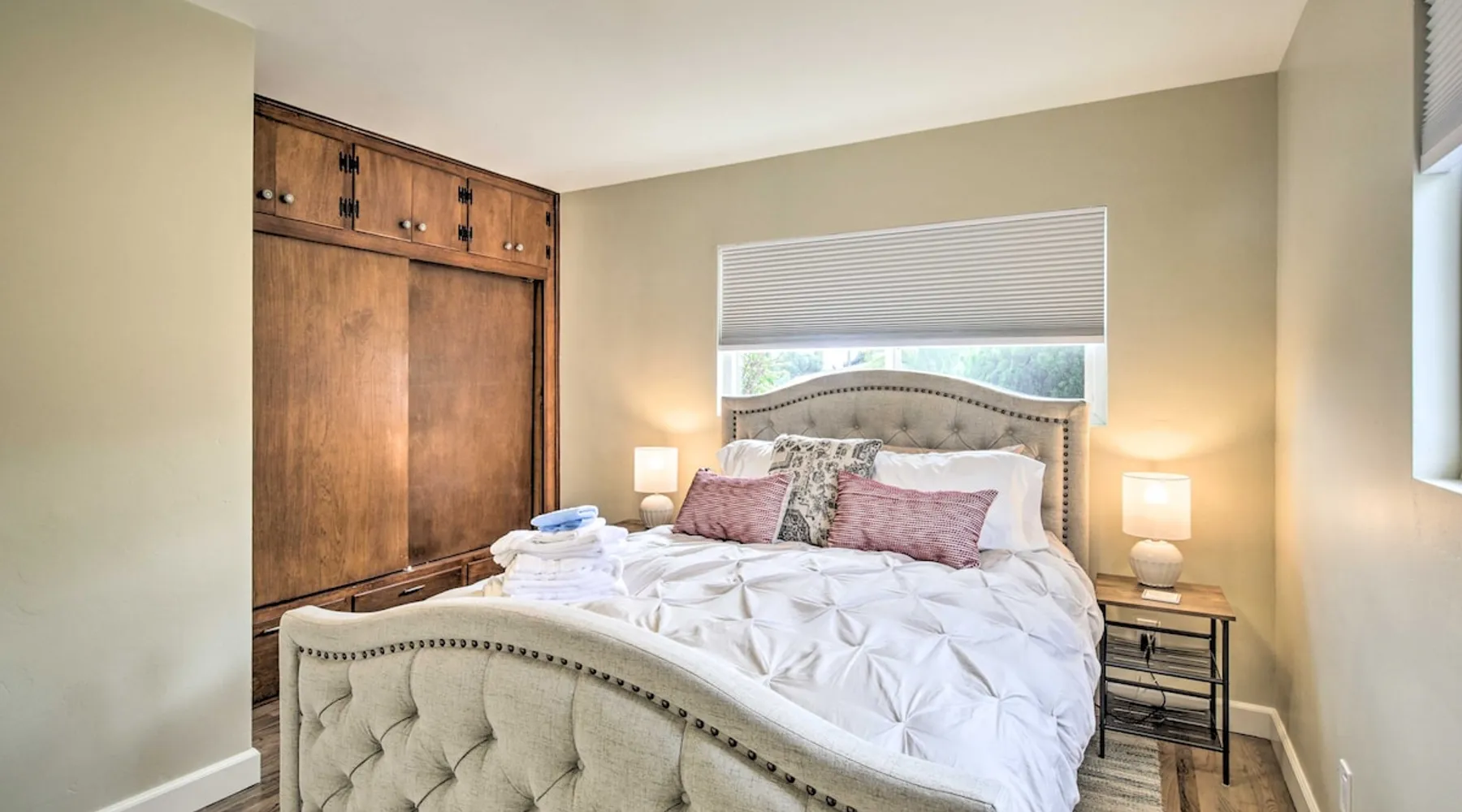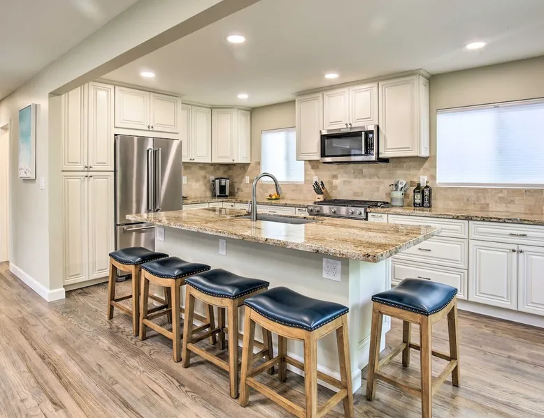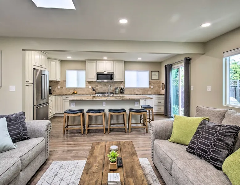 Enjoy days of strolling downtown, lounging by the beach, and soaking up the California sun when you stay at this 2-bedroom, 2-bath vacation rental in Carlsbad! Located just 1 mile from Tamarack Surf Beach and walking distance to Carlsbad Village, you'll never be far from entertainment. When you're not out catching waves, head to downtown San Diego and explore the local breweries and restaurants for the day. Conclude your evening gathered around the furnished patio with cocktails in hand! The space City of Carlsbad STR Permit BLRE007724-05-2020 | Single-Story Home | Air Conditioning | Furnished Patio Experience a laid-back oceanside lifestyle when you stay at this modern Carlsbad getaway, perfect for small groups with an affinity for surfing, outdoor adventure, and all things coastal! Bedroom 1: California King Bed | Bedroom 2: Queen Bed | Living Room: Queen Sleeper Sofa OUTDOOR LIVING: Private patio, gas fire pit table, cushioned seating, privacy fence, stainless steel gas grill, spacious yard INDOOR LIVING: Open layout, modern furnishings, flat-screen Smart TV, cable KITCHEN: Fully equipped, stainless steel appliances, gas range stove, granite counters, high-top breakfast bar, full knife set, Keurig coffee maker, cooking basics, dishware & flatware GENERAL: Free WiFi, linens/towels, first aid kit, A/C, beach chairs & towels, beach umbrella, washer dryer, trash bags, paper towels PARKING: Driveway (4 vehicles), street parking Guest access Guests will have access to the entire property via keyless entry Other things to note - No smoking - No pets allowed - No events, parties, or large gatherings - Additional fees and taxes may apply - Photo ID may be required upon check-in - NOTE: Your safety matters. There is a Ring security camera, located at the front of the property, pointing towards the street and driveway. It does not look into any interior spaces - STR Permit Number: # BLRE007724 Registration Details BLRE007724
