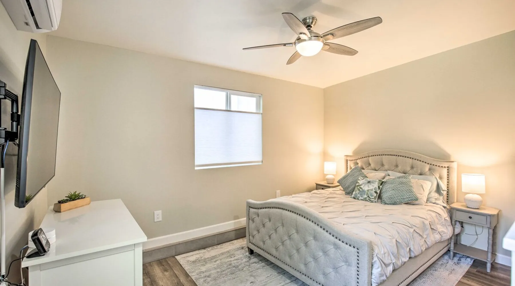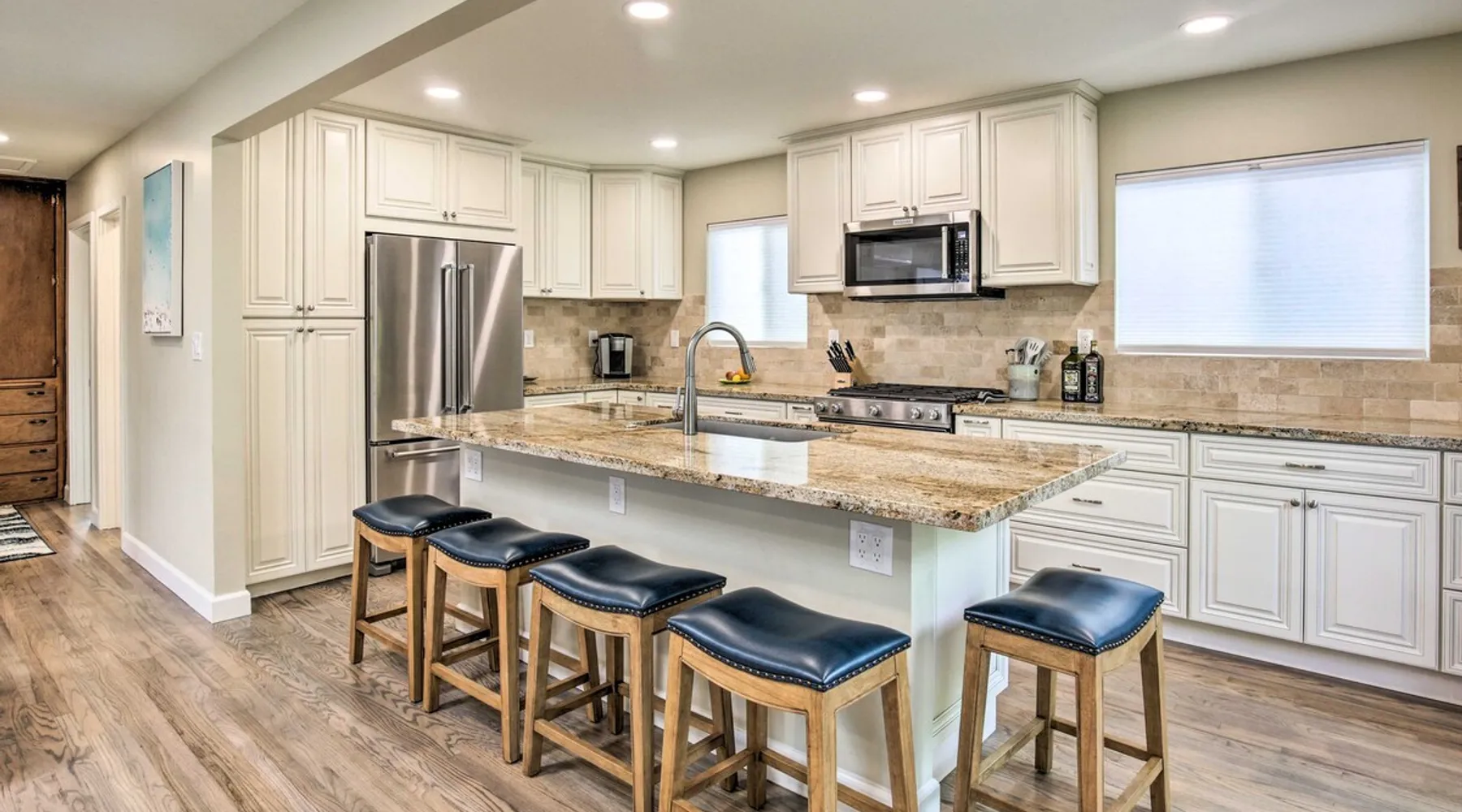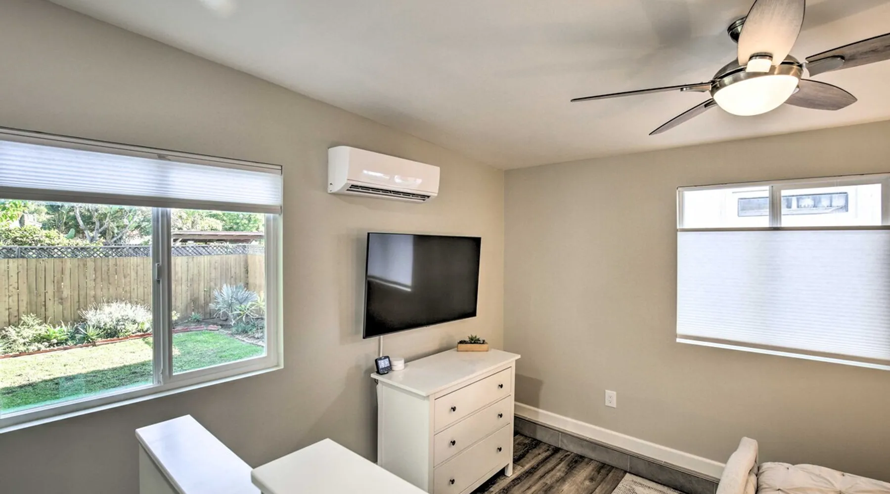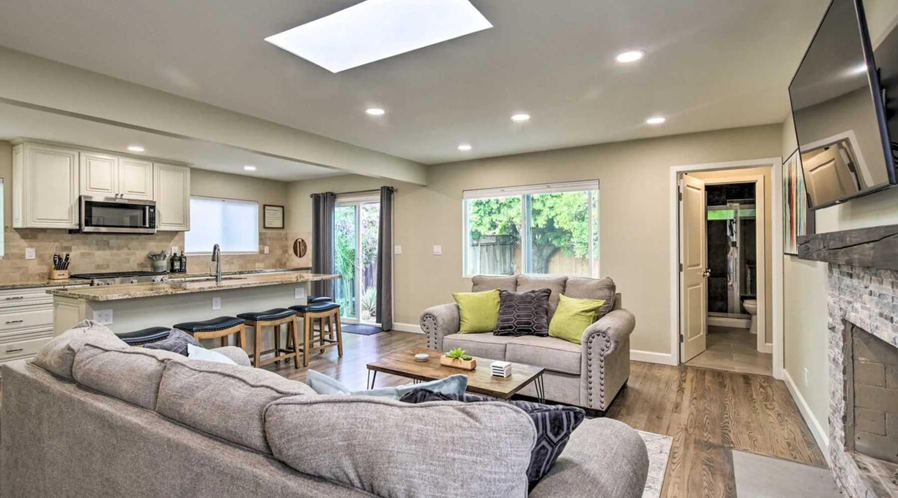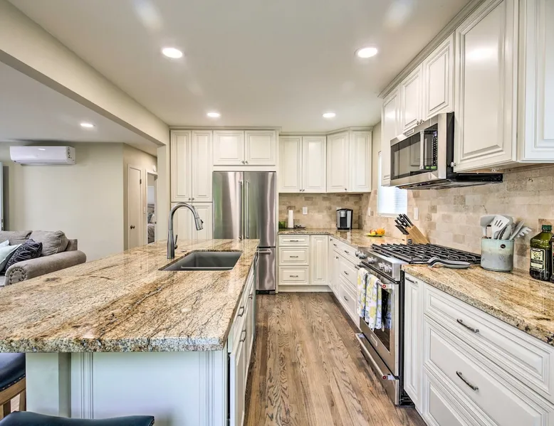 Enjoy days of strolling downtown, lounging by the beach, and soaking up the California sun when you stay at this 2-bedroom, 2-bath vacation rental in Carlsbad! Located just 1 mile from Tamarack Surf Beach and walking distance to Carlsbad Village, you'll never be far from entertainment. When you're not out catching waves, head to downtown San Diego and explore the local breweries and restaurants for the day. Conclude your evening gathered around the furnished patio with cocktails in hand! The space City of Carlsbad STR Permit BLRE007724-05-2020 | Single-Story Home | Air Conditioning | Furnished Patio Experience a laid-back oceanside lifestyle when you stay at this modern Carlsbad getaway, perfect for small groups with an affinity for surfing, outdoor adventure, and all things coastal! Bedroom 1: California King Bed | Bedroom 2: Queen Bed | Living Room: Queen Sleeper Sofa OUTDOOR LIVING: Private patio, gas fire pit table, cushioned seating, privacy fence, stainless steel gas grill, spacious yard INDOOR LIVING: Open layout, modern furnishings, flat-screen Smart TV, cable KITCHEN: Fully equipped, stainless steel appliances, gas range stove, granite counters, high-top breakfast bar, full knife set, Keurig coffee maker, cooking basics, dishware & flatware GENERAL: Free WiFi, linens/towels, first aid kit, A/C, beach chairs & towels, beach umbrella, washer dryer, trash bags, paper towels PARKING: Driveway (4 vehicles), street parking Guest access Guests will have access to the entire property via keyless entry Other things to note - No smoking - No pets allowed - No events, parties, or large gatherings - Additional fees and taxes may apply - Photo ID may be required upon check-in - NOTE: Your safety matters. There is a Ring security camera, located at the front of the property, pointing towards the street and driveway. It does not look into any interior spaces - STR Permit Number: # BLRE007724 Registration Details BLRE007724