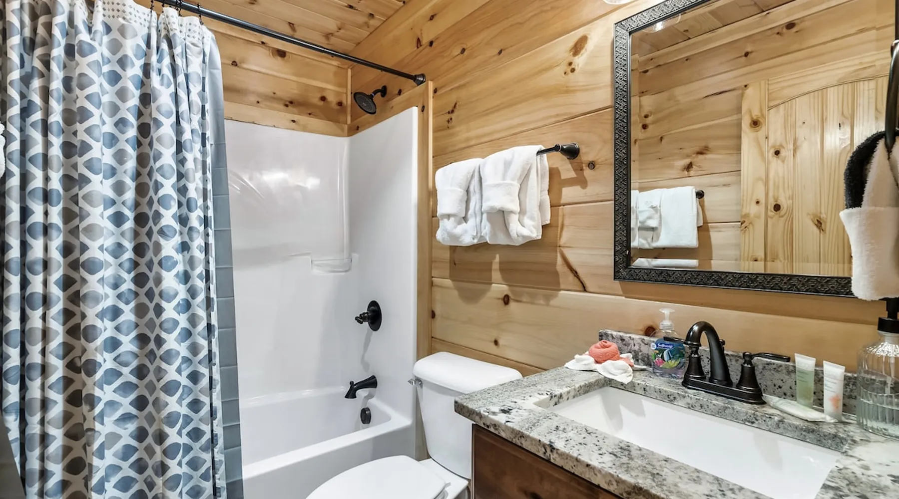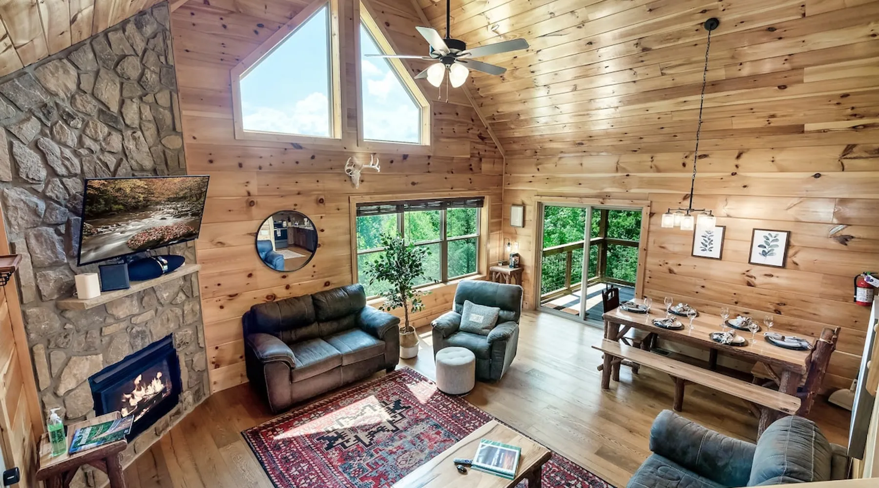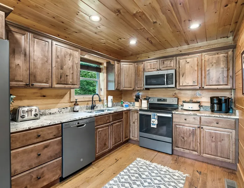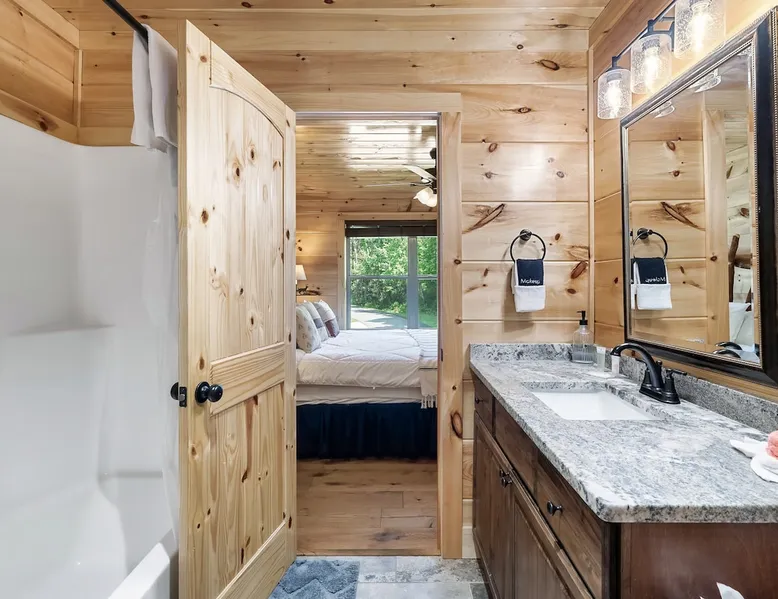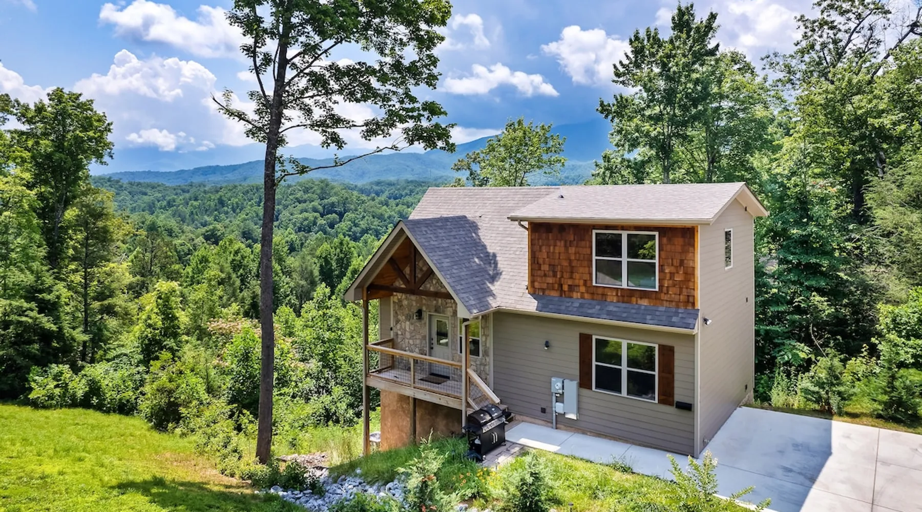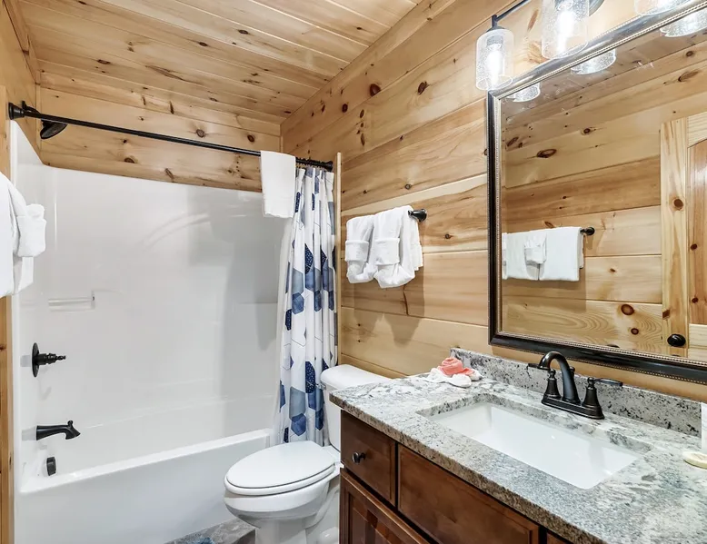 • LOCATION! centrally located in Gatlinburg • Breathtaking Mountain Views • Fire pit & Hot tub • 3 KING suites with their own en-suite bathroom (3 Bathrooms) • Sleeps up to 10 guests • Pet friendly • Game Room with air hockey table, foosball table, arcade games • 8 minutes to downtown Gatlinburg restaurants, shops & attractions • 15 minutes to the Great Smoky Mountains National Park entrance • 20 minutes to Pigeon Forge & Dollywood • Paved roads / No winding roads The space This modern mountain cabin built in 2020 features real stonework and cedar shakes Hardie boards. Perfect for families & groups of friends, everyone can spread out between an expansive Great Room with cathedral ceilings, an entertainment-packed game room, and two relaxing decks with dramatic mountain views. Follow us on FB or Insta: smokymoutainsretreats ► BEDROOMS This three-story cabin accommodates up to 10 guests between the three bedrooms (one on each level) and two queen-size sleeper sofas (one in the living room and one in the game room). You will find a TV in every room. Upper floor: Master Bedroom with a King size bed & en-suite bathroom – sleeps 2 Main floor: Master Bedroom with a King size bed & en-suite bathroom – sleeps 2 Lower floor: Master Bedroom with a King size bed & en-suite bathroom– sleeps 2 Great room: Queen-size sleeper Sofa – sleeps 2 Game room: Queen-size sleeper Sofa – sleeps 2 See pictures of the floor plan in the listing (last pictures). ► KITCHEN The kitchen is equipped with all the cookware, cutlery, and appliances you need to prepare delicious meals during your stay. Refrigerator, stove, microwave, dishwasher, toaster, blender, tea kettle, Crockpot, Keurig Duo with carafe & single serve pod coffee maker. The dining table comfortably seats eight. ► OUTDOOR GRILL There is a private Gas Grill. We provide the Propane Gas. ► OUTDOOR SPACE After a day of hiking and sightseeing, you have a lot of options to chill: *relax by the fire pit *soak in the private hot tub *kick back in the rocking chairs and enjoy the fresh mountain breeze and impressive views towards Mt. LeConte. ► FIRE PIT Our private fire pit is located right by the cabin and offers nice Mountain views. There are 6 outdoor chairs. If you plan on using the fire pit, just remember to bring some fire wood (you can find this at the supermarket next door if needed - 5 min drive). ► GAME ROOM You, your family and guests will love playing in the game room outfitted with an air hockey table, foosball table, video arcade games, and a home theater area for movie nights. There is also an assortment of board games. ► PETS We are a pet friendly cabin and you can bring up to 3 dogs as long as they are house broken/potty trained. We welcome all breeds of dogs and have no restrictions on weight. The pet fee is $175 for the whole stay for up to 3 dogs (the fee is not per dog). ► INTERNET/CABLE High Speed Wireless Internet Smart TVs in the living room/game room as well as in each bedrooms. ► LAUNDRY Full size washer and dryer. ► AMENITIES Our cleaning service provides start-up supplies including: paper towels, dish soap, dish washer soap, kitchen trash can liners, toilet paper, hand soap and bathroom trash liners. Depending on the length of your stay, you may need to purchase additional items when the initial supply runs out. ► PRIVATE PARKING Flat parking for up to 4 vehicles in the driveway. ► ENTRY The front door is equipped with an electronic keypad, we will send a personalized door code. ► SMOKING No Smoking indoors. You can smoke on the decks though. *** Please favorite the property by clicking "save" or "heart shape" in the upper right-hand corner, this will help you find it again and share with others *** Guest access Guests will enjoy the entire cabin/private hot tub/private fire pit. Other things to note For security reasons, we have placed 2 outside cameras, one is located on the entry porch facing the entrance door and one is located facing the fire pit/street. Ring cameras in place and actively recording. Ring cameras are activated by motion and will record anyone that walks in front of them. These recordings are saved and can be reviewed and shared with the booking platform. If we believe that house rules are being violated, we have the ability to access these cameras in real time. Please remember that you are staying in our home away from home. Please treat our cabin with respect. "Out of our control" problems could arise, please note we will do everything in our power to resolve any issue ASAP, as your comfort means everything to us.