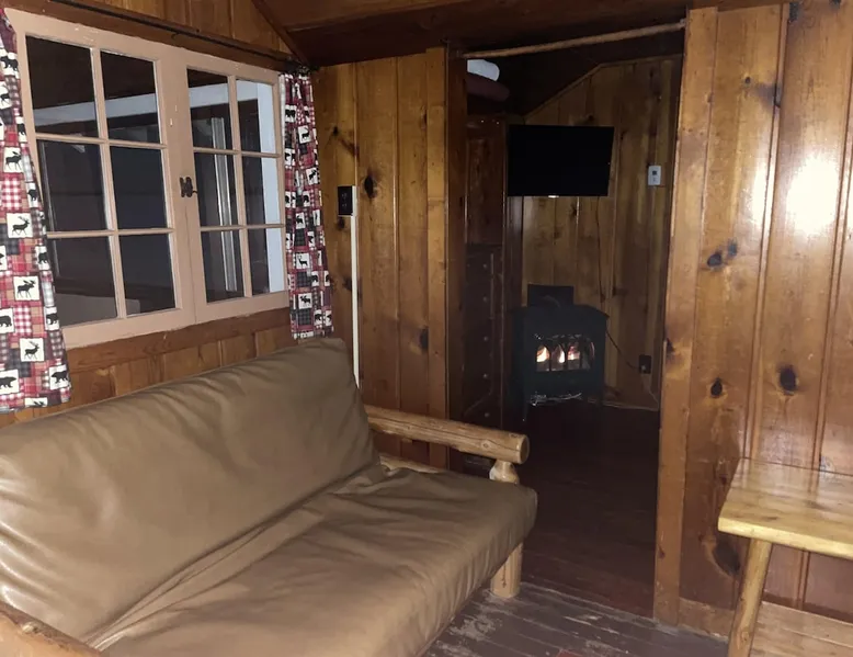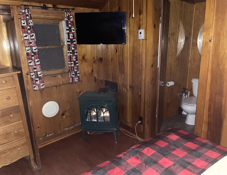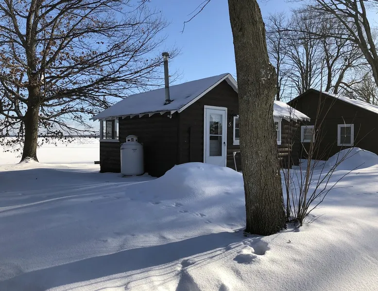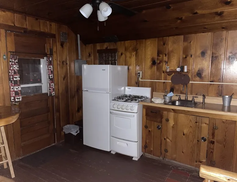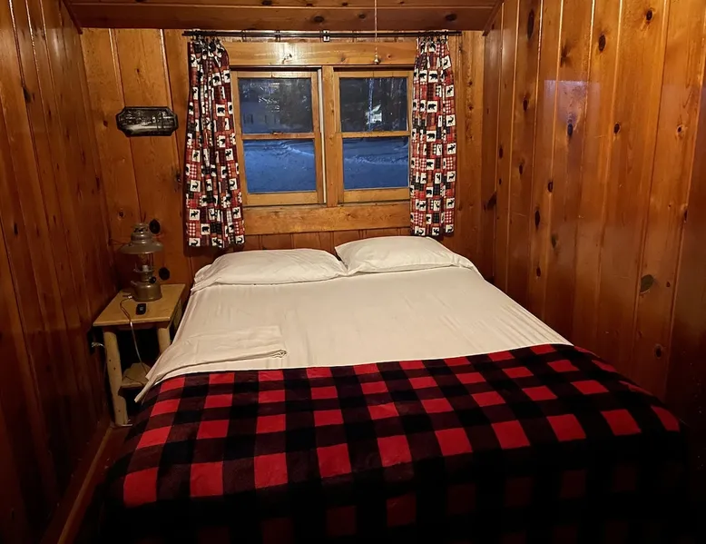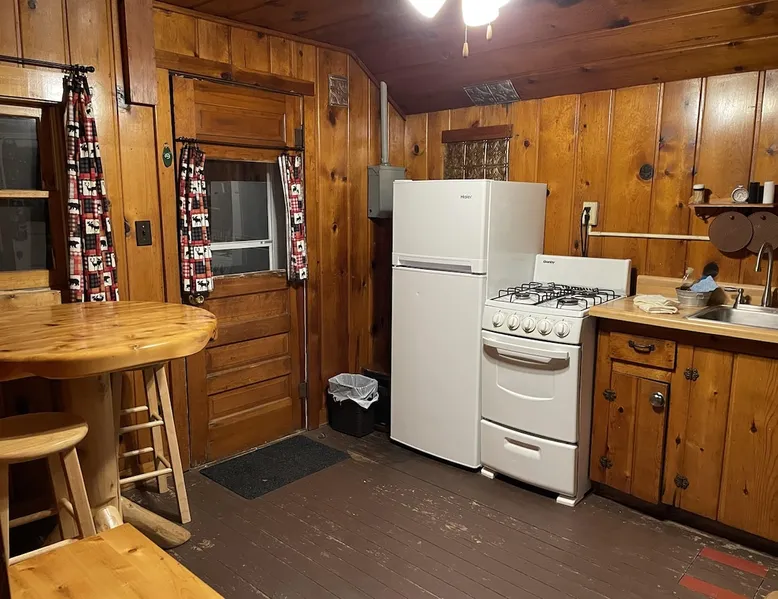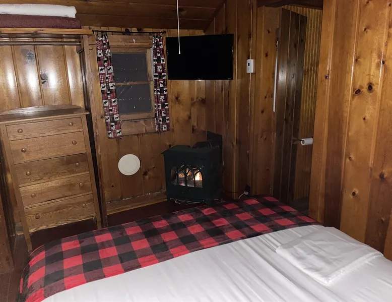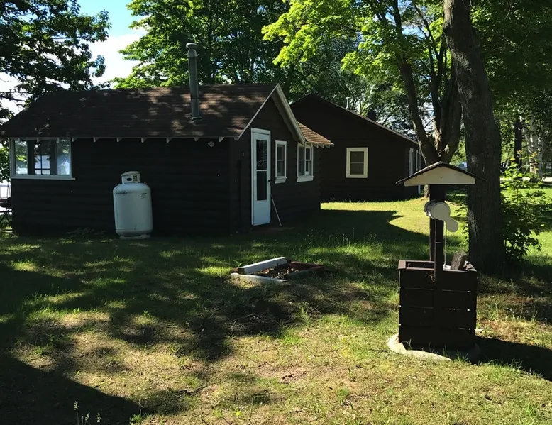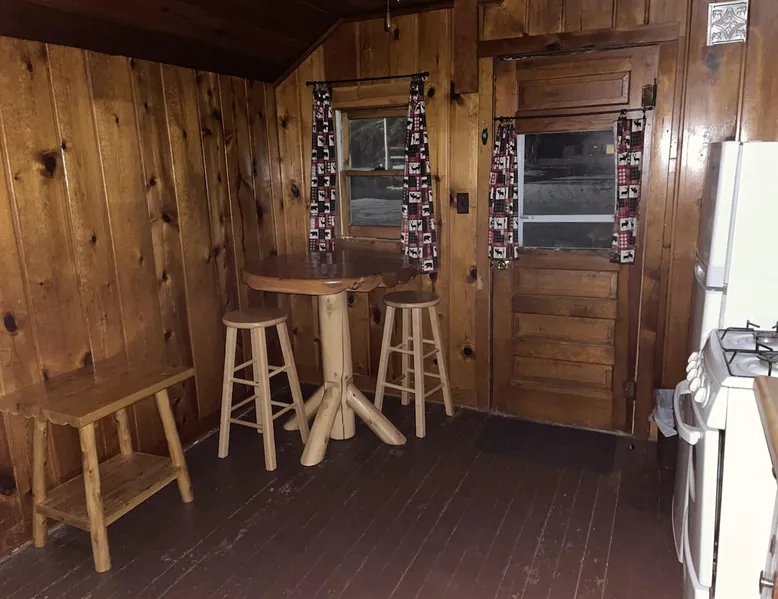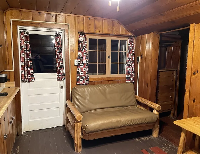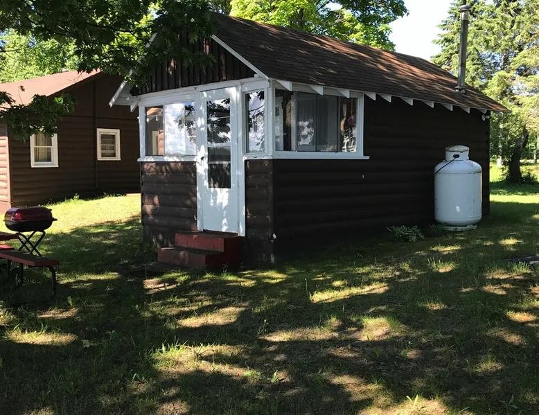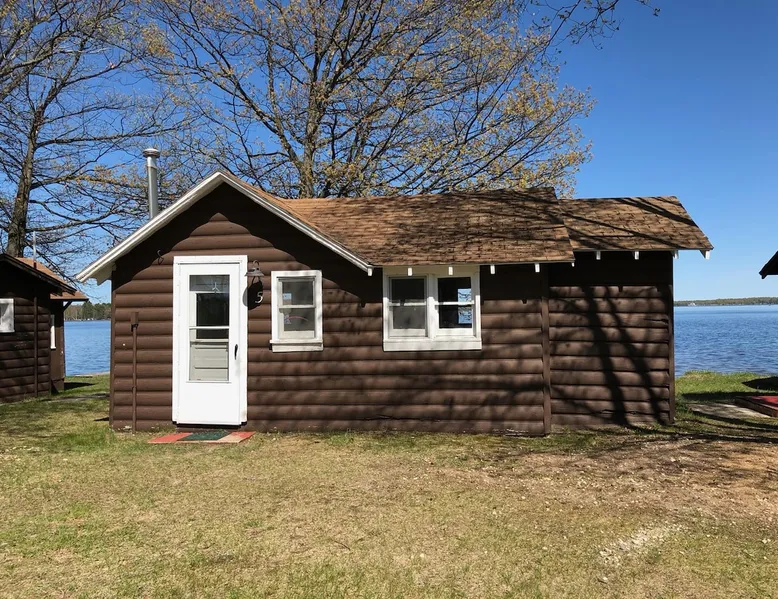 Cabin #5 - "Mitigwa" Mitigwa is a Native American word meaning "Maker of Men". This adorable little 1 bedroom cabin at 280 sq ft is a favorite among couples or those looking to share an intimate getaway. The space This Vintage Rustic cabin, primarily designed for the camping & fishing enthusiast, is just one cabin of a 7 cabin resort. This cabin was built in the early 1930's and holds every bit of that vintage character. It may be a little rough around the edges but this authentic cabin holds the wonderful allure of days gone by. Electrical outlets would have been added a few years later and air conditioning wasn’t even thought of at that time. Those details won't matter to the outdoorsy kind coming for the camping experience where lake activity fills your day and evenings are enjoyed around the campfire. This charming cabin has a knotty pine interior and all the basics to create an Up North camping style atmosphere. A lifestyle one will appreciate becoming acquainted with. All the cabins are lined up next to each other along the shore of a beautifully serene lake. This close proximity to other cabins have traditionally created a friendly community style atmosphere where guests mingle and create lasting friendships. This is the kind of place where your grandparents brought your parents, your parent’s brought you, and you are now bringing your children to create beautiful memories while spending a nostalgic vacation in a familiar old cabin. This 1 bedroom cabin sleeps 2 people in a queen size bed. There is 1 electrical outlet next to the bed. Other electrical outlets are minimally located throughout the cabin. The cabin has a kitchen with everything to cover your basic needs, a dinning space and a simple bathroom that includes a warm shower. The spacious 10’x6’ enclosed porch overlooking the lake. Perfect for spending a quiet evening with a loved one. Whether you are looking for a home base to camp at the lake or a base camp while you explore the area’s attractions, you will enjoy this cozy cabin and all its imperfections. More than anything, you’re gonna love the authentic charm and the carefree lifestyle that comes with camping Up North. Pets are welcome on the property for an additional fee of $25 per night / per pet, paid at time of arrival if not otherwise paid. This includes pets of your visitors to the property. Free Parking is available for 1 vehicle per cabin. 1 boat/trailer per cabin is also free but are required to be parked in designated area elsewhere on the property. Extra vehicles require a $25 per day fee and must also be parked in a designated area elsewhere on the property. This includes vehicles of your visitors to the property. Extra Vehicle fees will be collected onsite at the time of arrival if not previously collected elsewhere. RV's are not permitted. Guest access Guests have shared use of grounds, lake, shoreline, waterfront and docks. Guests have full private use of their entire cabin which includes their screened in porch, living space, bedrooms and bathroom.