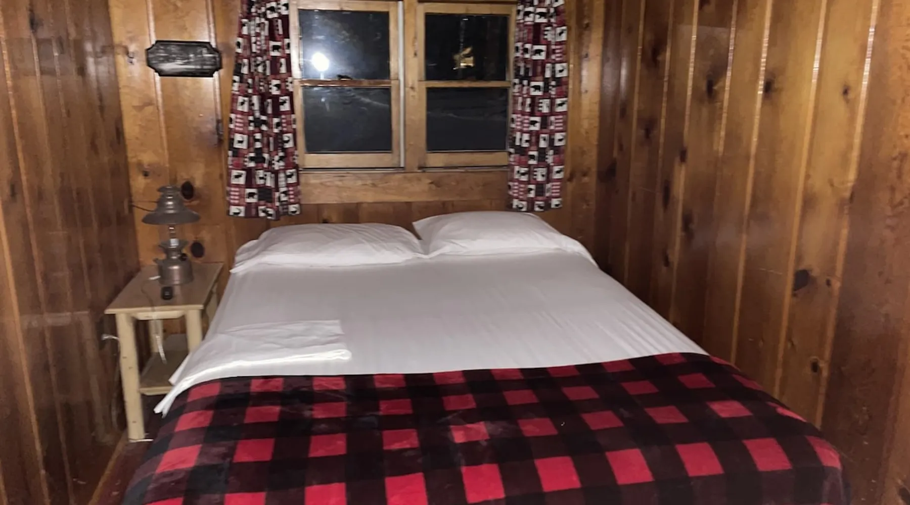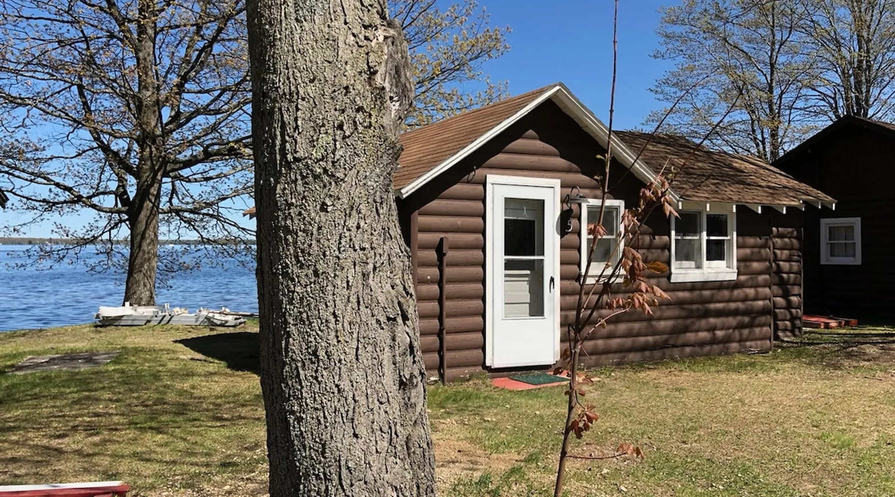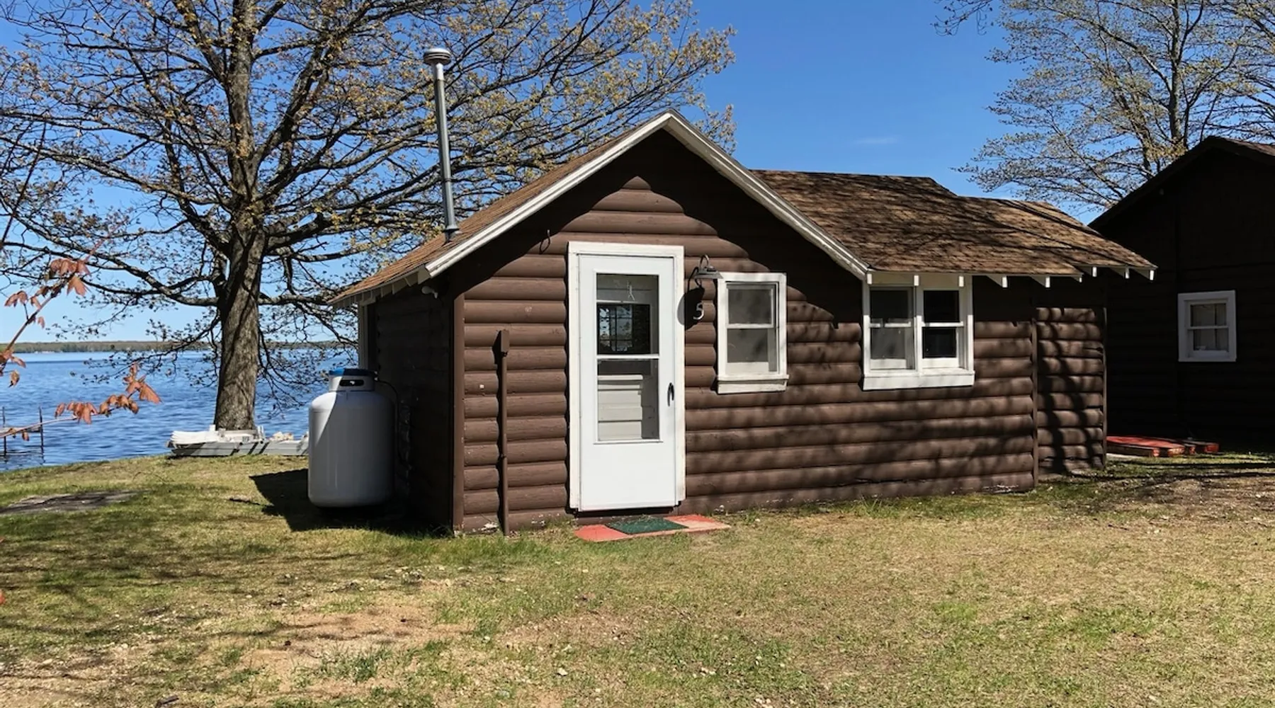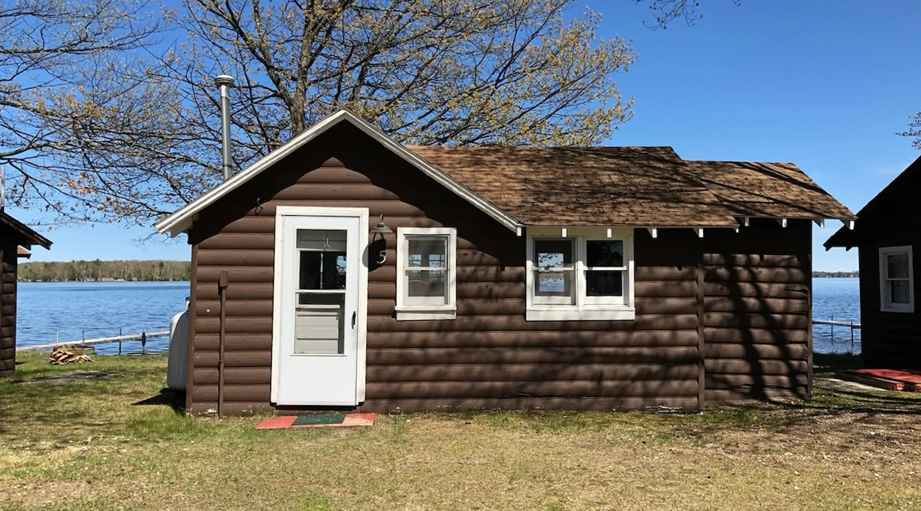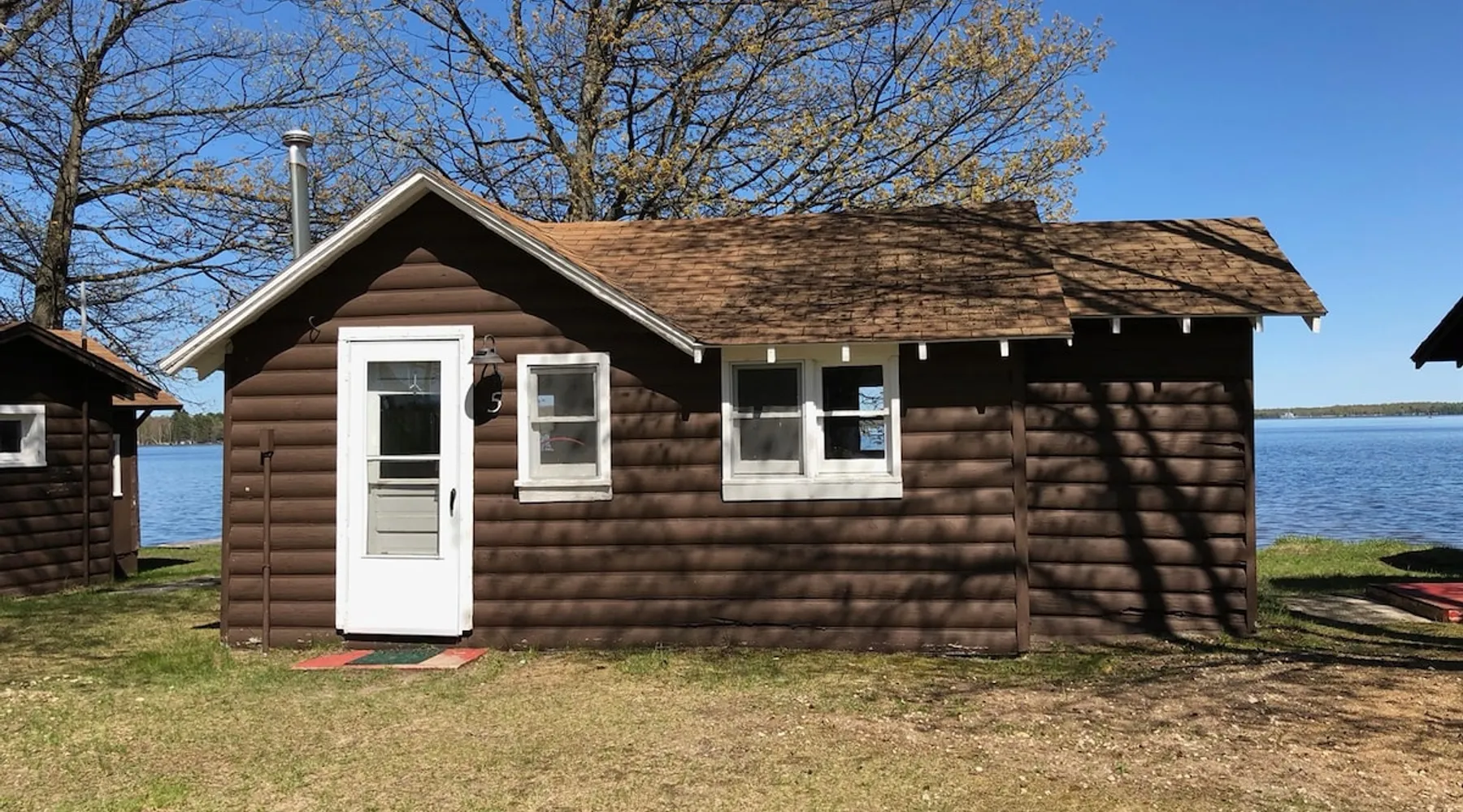 Cabin #5 - "Mitigwa" Mitigwa is a Native American word meaning "Maker of Men". This adorable little 1 bedroom cabin at 280 sq ft is a favorite among couples or those looking to share an intimate getaway. The space This Vintage Rustic cabin, primarily designed for the camping & fishing enthusiast, is just one cabin of a 7 cabin resort. This cabin was built in the early 1930's and holds every bit of that vintage character. It may be a little rough around the edges but this authentic cabin holds the wonderful allure of days gone by. Electrical outlets would have been added a few years later and air conditioning wasn’t even thought of at that time. Those details won't matter to the outdoorsy kind coming for the camping experience where lake activity fills your day and evenings are enjoyed around the campfire. This charming cabin has a knotty pine interior and all the basics to create an Up North camping style atmosphere. A lifestyle one will appreciate becoming acquainted with. All the cabins are lined up next to each other along the shore of a beautifully serene lake. This close proximity to other cabins have traditionally created a friendly community style atmosphere where guests mingle and create lasting friendships. This is the kind of place where your grandparents brought your parents, your parent’s brought you, and you are now bringing your children to create beautiful memories while spending a nostalgic vacation in a familiar old cabin. This 1 bedroom cabin sleeps 2 people in a queen size bed. There is 1 electrical outlet next to the bed. Other electrical outlets are minimally located throughout the cabin. The cabin has a kitchen with everything to cover your basic needs, a dinning space and a simple bathroom that includes a warm shower. The spacious 10’x6’ enclosed porch overlooking the lake. Perfect for spending a quiet evening with a loved one. Whether you are looking for a home base to camp at the lake or a base camp while you explore the area’s attractions, you will enjoy this cozy cabin and all its imperfections. More than anything, you’re gonna love the authentic charm and the carefree lifestyle that comes with camping Up North. Pets are welcome on the property for an additional fee of $25 per night / per pet, paid at time of arrival if not otherwise paid. This includes pets of your visitors to the property. Free Parking is available for 1 vehicle per cabin. 1 boat/trailer per cabin is also free but are required to be parked in designated area elsewhere on the property. Extra vehicles require a $25 per day fee and must also be parked in a designated area elsewhere on the property. This includes vehicles of your visitors to the property. Extra Vehicle fees will be collected onsite at the time of arrival if not previously collected elsewhere. RV's are not permitted. Guest access Guests have shared use of grounds, lake, shoreline, waterfront and docks. Guests have full private use of their entire cabin which includes their screened in porch, living space, bedrooms and bathroom.