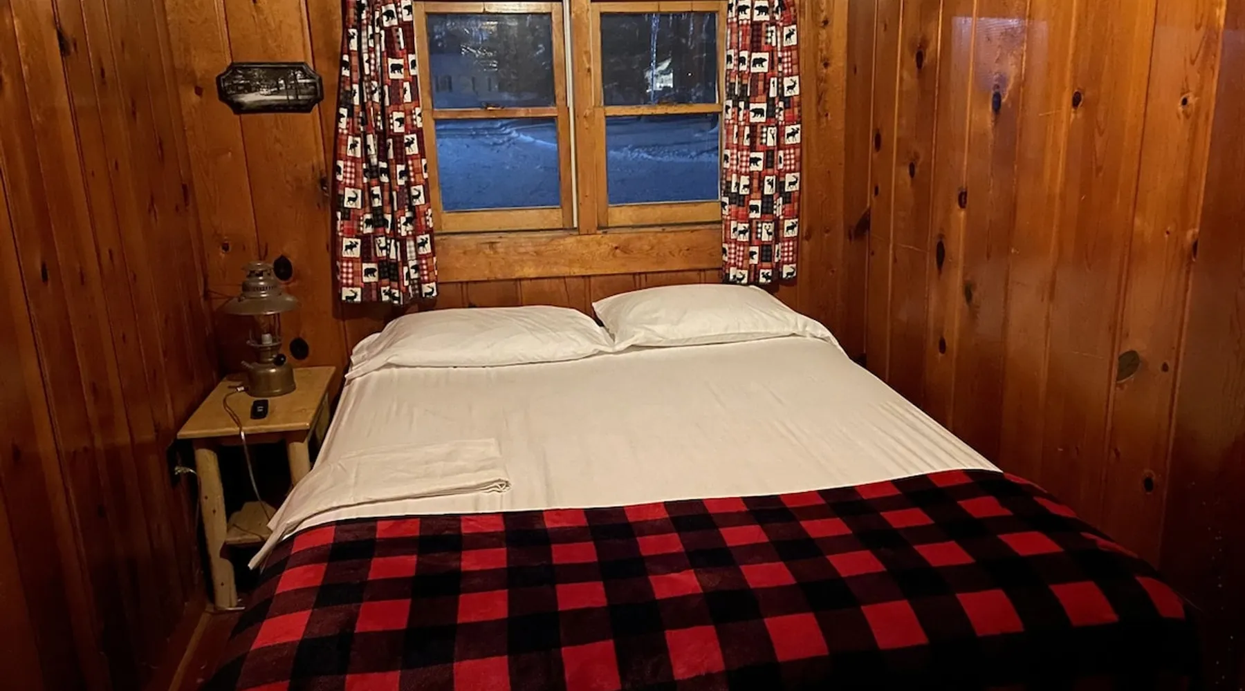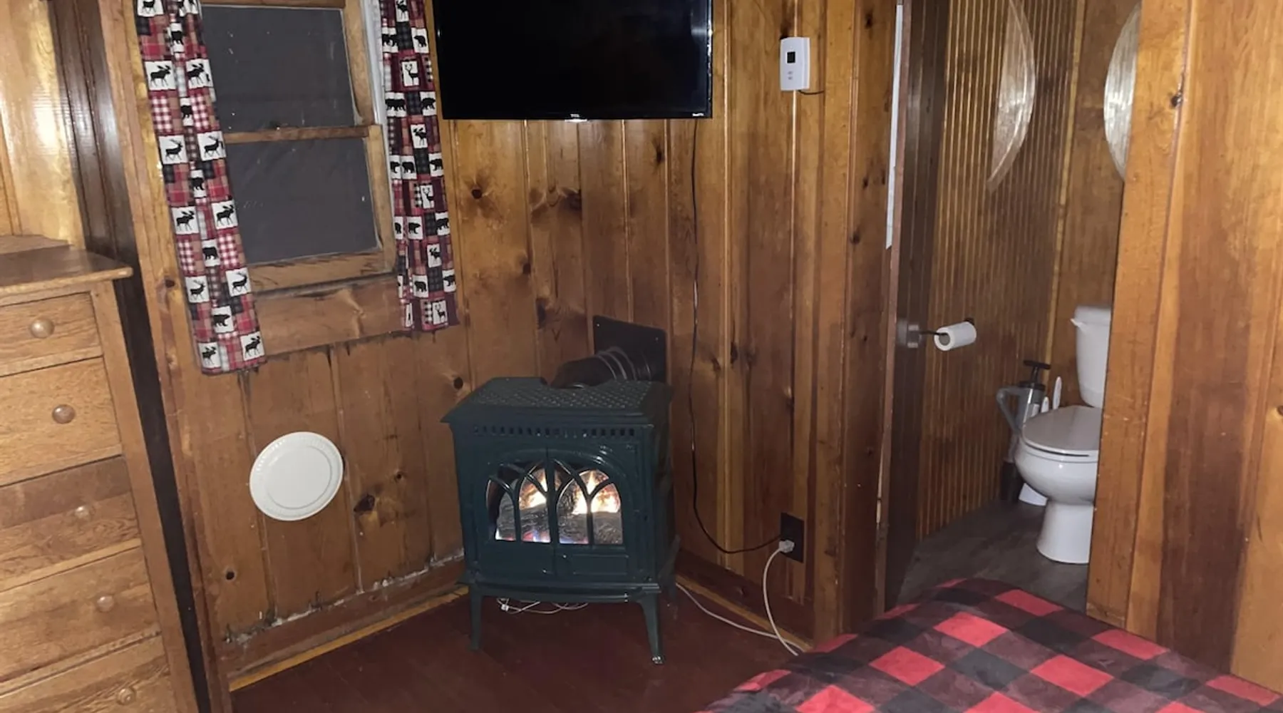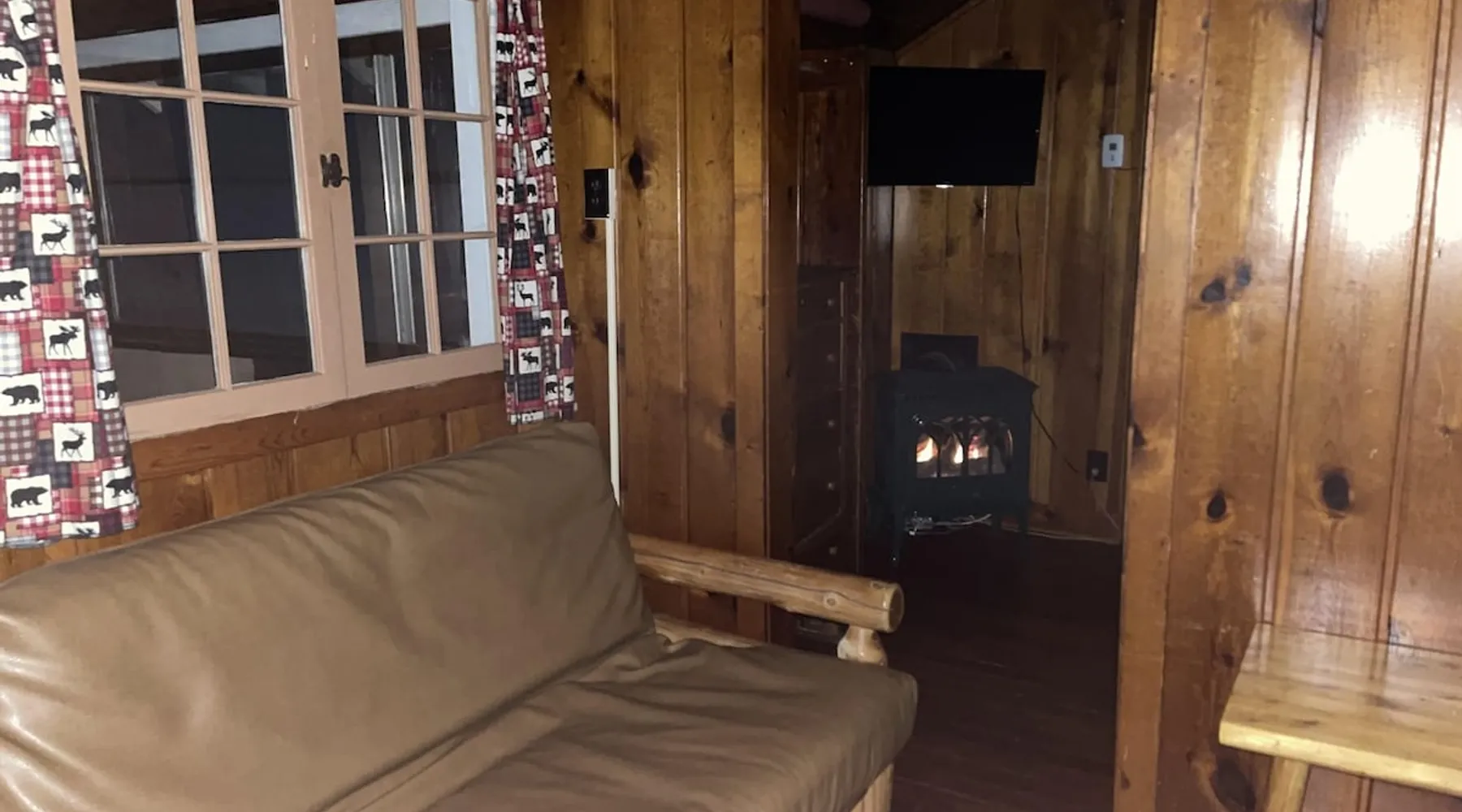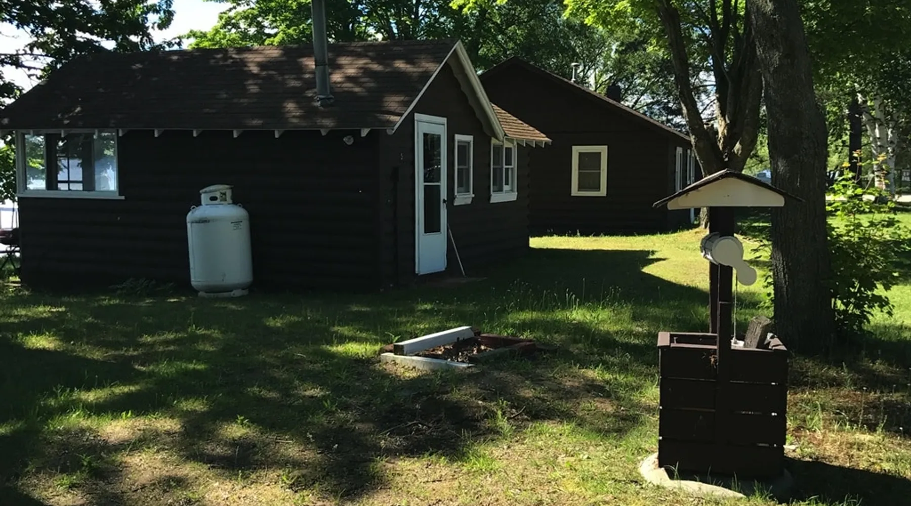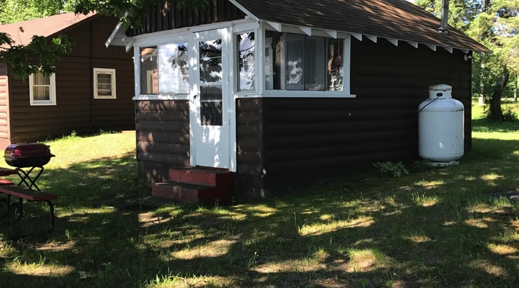 Cabin #5 - "Mitigwa" Mitigwa is a Native American word meaning "Maker of Men". This adorable little 1 bedroom cabin at 280 sq ft is a favorite among couples or those looking to share an intimate getaway. The space This Vintage Rustic cabin, primarily designed for the camping & fishing enthusiast, is just one cabin of a 7 cabin resort. This cabin was built in the early 1930's and holds every bit of that vintage character. It may be a little rough around the edges but this authentic cabin holds the wonderful allure of days gone by. Electrical outlets would have been added a few years later and air conditioning wasn’t even thought of at that time. Those details won't matter to the outdoorsy kind coming for the camping experience where lake activity fills your day and evenings are enjoyed around the campfire. This charming cabin has a knotty pine interior and all the basics to create an Up North camping style atmosphere. A lifestyle one will appreciate becoming acquainted with. All the cabins are lined up next to each other along the shore of a beautifully serene lake. This close proximity to other cabins have traditionally created a friendly community style atmosphere where guests mingle and create lasting friendships. This is the kind of place where your grandparents brought your parents, your parent’s brought you, and you are now bringing your children to create beautiful memories while spending a nostalgic vacation in a familiar old cabin. This 1 bedroom cabin sleeps 2 people in a queen size bed. There is 1 electrical outlet next to the bed. Other electrical outlets are minimally located throughout the cabin. The cabin has a kitchen with everything to cover your basic needs, a dinning space and a simple bathroom that includes a warm shower. The spacious 10’x6’ enclosed porch overlooking the lake. Perfect for spending a quiet evening with a loved one. Whether you are looking for a home base to camp at the lake or a base camp while you explore the area’s attractions, you will enjoy this cozy cabin and all its imperfections. More than anything, you’re gonna love the authentic charm and the carefree lifestyle that comes with camping Up North. Pets are welcome on the property for an additional fee of $25 per night / per pet, paid at time of arrival if not otherwise paid. This includes pets of your visitors to the property. Free Parking is available for 1 vehicle per cabin. 1 boat/trailer per cabin is also free but are required to be parked in designated area elsewhere on the property. Extra vehicles require a $25 per day fee and must also be parked in a designated area elsewhere on the property. This includes vehicles of your visitors to the property. Extra Vehicle fees will be collected onsite at the time of arrival if not previously collected elsewhere. RV's are not permitted. Guest access Guests have shared use of grounds, lake, shoreline, waterfront and docks. Guests have full private use of their entire cabin which includes their screened in porch, living space, bedrooms and bathroom.