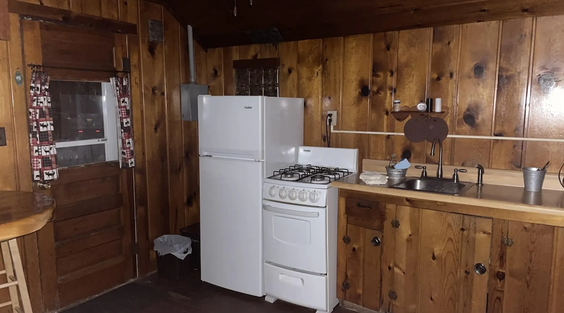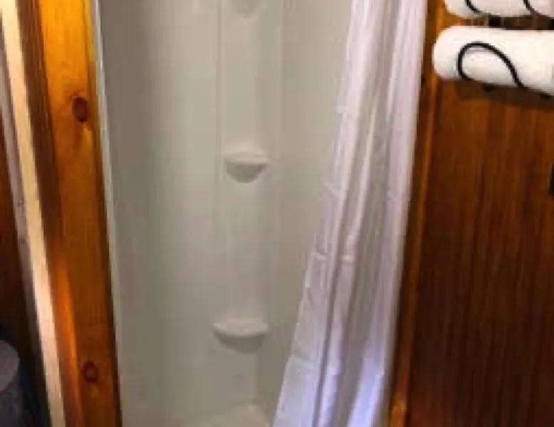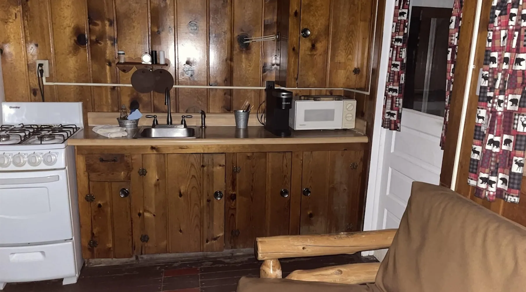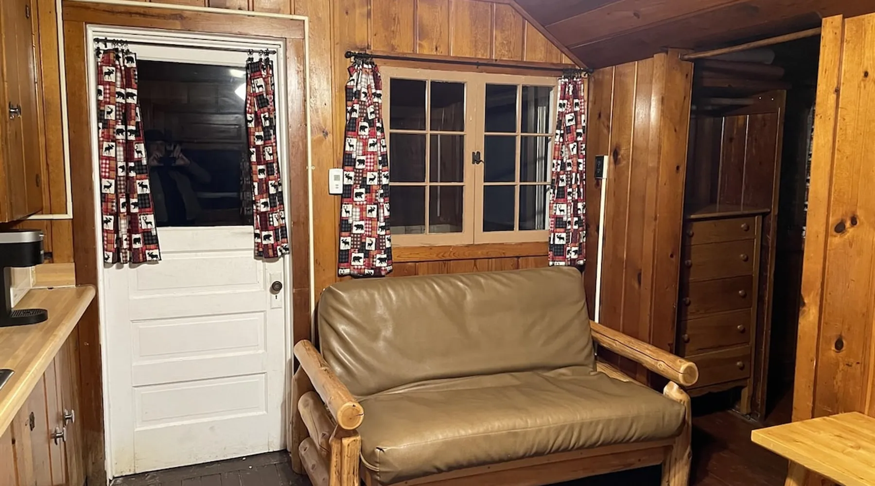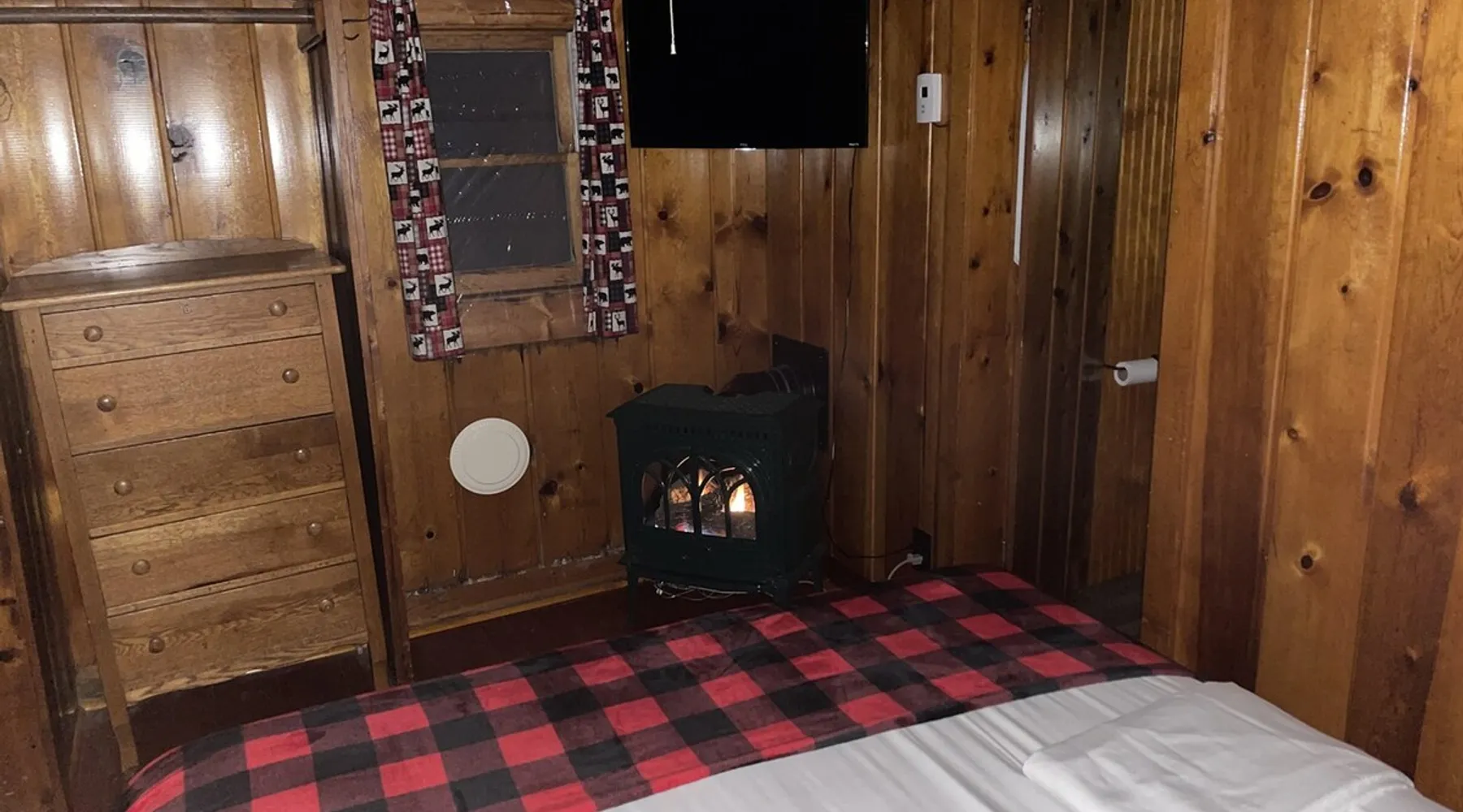 Cabin #5 - "Mitigwa" Mitigwa is a Native American word meaning "Maker of Men". This adorable little 1 bedroom cabin at 280 sq ft is a favorite among couples or those looking to share an intimate getaway. The space This Vintage Rustic cabin, primarily designed for the camping & fishing enthusiast, is just one cabin of a 7 cabin resort. This cabin was built in the early 1930's and holds every bit of that vintage character. It may be a little rough around the edges but this authentic cabin holds the wonderful allure of days gone by. Electrical outlets would have been added a few years later and air conditioning wasn’t even thought of at that time. Those details won't matter to the outdoorsy kind coming for the camping experience where lake activity fills your day and evenings are enjoyed around the campfire. This charming cabin has a knotty pine interior and all the basics to create an Up North camping style atmosphere. A lifestyle one will appreciate becoming acquainted with. All the cabins are lined up next to each other along the shore of a beautifully serene lake. This close proximity to other cabins have traditionally created a friendly community style atmosphere where guests mingle and create lasting friendships. This is the kind of place where your grandparents brought your parents, your parent’s brought you, and you are now bringing your children to create beautiful memories while spending a nostalgic vacation in a familiar old cabin. This 1 bedroom cabin sleeps 2 people in a queen size bed. There is 1 electrical outlet next to the bed. Other electrical outlets are minimally located throughout the cabin. The cabin has a kitchen with everything to cover your basic needs, a dinning space and a simple bathroom that includes a warm shower. The spacious 10’x6’ enclosed porch overlooking the lake. Perfect for spending a quiet evening with a loved one. Whether you are looking for a home base to camp at the lake or a base camp while you explore the area’s attractions, you will enjoy this cozy cabin and all its imperfections. More than anything, you’re gonna love the authentic charm and the carefree lifestyle that comes with camping Up North. Pets are welcome on the property for an additional fee of $25 per night / per pet, paid at time of arrival if not otherwise paid. This includes pets of your visitors to the property. Free Parking is available for 1 vehicle per cabin. 1 boat/trailer per cabin is also free but are required to be parked in designated area elsewhere on the property. Extra vehicles require a $25 per day fee and must also be parked in a designated area elsewhere on the property. This includes vehicles of your visitors to the property. Extra Vehicle fees will be collected onsite at the time of arrival if not previously collected elsewhere. RV's are not permitted. Guest access Guests have shared use of grounds, lake, shoreline, waterfront and docks. Guests have full private use of their entire cabin which includes their screened in porch, living space, bedrooms and bathroom.
