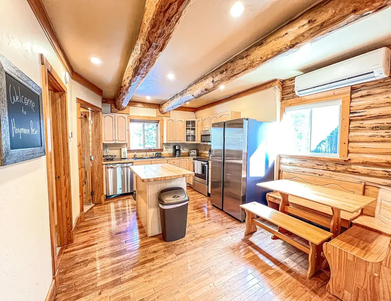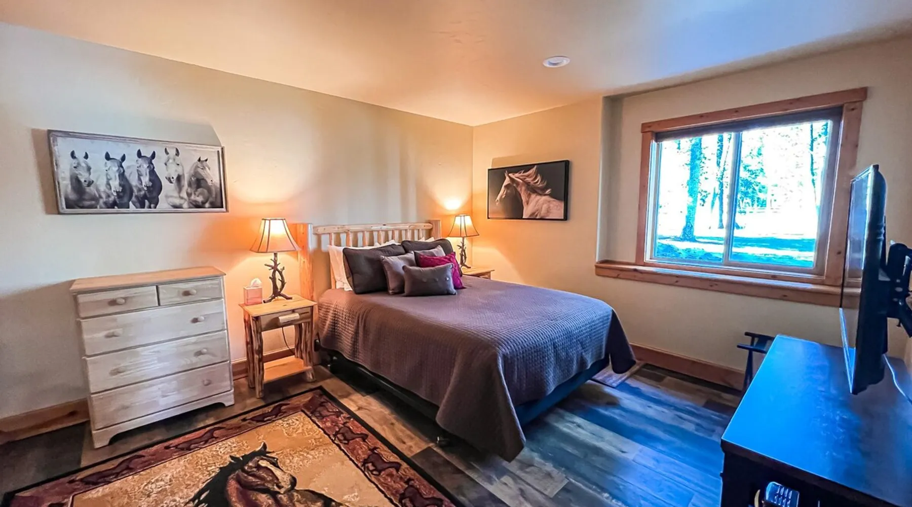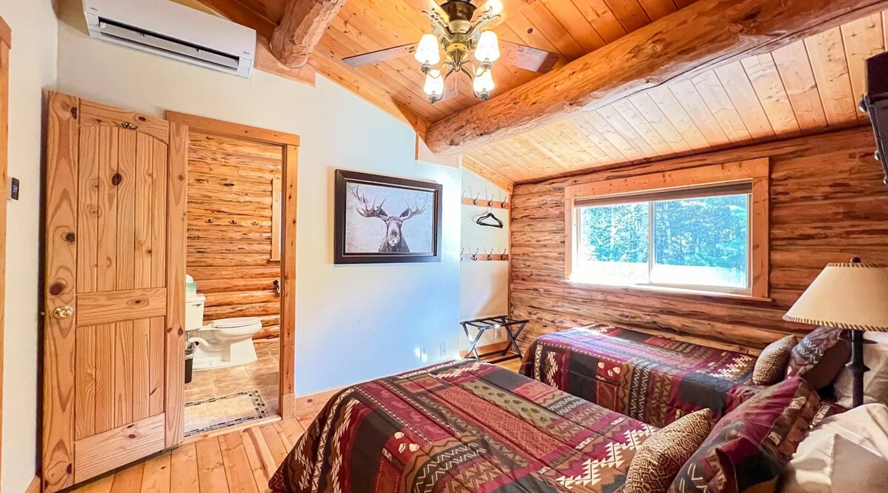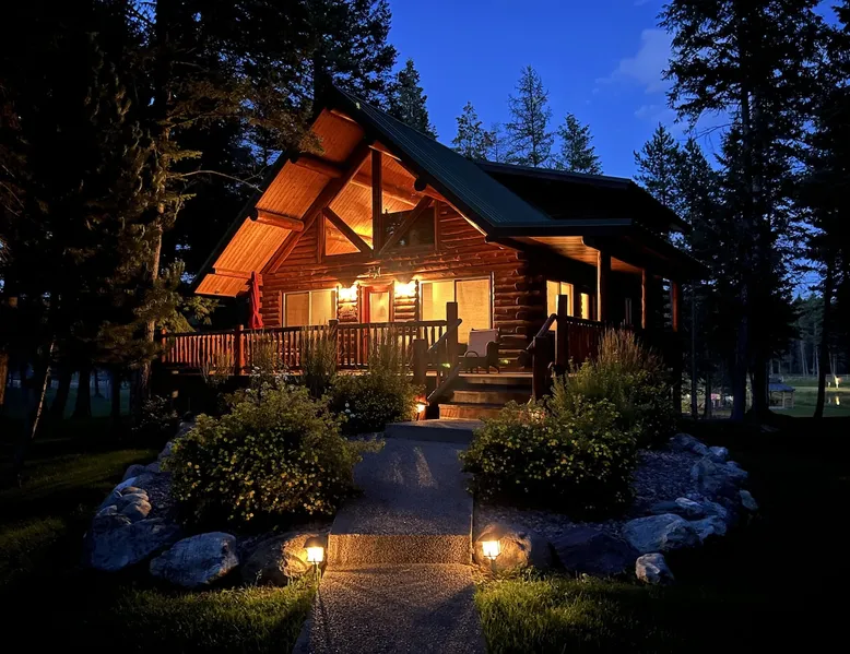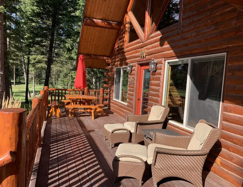 The North Star Cabin feels like a cabin in the woods, yet is conveniently located close to town, ski resort, and everything the valley has to offer! Fireplace (pellet stove), jetted tub, and well stocked kitchen. Perfect holiday getaway! The space This cabin is part of the beautiful Haymoon Resort. With 2 ponds and 15 acres of incredibly landscaped lawn, pasture, garden, and wooded areas, the property is absolutely gorgeous. There are several lodging options on the resort, however each one is private enough that you don't feel like you are sharing the space with other people. They are all close enough though, that if you have a large group that wants to spread out, you are all on the same property! All of our cabins are clean, cozy, and well stocked. You will feel at home the moment you walk in. The property is large with lots of room to play outside in both summer and winter! One of the biggest comments that we get (and we completely agree!) is that our property is in the perfect location. We are centered between Whitefish, Kalispell, and Columbia Falls. The biggest question we get in Winter is "how far away are you from the ski hill?" We are only about a 20 minute drive from the parking for the lifts at Whitefish Mountain Resort. It is super convenient to stop in Whitefish for breakfast, dinner, the grocery store, or for rentals on your way up and down the mountain. Lots of people think being on the Mountain is the best place to be, however it can get busy and loud up there and it is sometimes less convenient because you still have to come down the mountain into Whitefish if you want to head to the grocery store or head out to a restaurant for a meal. We are season pass holders ourselves and pop up to the mountain from here for a quick run all the time. Another convenient option is the SNOW bus which will pick you up and take you up the mountain! The closest pickup is Whitefish Mountain Mall (by the Mcdonalds) which is less than a 10 minute drive. Every group seems to have a person or two that wants to ski every single day, but the rest of the group wants to do something else. Maybe they Snowmobiling, Dog Sledding, cross country skiing, sledding, ice skating, head up to Glacier National Park for a bit, shopping, or just relax at the cabin by the fire. The Flathead Valley has something for everyone! This beautiful property is located 10 minutes from Glacier International Airport, 5-10 minutes from local dining establishments, 10 minutes from Costco, grocery stores and other big box stores for your convenience, 10 minutes from downtown Whitefish and 10-15 minutes to Kalispell. The entrance to Glacier National Park is only a 30 minute drive. And from the Resort to the ski lifts at Whitefish Mountain Resort takes about 20 minutes. There are many golf courses in a 10 mile radius from the property. To name a few: - Whitefish Lake Golf Club - Iron Horse Golf Club - Meadow Lake Golf Course - Northern Pines Golf Club - Village Greens Golf Course - Buffalo Hill Golf Club We are also only located 10 minutes from the Majestic Arena and 15 minutes from Rebecca Farm. As you can see, there is so much to do within a 10 minute drive from our beautiful location! This cabin is a large 5 bedroom 3.5 bathroom luxury cabin that is beautifully landscaped. Split into 3 levels, this cabin has 2 kitchens and two living spaces. The main level boasts a large open concept kitchen with 4 seater corner booth and a 6 person dining room table with expandable leaf. Kitchen area flows easily into the living space equipped with a 55" flat screen TV. Enjoy sitting on the large front porch with pond view and plenty of lawn to play on. For added convenience, there is a kitchen located on the lower level as well as additional dining seating. Both kitchens are fully stocked with plates, utensils, and cookware for your cooking needs. The lower kitchen is equipped with a microwave, stovetop, and refrigerator. The upstairs kitchen is equipped with a microwave, stovetop, and refrigerator, as well as an oven and dishwasher for your convenience. Bedrooms/Bathrooms: Main level - 1 queen bedroom with attached 3/4 bathroom - laundry room with washer/dryer and 1/2 bathroom - 1 queen sleeper sofa in living room Upstairs - Master bedroom with King bed and attached full bathroom - Bedroom with 2 twin beds (not bunk) and attached full bathroom shared with King room - Loft with twin day bed and twin trundle. Downstairs - 1 queen room with 49" TV - 1 queen room with twin sleeper pull out couch - 1 full sized sleeper pull out couch in living room - 1 3/4 bathroom