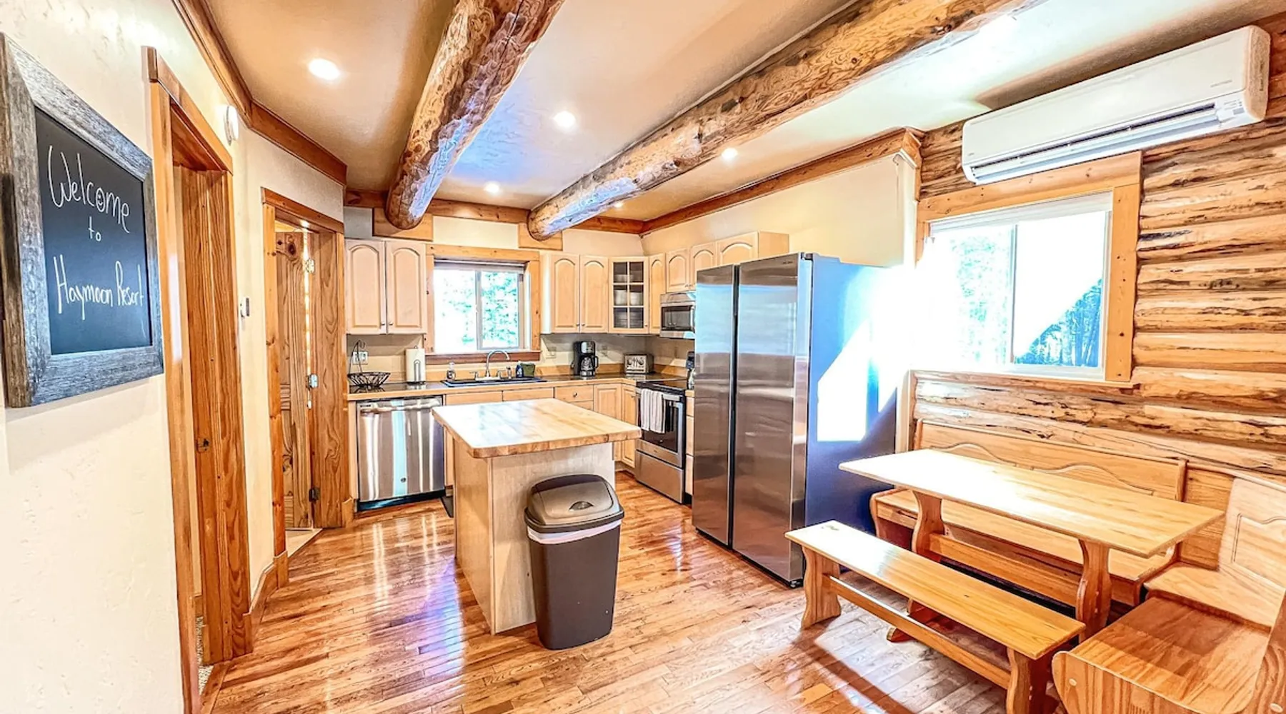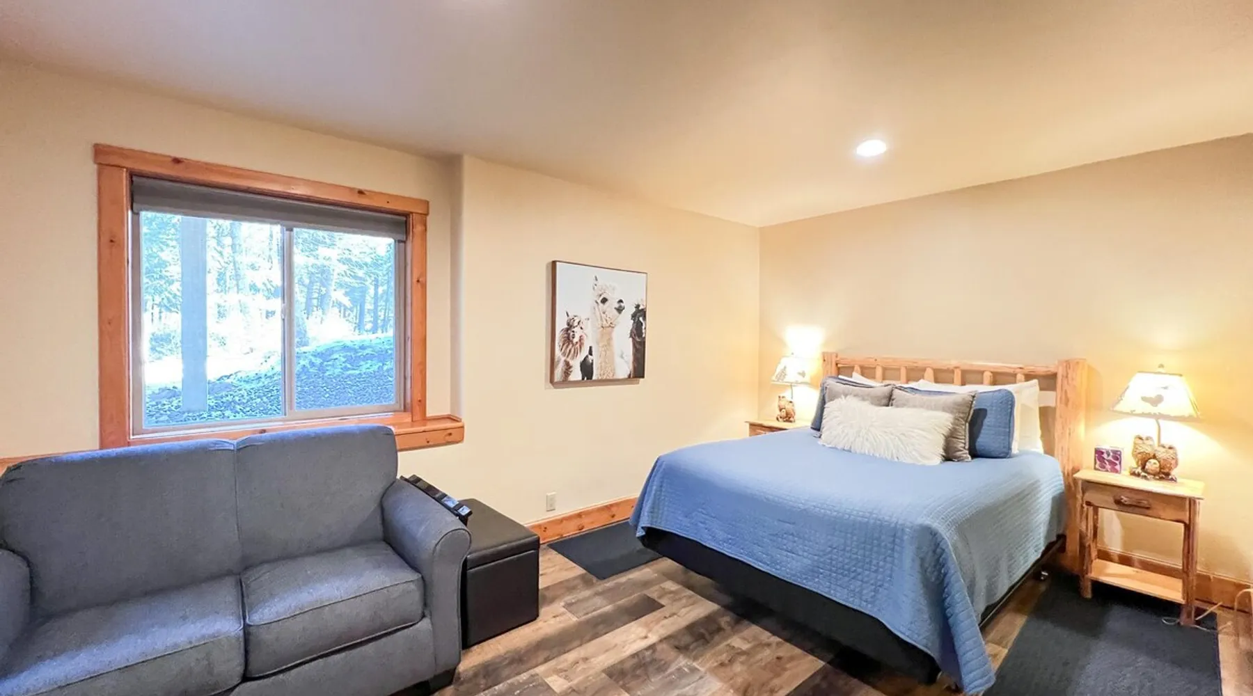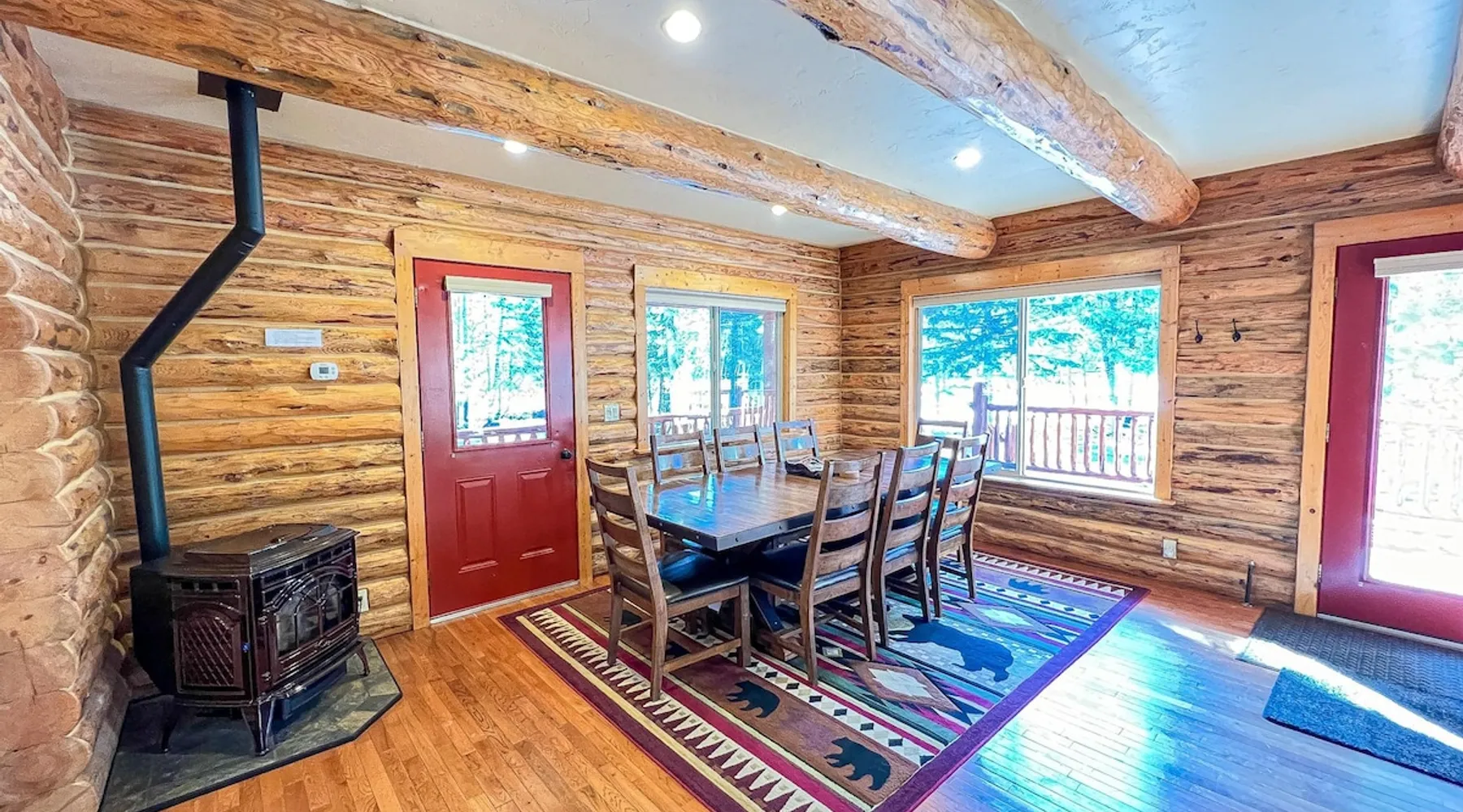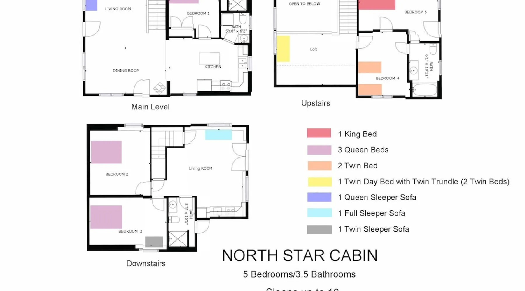 The North Star Cabin feels like a cabin in the woods, yet is conveniently located close to town, ski resort, and everything the valley has to offer! Fireplace (pellet stove), jetted tub, and well stocked kitchen. Perfect holiday getaway! The space This cabin is part of the beautiful Haymoon Resort. With 2 ponds and 15 acres of incredibly landscaped lawn, pasture, garden, and wooded areas, the property is absolutely gorgeous. There are several lodging options on the resort, however each one is private enough that you don't feel like you are sharing the space with other people. They are all close enough though, that if you have a large group that wants to spread out, you are all on the same property! All of our cabins are clean, cozy, and well stocked. You will feel at home the moment you walk in. The property is large with lots of room to play outside in both summer and winter! One of the biggest comments that we get (and we completely agree!) is that our property is in the perfect location. We are centered between Whitefish, Kalispell, and Columbia Falls. The biggest question we get in Winter is "how far away are you from the ski hill?" We are only about a 20 minute drive from the parking for the lifts at Whitefish Mountain Resort. It is super convenient to stop in Whitefish for breakfast, dinner, the grocery store, or for rentals on your way up and down the mountain. Lots of people think being on the Mountain is the best place to be, however it can get busy and loud up there and it is sometimes less convenient because you still have to come down the mountain into Whitefish if you want to head to the grocery store or head out to a restaurant for a meal. We are season pass holders ourselves and pop up to the mountain from here for a quick run all the time. Another convenient option is the SNOW bus which will pick you up and take you up the mountain! The closest pickup is Whitefish Mountain Mall (by the Mcdonalds) which is less than a 10 minute drive. Every group seems to have a person or two that wants to ski every single day, but the rest of the group wants to do something else. Maybe they Snowmobiling, Dog Sledding, cross country skiing, sledding, ice skating, head up to Glacier National Park for a bit, shopping, or just relax at the cabin by the fire. The Flathead Valley has something for everyone! This beautiful property is located 10 minutes from Glacier International Airport, 5-10 minutes from local dining establishments, 10 minutes from Costco, grocery stores and other big box stores for your convenience, 10 minutes from downtown Whitefish and 10-15 minutes to Kalispell. The entrance to Glacier National Park is only a 30 minute drive. And from the Resort to the ski lifts at Whitefish Mountain Resort takes about 20 minutes. There are many golf courses in a 10 mile radius from the property. To name a few: - Whitefish Lake Golf Club - Iron Horse Golf Club - Meadow Lake Golf Course - Northern Pines Golf Club - Village Greens Golf Course - Buffalo Hill Golf Club We are also only located 10 minutes from the Majestic Arena and 15 minutes from Rebecca Farm. As you can see, there is so much to do within a 10 minute drive from our beautiful location! This cabin is a large 5 bedroom 3.5 bathroom luxury cabin that is beautifully landscaped. Split into 3 levels, this cabin has 2 kitchens and two living spaces. The main level boasts a large open concept kitchen with 4 seater corner booth and a 6 person dining room table with expandable leaf. Kitchen area flows easily into the living space equipped with a 55" flat screen TV. Enjoy sitting on the large front porch with pond view and plenty of lawn to play on. For added convenience, there is a kitchen located on the lower level as well as additional dining seating. Both kitchens are fully stocked with plates, utensils, and cookware for your cooking needs. The lower kitchen is equipped with a microwave, stovetop, and refrigerator. The upstairs kitchen is equipped with a microwave, stovetop, and refrigerator, as well as an oven and dishwasher for your convenience. Bedrooms/Bathrooms: Main level - 1 queen bedroom with attached 3/4 bathroom - laundry room with washer/dryer and 1/2 bathroom - 1 queen sleeper sofa in living room Upstairs - Master bedroom with King bed and attached full bathroom - Bedroom with 2 twin beds (not bunk) and attached full bathroom shared with King room - Loft with twin day bed and twin trundle. Downstairs - 1 queen room with 49" TV - 1 queen room with twin sleeper pull out couch - 1 full sized sleeper pull out couch in living room - 1 3/4 bathroom