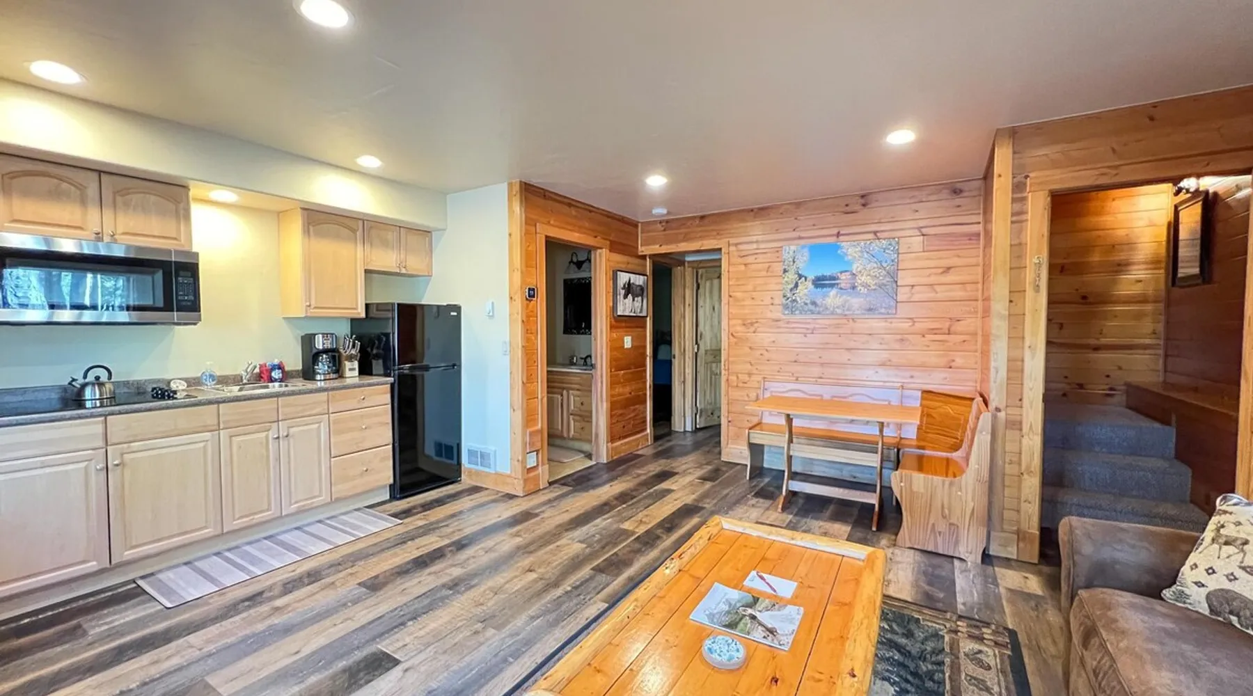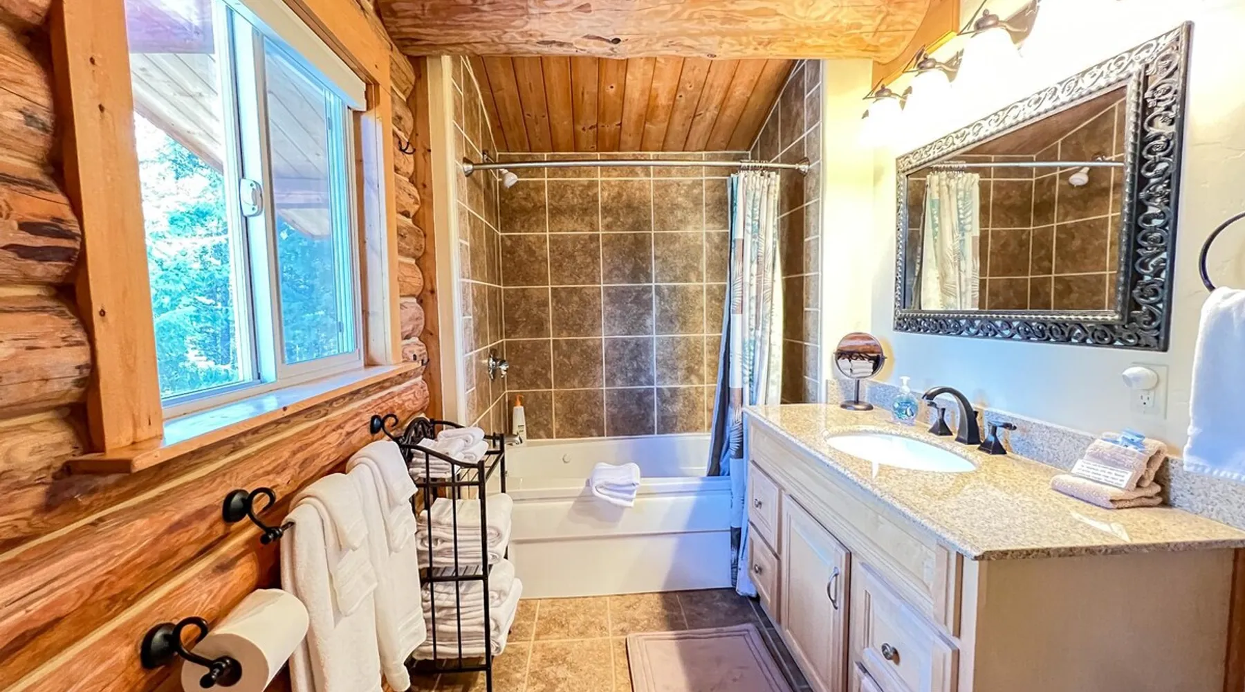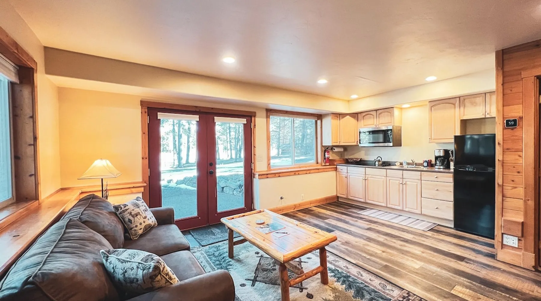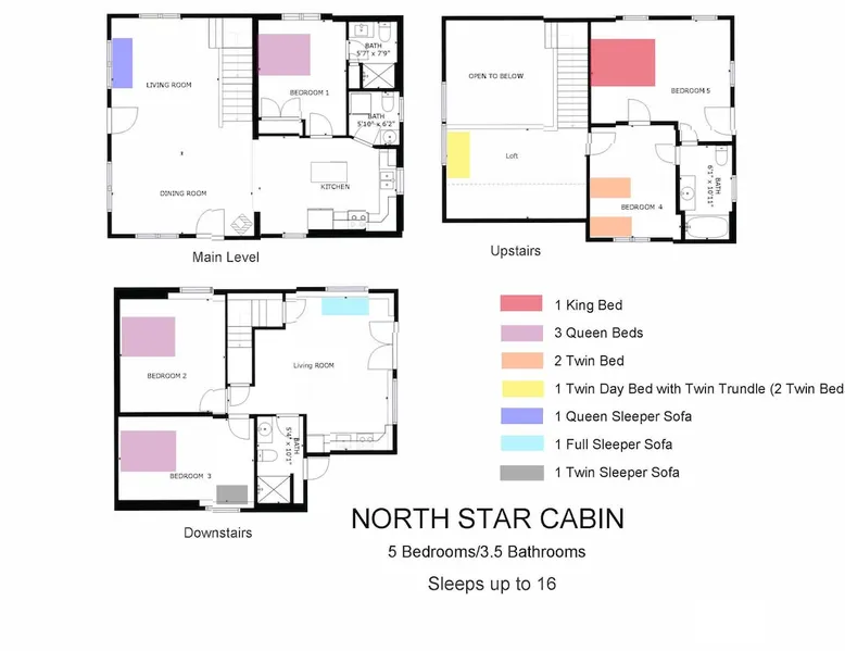 The North Star Cabin feels like a cabin in the woods, yet is conveniently located close to town, ski resort, and everything the valley has to offer! Fireplace (pellet stove), jetted tub, and well stocked kitchen. Perfect holiday getaway! The space This cabin is part of the beautiful Haymoon Resort. With 2 ponds and 15 acres of incredibly landscaped lawn, pasture, garden, and wooded areas, the property is absolutely gorgeous. There are several lodging options on the resort, however each one is private enough that you don't feel like you are sharing the space with other people. They are all close enough though, that if you have a large group that wants to spread out, you are all on the same property! All of our cabins are clean, cozy, and well stocked. You will feel at home the moment you walk in. The property is large with lots of room to play outside in both summer and winter! One of the biggest comments that we get (and we completely agree!) is that our property is in the perfect location. We are centered between Whitefish, Kalispell, and Columbia Falls. The biggest question we get in Winter is "how far away are you from the ski hill?" We are only about a 20 minute drive from the parking for the lifts at Whitefish Mountain Resort. It is super convenient to stop in Whitefish for breakfast, dinner, the grocery store, or for rentals on your way up and down the mountain. Lots of people think being on the Mountain is the best place to be, however it can get busy and loud up there and it is sometimes less convenient because you still have to come down the mountain into Whitefish if you want to head to the grocery store or head out to a restaurant for a meal. We are season pass holders ourselves and pop up to the mountain from here for a quick run all the time. Another convenient option is the SNOW bus which will pick you up and take you up the mountain! The closest pickup is Whitefish Mountain Mall (by the Mcdonalds) which is less than a 10 minute drive. Every group seems to have a person or two that wants to ski every single day, but the rest of the group wants to do something else. Maybe they Snowmobiling, Dog Sledding, cross country skiing, sledding, ice skating, head up to Glacier National Park for a bit, shopping, or just relax at the cabin by the fire. The Flathead Valley has something for everyone! This beautiful property is located 10 minutes from Glacier International Airport, 5-10 minutes from local dining establishments, 10 minutes from Costco, grocery stores and other big box stores for your convenience, 10 minutes from downtown Whitefish and 10-15 minutes to Kalispell. The entrance to Glacier National Park is only a 30 minute drive. And from the Resort to the ski lifts at Whitefish Mountain Resort takes about 20 minutes. There are many golf courses in a 10 mile radius from the property. To name a few: - Whitefish Lake Golf Club - Iron Horse Golf Club - Meadow Lake Golf Course - Northern Pines Golf Club - Village Greens Golf Course - Buffalo Hill Golf Club We are also only located 10 minutes from the Majestic Arena and 15 minutes from Rebecca Farm. As you can see, there is so much to do within a 10 minute drive from our beautiful location! This cabin is a large 5 bedroom 3.5 bathroom luxury cabin that is beautifully landscaped. Split into 3 levels, this cabin has 2 kitchens and two living spaces. The main level boasts a large open concept kitchen with 4 seater corner booth and a 6 person dining room table with expandable leaf. Kitchen area flows easily into the living space equipped with a 55" flat screen TV. Enjoy sitting on the large front porch with pond view and plenty of lawn to play on. For added convenience, there is a kitchen located on the lower level as well as additional dining seating. Both kitchens are fully stocked with plates, utensils, and cookware for your cooking needs. The lower kitchen is equipped with a microwave, stovetop, and refrigerator. The upstairs kitchen is equipped with a microwave, stovetop, and refrigerator, as well as an oven and dishwasher for your convenience. Bedrooms/Bathrooms: Main level - 1 queen bedroom with attached 3/4 bathroom - laundry room with washer/dryer and 1/2 bathroom - 1 queen sleeper sofa in living room Upstairs - Master bedroom with King bed and attached full bathroom - Bedroom with 2 twin beds (not bunk) and attached full bathroom shared with King room - Loft with twin day bed and twin trundle. Downstairs - 1 queen room with 49" TV - 1 queen room with twin sleeper pull out couch - 1 full sized sleeper pull out couch in living room - 1 3/4 bathroom
