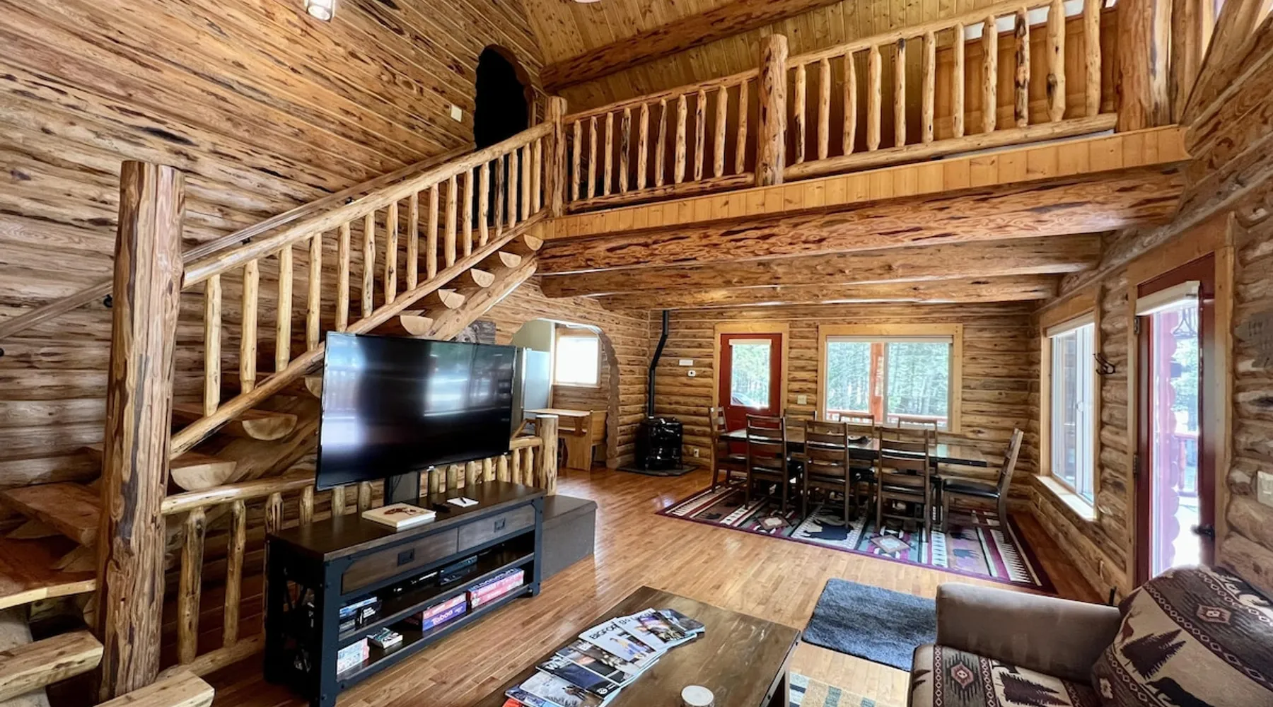 Log cabin with fireplace, minutes from skiing, snowmobiling, xc ski, and more!