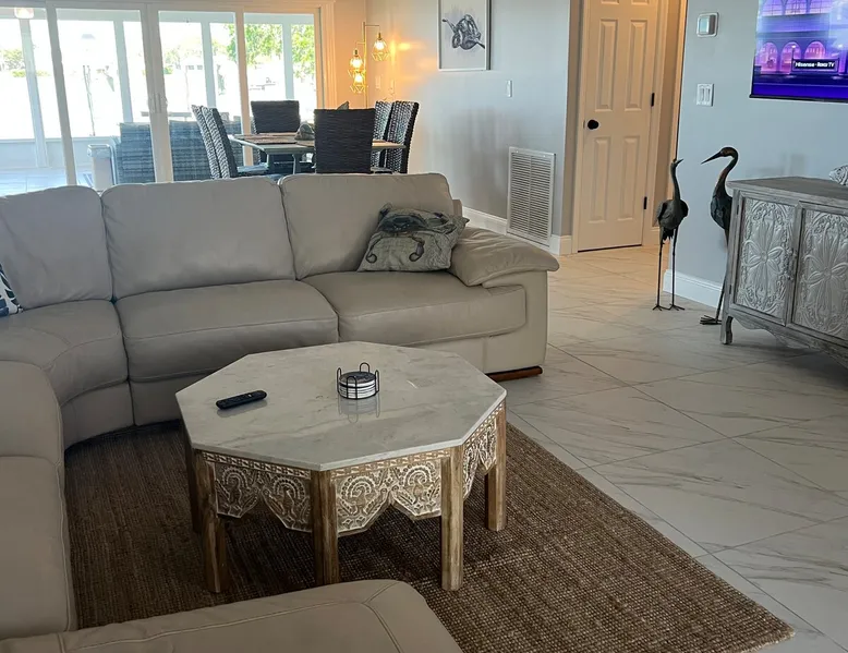 Coastal Charm directly on King's Bay with a view of Banana Island. Manatees, Dolphins & Mullet are frequently spotted from the backyard. The Plantation Resort is right around the corner and there is a boat ramp less than 3 miles away. 4 Kayaks, 8’ x 20’ floating dock; and head dock available for use during your stay (boat lift not available) The house has been fully remodeled since Hurricane Idalia & Helene with a new AC unit, furniture, roof, flooring, bathroom & kitchen The space Master bedroom: King Size bed, tv and a private full bathroom. Second bedroom: Queen size bed, tv, and entrance into the roomy 2nd bathroom. Third beroom: Queen size bed, tv, door to the carport and kitchen (Washer & Dryer is in the third bedroom) Guest access Access to the full house, dock (minus the boat lift), front & backyard Other things to note Close to the fort island beach, hiking, three sisters springs and the gulf