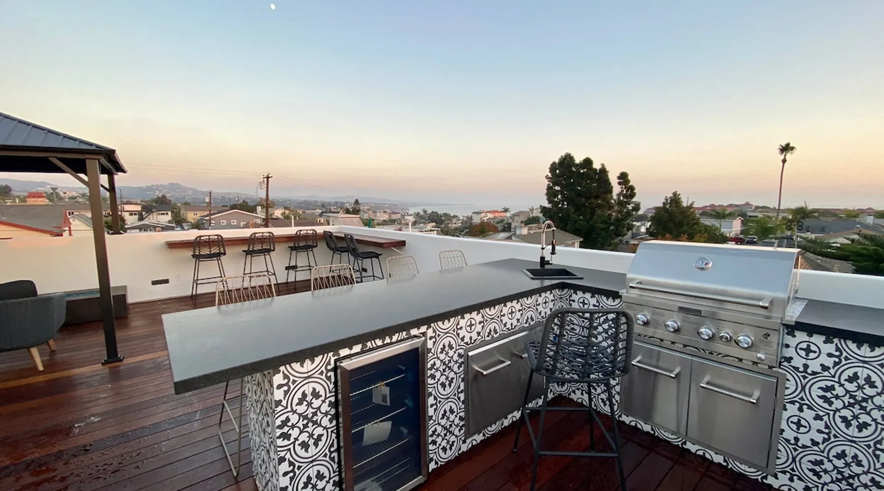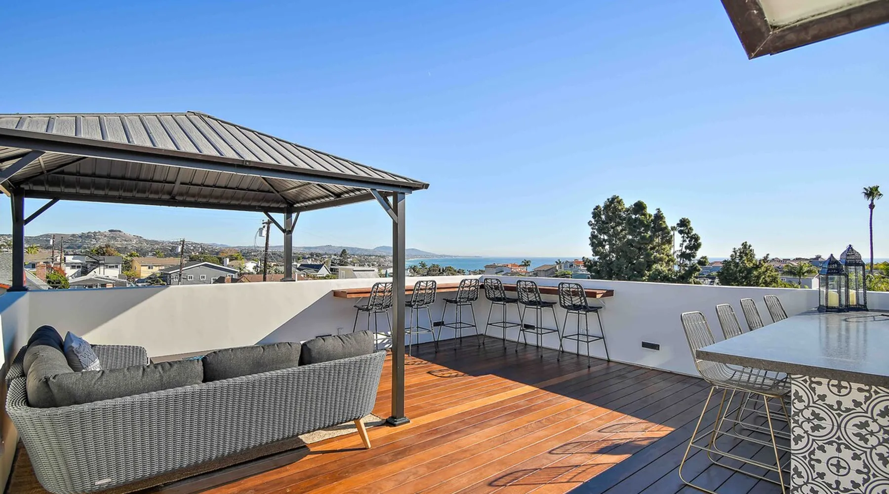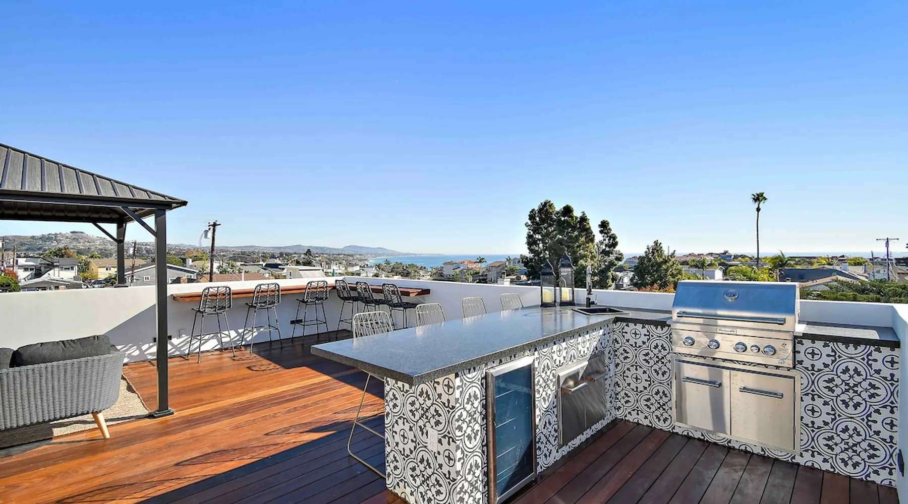 Welcome to our beautifully remodeled tri-level beach home, located in the iconic Lantern District. Designed for both comfort and style, this residence features a spacious open-concept living area with modern appliances. The true gem is the expansive rooftop deck, where you can relax by the fire pit and soak in panoramic ocean views. Just a mile from the scenic Doheny Beach, our home offers the perfect coastal escape, within easy walking distance to the sand and surf. The space Discover this thoughtfully designed tri-level home, where every detail has been carefully considered. While the bedrooms are cozy, they ensure a peaceful night’s sleep. The main living area upstairs features a rare open-concept layout, perfect for relaxation and entertaining. Each level boasts its own private balcony, culminating in a stunning rooftop deck with sweeping ocean views and a beautifully appointed space for unwinding. Guest access You'll have access to the entire property, including the gym and all the amenities mentioned. Gardener has access to the front and back yard for maintenance and the laundry service has access to the garage only when dropping fresh linens off. Other things to note One car garage available for parking. Based on the car, he may be able to fit the car in the driveway as well. Street parking is available first come first serve!