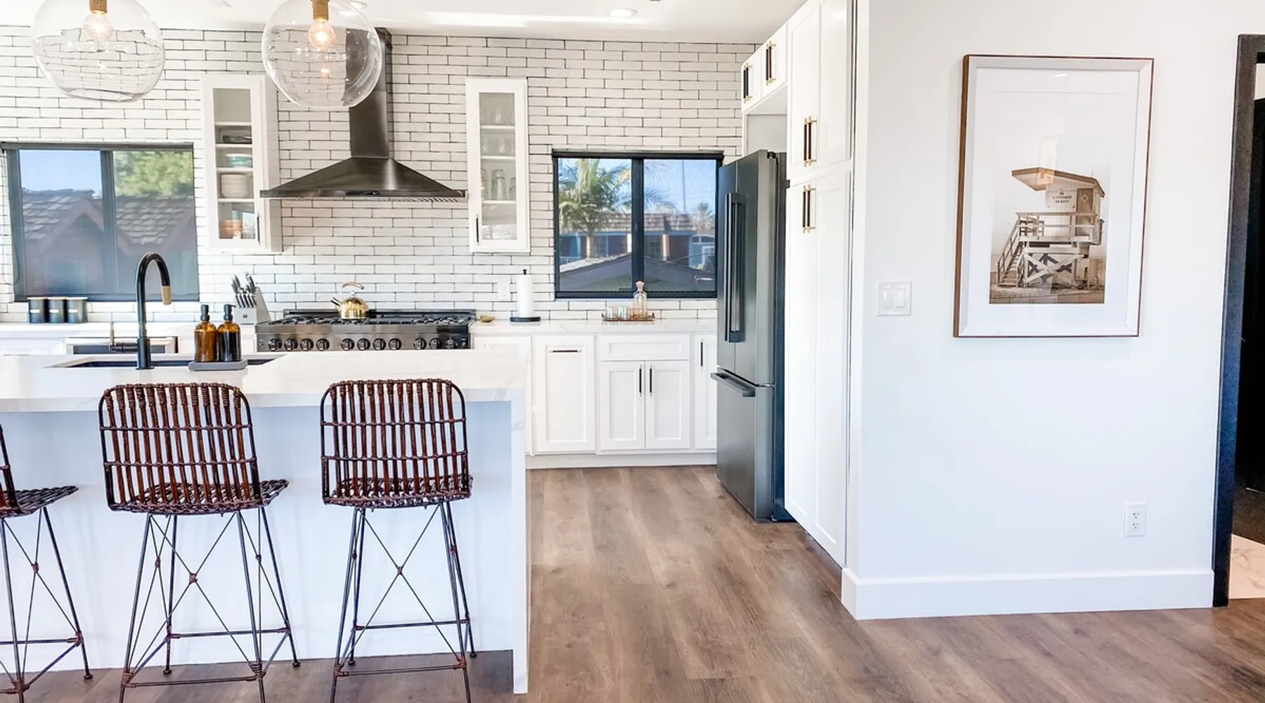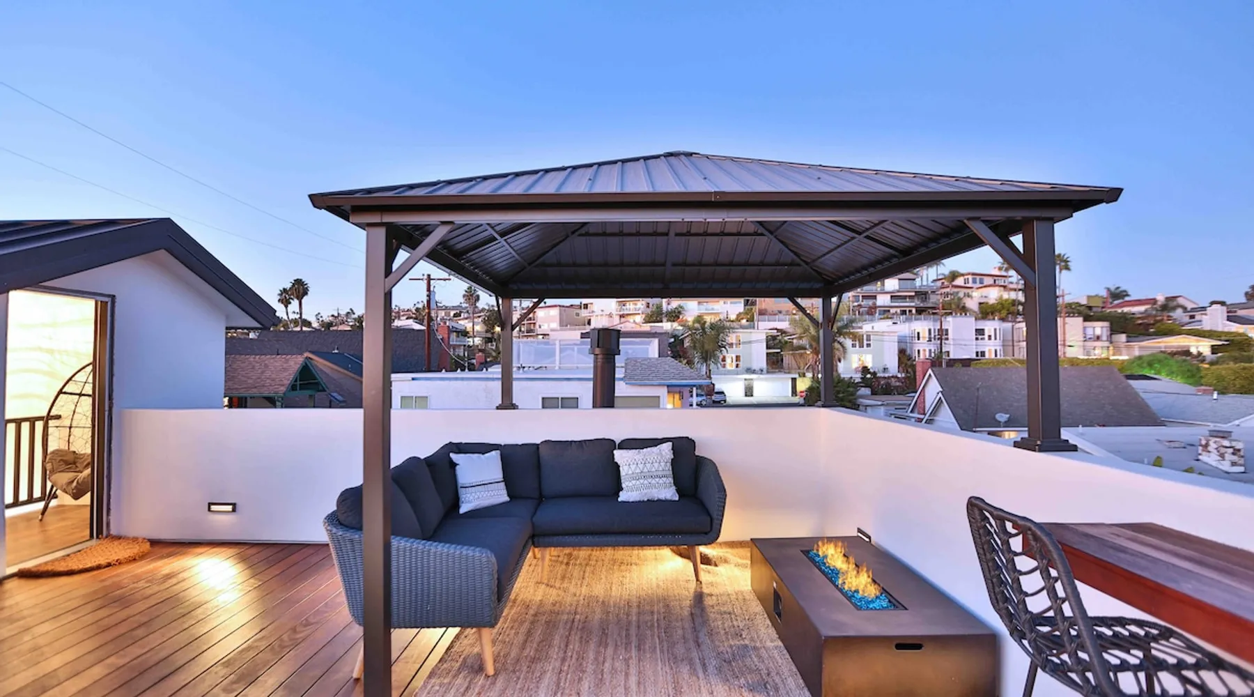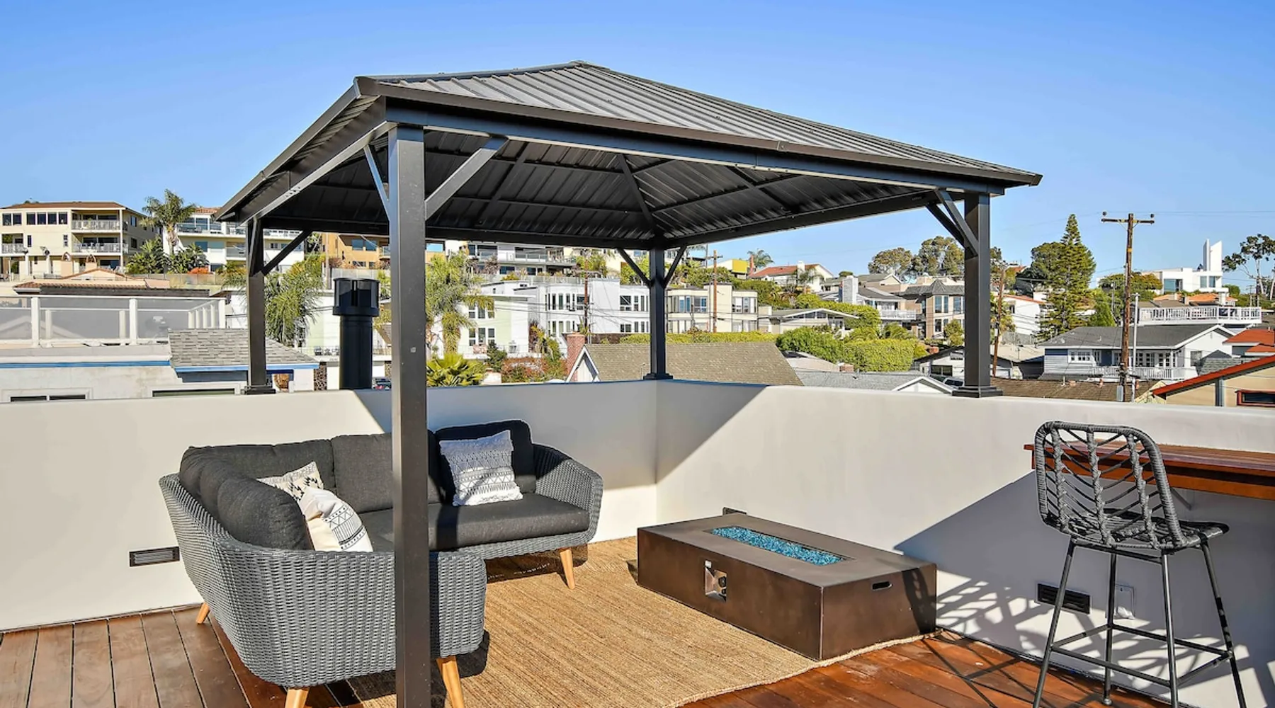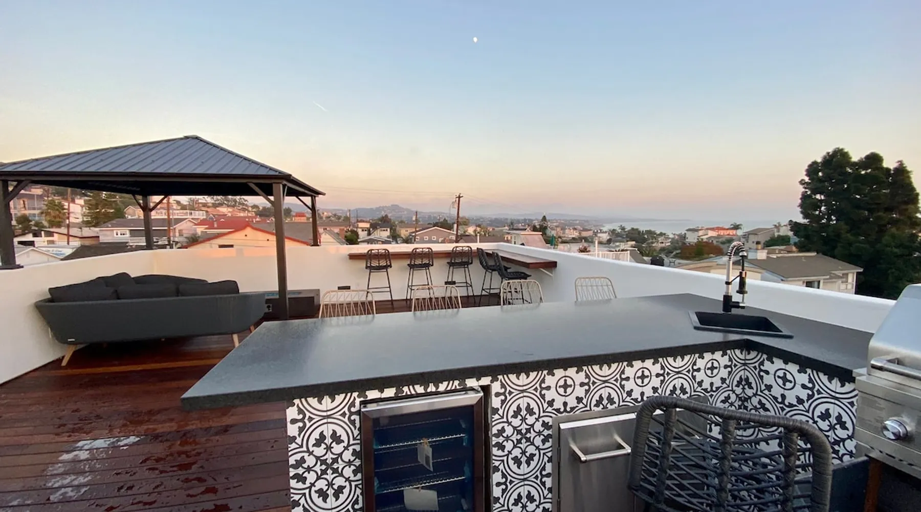Welcome to our beautifully remodeled tri-level beach home, located in the iconic Lantern District. Designed for both comfort and style, this residence features a spacious open-concept living area with modern appliances. The true gem is the expansive rooftop deck, where you can relax by the fire pit and soak in panoramic ocean views. Just a mile from the scenic Doheny Beach, our home offers the perfect coastal escape, within easy walking distance to the sand and surf. The space Discover this thoughtfully designed tri-level home, where every detail has been carefully considered. While the bedrooms are cozy, they ensure a peaceful night’s sleep. The main living area upstairs features a rare open-concept layout, perfect for relaxation and entertaining. Each level boasts its own private balcony, culminating in a stunning rooftop deck with sweeping ocean views and a beautifully appointed space for unwinding. Guest access You'll have access to the entire property, including the gym and all the amenities mentioned. Gardener has access to the front and back yard for maintenance and the laundry service has access to the garage only when dropping fresh linens off. Other things to note One car garage available for parking. Based on the car, he may be able to fit the car in the driveway as well. Street parking is available first come first serve!
