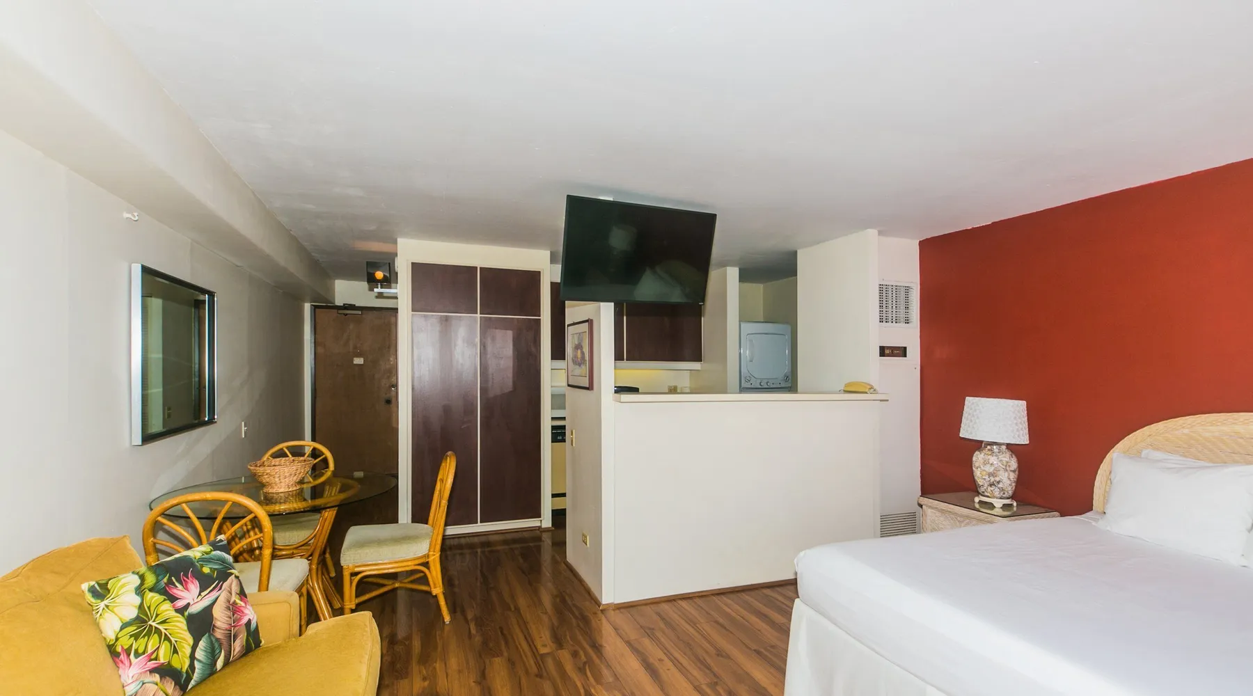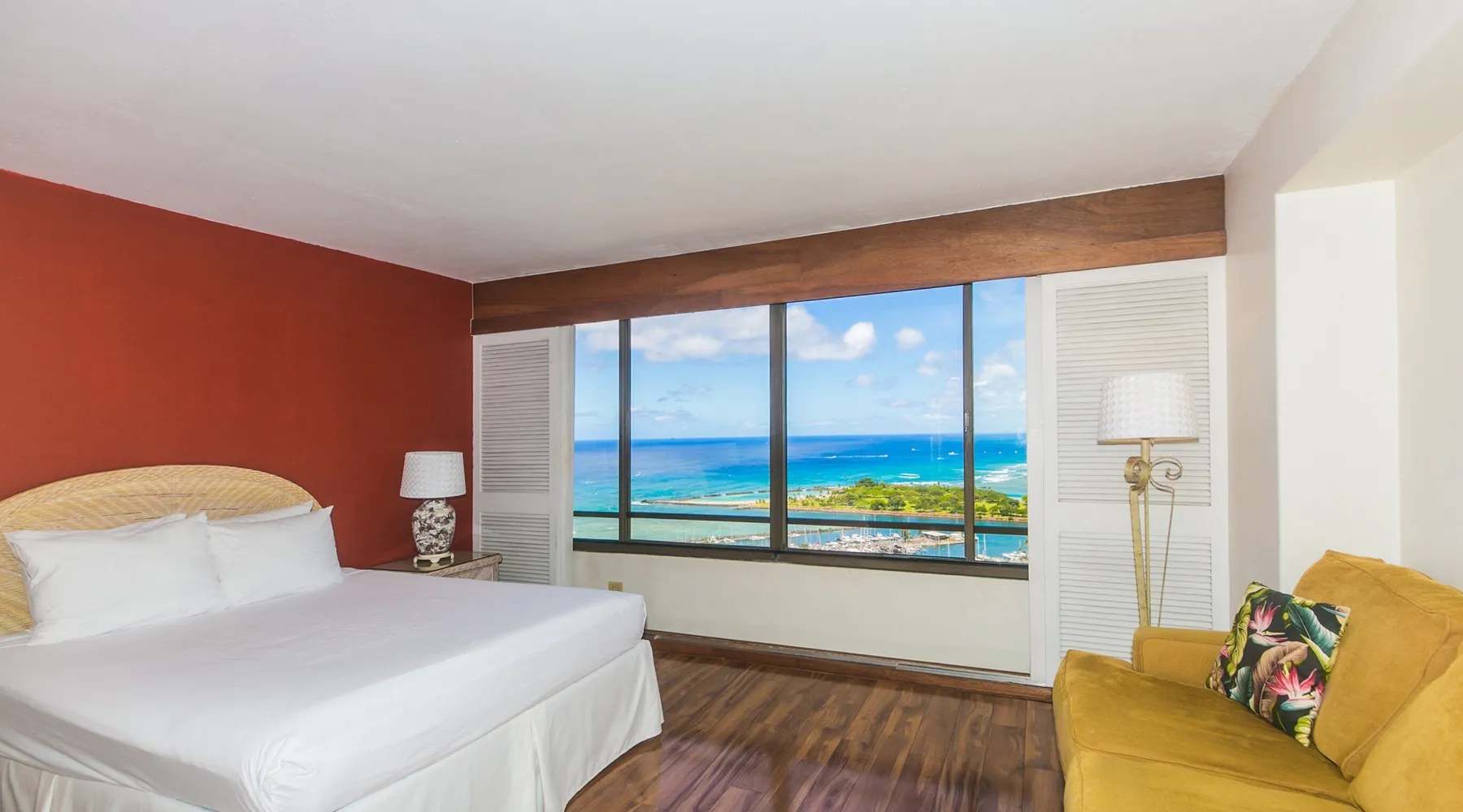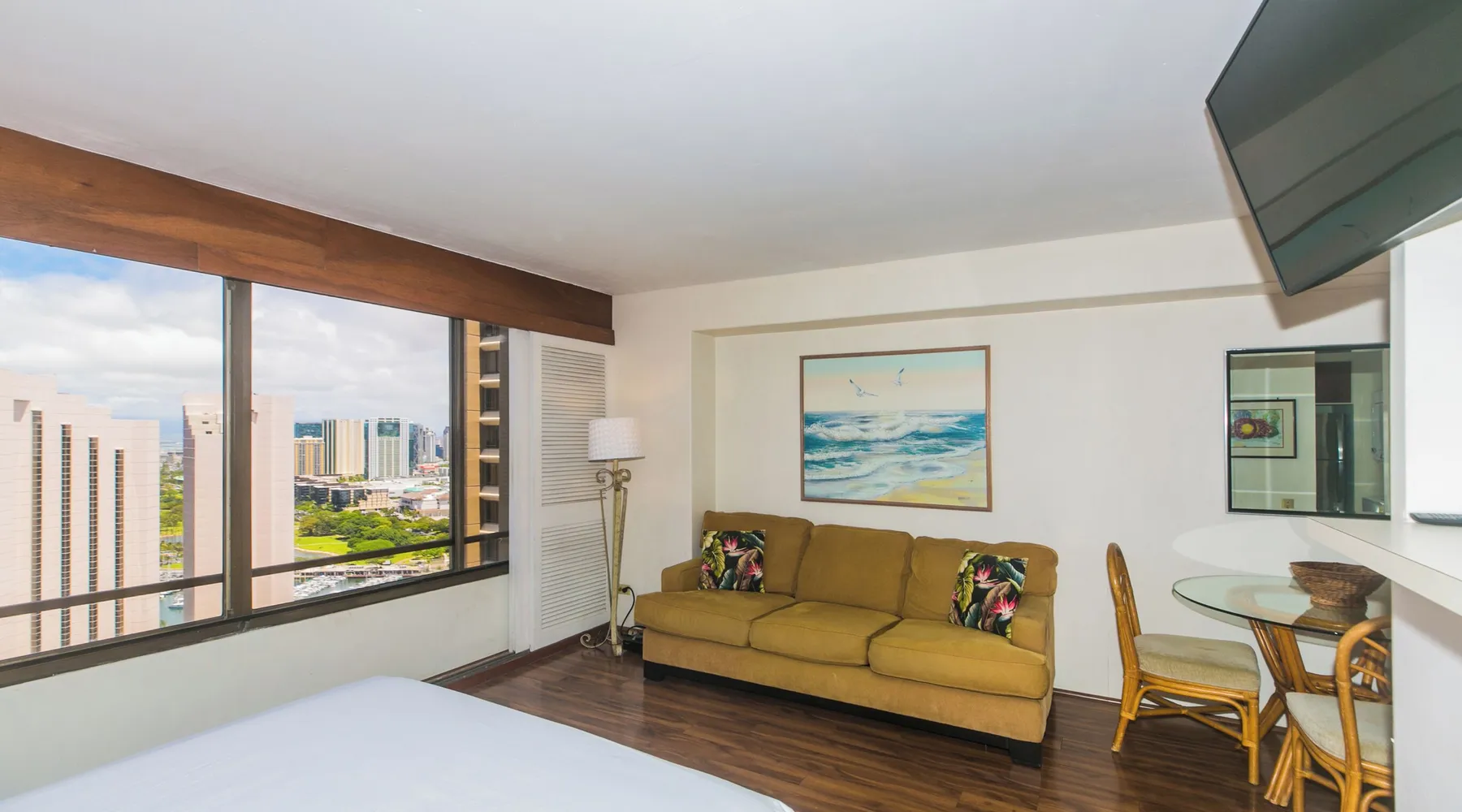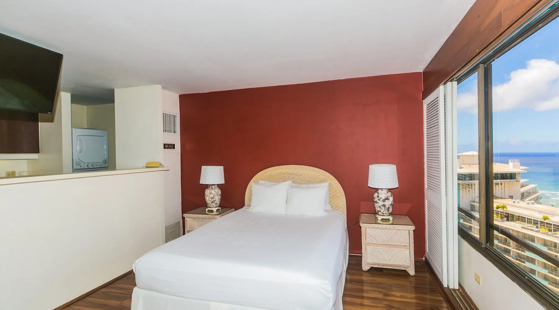 Enjoy the best of city living with scenic ocean views in this inviting studio on the 37th floor of Discovery Bay. Just steps from the beach, this spacious studio offers both comfort and convenience in the heart of Honolulu. Large windows showcase panoramic views of the city and ocean, creating a serene backdrop for your stay. Inside, you'll find a thoughtfully designed open layout with a comfortable seating area, a well-equipped kitchen, and generous storage space. Ideally situated near top attractions, dining, and shopping, this studio is the perfect home base for your island adventure. KITCHEN - Full Size Refrigerator - Cooktop/Oven - Dishwasher - Microwave - Washer/Dryer - Dinnerware, Glassware, Silverware, Cookware, Coffee Maker, Rice Cooker, Blender, Kettle Provided LIVING AREA/BEDROOM - Flat screen Smart TV - Sofa - Dining table seating for 3 - Queen Bed - Central AC BATHROOM - Tub Shower - Toilet - Hair Dryer 1-assigned parking stall included with the rental. AMENITIES Your stay includes cable TV, high-speed internet with password-protected WiFi, and local phone service. We provide a starter kit of essentials, which includes liquid dish soap, a dishwashing packet, a kitchen sponge, trash liners, a roll of paper towels, coffee, condiment packets, travel-size shampoo, conditioner, body lotion, soap, facial tissue, and an extra roll of toilet paper. Please note we do not replenish these items once the starter set is depleted. Each bathroom is equipped with 4 sets of towels, and blankets can be found in each bedroom closet. We are delighted to provide beach towels for your stay. Please ensure they are returned to the room at check-out. If they are not, a $10 fee per towel may be applied to your account. Housekeeping services available for an additional fee. BUILDING AMENITIES The property consists of two 40-story towers, connected by an 11th-floor recreation deck. The deck features an outdoor swimming pool, jacuzzi, fitness center, and sunbathing area. A BBQ area is available on the 5th floor. The building offers secured entry and 24/7 security for added safety and convenience. Marina Hawaii Vacations has been providing fully furnished condo rentals to travelers since 1965. Book with confidence, as we offer only legal vacation rentals in Waikiki and the surrounding areas. Plus, you'll save when you book directly with us! Please note that the condos are privately owned, and construction or building maintenance may occur during your stay. While owners have no control over external work or noise, construction is typically limited to Monday–Friday from 8:00 AM to 4:30 PM, with no work on weekends or holidays. Most guests experience little to no disruption, as they are often out exploring the island, enjoying the beaches, shopping, or participating in activities. If you have any concerns, please contact a vacation rental specialist with Marina Hawaii Vacations