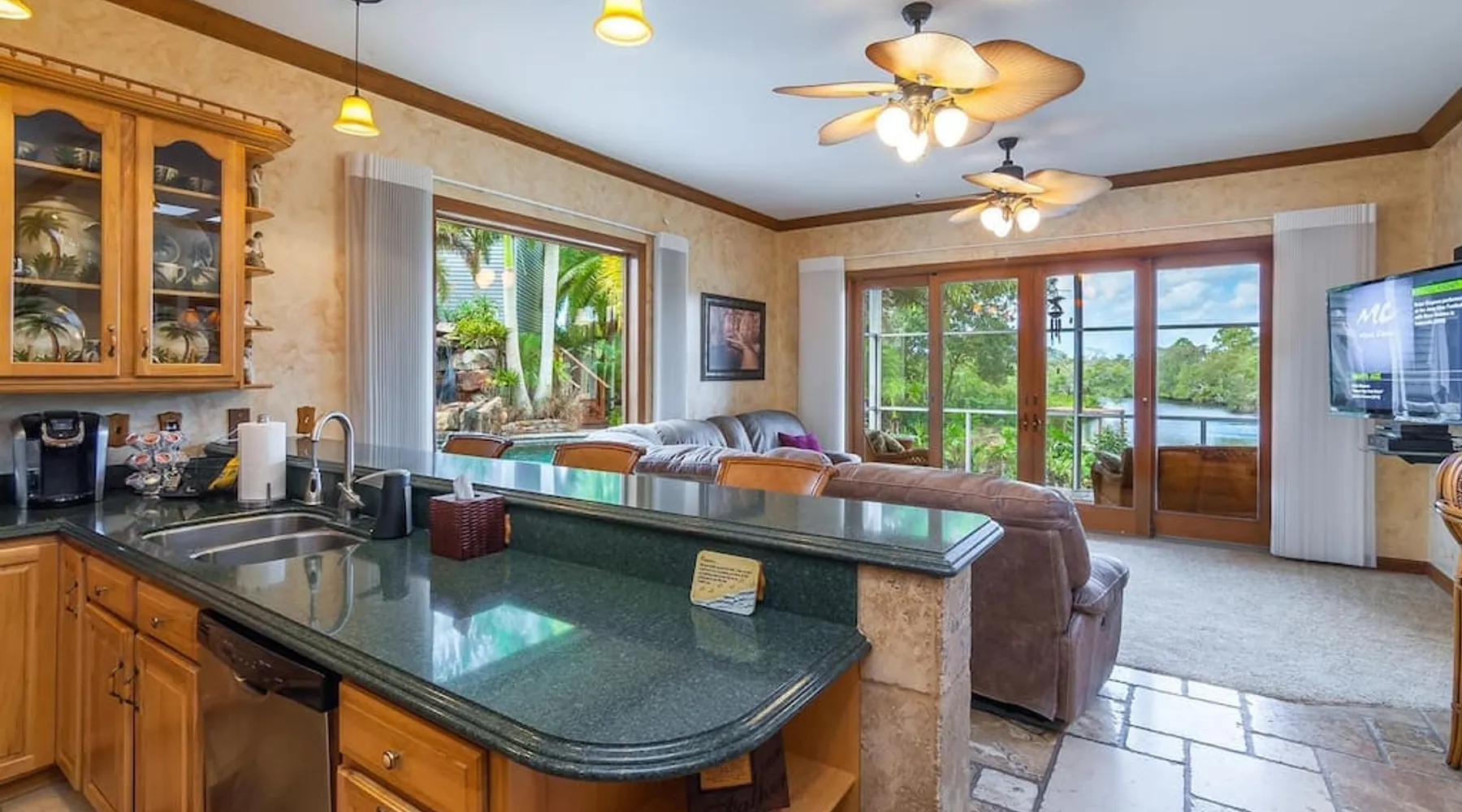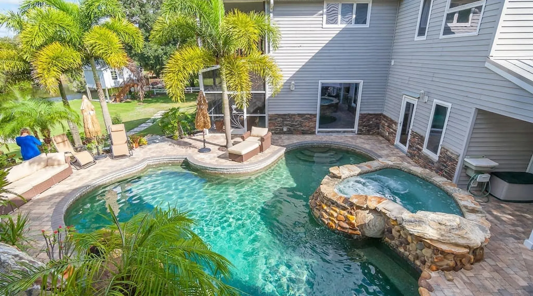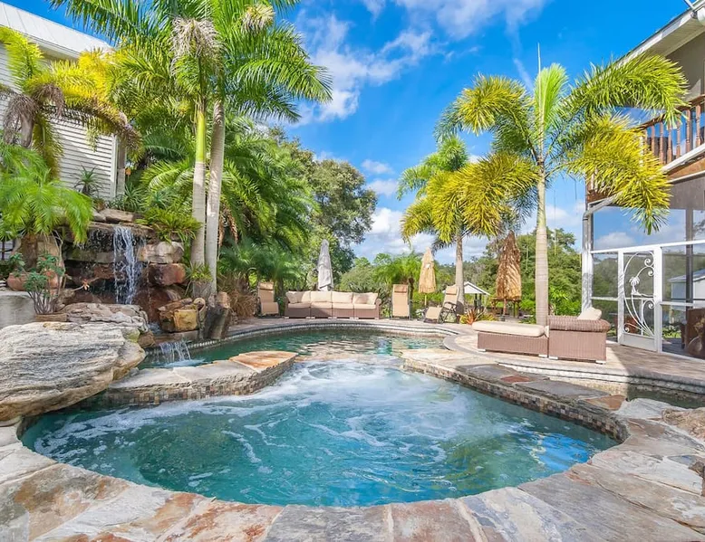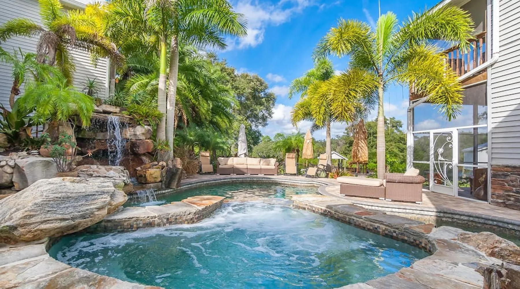 Experience Florida's Ultimate Private Resort at Shangri-La Vacation Rental Home . Discover a tranquil retreat where luxury meets play for guests of all ages. Dive into our lagoon-style pool, unwind in the waterfront backyard, challenge your friends and family in the game house, or enjoy a match on your private pickleball court. Our perfect reviews speak for themselves—reserve your dates today and experience the ultimate getaway! . Special Offer: Book 4 nights and get the 5th night 𝐅𝐑𝐄𝐄! The space ⓕ 𝐒𝐡𝐚𝐧𝐠𝐫𝐢-𝐋𝐚 𝐕𝐚𝐜𝐚𝐭𝐢𝐨𝐧 𝐑𝐞𝐧𝐭𝐚𝐥 𝐇𝐨𝐦𝐞 ⓕ transcends all other vacation rentals in 3 significant ways. 𝟏. 𝐄𝐱𝐜𝐞𝐩𝐭𝐢𝐨𝐧𝐚𝐥 𝐇𝐨𝐬𝐭 𝐄𝐱𝐩𝐞𝐫𝐢𝐞𝐧𝐜𝐞 • I, Coltin, your host, am committed to exceeding your expectations with extraordinary service and communication in every interaction. Having lived at Shangri-La for 20 years, I’m passionate about helping you create amazing memories here, as I have for decades. 𝟐. 𝐒𝐩𝐚𝐜𝐢𝐨𝐮𝐬 𝐚𝐧𝐝 𝐕𝐞𝐫𝐬𝐚𝐭𝐢𝐥𝐞 𝐏𝐫𝐨𝐩𝐞𝐫𝐭𝐲 • 3.5 Acres of Land: Enjoy expansive outdoor space along the Manatee River. • Indoor & Outdoor Spaces: 3,000 sq. ft of outdoor covered space and 7,200 sq. ft of indoor AC space, perfect for large groups and special occasions. • Ample Parking: Parking for 30+ cars and space for a food truck. • Bridal Suite: Adorable bridal suite with stunning river views and magical Manatee River sunsets—over 100 couples have married here! 𝟯. 𝐄𝐧𝐝𝐥𝐞𝐬𝐬 𝐄𝐧𝐭𝐞𝐫𝐭𝐚𝐢𝐧𝐦𝐞𝐧𝐭 𝐚𝐧𝐝 𝐑𝐞𝐥𝐚𝐱𝐚𝐭𝐢𝐨𝐧 • Game House: Includes a shuffleboard table, ping pong table, poker table, movie theater room, 90-inch TV, and surround sound. • Outdoor Amenities: Tropical waterfall, extraordinary pool, private pickleball court, 9 kayaks, 7 paddle boards, large dock with jet-ski access, and more. • Additional Features: Hundreds of board games, chef’s kitchen, billiards room, massage chair, steam room, and more to keep everyone entertained on-site. • Massage chair • Steam room • Furnished dock for sunset views over the Manatee River Check out the floor plans at the end of the photo reel to help with planning sleeping accommodations. 𝐒𝐡𝐚𝐧𝐠𝐫𝐢-𝐋𝐚 𝐕𝐚𝐜𝐚𝐭𝐢𝐨𝐧 𝐑𝐞𝐧𝐭𝐚𝐥 𝐇𝐨𝐦𝐞 and our team are committed to never stop improving. Here are some of the property's greatest qualities that we've curated to provide an exceptional vacation experience for you. 𝐏𝐫𝐨𝐩𝐞𝐫𝐭𝐲 𝐇𝐢𝐠𝐡𝐥𝐢𝐠𝐡𝐭𝐬: • Custom-Built Pool, Hot Tub & Waterfall: Designed by Lucas Lagoons and featured on Insane Pools TV show. Controlled via smartphone app. • Comfortable Sleeping Arrangements: • 10 Bedrooms, 13 Beds • New Sealy Hybrid Mattresses (August 2024) • ADA Compliant Rooms: Including an ADA certified bedroom and full bathroom. • Fully Stocked Kitchen: Equipped for 25 guests with pots, pans, baking sheets, crock pot, plates, cups, and bowls. 𝐌𝐨𝐝𝐞𝐫𝐧 𝐀𝐦𝐞𝐧𝐢𝐭𝐢𝐞𝐬: • Home movie theater • California king-size bed in master bedroom • High-speed internet (2 Gbps) • Netflix and Amazon Video 𝐎𝐮𝐭𝐝𝐨𝐨𝐫 𝐅𝐮𝐧: • Corn hole, ping pong, pool table, poker table, shuffleboard, Tiki huts, Tiki bar, grill, and a huge backyard on the Manatee River. 𝐏𝐞𝐫𝐟𝐞𝐜𝐭 𝐅𝐨𝐫: • Family reunions • Religious celebrations • Retreats • Birthdays • Sports teams and golfers • Celebrities seeking privacy and luxury 𝐁𝐨𝐨𝐤 𝐘𝐨𝐮𝐫 𝐒𝐭𝐚𝐲 𝐓𝐨𝐝𝐚𝐲! Our team at Shangri-La is committed to going the extra mile to provide a world-class vacation experience for you. Whether you're planning a family getaway, a special event, or a retreat, Shangri-La offers everything you need for a memorable stay. Book now to secure your dates and start planning your unforgettable Florida vacation! Here are some local airports and hot spots for you to determine if Shangri-La is an ideal location for your group and other potential plans! 𝐋𝐨𝐜𝐚𝐥 𝐀𝐭𝐭𝐫𝐚𝐜𝐭𝐢𝐨𝐧𝐬: • Golf: 1.7 miles to Waterlefe Golf Club • Beaches: 23 miles to Anna Maria Island Beach, 28 miles to Siesta Key Beach • Airports: 20 miles to Sarasota Airport, 54 miles to Tampa Airport • Cities: 50 miles to Downtown Tampa, 37 miles to Downtown St. Pete • Sports & Shopping: 2.7 miles to UMR Sports (pickleball), 14 miles to UTC Mall • Nearby Amenities: 9.4 miles to Hampton Inn, 6.3 miles to Costco, 3.9 miles to Publix (groceries), 13 miles to Detwilers (farmers market) Guest access Property Layout Check out the floor plans at the end of the photo reel for a visual representation of sleeping arrangements and room locations. 𝐌𝐚𝐢𝐧 𝐡𝐨𝐮𝐬𝐞 𝐮𝐩𝐬𝐭𝐚𝐢𝐫𝐬 Master bedroom 1: California king bed, windows overlooking river, optional bridal suite decorations "Master suite" Master bathroom: 3 shower heads, jacuzzi tub, toilet, bidet, 2 sinks, vanity with 10 ft long mirror Bedroom 2: King bed, balcony overlooking Manatee River. "Beach Room" Bedroom 3: Queen bed, window bench looking into sunrise. "Surf Room" Bathroom 2: Shared by bedrooms 2 & 3. Shower, toilet, 2 sinks. "Jack and Jill" Bedroom 4: Queen bed, massage chair & steam room "Spa Room" Shower 3: Steam room has a shower inside 𝐌𝐚𝐢𝐧 𝐡𝐨𝐮𝐬𝐞 𝐝𝐨𝐰𝐧𝐬𝐭𝐚𝐢𝐫𝐬 Bedroom 5: Queen bed, full private bathroom with ADA certified shower, sink and toilet. "ADA certified room" Bedroom 6: 2 Identical queen beds, car decor, TV, Amazon fire stick. "Route 66 Room" Half bathroom 3: Located downstairs between the kitchen and bedroom 6. Toilet & si
