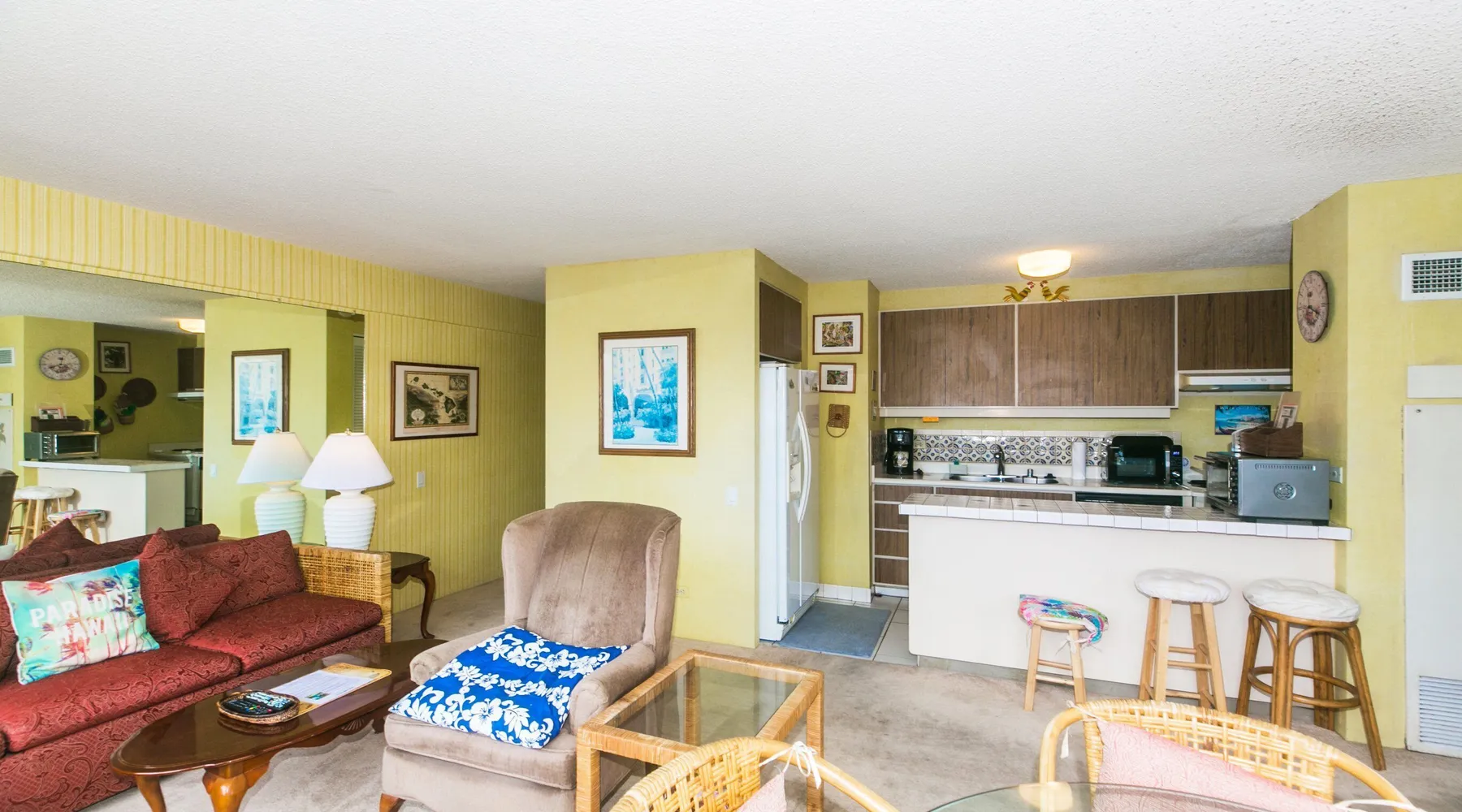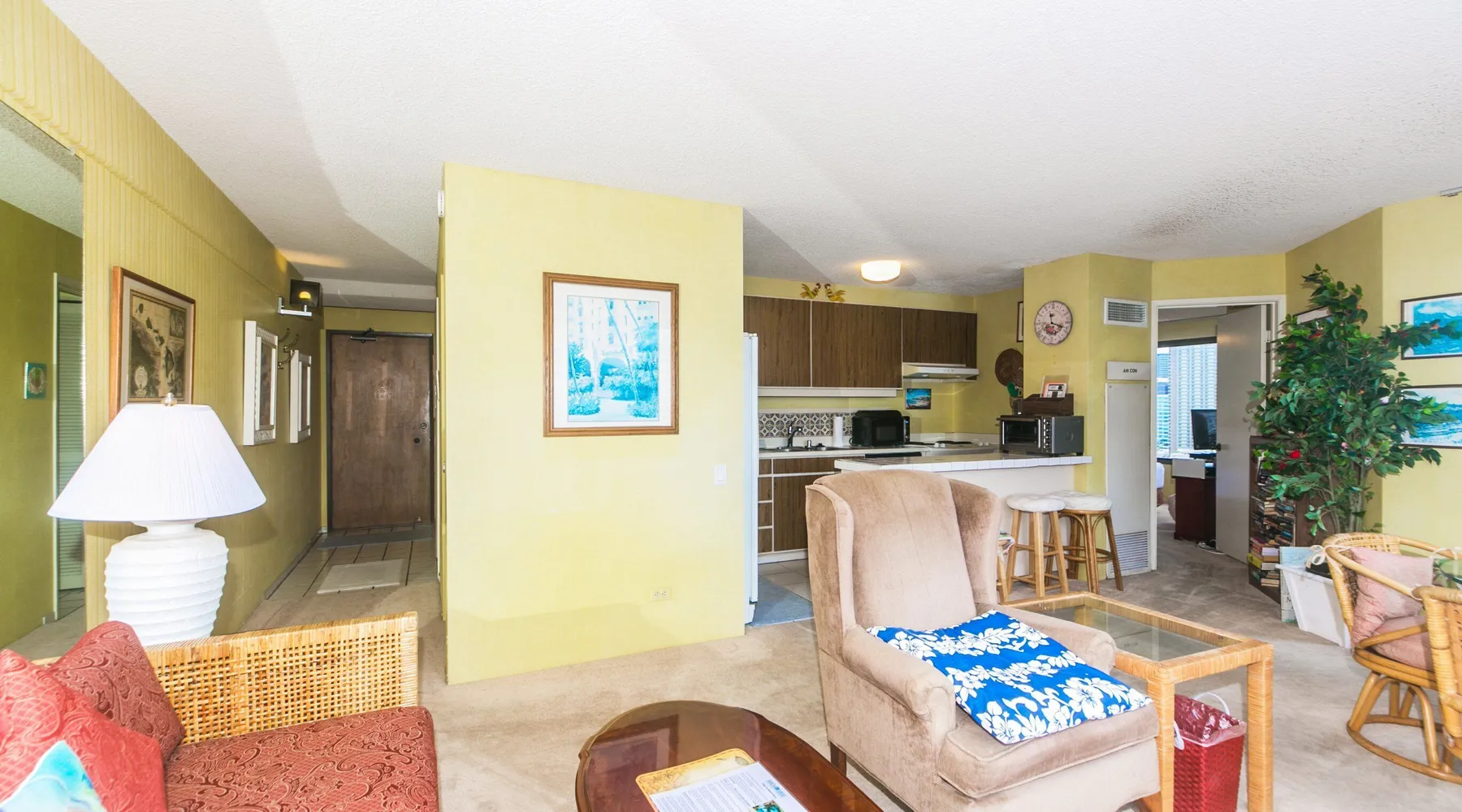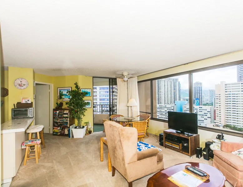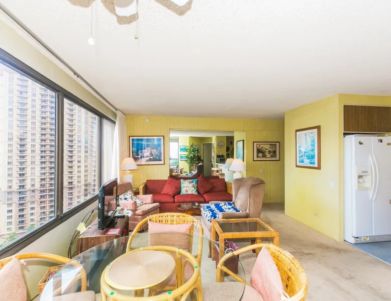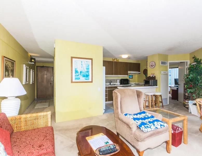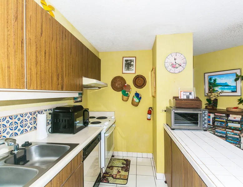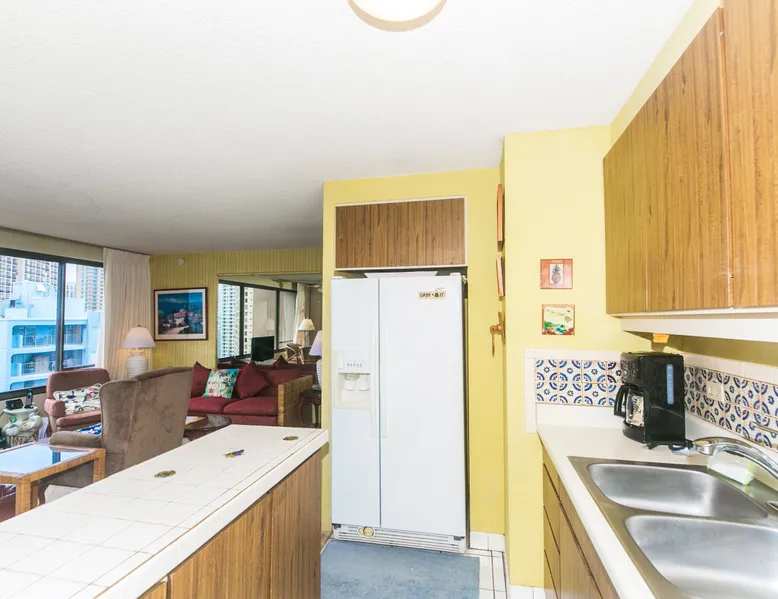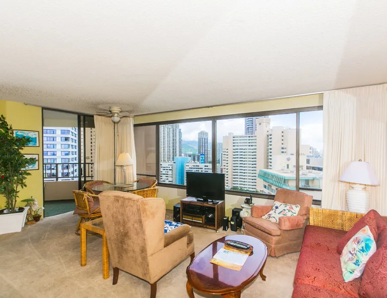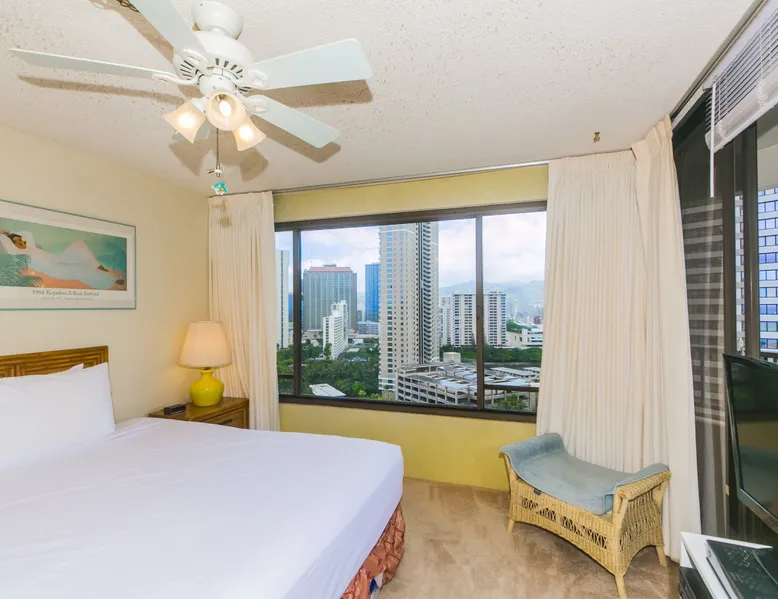 Step into a cozy, vintage-style retreat with all the comforts of home! This spacious 1-bedroom condo offers a full kitchen, a plush king-size bed, and stunning views of the city skyline and majestic mountains. Embrace a touch of nostalgia with its classic décor, creating a warm and inviting atmosphere. Enjoy central A/C, an in-unit washer & dryer, cable TV, free WiFi, and local phone service—all designed for a convenient and comfortable stay. Plus, you'll have your own assigned parking stall for added ease. A delightful escape with retro charm and modern essentials—perfect for your island getaway! AMENITIES Your stay includes cable TV, high-speed internet with password-protected WiFi, and phone service for the USA and Canada. We provide a starter kit of essentials, which includes liquid dish soap, a dishwashing packet, a kitchen sponge, trash liners, a roll of paper towels, coffee, condiment packets, travel-size shampoo, conditioner, body lotion, soap, facial tissue, and an extra roll of toilet paper. Please note we do not replenish these items once the starter set is depleted. Each bathroom is equipped with 4 sets of towels, and blankets can be found in each bedroom closet. We are delighted to provide beach towels for your stay. Please ensure they are returned to the room at check-out. If they are not, a $10 fee per towel may be applied to your account. Housekeeping services available for an additional fee. BUILDING AMENITIES The property consists of two 40-story towers, connected by an 11th-floor recreation deck. The deck features an outdoor swimming pool, jacuzzi, fitness center, and sunbathing area. A BBQ area is available on the 5th floor. The building offers secured entry and 24/7 security for added safety and convenience. Marina Hawaii Vacations has been providing fully furnished condo rentals to travelers since 1965. Book with confidence, as we offer only legal vacation rentals in Waikiki and the surrounding areas. Plus, you'll save when you book directly with us! Please note that the condos are privately owned, and construction or building maintenance may occur during your stay. While owners have no control over external work or noise, construction is typically limited to Monday–Friday from 8:00 AM to 4:30 PM, with no work on weekends or holidays. Most guests experience little to no disruption, as they are often out exploring the island, enjoying the beaches, shopping, or participating in activities. If you have any concerns, please contact a vacation rental specialist with Marina Hawaii Vacations