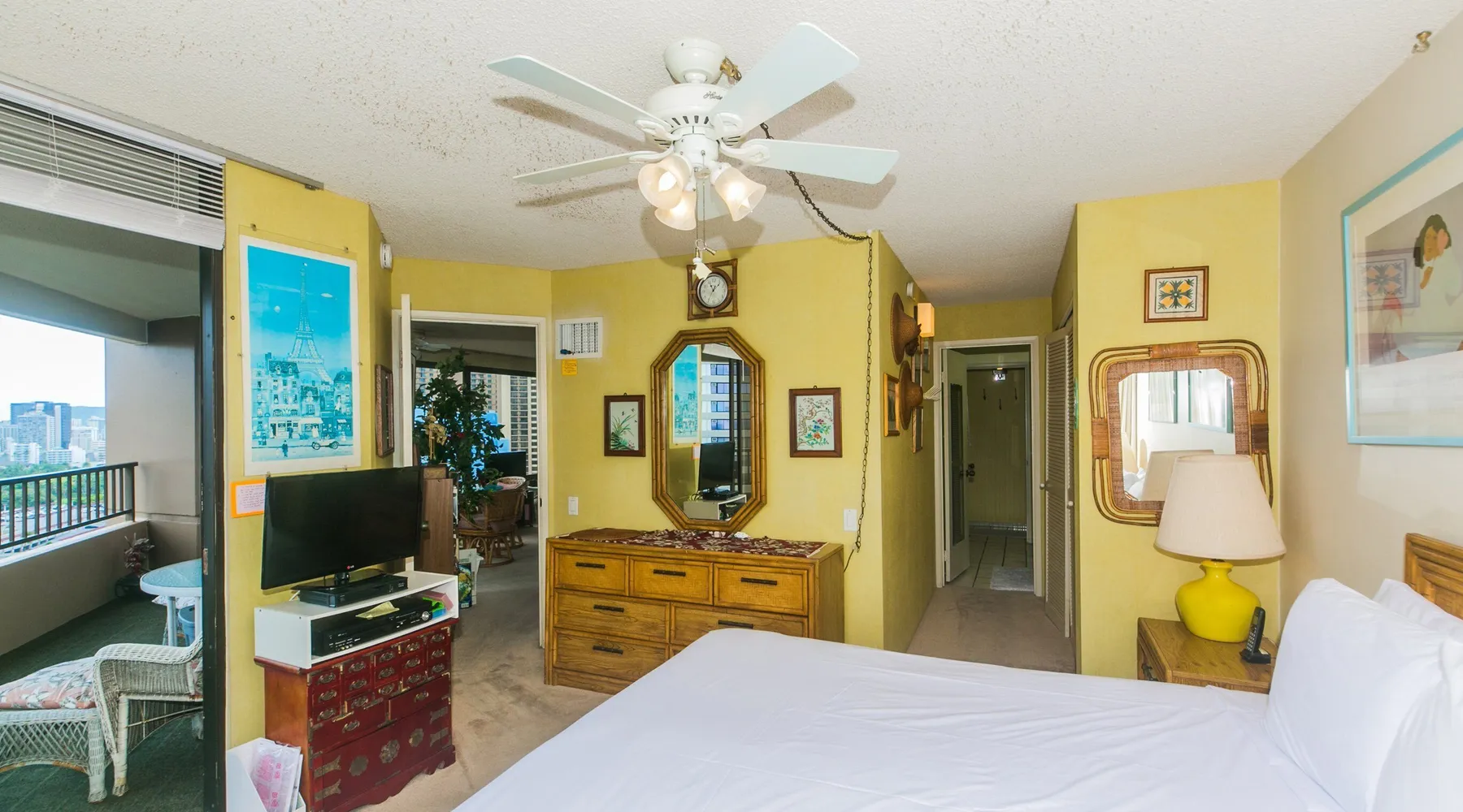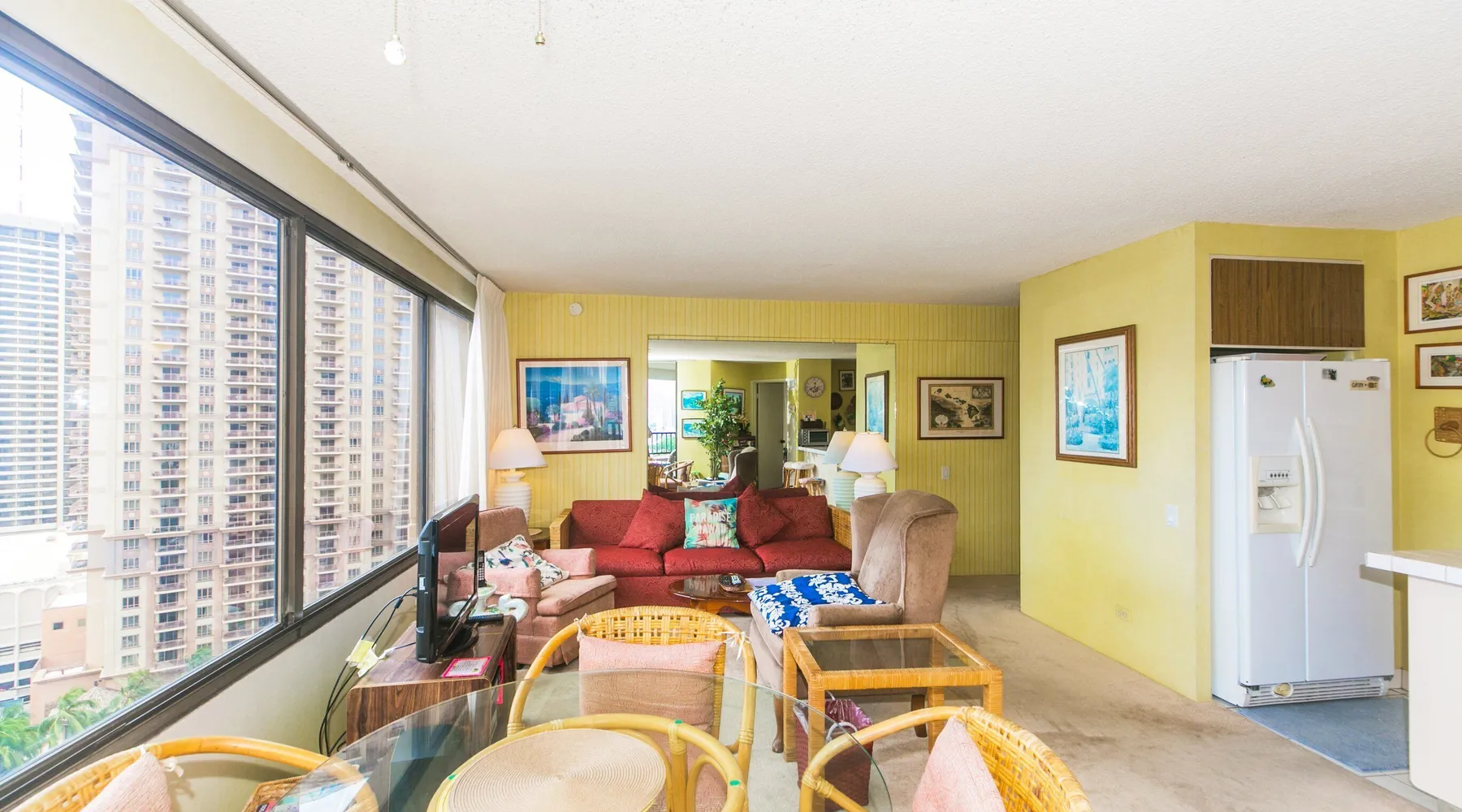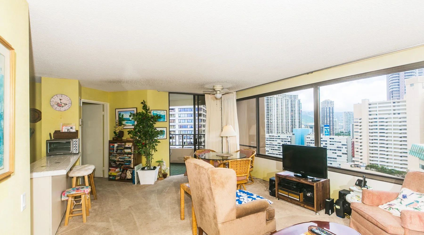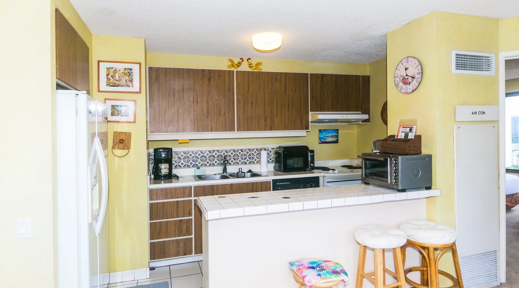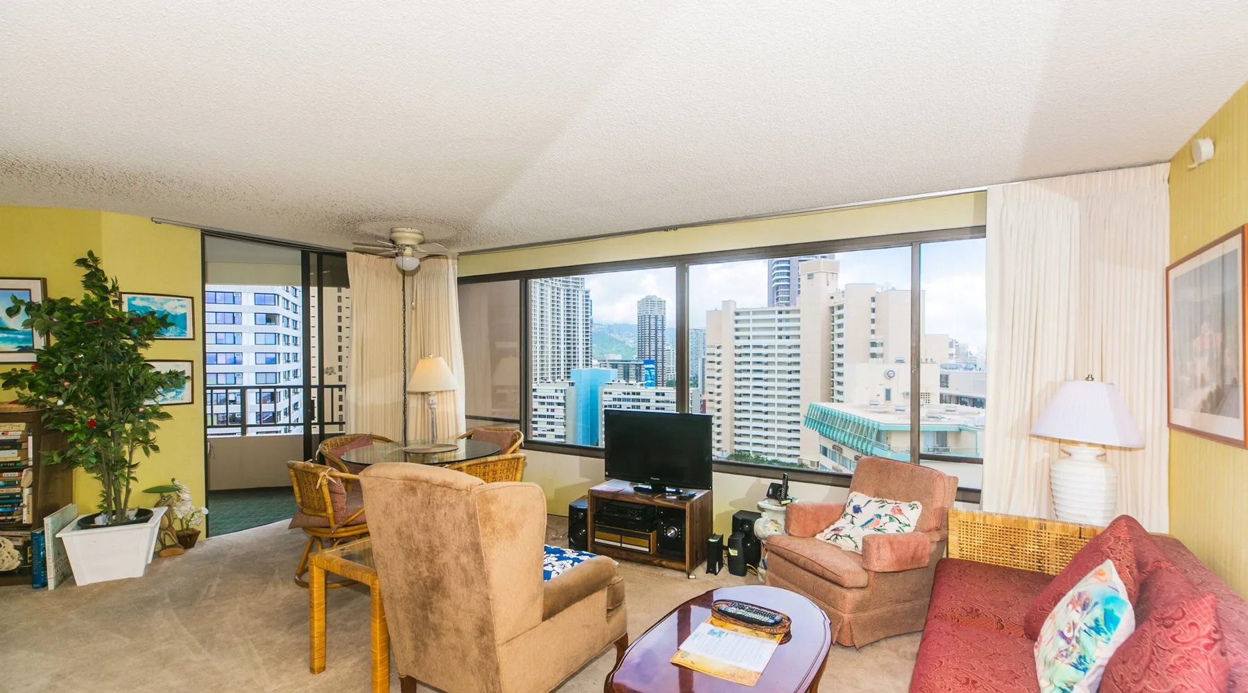 Step into a cozy, vintage-style retreat with all the comforts of home! This spacious 1-bedroom condo offers a full kitchen, a plush king-size bed, and stunning views of the city skyline and majestic mountains. Embrace a touch of nostalgia with its classic décor, creating a warm and inviting atmosphere. Enjoy central A/C, an in-unit washer & dryer, cable TV, free WiFi, and local phone service—all designed for a convenient and comfortable stay. Plus, you'll have your own assigned parking stall for added ease. A delightful escape with retro charm and modern essentials—perfect for your island getaway! AMENITIES Your stay includes cable TV, high-speed internet with password-protected WiFi, and phone service for the USA and Canada. We provide a starter kit of essentials, which includes liquid dish soap, a dishwashing packet, a kitchen sponge, trash liners, a roll of paper towels, coffee, condiment packets, travel-size shampoo, conditioner, body lotion, soap, facial tissue, and an extra roll of toilet paper. Please note we do not replenish these items once the starter set is depleted. Each bathroom is equipped with 4 sets of towels, and blankets can be found in each bedroom closet. We are delighted to provide beach towels for your stay. Please ensure they are returned to the room at check-out. If they are not, a $10 fee per towel may be applied to your account. Housekeeping services available for an additional fee. BUILDING AMENITIES The property consists of two 40-story towers, connected by an 11th-floor recreation deck. The deck features an outdoor swimming pool, jacuzzi, fitness center, and sunbathing area. A BBQ area is available on the 5th floor. The building offers secured entry and 24/7 security for added safety and convenience. Marina Hawaii Vacations has been providing fully furnished condo rentals to travelers since 1965. Book with confidence, as we offer only legal vacation rentals in Waikiki and the surrounding areas. Plus, you'll save when you book directly with us! Please note that the condos are privately owned, and construction or building maintenance may occur during your stay. While owners have no control over external work or noise, construction is typically limited to Monday–Friday from 8:00 AM to 4:30 PM, with no work on weekends or holidays. Most guests experience little to no disruption, as they are often out exploring the island, enjoying the beaches, shopping, or participating in activities. If you have any concerns, please contact a vacation rental specialist with Marina Hawaii Vacations