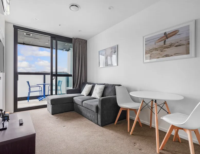 Welcome to this sophisticated urban delight! Newly decorated this One-bedroom apartment embodies the ultimate in style and comfort. ☆ Free High-Speed Wifi ☆ Smart TV with NETFLIX ☆ Fully equipped kitchen and in-unit laundry ☆ Safe lockup and leave, the perfect place to feel safe ☆ Open plan living, dining room, and kitchen with covered patio ☆ Automated Self Check-In, Book & Check-In within minutes ☆ A sophisticated urban delight! Newly decorated this One-bedroom apartment embodies the ultimate in style and comfort. ♡What We Love About The Apartment ♡ ☆ In-unit laundry ☆ Free Internet & Wifi ☆ Great views of the area ☆ Hotel quality linen and towels ☆ King size bed ☆ Fully equipped kitchen with new appliances ☆ Bedroom with a desk you can work from home at. ☆ New Fridge/feeezer, dish draw, cooktop, microwave ☆ Nextdoor to the Vodafone Arena and Vector Water Park ☆ Spacious open plan living, dining room, and kitchen plus covered patio ✦ Sleeping Arrangements ✦ ✧ Bedroom: King-sized bed, bedside tables & lamps ✦ What We Love About The Location ✦ ✧ Next to Vodafone Areana and Vector Water Park ✧ A good choice of supermarkets are in driving distance ✧ A short drive to the Domestic and Jean Batten International Airport ✧ Walking distance to Manukau City Westfield & Manukau train station ✦ Things to Do in the Area ✦ ✧ Visit the Auckland Botanic Gardens one of the regional treasures that focus on New Zealand native plants and a display of introduced species. They have a cafe and it is free admission. ✧ Take the kids and friends to Vector Water Park to experience a range of water sports ✧ Go for a drive to the Clevedon Farmers Market on Sunday morning and sample the local organic produce and the kids can use the petting zoo. ✧ Take State Highway 16 and the Waterview tunnel to the Auckland Zoo. You can see the full range of native animals and birds and other endangered species that NZ is helping to breed and preserve. ✧ The complete and uninterrupted access to the entire apartment. ✧ Access to the onsite gymnasium ✧ Use of the onsite cafe, perfect for breakfast and morning coffee. ✧ Before Arrival: We will make sure you have all the information you require to ensure an easy arrival, including clear and detailed self-check-in instructions. ✧ After Arrival: We like to message you occasionally during your stay and am happy to provide additional recommendations if asked. ✧ Support: In the unlikely event you have an issue with the apartment, we always respond very quickly to guests messages so rest assured you're in good hands. ✦ What We Love About The Location ✦ ✧ Close to some great ethnic restaurants and takeout ✧ A good choice of supermarkets within a short driving distance ✧ A short drive to the Domestic and Jean Batten International Airport ✧ Walking distance to Manukau City Westfield & Manukau train station You will be using your car or rental. Public transport information on train and bus timetables can be found on the AT (Auckland Transport Website). Apps like Uber are available. Taxis and airport shuttles can be found online. ✧ No breakfast is provided with this listing ~ there is a cafe downstairs and plenty around the region to sample. ✧ Sofa bed is not for use ✧ Form of government ID along with a selfie is required by the host.