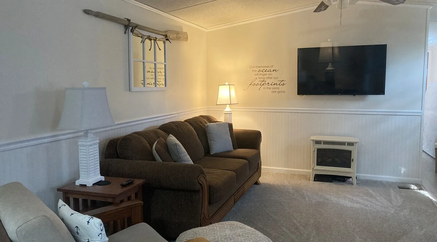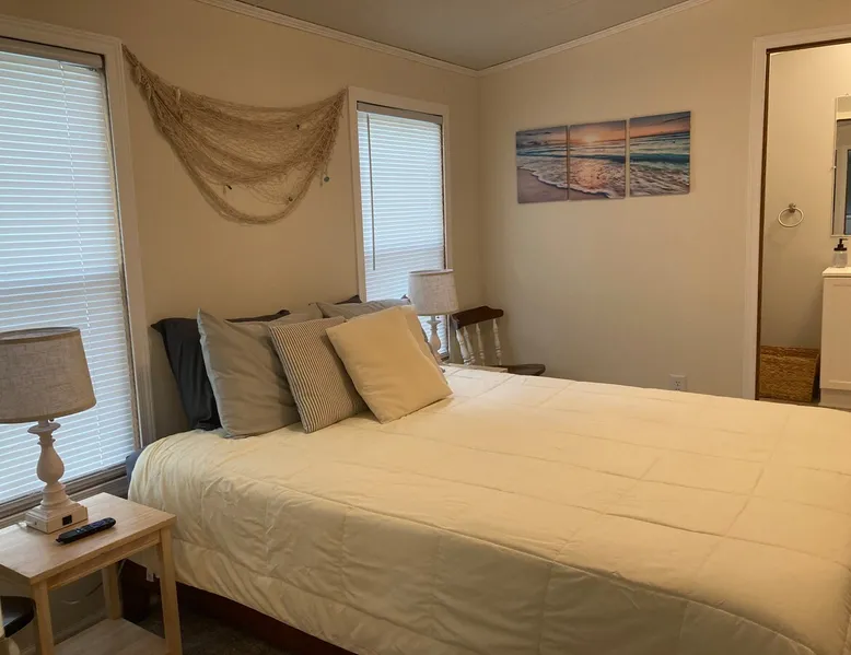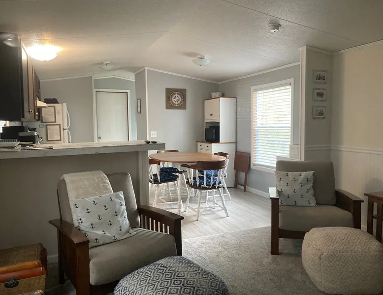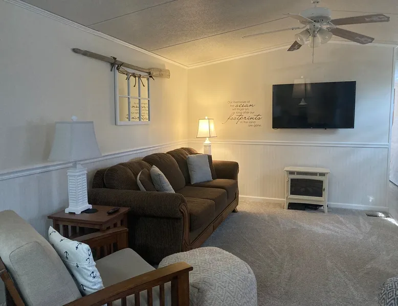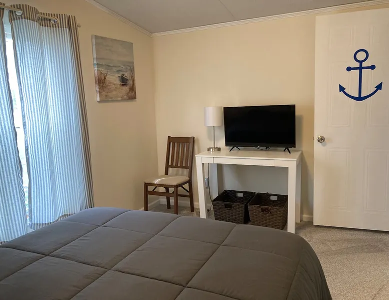 Tastefully renovated and shaded retreat, "The Shore Thing", with ample off-street parking just 3 miles from Bethany Beach. Property is a manufactured home on over an acre with family friendly features: fire pit, gas grill, picnic table, deck/bar counter area for adults to relax while the kids play in the yard and enjoy the swingset with slide, large sandbox and climbing wall. Central Air, Reliable Wi-Fi and 3 Roku TV's with free programming. The space For your safety, cleaning service habitually sanitizes hard surfaces after each guest visit. Comfortable furniture, full size washer & dryer, central air and well equipped kitchen including microwave, dishes, cookware, flatware, dishwasher and 14 cup Cuisinart coffeemaker. Beds are made up with fresh sheets for your arrival. Hand soap and bath mats are also provided. Access to secure shed for storage of personal items such as bikes, beach chairs, etc. Grilling accessories and chairs for firepit provided. ( Please note that for any arrivals 9/7/20 and beyond we regret that we will no longer provide bath towels and washcloths due to time constraints of laundering in between departures and arrivals. )