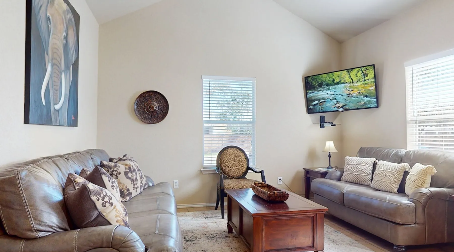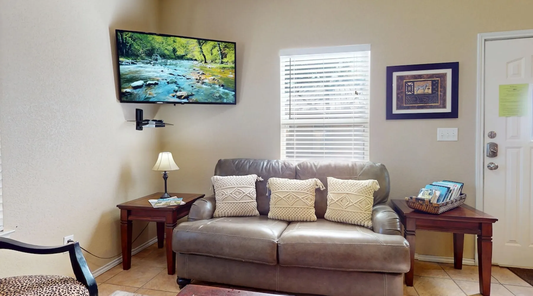 Twin River Villas is conveniently located within walking distance of Schlitterbahn, Prince Solms Tube Chute, downtown New Braunfels and just a short drive to historic Gruene. This rental is perfect for a quick and fun getaway! The space Twin River Villas is located within walking distance of Schlitterbahn, Prince Solms Tube Chute, downtown New Braunfels and just a short drive to historic Gruene. This rental is perfect for a quiet getaway! This 3 bedroom, 2 bath condo sleeps and allows 8 guests maximum. Master Bedroom: King 2nd Bedroom: Queen 3rd Bedroom: Queen Livingroom: Sleeper Sofa Fully furnished with bathing towels, bed linens, cookware, a standard drip coffee maker, dishwasher, washer/dryer, TV's and more! Enjoy grilling with family and friends on the BBQ pit located under gorgeous pecan trees. Free tubes up to maximum occupancy with rental! This 6-unit, two-building triplex can accommodate up to 40 guests, making Twin River Villas perfect for large family reunions, special events, and retreats. If you book all 6 units, we are happy to give you 15% off of each unit's rental rate. Please call our office for this special. *While the Twin River Villas is NOT directly on the river, it is a prime location next to and within walking distance to the Comal/Guadalupe Rivers, and Schlitterbahn!* -Walk with your tubes and cooler about 10 minutes to Hinman Island Park for public access to the Comal River and Tube Chute, jump in and float down to the last public exit, corner of S Union and Lincoln St for about a 2 hour float! The walk back to Twin River Villas is about 12 minutes! -A quick 10-minute walk down S. Union Ave to the Schlitterbahn East -Blastenhoff entrance! Pack your cooler, and sunscreen, and don't have to deal with finding a parking spot! -Take a brisk 5-20 minute walk to nearby restaurants or stroll further into downtown New Braunfels to enjoy more local restaurants, bars and breweries, shop in our quaint boutiques, and get strudel in the oldest bakery in Texas, Naegelin's Bakery! - If you want to float a long portion of the Guadalupe River, we advise you to drive to Rockin R to rent their tubes and use their shuttle service. -And, Gruene, Texas with the world-famous Gruene Hall and delicious restaurants such as Gruene River Grill and The Gristmill is only a 10-minute drive away! Places we recommend that are within a 5-20 minute walk to and from the complex: Restaurants: Spud Ranch, Pats Place, Tin Top Burgers, Union Street Station, Muck & Fuss, New Braunfels Coffee, The Mess Around, Naegelin's Bakery, Bootlegger Pizza, Krause’s Café, McAdoos Seafood, Myrons Prime Steakhouse. Bars/Night Life: The Oyster Bar, Calahans Pub & Pizza, Black Whale Pub, Moonshine & Ale, Phoenix Saloon, Scores Sports Bar, The Pour Haus, Downtown Social. Must be 23 or older to book, kids are welcome with a parent/legal guardian. Renter's ID and Credit Card must be presented to receive check-in information. Occupancy is not to be exceeded at any time. Pet-Friendly unit with the following fees: 2 pets max. $25/day/pet $60 Pet Cleaning fee (this is for interior ONLY and NOT picking up after the dog in yard) (This fee does not cover damage to the property or grounds resulting from a dog, including but not limited to: chewing, scratching, digging, and unreported housetraining accidents.) $500 Pet Deposit 7-10 business days after your departure refunded back to the cc on file with no damages or violations. *If booking through VRBO or Airbnb, the "Prices include all fees" does not apply if you're bringing a pet. *If you are bringing a pet, please be sure to add it to the message/reservation when booking, so we can apply pet fees accordingly. Parking Passes are enforced at this property. This condo will receive 3 parking passes. Parking spots are unmarked and on a first-come, first-served basis. Overflow parking is available across the street behind the Spud Ranch lot (make sure to ask/tell them) OR in the lot at the corner of N Union Ave and W. Commerce St. -about a 5-minute walk away from the complex. Monthly Rates in our Low Season are available! Guest access Each unit is equipped with a Schlage lock system. You will be provided with a 4 digit access code in your check-in email. Using the Schlage lock system- To Unlock the Door: Press the Schlage button to wake up the lock. Enter the 4-digit “Door Code”, when the light turns green, (within 5 seconds) manually turn and unlock the deadbolt using the spinning locking mechanism. To Lock the Door: Press the Schlage button and turn the locking mechanism towards the door frame.