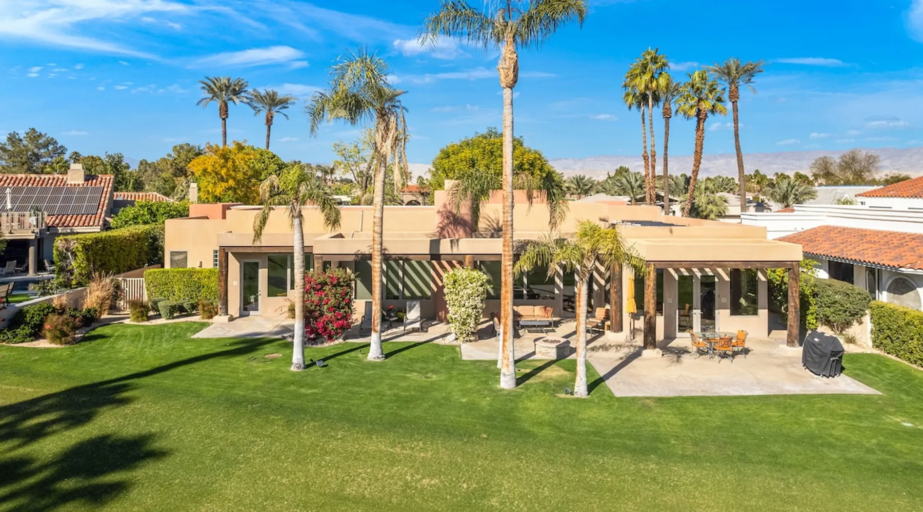 Fully furnished seasonal luxury in coveted Muirfield Estates at Mission Hills Country Club with stunning south facing lake, Arnold Palmer Fairway, and mountain views. Enter privately gated Muirfield Drive and arrive at your custom retreat with modern architectural features. Tesla charging station. Gated courtyard entry features including a flagstone patio and pool. Entry Hall opens to great room featuring beamed ceilings, Kiva fireplace, stylish finishes and stunning views. The space Fully furnished seasonal luxury in coveted Muirfield Estates at Mission Hills Country Club with stunning south facing lake, Arnold Palmer Fairway, and mountain views. Enter privately gated Muirfield Drive and arrive at your custom retreat with modern architectural features. Tesla charging station. Gated courtyard entry features including a flagstone patio and pool. Entry Hall opens to great room featuring beamed ceilings, Kiva fireplace, stylish finishes and stunning views. Filled with natural light the home features a chefs kitchen and and open dining room with views that allow for effortless entertaining. Quartz countertops, stainless appliances, counter seating and wine storage. Dining Room with French doors that open to dining terrace with lake, fairway and mountain views. Master Suite with views, access to terrace and bath with custom tile work. Second Master Suite includes an office or retreat area and overlooks the pool terrace. Terrace overlooking the lake, mountains and golf course features a fire pit, BBQ area and space to enjoy the sunset views. Home is solar equipped. Former home of a famed LPGA pro, this special compound is for those looking for a truly custom retreat. Rates vary by season, length of stay etc, with no stays of less than 28 consecutive calendar days accepted, please contact us for a private tour or to reserve this exceptional home. The 4th bedroom is a casita that is currently mostly empty and can serve as open space for Yoga, Ballet, or other workout purpose. * this home is not a short term rental. The owner uses this home a portion of the season, when they are not using it they rent it seasonally furnished for not less than 28 consecutive calendar days. Other things to note: Mission Hills Country Club is a private club; like any other private club, membership does not attach to the house, but to membership. I do not know of any private club in the country( maybe there is one) where renting a house gives access to a private club. The Mission Hills club is part of Club Corps. If you are a club corps member, one can play 2 times a month. Maybe there are short-term memberships to the CC, I recommend calling Mission Hills CC directly as options change often. This home has a minimum rental period of 28 consecutive days. Fully furnished seasonal luxury in coveted Muirfield Estates at Mission Hills Country Club with stunning south facing lake, Arnold Palmer Fairway, and mountain views. Enter privately gated Muirfield Drive and arrive at your custom retreat with modern architectural features. Gated courtyard entry features including a flagstone patio and pool. Entry Hall opens to great room featuring beamed ceilings, Kiva fireplace, stylish finishes and stunning views. Filled with natural light the home features a chefs kitchen and and open dining room with views that allow for effortless entertaining. Quartz countertops, stainless appliances, counter seating and wine storage. Dining Room with French doors that open to dining terrace with lake, fairway and mountain views. Media Room provides the perfect spot for movie night. Master Suite with views, access to terrace and bath with custom tile work. Second Master Suite includes an office or retreat area and overlooks the pool terrace. Guest suite in the house with on suite bath and a casita/guesthouse and is currently an open space. Terrace overlooking the lake, mountains and golf course features a fire pit, BBQ area and space to enjoy the sunset views. Private Pool and Spa with flagstone terraces in the romantic courtyard. Home is solar equipped. Former home of a famed LPGA pro, this special compound is for those looking for a truly custom retreat. Rates vary by season, length of stay etc, with no stays of less than 28 consecutive calendar days accepted, please contact us for a private tour or to reserve this exceptional home. Other things to note This is not a short term rental This is a furnished seasonal rental The pool heat is on-demand, meaning we do not heat it when it's not in use or when no guests are staying. It heats up about 3 degrees per hour and it can get down into the 60's during the winter so if you want it heated upon your arrival please keep that in mind and notify us. October Through end of May the charge is $125/day if pool heating is paid upfront for every day of the stay or $175/day if not. Spa only heating is $35/day if prepaid for the entire stay and $50/day if not. Most resorts heat pools into the low 80's we allow guests that pay for pool heat to heat pool to the mid-80's and spas as high as they like. Please keep in mind, mid-winter, larger pools will have a hard time even reaching mid-80's, pool temperature is not guaranteed, however, generally low to mid 80's is common, even mid-winter. Pets are subject to owner approval and may or may not be approved. If they are approved a pet fee applies. Please inquire with breed, age, and weight of your pet prior to booking. If your pet is approved, it can not be left unattended in the unit. No Cats Allowed. The desert has extreme temperatures, including sustained daytime temperatures of over 100 degrees. With such high temperatures, ACs can struggle to cool homes by more than 25 degrees. Boatman bugs are common in pools with biologically safe water. If food is left out, ants will come, and if doors are left open, flies will come. These are a part of life in the desert and not grounds for a refund. We use the top pest control, pool cleaners, and home cleaners in the are