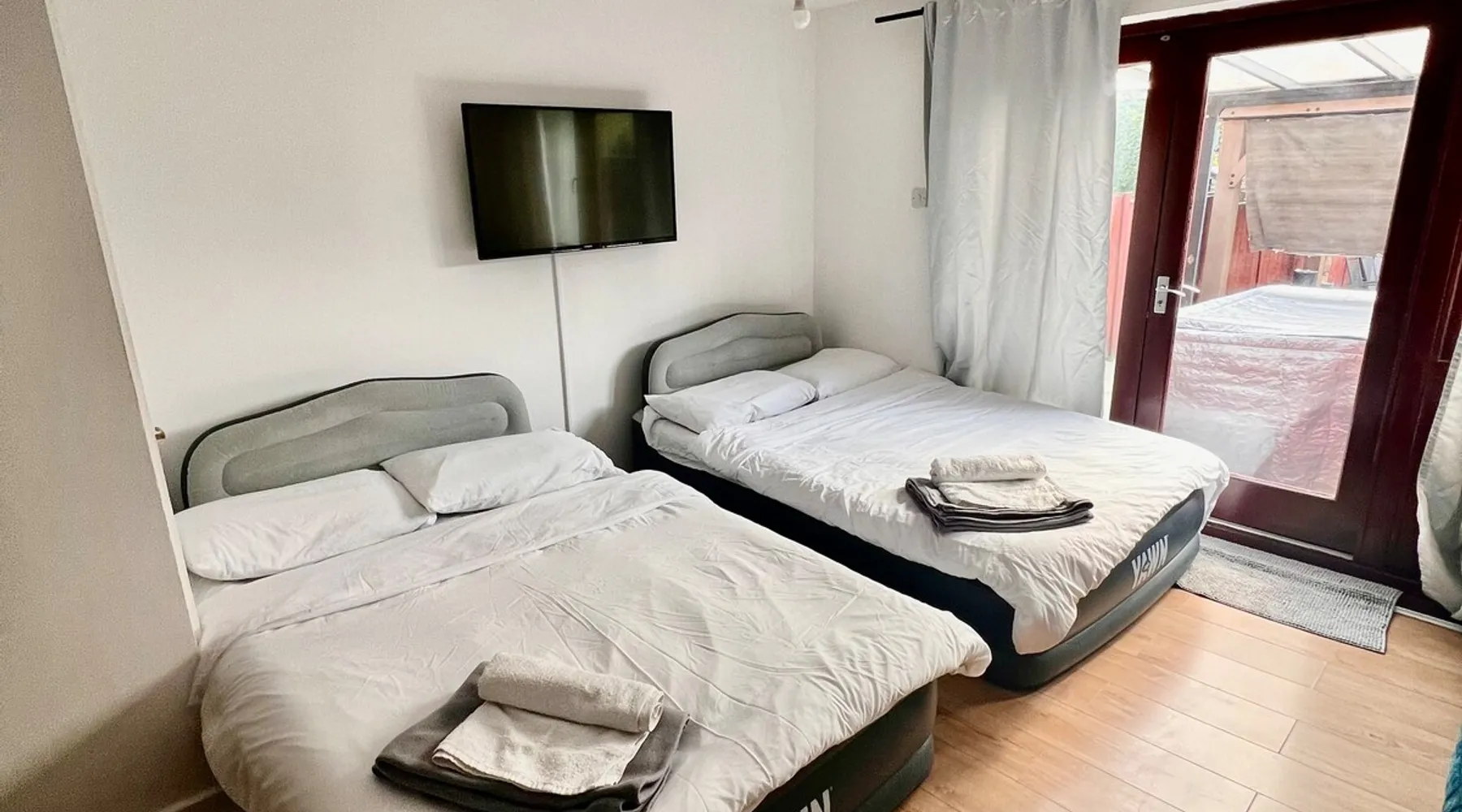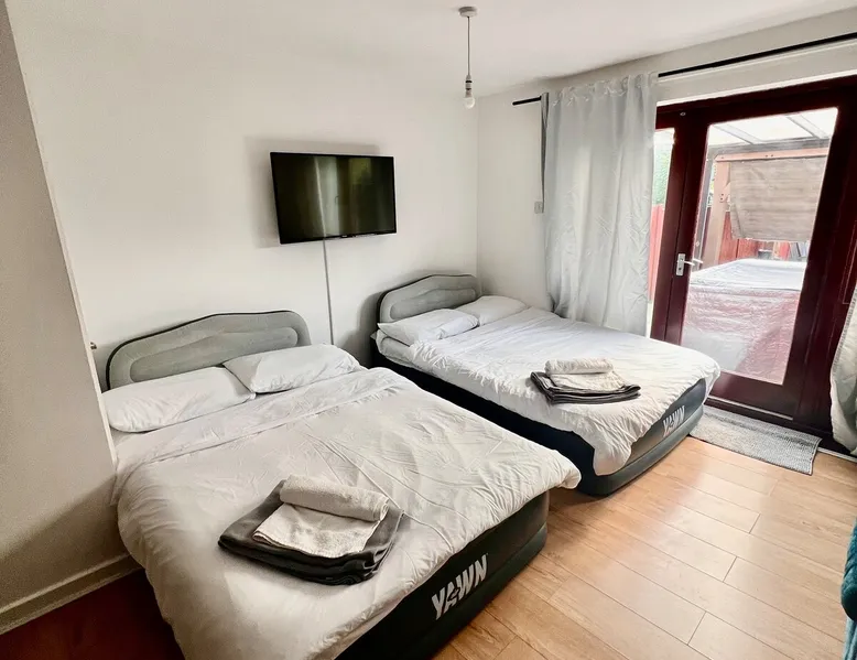 Our house is a lovely renovated 3 bedroom home which is a 10 minute drive from Wembley with direct bus and train links to Wembley and central London. Tucked away in a peaceful residential area, our house was fully renovated in January 2018 and is equipped with a large garden and driveway. Perfect for large families, small groups or solo travellers, our house can comfortably sleep up to 10 people (based on 6 people sharing the 3 bedrooms and 4 more making use of our 2 double-bed sized air beds) The space We’ve added a brand new hot tub which seats up to 7 people and can be used all year round! The cost of the hot tub is an additional £85 (for up to 3 consecutive nights) which must be paid before your booking and a £100 refundable damage deposit if you would like to use this. If you wish to stay longer and want to use the hot tub, we can give you a special price when you enquire. - We have a self check in system for our guests. We will give you a code which will allow you to retrieve the key and check yourselves in. Our house has 3 bedrooms with double-sized beds in each room. In the living room we can comfortably fit 2 double-bed sized air beds (pictured). If you require any airbeds for your stay, please message us prior to request for 1 or both airbeds. (So it can be setup with bedsheets, pillows, duvets etc) We also have 22” LG TVs in all of our bedrooms so that you can really feel at home. During your stay, guests are more than welcome to use our washing machine . We installed an instant hot and ice cold water system so our guests can enjoy instant hot coffee or enjoy an ice cold drink of water in seconds. Basic refreshments (tea, coffee,sugar) are provided and there is a De’Longhi coffee machine. - Parking: The entrance of our gated driveway is narrow for larger cars at 2.2m wide, but the driveway itself is 8.7m long. Moreover, there is plenty of free street parking within the immediate area too -mainly to the left hand side of the house along Mordaunt Road and there’s free street parking along Carlyle Road and along Lawrence Avenue. - *IMPORTANT TO NOTE* DO NOT BOOK WITH US IF YOU ARE PLANNING TO THROW A PARTY /GATHERING OR BRING MORE THAN 10 GUESTS. We will cancel the booking and not issue you a refund. Guest access Whole place Other things to note This is a quiet residential area so please do not host any parties, or any gatherings as we reserve the right to request extra money for any damage caused in light of breaking our house rules. Check in is from 16:00pm Checkout is by 10:00am