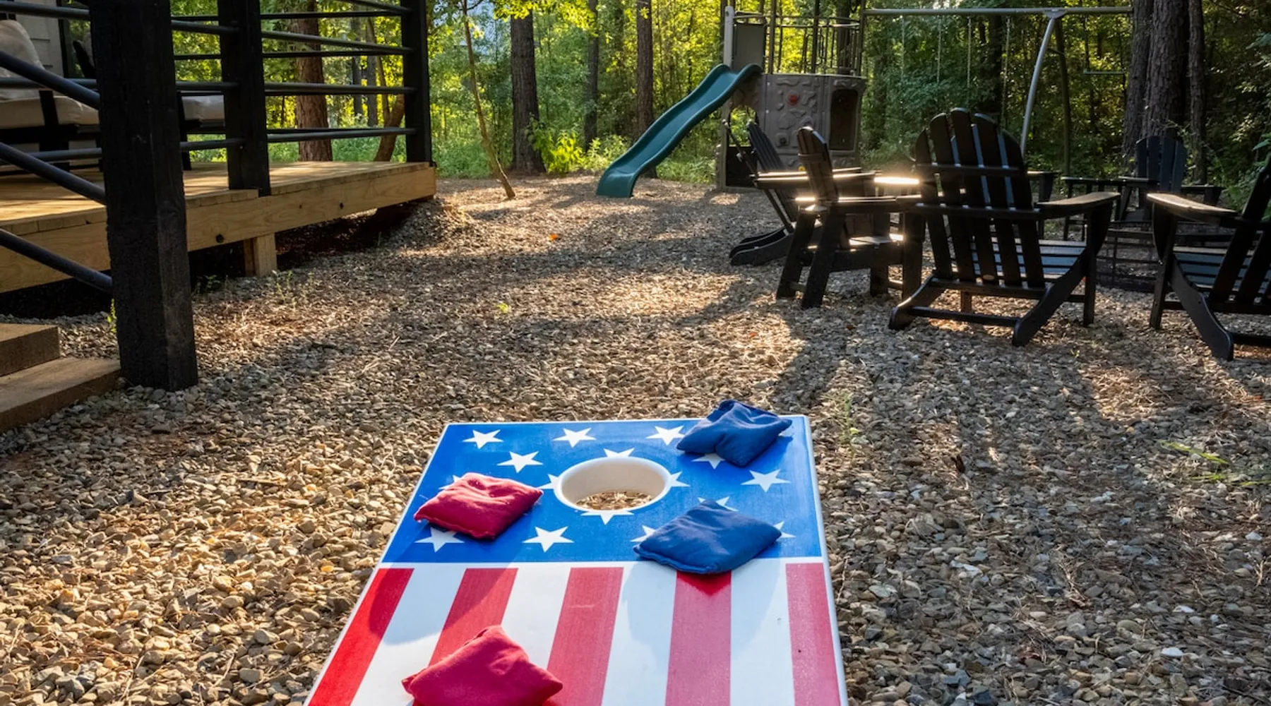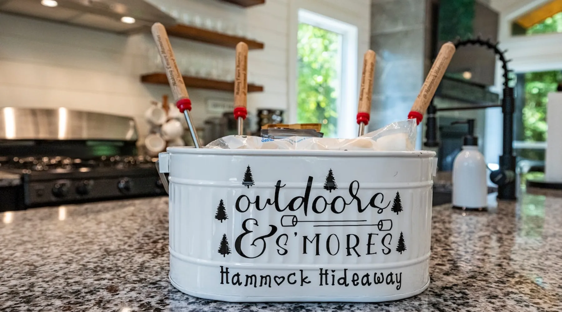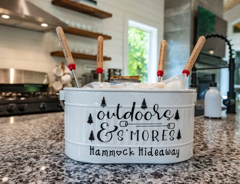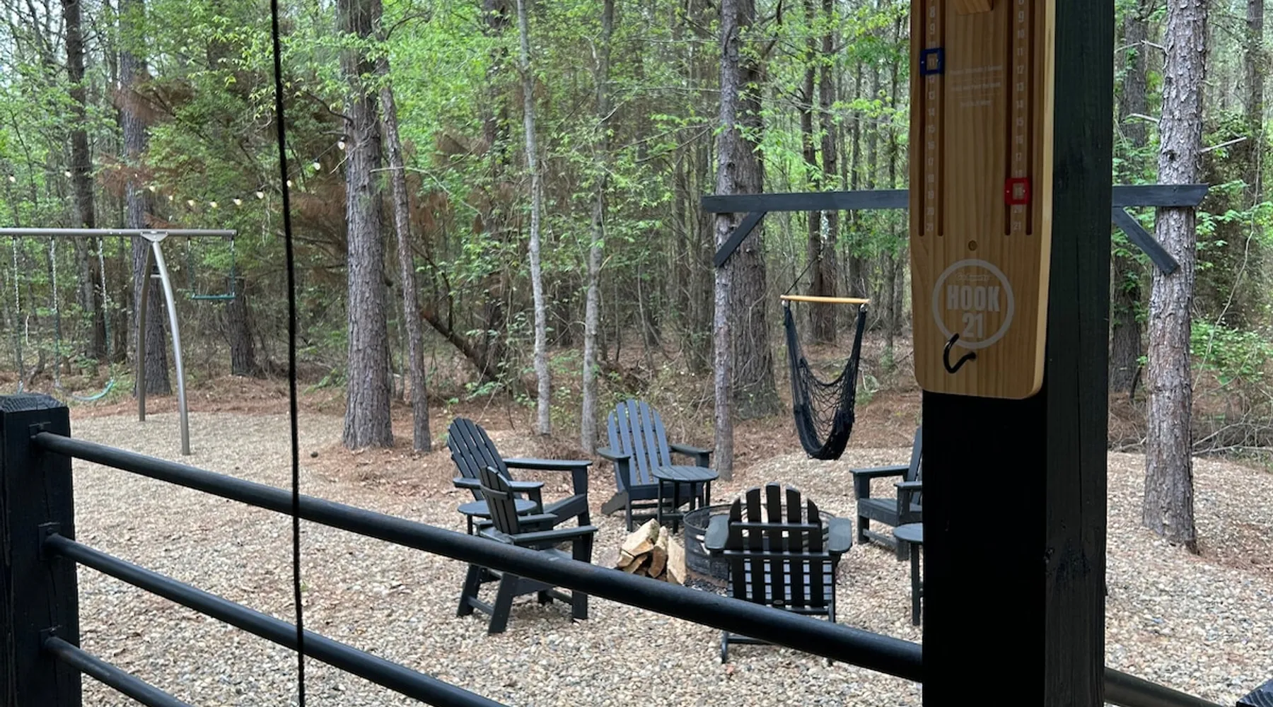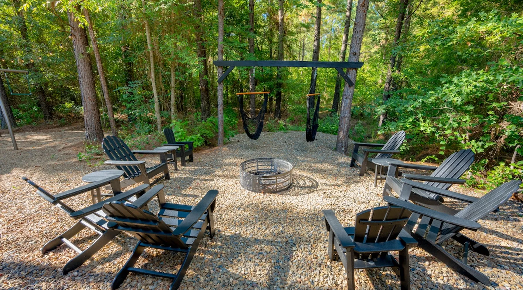“Hammock Hideaway Broken Bow” ☀ 100” outdoor movie screen ☀ Large hot tub ☀ Giant family size hammock ☀ Outdoor fire pit ☀ Arcade console w/ favorite classics like Pac-Man + Dig Dug ☀ Indoor gas fireplace ☀ Children’s outdoor playset ☀ Corn hole ☀ Axe throwing game ☀ Smores Kit & starter bundle of firewood ☀ Life-size outdoor connect 4 ☀ Hook & ring game ☀ 2 bedrooms; 1 king, 1 twin-over-full bunk bed + 1 queen sofa bed ☀ 3 Smart TVs w/ Amazon Prime, Disney+, Hulu, Netflix, etc The space ☀ BBQ grill ☀ 2 full bathrooms; 1 ensuite w/ freestanding bathtub + separate shower; 1 w/shower ☀ Open floor plan kitchen + living room ☀ Fully equipped kitchen w/ everything you need to cook your favorite meals ☀ Fast, free wifi w/ speeds up to 663 Mbps for work, leisure + streaming needs ☀ Wide selection of books, games + toys for all ages ☀ Outdoor seating galore; rocking chairs, Adirondack chairs + hanging hammocks ☀ Kid-friendly; travel cot, standalone highchair, changing table + tableware ☀ DVD/Blu-ray player ☀ Air conditioning + heating ☀ Free washer + dryer ☀ Private backyard, back patio + front porch to enjoy tranquil country living Create cherished memories at “Hammock Hideaway”, a family-friendly new cabin with incredible outdoor living space and modern amenities. Soak in the hot tub after a long day, make s’mores around the fire pit, and enjoy a movie night on the 100” outdoor screen. This beautiful cabin is the perfect getaway for a family vacation or a couple's retreat. Here are a few kind words from our past guests: “Our family of four had a wonderful time at this lovely cabin in the woods! It’s a beautiful new build with all the amenities you could need for a stay. Easily accessible to all the activities of Broken Bow and Hochatown but also perfect for just hanging out, playing outside on the playground or watching a movie in the hot tub. The beautiful large windows that line the house make you feel like you are outside (my kind of camping!) The home is luxurious and comfortable with plenty of games, a well-stocked kitchen, and easy to use smart tv’s. Melissa is very communicative and quick to respond to any questions. We will back for sure!” –Nadine “Very beautiful cabin! We loved the projector outside while sitting in the hot tub and all the windows. It’s so peaceful and quiet. If I had any questions Melissa was quick to respond!” –Courtney “WOW, where do I begin? Truly the best Airbnb we have every stayed at and that is saying a lot. The personal touches made it very special for our family. You can tell, love, thought and effort that was put into making the luxury cabin so luxury and family friendly. They thought of everything. The house itself is brand new, everything is in perfect condition. The master bedroom shower makes you want to shower 3 times per day, the water pressure and shower heads (yes that is right a double shower that fits two adults comfortably) are amazing. The location is great and central to tons of family fun activities. We spent hours in the hot tub watching movies on the projector, fires in the fire pit every night, cooked just about every meal on the grill and my daughter was on the swing set constantly which gave us a nice break. Melissa's communication was excellent. She had great suggestions and responded quickly to a couple of questions we had. We can't wait to go back and have already recommended the luxury cabin to at least 5 or 6 other families we know. Oh yeah and I can't believe Broken Bow is only 3 hours away from DFW which makes it a perfect family vacation spot for us. Thanks so much Melissa, you made our family 's vacation special and memorable.” –Neil ☆☆ BEDROOMS ☆☆ Surrounded by nature, this beautiful cabin offers plenty of space for six guests to relax, enjoy each other’s company and make wonderful memories. The master bedroom is on the first floor and provides guests with a luxuriously comfortable king-sized bed with an iron frame, topped with a Nectar mattress. It’s so cozy, you may have trouble getting out of bed in the morning! Not only will you be able to enjoy your favorite TV shows on the 43” smart TV, but also the breathtaking views beyond the sliding doors. Cozy up in the hanging chair with your favorite morning beverage and a blanket. In the mornings, step through the doors to enjoy some yoga or a quiet cup of coffee on the back patio before everyone else wakes up. Upstairs on the second floor, you’ll find the second bedroom, complete with a twin-over-full bunk bed. Sit back and relax on one of the two oversized bean bags, while enjoying your favorite show or movie using the 32” smart TV and DVD player. It’s a great space for kids to hang out with a few board games, especially while listening to the pitter-patter of raindrops on a rainy day. Aside from the spacious bedrooms, additional sleeping space is available in the living room. You’ll find the large, leather sofa can be transformed into a sleeper sofa, offering you lots of flexibility in the sleeping arrangements. ☆☆ BATHROOMS ☆☆ Two stylish bathrooms with modern fixtures and plenty of room are available for use throughout your stay. On the first floor, the master bedroom has a private ensuite bathroom, complete with double sink vanity. Here you’ll be able to enjoy a long, relaxing soak in the large, farm-style bathtub. The spacious separate shower features not one, but two shower heads. It’s easily the most indulgent shower you’ll ever have! A second full bathroom can be found on the second floor, offering a modern, clean vibe and a hot shower. There’s plenty of bathroom space, so rest assured there won’t be a line for the bathroom. ☆☆ KITCHEN & LOUNGE ☆☆ As you enter the main floor of this luxurious cabin for the first time, you’ll be struck by the beauty of the high ceilings and the natural light streaming through the open-concept kitchen
