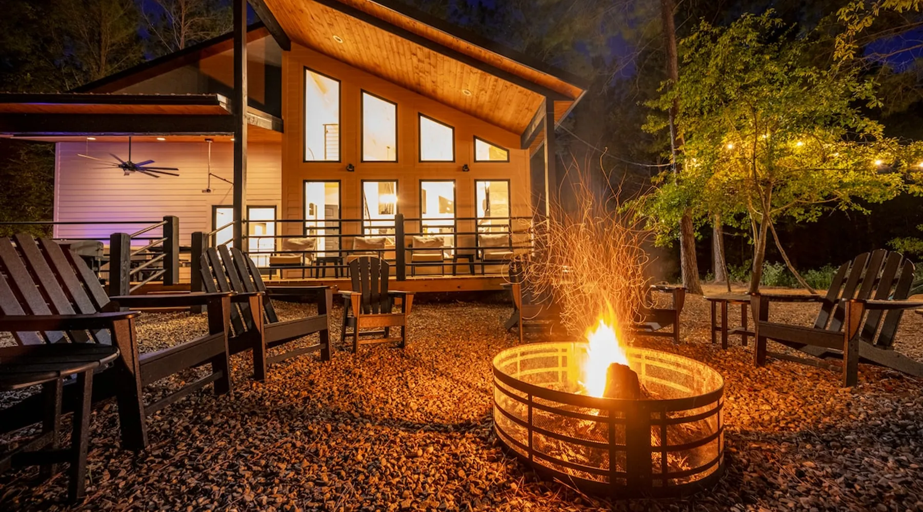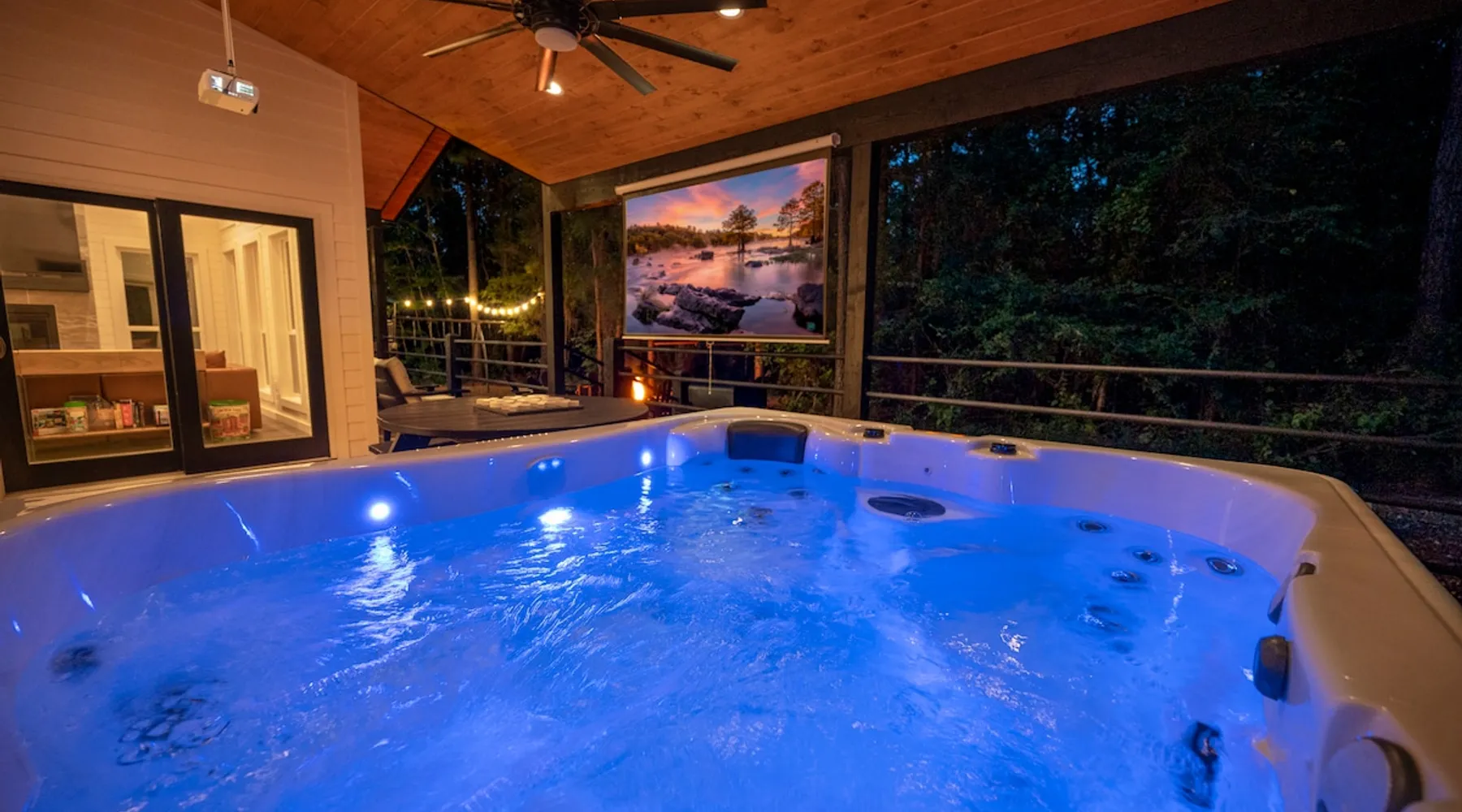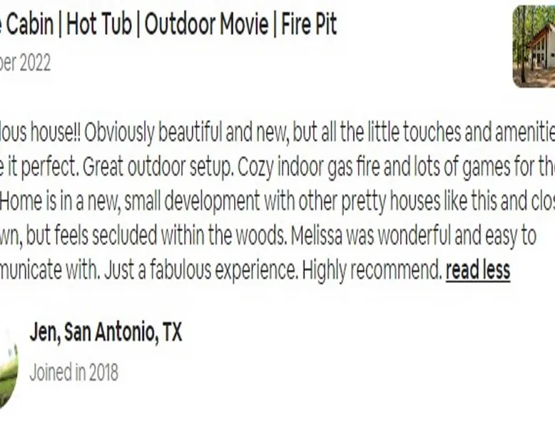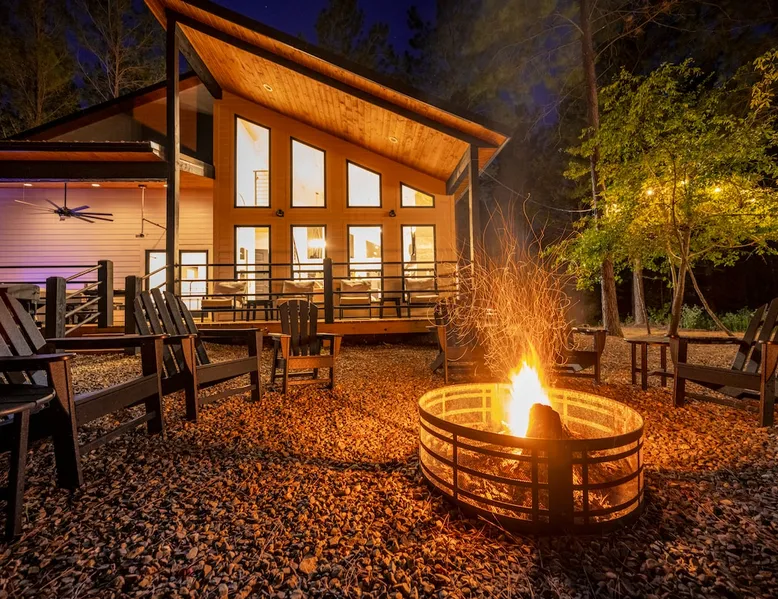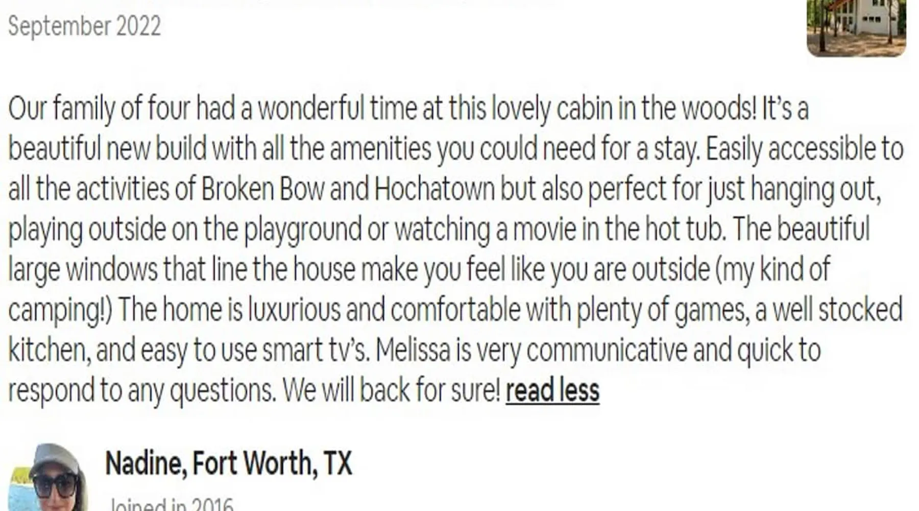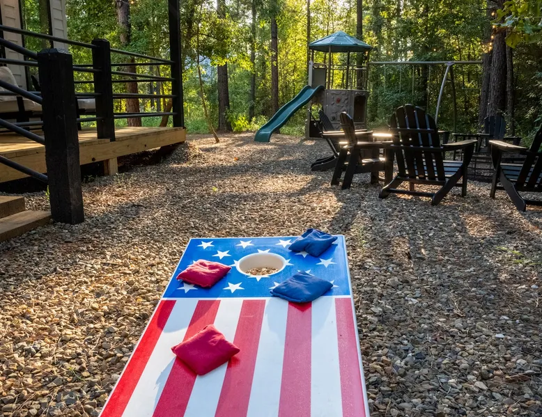 “Hammock Hideaway Broken Bow” ☀ 100” outdoor movie screen ☀ Large hot tub ☀ Giant family size hammock ☀ Outdoor fire pit ☀ Arcade console w/ favorite classics like Pac-Man + Dig Dug ☀ Indoor gas fireplace ☀ Children’s outdoor playset ☀ Corn hole ☀ Axe throwing game ☀ Smores Kit & starter bundle of firewood ☀ Life-size outdoor connect 4 ☀ Hook & ring game ☀ 2 bedrooms; 1 king, 1 twin-over-full bunk bed + 1 queen sofa bed ☀ 3 Smart TVs w/ Amazon Prime, Disney+, Hulu, Netflix, etc The space ☀ BBQ grill ☀ 2 full bathrooms; 1 ensuite w/ freestanding bathtub + separate shower; 1 w/shower ☀ Open floor plan kitchen + living room ☀ Fully equipped kitchen w/ everything you need to cook your favorite meals ☀ Fast, free wifi w/ speeds up to 663 Mbps for work, leisure + streaming needs ☀ Wide selection of books, games + toys for all ages ☀ Outdoor seating galore; rocking chairs, Adirondack chairs + hanging hammocks ☀ Kid-friendly; travel cot, standalone highchair, changing table + tableware ☀ DVD/Blu-ray player ☀ Air conditioning + heating ☀ Free washer + dryer ☀ Private backyard, back patio + front porch to enjoy tranquil country living Create cherished memories at “Hammock Hideaway”, a family-friendly new cabin with incredible outdoor living space and modern amenities. Soak in the hot tub after a long day, make s’mores around the fire pit, and enjoy a movie night on the 100” outdoor screen. This beautiful cabin is the perfect getaway for a family vacation or a couple's retreat. Here are a few kind words from our past guests: “Our family of four had a wonderful time at this lovely cabin in the woods! It’s a beautiful new build with all the amenities you could need for a stay. Easily accessible to all the activities of Broken Bow and Hochatown but also perfect for just hanging out, playing outside on the playground or watching a movie in the hot tub. The beautiful large windows that line the house make you feel like you are outside (my kind of camping!) The home is luxurious and comfortable with plenty of games, a well-stocked kitchen, and easy to use smart tv’s. Melissa is very communicative and quick to respond to any questions. We will back for sure!” –Nadine “Very beautiful cabin! We loved the projector outside while sitting in the hot tub and all the windows. It’s so peaceful and quiet. If I had any questions Melissa was quick to respond!” –Courtney “WOW, where do I begin? Truly the best Airbnb we have every stayed at and that is saying a lot. The personal touches made it very special for our family. You can tell, love, thought and effort that was put into making the luxury cabin so luxury and family friendly. They thought of everything. The house itself is brand new, everything is in perfect condition. The master bedroom shower makes you want to shower 3 times per day, the water pressure and shower heads (yes that is right a double shower that fits two adults comfortably) are amazing. The location is great and central to tons of family fun activities. We spent hours in the hot tub watching movies on the projector, fires in the fire pit every night, cooked just about every meal on the grill and my daughter was on the swing set constantly which gave us a nice break. Melissa's communication was excellent. She had great suggestions and responded quickly to a couple of questions we had. We can't wait to go back and have already recommended the luxury cabin to at least 5 or 6 other families we know. Oh yeah and I can't believe Broken Bow is only 3 hours away from DFW which makes it a perfect family vacation spot for us. Thanks so much Melissa, you made our family 's vacation special and memorable.” –Neil ☆☆ BEDROOMS ☆☆ Surrounded by nature, this beautiful cabin offers plenty of space for six guests to relax, enjoy each other’s company and make wonderful memories. The master bedroom is on the first floor and provides guests with a luxuriously comfortable king-sized bed with an iron frame, topped with a Nectar mattress. It’s so cozy, you may have trouble getting out of bed in the morning! Not only will you be able to enjoy your favorite TV shows on the 43” smart TV, but also the breathtaking views beyond the sliding doors. Cozy up in the hanging chair with your favorite morning beverage and a blanket. In the mornings, step through the doors to enjoy some yoga or a quiet cup of coffee on the back patio before everyone else wakes up. Upstairs on the second floor, you’ll find the second bedroom, complete with a twin-over-full bunk bed. Sit back and relax on one of the two oversized bean bags, while enjoying your favorite show or movie using the 32” smart TV and DVD player. It’s a great space for kids to hang out with a few board games, especially while listening to the pitter-patter of raindrops on a rainy day. Aside from the spacious bedrooms, additional sleeping space is available in the living room. You’ll find the large, leather sofa can be transformed into a sleeper sofa, offering you lots of flexibility in the sleeping arrangements. ☆☆ BATHROOMS ☆☆ Two stylish bathrooms with modern fixtures and plenty of room are available for use throughout your stay. On the first floor, the master bedroom has a private ensuite bathroom, complete with double sink vanity. Here you’ll be able to enjoy a long, relaxing soak in the large, farm-style bathtub. The spacious separate shower features not one, but two shower heads. It’s easily the most indulgent shower you’ll ever have! A second full bathroom can be found on the second floor, offering a modern, clean vibe and a hot shower. There’s plenty of bathroom space, so rest assured there won’t be a line for the bathroom. ☆☆ KITCHEN & LOUNGE ☆☆ As you enter the main floor of this luxurious cabin for the first time, you’ll be struck by the beauty of the high ceilings and the natural light streaming through the open-concept kitchen