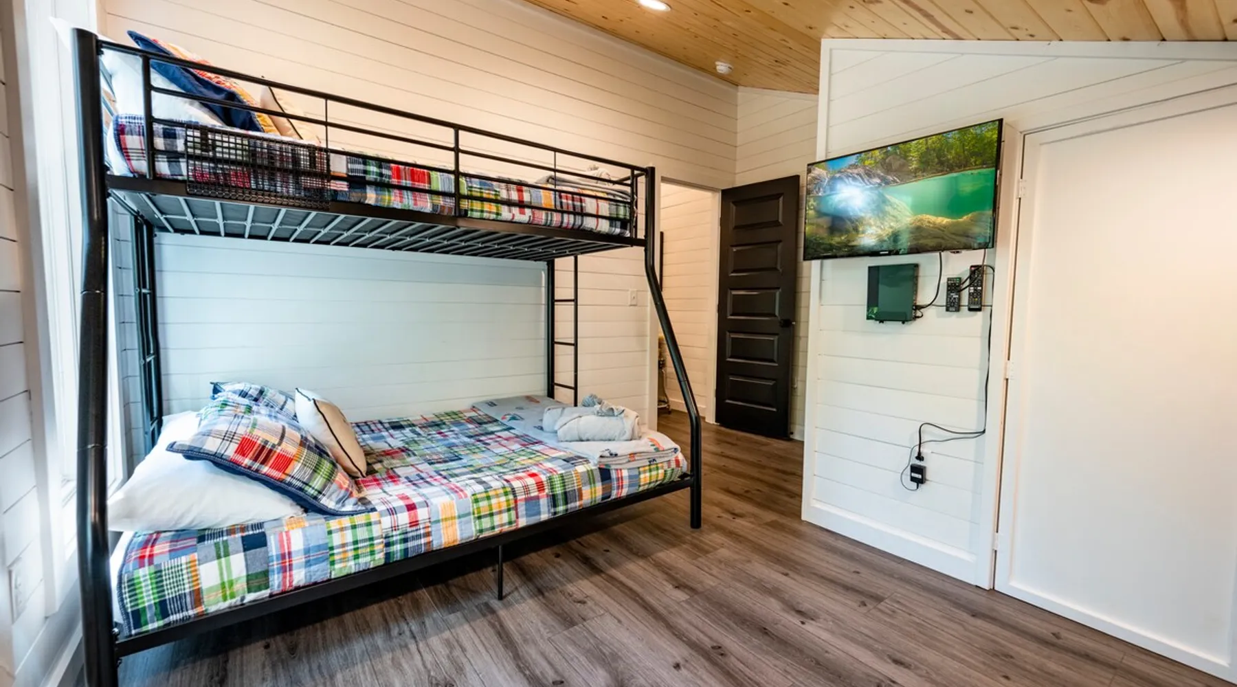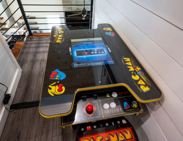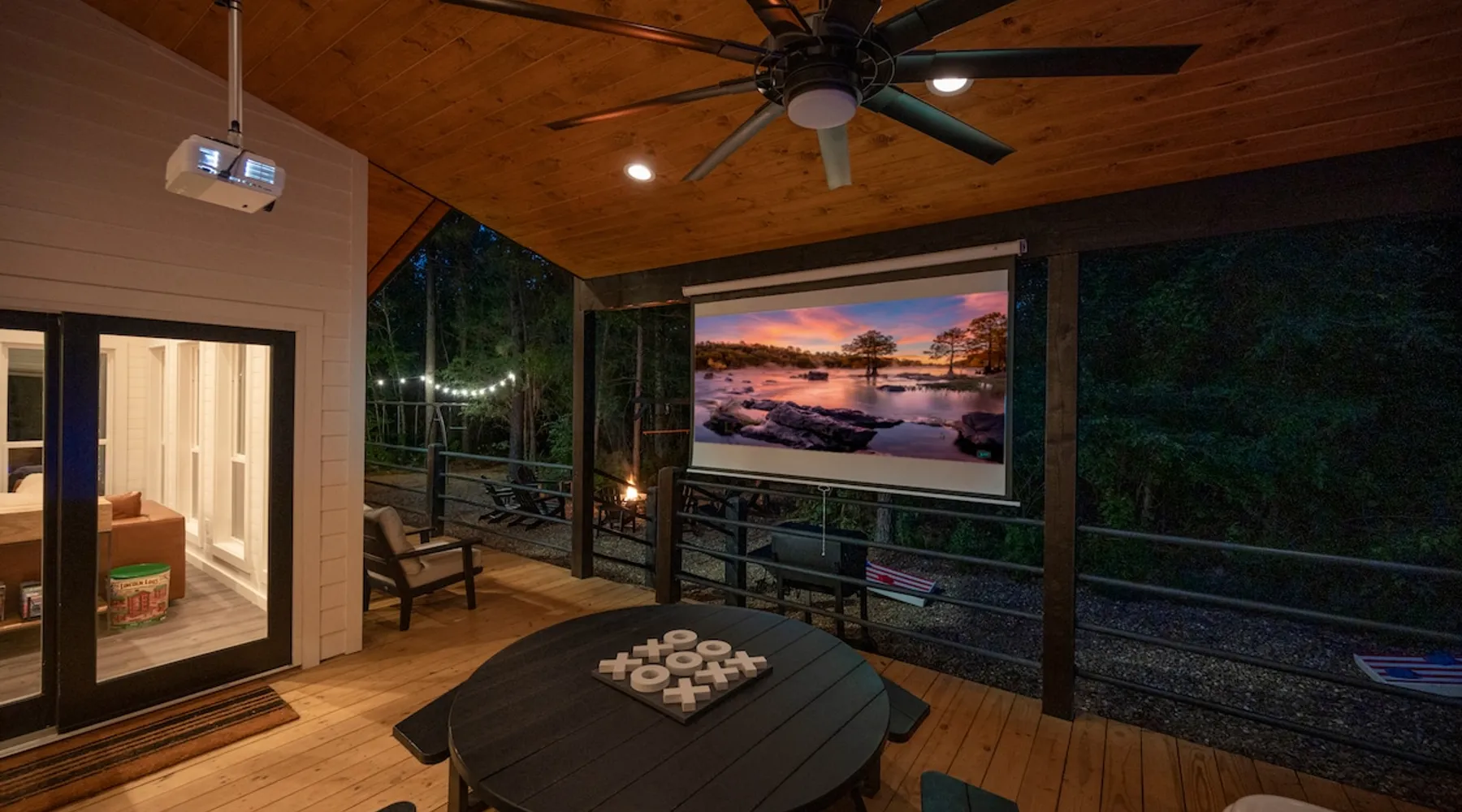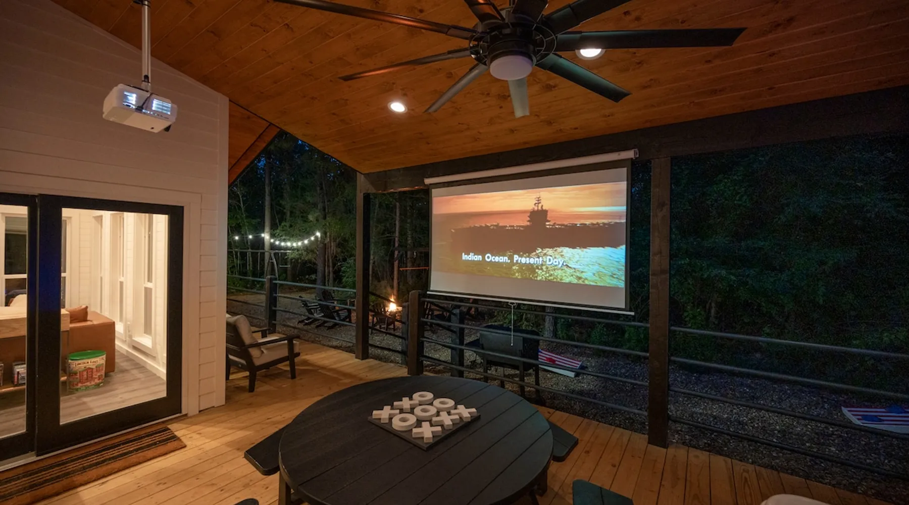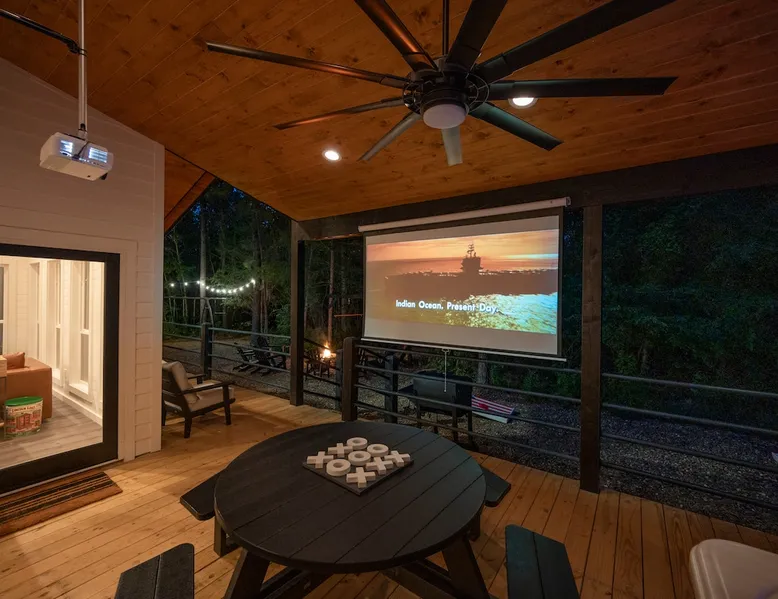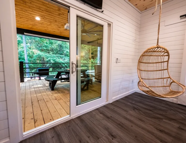 “Hammock Hideaway Broken Bow” ☀ 100” outdoor movie screen ☀ Large hot tub ☀ Giant family size hammock ☀ Outdoor fire pit ☀ Arcade console w/ favorite classics like Pac-Man + Dig Dug ☀ Indoor gas fireplace ☀ Children’s outdoor playset ☀ Corn hole ☀ Axe throwing game ☀ Smores Kit & starter bundle of firewood ☀ Life-size outdoor connect 4 ☀ Hook & ring game ☀ 2 bedrooms; 1 king, 1 twin-over-full bunk bed + 1 queen sofa bed ☀ 3 Smart TVs w/ Amazon Prime, Disney+, Hulu, Netflix, etc The space ☀ BBQ grill ☀ 2 full bathrooms; 1 ensuite w/ freestanding bathtub + separate shower; 1 w/shower ☀ Open floor plan kitchen + living room ☀ Fully equipped kitchen w/ everything you need to cook your favorite meals ☀ Fast, free wifi w/ speeds up to 663 Mbps for work, leisure + streaming needs ☀ Wide selection of books, games + toys for all ages ☀ Outdoor seating galore; rocking chairs, Adirondack chairs + hanging hammocks ☀ Kid-friendly; travel cot, standalone highchair, changing table + tableware ☀ DVD/Blu-ray player ☀ Air conditioning + heating ☀ Free washer + dryer ☀ Private backyard, back patio + front porch to enjoy tranquil country living Create cherished memories at “Hammock Hideaway”, a family-friendly new cabin with incredible outdoor living space and modern amenities. Soak in the hot tub after a long day, make s’mores around the fire pit, and enjoy a movie night on the 100” outdoor screen. This beautiful cabin is the perfect getaway for a family vacation or a couple's retreat. Here are a few kind words from our past guests: “Our family of four had a wonderful time at this lovely cabin in the woods! It’s a beautiful new build with all the amenities you could need for a stay. Easily accessible to all the activities of Broken Bow and Hochatown but also perfect for just hanging out, playing outside on the playground or watching a movie in the hot tub. The beautiful large windows that line the house make you feel like you are outside (my kind of camping!) The home is luxurious and comfortable with plenty of games, a well-stocked kitchen, and easy to use smart tv’s. Melissa is very communicative and quick to respond to any questions. We will back for sure!” –Nadine “Very beautiful cabin! We loved the projector outside while sitting in the hot tub and all the windows. It’s so peaceful and quiet. If I had any questions Melissa was quick to respond!” –Courtney “WOW, where do I begin? Truly the best Airbnb we have every stayed at and that is saying a lot. The personal touches made it very special for our family. You can tell, love, thought and effort that was put into making the luxury cabin so luxury and family friendly. They thought of everything. The house itself is brand new, everything is in perfect condition. The master bedroom shower makes you want to shower 3 times per day, the water pressure and shower heads (yes that is right a double shower that fits two adults comfortably) are amazing. The location is great and central to tons of family fun activities. We spent hours in the hot tub watching movies on the projector, fires in the fire pit every night, cooked just about every meal on the grill and my daughter was on the swing set constantly which gave us a nice break. Melissa's communication was excellent. She had great suggestions and responded quickly to a couple of questions we had. We can't wait to go back and have already recommended the luxury cabin to at least 5 or 6 other families we know. Oh yeah and I can't believe Broken Bow is only 3 hours away from DFW which makes it a perfect family vacation spot for us. Thanks so much Melissa, you made our family 's vacation special and memorable.” –Neil ☆☆ BEDROOMS ☆☆ Surrounded by nature, this beautiful cabin offers plenty of space for six guests to relax, enjoy each other’s company and make wonderful memories. The master bedroom is on the first floor and provides guests with a luxuriously comfortable king-sized bed with an iron frame, topped with a Nectar mattress. It’s so cozy, you may have trouble getting out of bed in the morning! Not only will you be able to enjoy your favorite TV shows on the 43” smart TV, but also the breathtaking views beyond the sliding doors. Cozy up in the hanging chair with your favorite morning beverage and a blanket. In the mornings, step through the doors to enjoy some yoga or a quiet cup of coffee on the back patio before everyone else wakes up. Upstairs on the second floor, you’ll find the second bedroom, complete with a twin-over-full bunk bed. Sit back and relax on one of the two oversized bean bags, while enjoying your favorite show or movie using the 32” smart TV and DVD player. It’s a great space for kids to hang out with a few board games, especially while listening to the pitter-patter of raindrops on a rainy day. Aside from the spacious bedrooms, additional sleeping space is available in the living room. You’ll find the large, leather sofa can be transformed into a sleeper sofa, offering you lots of flexibility in the sleeping arrangements. ☆☆ BATHROOMS ☆☆ Two stylish bathrooms with modern fixtures and plenty of room are available for use throughout your stay. On the first floor, the master bedroom has a private ensuite bathroom, complete with double sink vanity. Here you’ll be able to enjoy a long, relaxing soak in the large, farm-style bathtub. The spacious separate shower features not one, but two shower heads. It’s easily the most indulgent shower you’ll ever have! A second full bathroom can be found on the second floor, offering a modern, clean vibe and a hot shower. There’s plenty of bathroom space, so rest assured there won’t be a line for the bathroom. ☆☆ KITCHEN & LOUNGE ☆☆ As you enter the main floor of this luxurious cabin for the first time, you’ll be struck by the beauty of the high ceilings and the natural light streaming through the open-concept kitchen