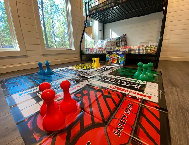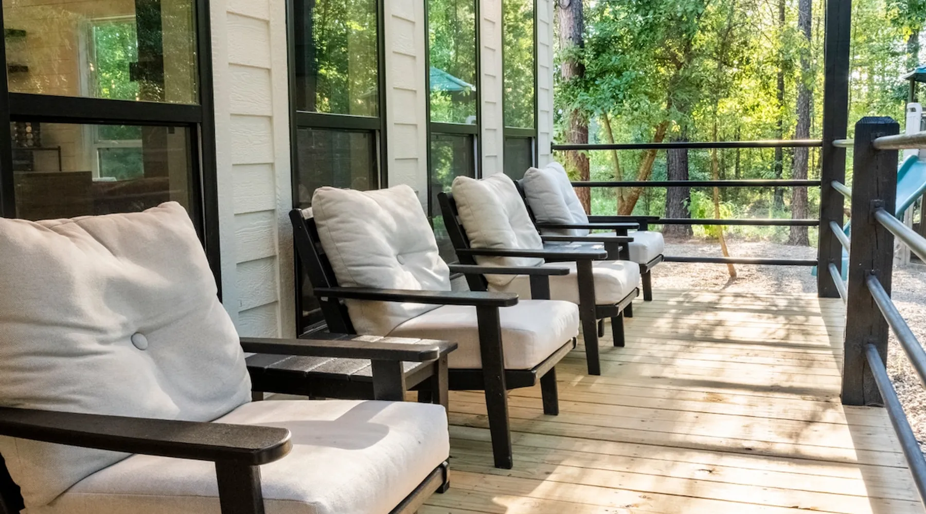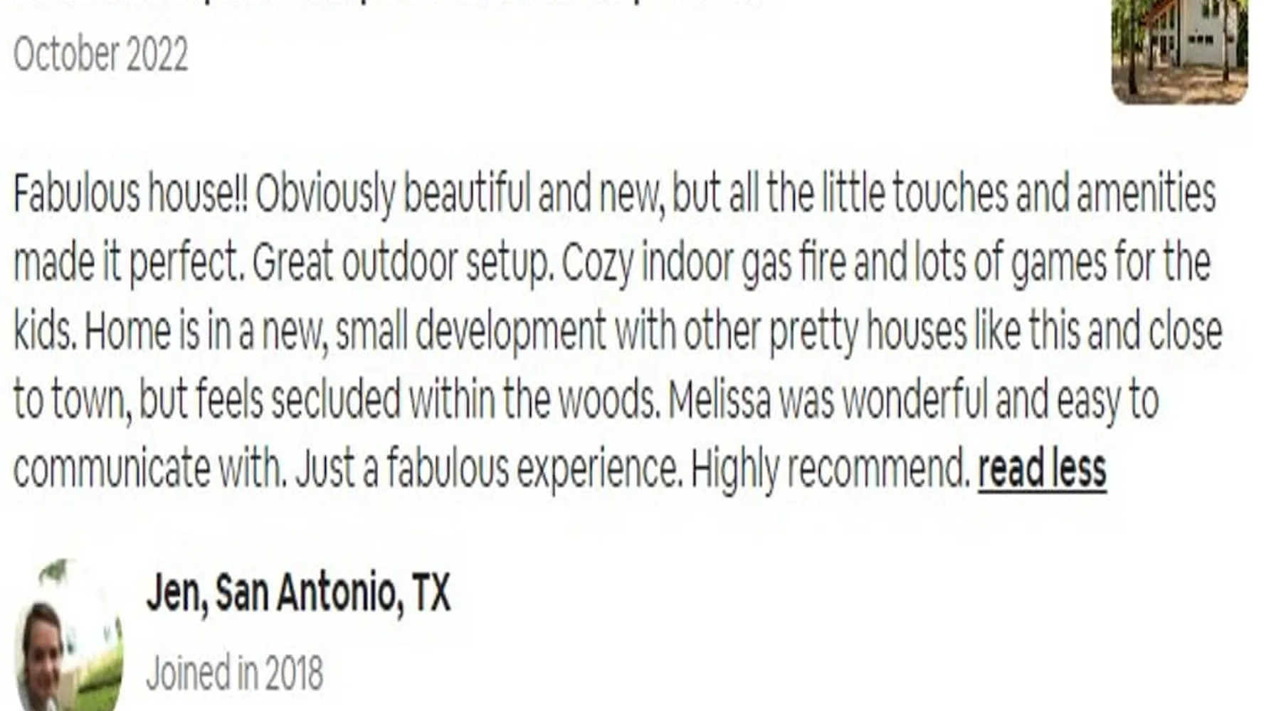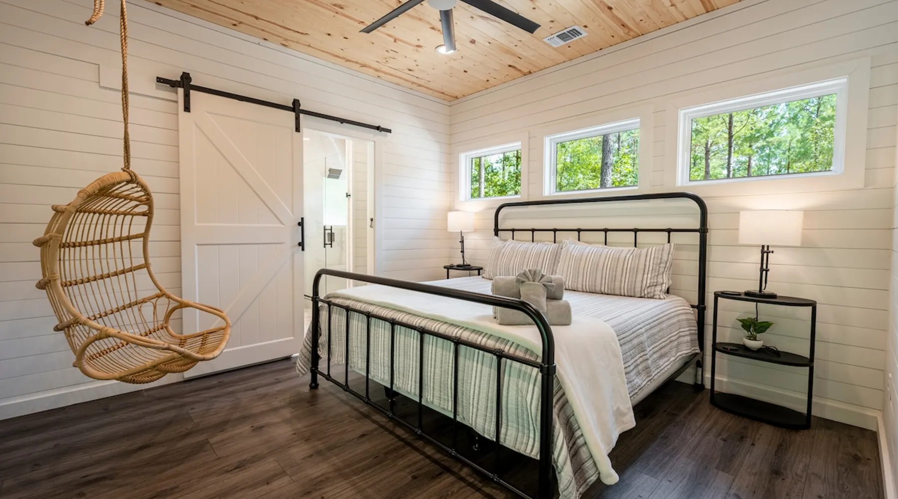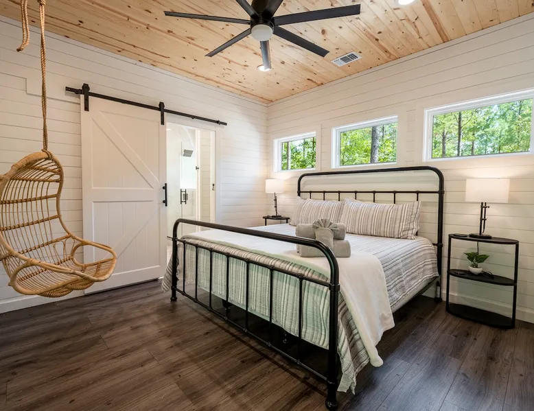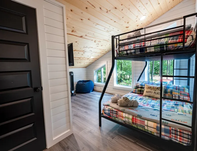 “Hammock Hideaway Broken Bow” ☀ 100” outdoor movie screen ☀ Large hot tub ☀ Giant family size hammock ☀ Outdoor fire pit ☀ Arcade console w/ favorite classics like Pac-Man + Dig Dug ☀ Indoor gas fireplace ☀ Children’s outdoor playset ☀ Corn hole ☀ Axe throwing game ☀ Smores Kit & starter bundle of firewood ☀ Life-size outdoor connect 4 ☀ Hook & ring game ☀ 2 bedrooms; 1 king, 1 twin-over-full bunk bed + 1 queen sofa bed ☀ 3 Smart TVs w/ Amazon Prime, Disney+, Hulu, Netflix, etc The space ☀ BBQ grill ☀ 2 full bathrooms; 1 ensuite w/ freestanding bathtub + separate shower; 1 w/shower ☀ Open floor plan kitchen + living room ☀ Fully equipped kitchen w/ everything you need to cook your favorite meals ☀ Fast, free wifi w/ speeds up to 663 Mbps for work, leisure + streaming needs ☀ Wide selection of books, games + toys for all ages ☀ Outdoor seating galore; rocking chairs, Adirondack chairs + hanging hammocks ☀ Kid-friendly; travel cot, standalone highchair, changing table + tableware ☀ DVD/Blu-ray player ☀ Air conditioning + heating ☀ Free washer + dryer ☀ Private backyard, back patio + front porch to enjoy tranquil country living Create cherished memories at “Hammock Hideaway”, a family-friendly new cabin with incredible outdoor living space and modern amenities. Soak in the hot tub after a long day, make s’mores around the fire pit, and enjoy a movie night on the 100” outdoor screen. This beautiful cabin is the perfect getaway for a family vacation or a couple's retreat. Here are a few kind words from our past guests: “Our family of four had a wonderful time at this lovely cabin in the woods! It’s a beautiful new build with all the amenities you could need for a stay. Easily accessible to all the activities of Broken Bow and Hochatown but also perfect for just hanging out, playing outside on the playground or watching a movie in the hot tub. The beautiful large windows that line the house make you feel like you are outside (my kind of camping!) The home is luxurious and comfortable with plenty of games, a well-stocked kitchen, and easy to use smart tv’s. Melissa is very communicative and quick to respond to any questions. We will back for sure!” –Nadine “Very beautiful cabin! We loved the projector outside while sitting in the hot tub and all the windows. It’s so peaceful and quiet. If I had any questions Melissa was quick to respond!” –Courtney “WOW, where do I begin? Truly the best Airbnb we have every stayed at and that is saying a lot. The personal touches made it very special for our family. You can tell, love, thought and effort that was put into making the luxury cabin so luxury and family friendly. They thought of everything. The house itself is brand new, everything is in perfect condition. The master bedroom shower makes you want to shower 3 times per day, the water pressure and shower heads (yes that is right a double shower that fits two adults comfortably) are amazing. The location is great and central to tons of family fun activities. We spent hours in the hot tub watching movies on the projector, fires in the fire pit every night, cooked just about every meal on the grill and my daughter was on the swing set constantly which gave us a nice break. Melissa's communication was excellent. She had great suggestions and responded quickly to a couple of questions we had. We can't wait to go back and have already recommended the luxury cabin to at least 5 or 6 other families we know. Oh yeah and I can't believe Broken Bow is only 3 hours away from DFW which makes it a perfect family vacation spot for us. Thanks so much Melissa, you made our family 's vacation special and memorable.” –Neil ☆☆ BEDROOMS ☆☆ Surrounded by nature, this beautiful cabin offers plenty of space for six guests to relax, enjoy each other’s company and make wonderful memories. The master bedroom is on the first floor and provides guests with a luxuriously comfortable king-sized bed with an iron frame, topped with a Nectar mattress. It’s so cozy, you may have trouble getting out of bed in the morning! Not only will you be able to enjoy your favorite TV shows on the 43” smart TV, but also the breathtaking views beyond the sliding doors. Cozy up in the hanging chair with your favorite morning beverage and a blanket. In the mornings, step through the doors to enjoy some yoga or a quiet cup of coffee on the back patio before everyone else wakes up. Upstairs on the second floor, you’ll find the second bedroom, complete with a twin-over-full bunk bed. Sit back and relax on one of the two oversized bean bags, while enjoying your favorite show or movie using the 32” smart TV and DVD player. It’s a great space for kids to hang out with a few board games, especially while listening to the pitter-patter of raindrops on a rainy day. Aside from the spacious bedrooms, additional sleeping space is available in the living room. You’ll find the large, leather sofa can be transformed into a sleeper sofa, offering you lots of flexibility in the sleeping arrangements. ☆☆ BATHROOMS ☆☆ Two stylish bathrooms with modern fixtures and plenty of room are available for use throughout your stay. On the first floor, the master bedroom has a private ensuite bathroom, complete with double sink vanity. Here you’ll be able to enjoy a long, relaxing soak in the large, farm-style bathtub. The spacious separate shower features not one, but two shower heads. It’s easily the most indulgent shower you’ll ever have! A second full bathroom can be found on the second floor, offering a modern, clean vibe and a hot shower. There’s plenty of bathroom space, so rest assured there won’t be a line for the bathroom. ☆☆ KITCHEN & LOUNGE ☆☆ As you enter the main floor of this luxurious cabin for the first time, you’ll be struck by the beauty of the high ceilings and the natural light streaming through the open-concept kitchen
