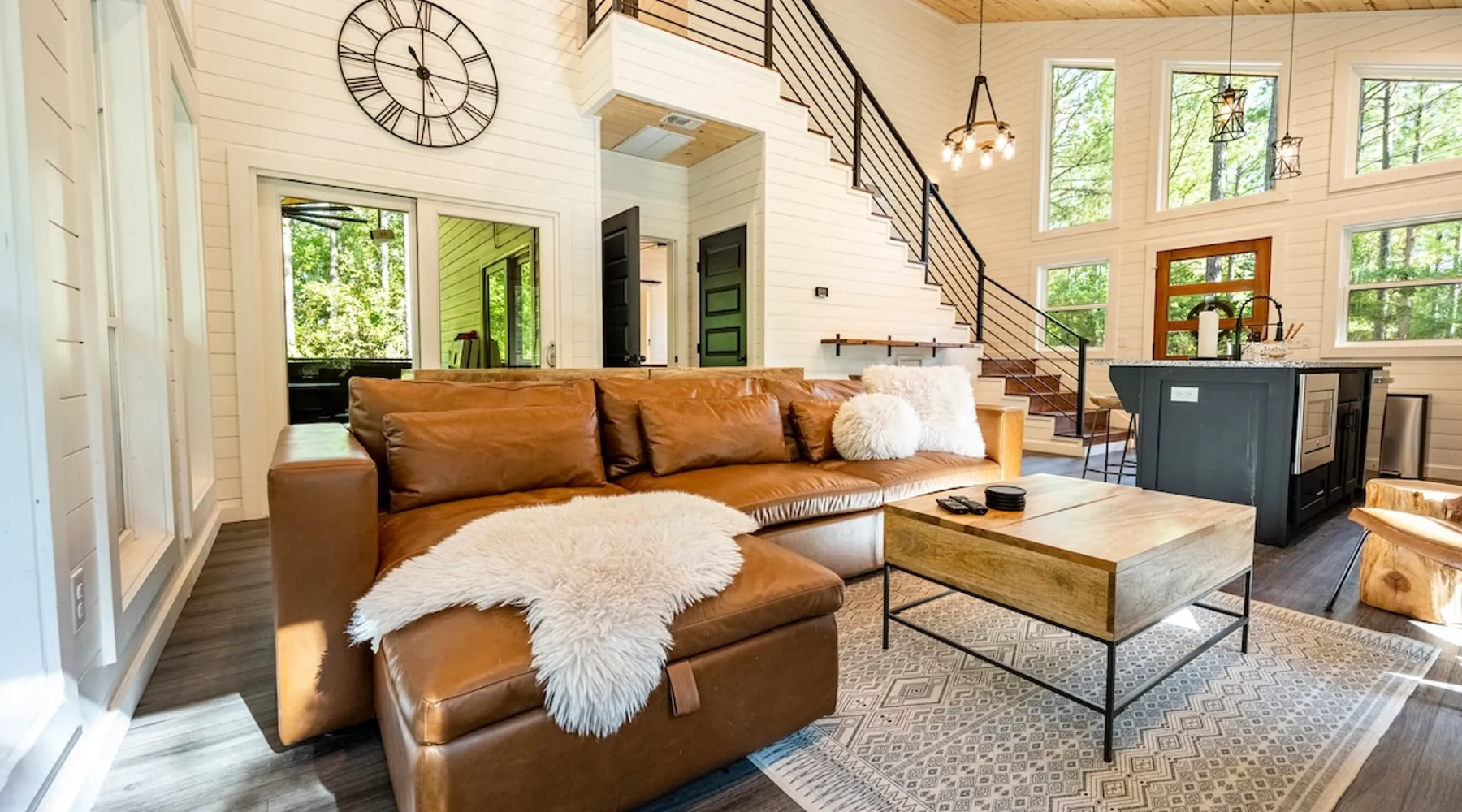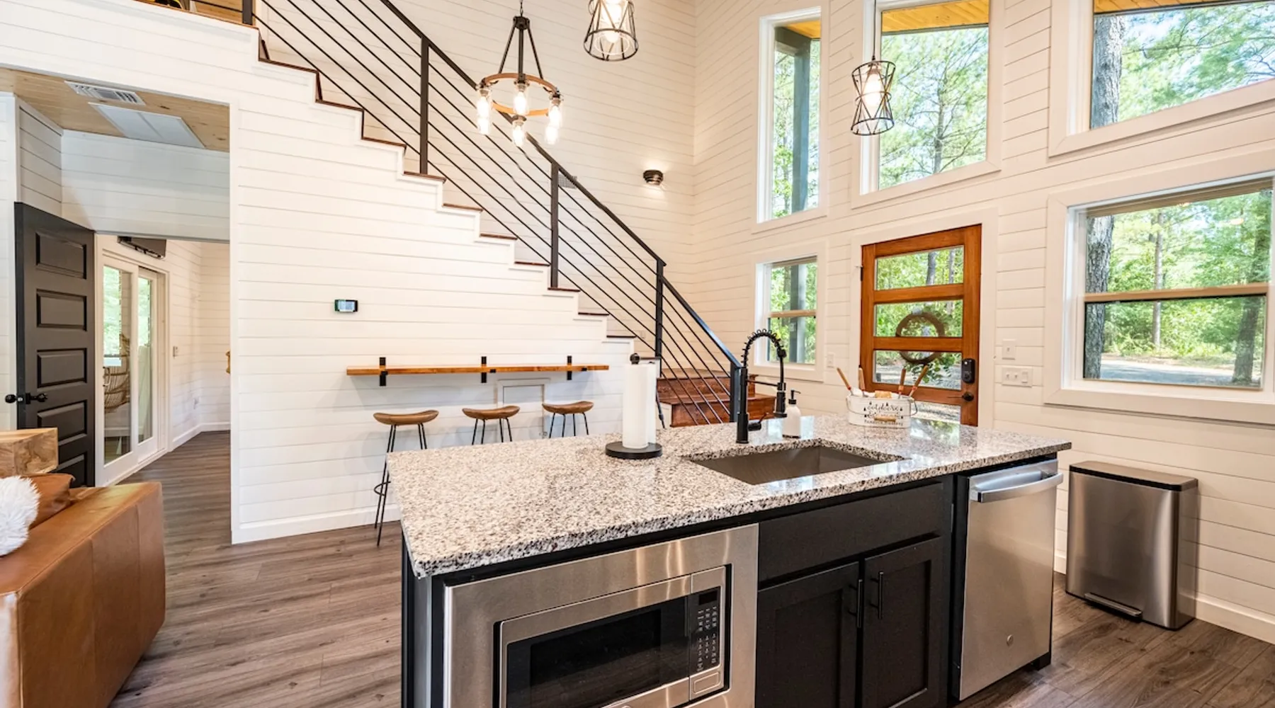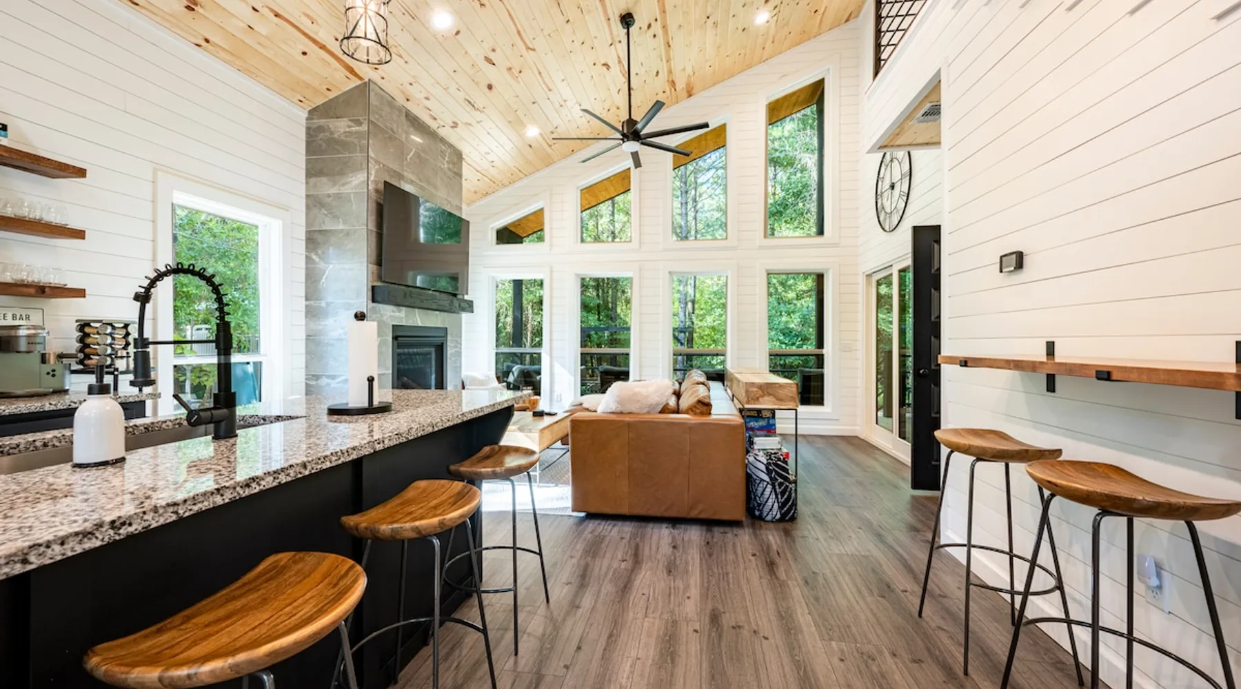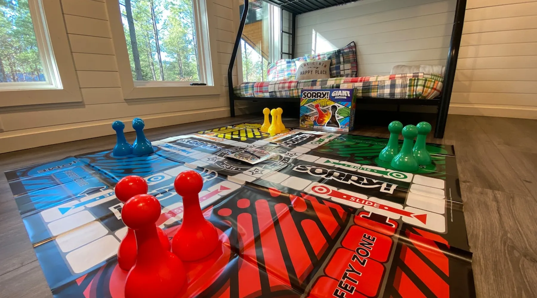 “Hammock Hideaway Broken Bow” ☀ 100” outdoor movie screen ☀ Large hot tub ☀ Giant family size hammock ☀ Outdoor fire pit ☀ Arcade console w/ favorite classics like Pac-Man + Dig Dug ☀ Indoor gas fireplace ☀ Children’s outdoor playset ☀ Corn hole ☀ Axe throwing game ☀ Smores Kit & starter bundle of firewood ☀ Life-size outdoor connect 4 ☀ Hook & ring game ☀ 2 bedrooms; 1 king, 1 twin-over-full bunk bed + 1 queen sofa bed ☀ 3 Smart TVs w/ Amazon Prime, Disney+, Hulu, Netflix, etc The space ☀ BBQ grill ☀ 2 full bathrooms; 1 ensuite w/ freestanding bathtub + separate shower; 1 w/shower ☀ Open floor plan kitchen + living room ☀ Fully equipped kitchen w/ everything you need to cook your favorite meals ☀ Fast, free wifi w/ speeds up to 663 Mbps for work, leisure + streaming needs ☀ Wide selection of books, games + toys for all ages ☀ Outdoor seating galore; rocking chairs, Adirondack chairs + hanging hammocks ☀ Kid-friendly; travel cot, standalone highchair, changing table + tableware ☀ DVD/Blu-ray player ☀ Air conditioning + heating ☀ Free washer + dryer ☀ Private backyard, back patio + front porch to enjoy tranquil country living Create cherished memories at “Hammock Hideaway”, a family-friendly new cabin with incredible outdoor living space and modern amenities. Soak in the hot tub after a long day, make s’mores around the fire pit, and enjoy a movie night on the 100” outdoor screen. This beautiful cabin is the perfect getaway for a family vacation or a couple's retreat. Here are a few kind words from our past guests: “Our family of four had a wonderful time at this lovely cabin in the woods! It’s a beautiful new build with all the amenities you could need for a stay. Easily accessible to all the activities of Broken Bow and Hochatown but also perfect for just hanging out, playing outside on the playground or watching a movie in the hot tub. The beautiful large windows that line the house make you feel like you are outside (my kind of camping!) The home is luxurious and comfortable with plenty of games, a well-stocked kitchen, and easy to use smart tv’s. Melissa is very communicative and quick to respond to any questions. We will back for sure!” –Nadine “Very beautiful cabin! We loved the projector outside while sitting in the hot tub and all the windows. It’s so peaceful and quiet. If I had any questions Melissa was quick to respond!” –Courtney “WOW, where do I begin? Truly the best Airbnb we have every stayed at and that is saying a lot. The personal touches made it very special for our family. You can tell, love, thought and effort that was put into making the luxury cabin so luxury and family friendly. They thought of everything. The house itself is brand new, everything is in perfect condition. The master bedroom shower makes you want to shower 3 times per day, the water pressure and shower heads (yes that is right a double shower that fits two adults comfortably) are amazing. The location is great and central to tons of family fun activities. We spent hours in the hot tub watching movies on the projector, fires in the fire pit every night, cooked just about every meal on the grill and my daughter was on the swing set constantly which gave us a nice break. Melissa's communication was excellent. She had great suggestions and responded quickly to a couple of questions we had. We can't wait to go back and have already recommended the luxury cabin to at least 5 or 6 other families we know. Oh yeah and I can't believe Broken Bow is only 3 hours away from DFW which makes it a perfect family vacation spot for us. Thanks so much Melissa, you made our family 's vacation special and memorable.” –Neil ☆☆ BEDROOMS ☆☆ Surrounded by nature, this beautiful cabin offers plenty of space for six guests to relax, enjoy each other’s company and make wonderful memories. The master bedroom is on the first floor and provides guests with a luxuriously comfortable king-sized bed with an iron frame, topped with a Nectar mattress. It’s so cozy, you may have trouble getting out of bed in the morning! Not only will you be able to enjoy your favorite TV shows on the 43” smart TV, but also the breathtaking views beyond the sliding doors. Cozy up in the hanging chair with your favorite morning beverage and a blanket. In the mornings, step through the doors to enjoy some yoga or a quiet cup of coffee on the back patio before everyone else wakes up. Upstairs on the second floor, you’ll find the second bedroom, complete with a twin-over-full bunk bed. Sit back and relax on one of the two oversized bean bags, while enjoying your favorite show or movie using the 32” smart TV and DVD player. It’s a great space for kids to hang out with a few board games, especially while listening to the pitter-patter of raindrops on a rainy day. Aside from the spacious bedrooms, additional sleeping space is available in the living room. You’ll find the large, leather sofa can be transformed into a sleeper sofa, offering you lots of flexibility in the sleeping arrangements. ☆☆ BATHROOMS ☆☆ Two stylish bathrooms with modern fixtures and plenty of room are available for use throughout your stay. On the first floor, the master bedroom has a private ensuite bathroom, complete with double sink vanity. Here you’ll be able to enjoy a long, relaxing soak in the large, farm-style bathtub. The spacious separate shower features not one, but two shower heads. It’s easily the most indulgent shower you’ll ever have! A second full bathroom can be found on the second floor, offering a modern, clean vibe and a hot shower. There’s plenty of bathroom space, so rest assured there won’t be a line for the bathroom. ☆☆ KITCHEN & LOUNGE ☆☆ As you enter the main floor of this luxurious cabin for the first time, you’ll be struck by the beauty of the high ceilings and the natural light streaming through the open-concept kitchen