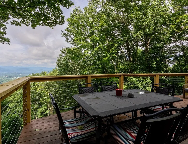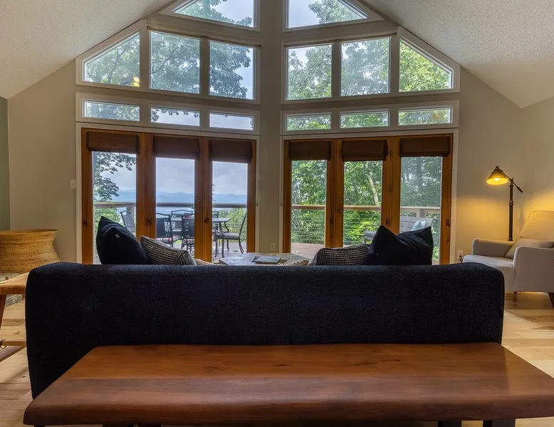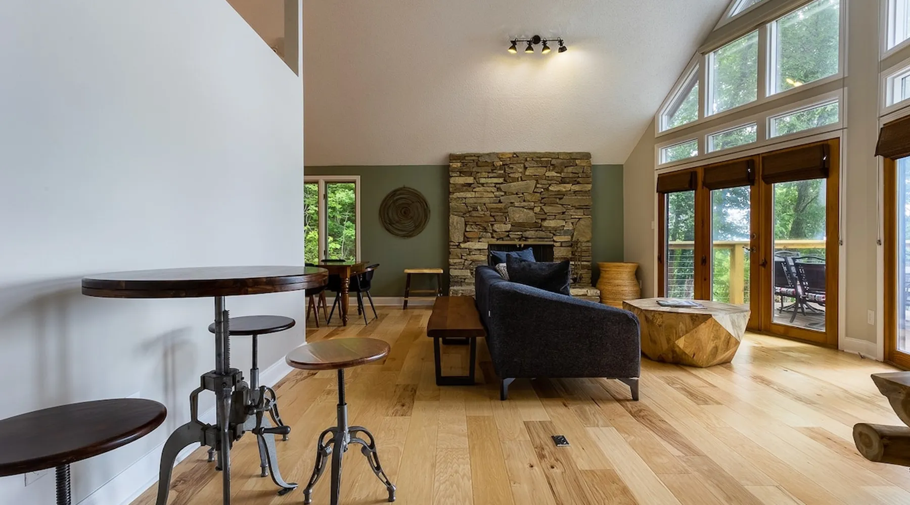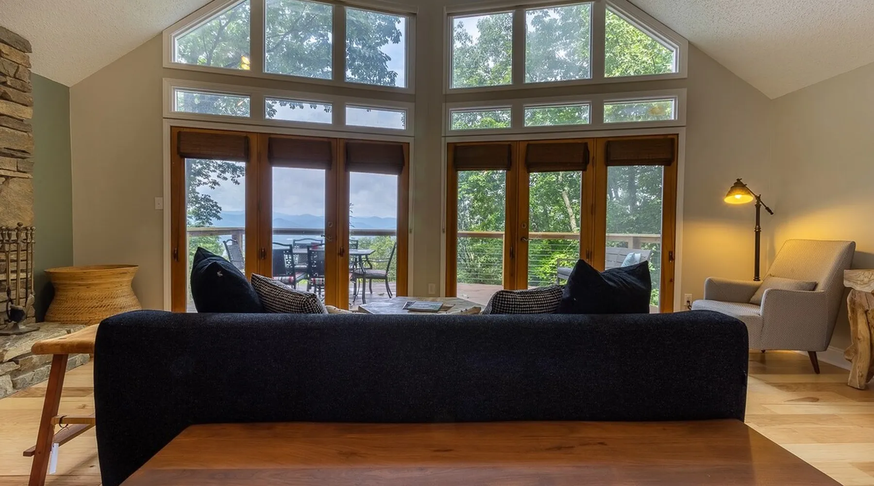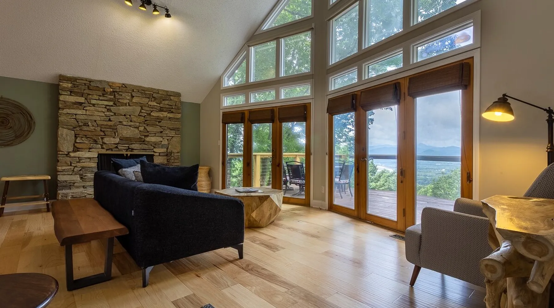 Views & Brews has an amazing combination of fabulous views, seclusion in the midst of nature, and proximity to all Asheville has to offer. Views of Lake Julian and Mount Pisgah (and more) are available year-round. Located on 2 acres of land, there are no visible neighbors, and you’re 5 minutes to the grocery store, dining, and more! The space When entering the mountain home, you will be greeted with a wall of windows and so much natural light. The great room has a wood burning fireplace with a beautiful stone chimney. With the open floor plan, you flow right into the fully equipped kitchen and dining area where everyone will gather to enjoy your favorite dishes. The main level great room or lower-level family room provide plenty of space for all to gather or find some privacy with comfortable guest rooms to choose from. You will also have plenty of outdoor space with the large expansive deck or the terrace level patio. Pull up a chair and take in the views and mountain air, or jump in the hot tub to relax after a day of exploring. Oh, and you’ll also love the new outdoor sauna overlooking those same mountains and lake you enjoy from the deck! Bring your dog and come create your own memorable mountain experience! Exclusive Yonder Special: When you book Views & Brews you will receive a special code for discounted tickets to the Biltmore Estate! Contact Yonder for more info. Home Truths: - Sleeps in beds: 14 - Max Occupancy: 16 - There are 2 Sleeping spaces in the lower level, 1 King, 1 Queen and 1 Full (Total of 7 beds in the property) - A sleeper sofa is available in the lower level - The driveway is steep but 4WD is recommended, specifically during winter months. Driveway renovations, including new entrance, completed late summer 2022. - There is a shared access road, do not block at the base of the driveway - There are 2 Sleeping spaces in the lower level, 1 King, 1 Queen and 1 Full (Total of 7 beds in the property) - A sleeper sofa is available in the lower level - We provide linens for all beds; other occupancy will require guests providing their own linens - Internet Speed: Download - 200Mbps - Cleaning fee: We openly share our Cleaning Fees in a manner of full disclosure, as we think this is the most honest and forthright approach with respect to our guests. Our Cleaning Fees are backed by our Clean Guarantee, which reflects the highest level of standards, pristine environments for our guests, and a level of clean that surpasses any other vacation homes; we literally guarantee it! Quiet Policy: Parties, loud noise and unruly behavior are absolutely prohibited, and guests are expected to respect the peace this mountain retreat area affords. Pets: This home and property are very dog friendly, and guests are welcome to bring their "best friends" with them. There is a non-refundable Pet Fee of $130 with a limit of 2 dogs per booking party. *If additional pets are approved, additional charges will apply (This is NOT automatically added by VRBO, TripAdvisor or Airbnb, so please let us know so that we can add the fee for you) Early Check In and/or Late Check Out may be possible, depending on cleaning schedules and other reservations. If it is possible, there may be an additional fee that would be determined based on the time that you wish to check in or out and the seasonal rates. Please inquire for details regarding payment, the cancellation policy, military discounts, and trip insurance. Last Minute Bookings: Reservations made within 7 days of check-in require additional documentation before confirmation.
