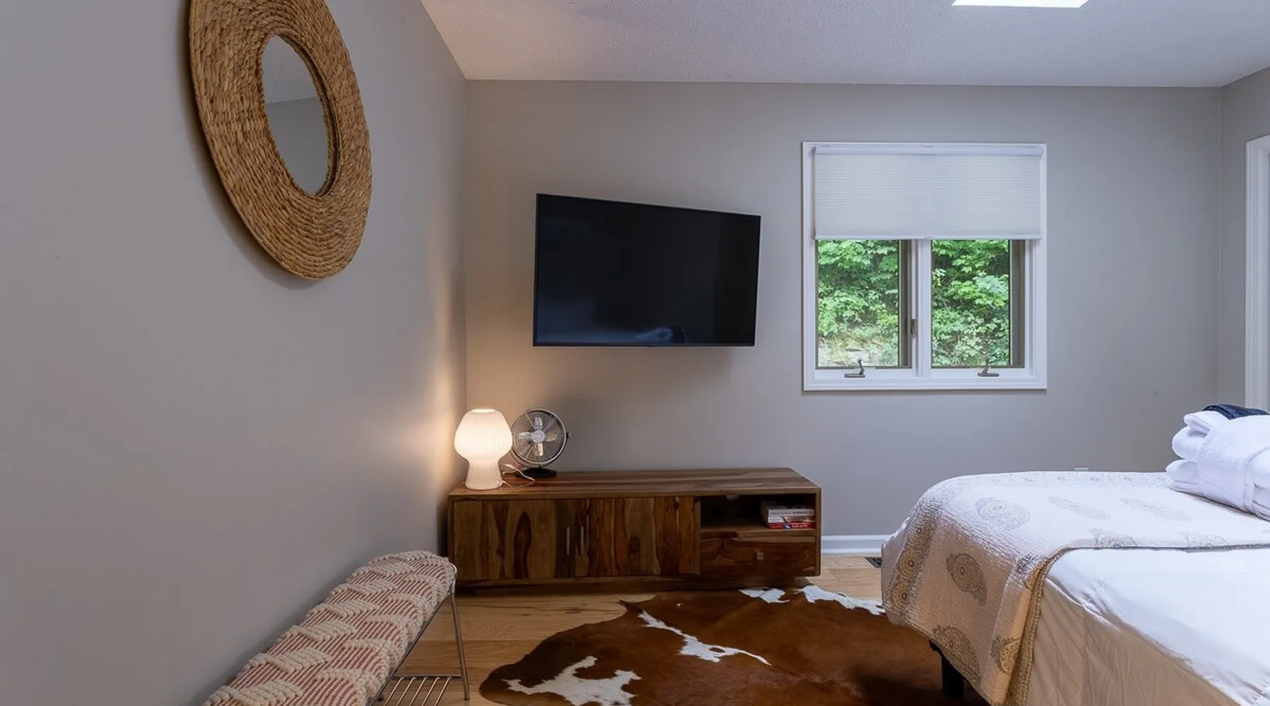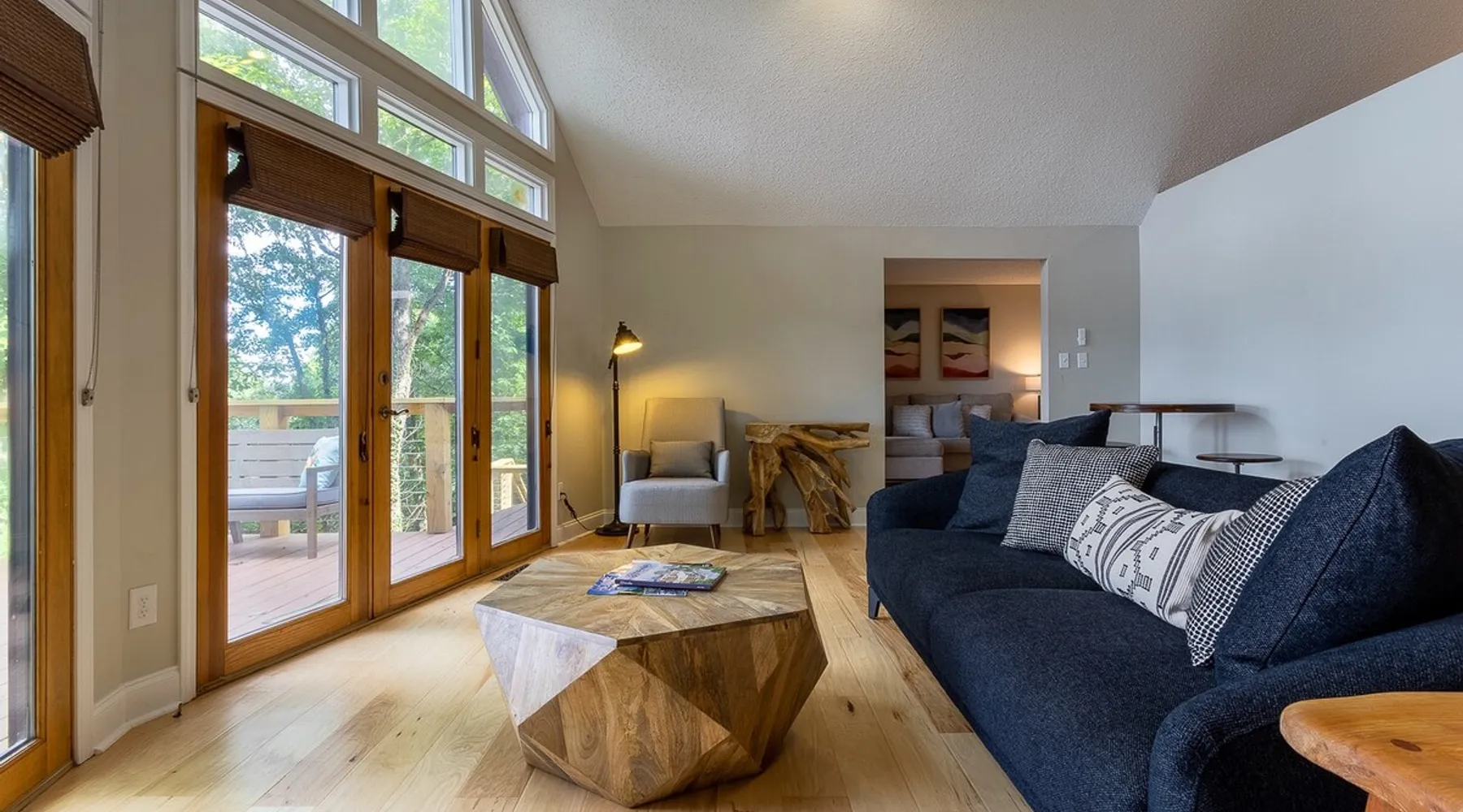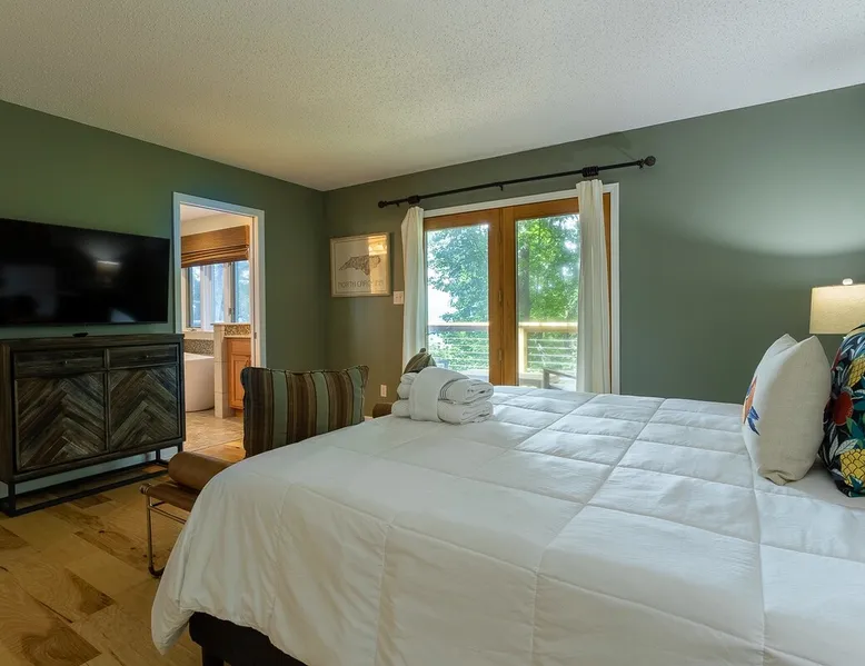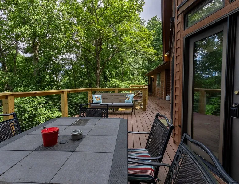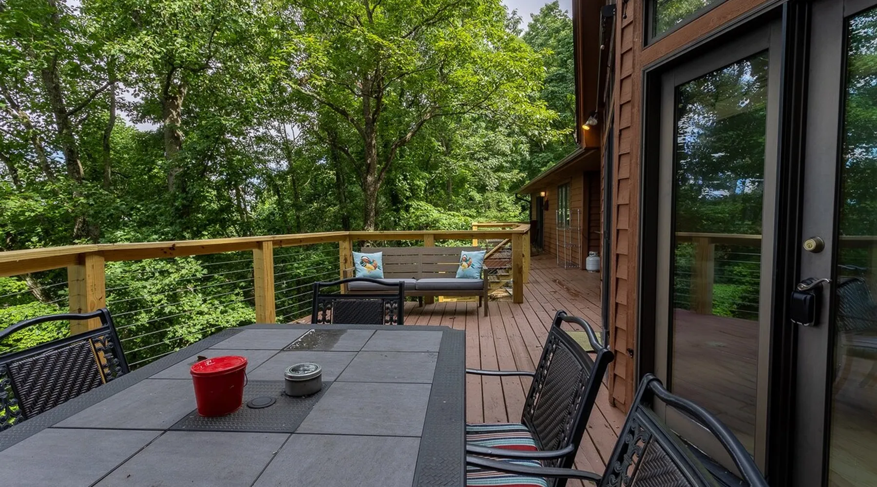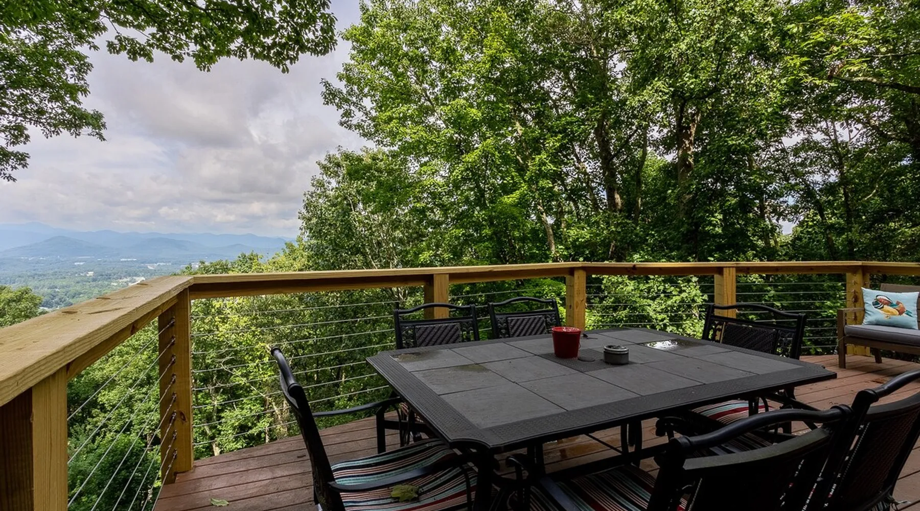 Views & Brews has an amazing combination of fabulous views, seclusion in the midst of nature, and proximity to all Asheville has to offer. Views of Lake Julian and Mount Pisgah (and more) are available year-round. Located on 2 acres of land, there are no visible neighbors, and you’re 5 minutes to the grocery store, dining, and more! The space When entering the mountain home, you will be greeted with a wall of windows and so much natural light. The great room has a wood burning fireplace with a beautiful stone chimney. With the open floor plan, you flow right into the fully equipped kitchen and dining area where everyone will gather to enjoy your favorite dishes. The main level great room or lower-level family room provide plenty of space for all to gather or find some privacy with comfortable guest rooms to choose from. You will also have plenty of outdoor space with the large expansive deck or the terrace level patio. Pull up a chair and take in the views and mountain air, or jump in the hot tub to relax after a day of exploring. Oh, and you’ll also love the new outdoor sauna overlooking those same mountains and lake you enjoy from the deck! Bring your dog and come create your own memorable mountain experience! Exclusive Yonder Special: When you book Views & Brews you will receive a special code for discounted tickets to the Biltmore Estate! Contact Yonder for more info. Home Truths: - Sleeps in beds: 14 - Max Occupancy: 16 - There are 2 Sleeping spaces in the lower level, 1 King, 1 Queen and 1 Full (Total of 7 beds in the property) - A sleeper sofa is available in the lower level - The driveway is steep but 4WD is recommended, specifically during winter months. Driveway renovations, including new entrance, completed late summer 2022. - There is a shared access road, do not block at the base of the driveway - There are 2 Sleeping spaces in the lower level, 1 King, 1 Queen and 1 Full (Total of 7 beds in the property) - A sleeper sofa is available in the lower level - We provide linens for all beds; other occupancy will require guests providing their own linens - Internet Speed: Download - 200Mbps - Cleaning fee: We openly share our Cleaning Fees in a manner of full disclosure, as we think this is the most honest and forthright approach with respect to our guests. Our Cleaning Fees are backed by our Clean Guarantee, which reflects the highest level of standards, pristine environments for our guests, and a level of clean that surpasses any other vacation homes; we literally guarantee it! Quiet Policy: Parties, loud noise and unruly behavior are absolutely prohibited, and guests are expected to respect the peace this mountain retreat area affords. Pets: This home and property are very dog friendly, and guests are welcome to bring their "best friends" with them. There is a non-refundable Pet Fee of $130 with a limit of 2 dogs per booking party. *If additional pets are approved, additional charges will apply (This is NOT automatically added by VRBO, TripAdvisor or Airbnb, so please let us know so that we can add the fee for you) Early Check In and/or Late Check Out may be possible, depending on cleaning schedules and other reservations. If it is possible, there may be an additional fee that would be determined based on the time that you wish to check in or out and the seasonal rates. Please inquire for details regarding payment, the cancellation policy, military discounts, and trip insurance. Last Minute Bookings: Reservations made within 7 days of check-in require additional documentation before confirmation.