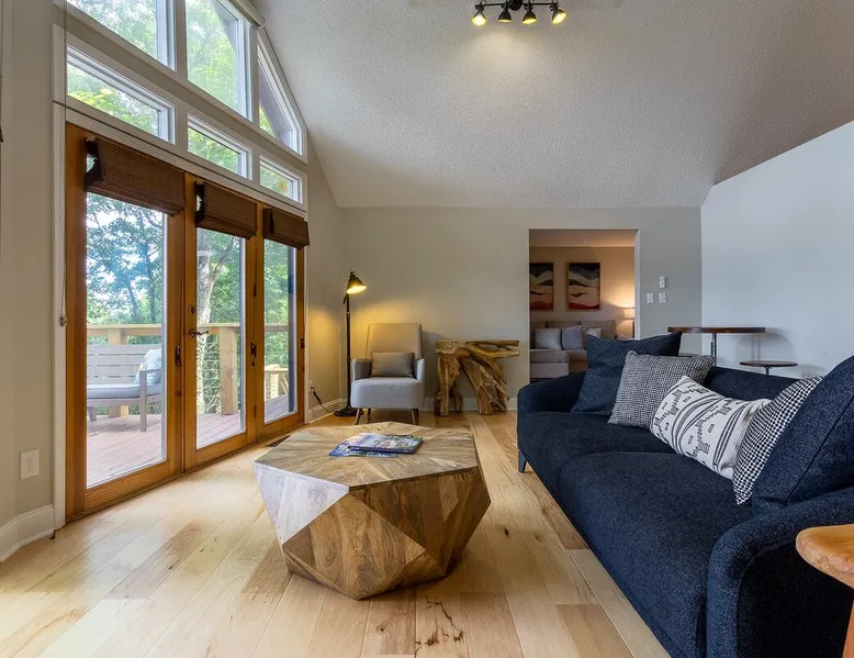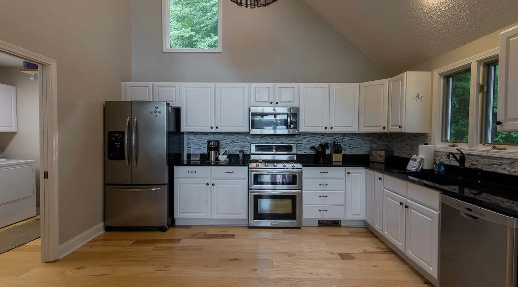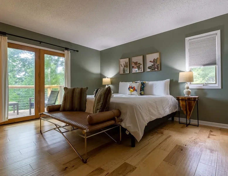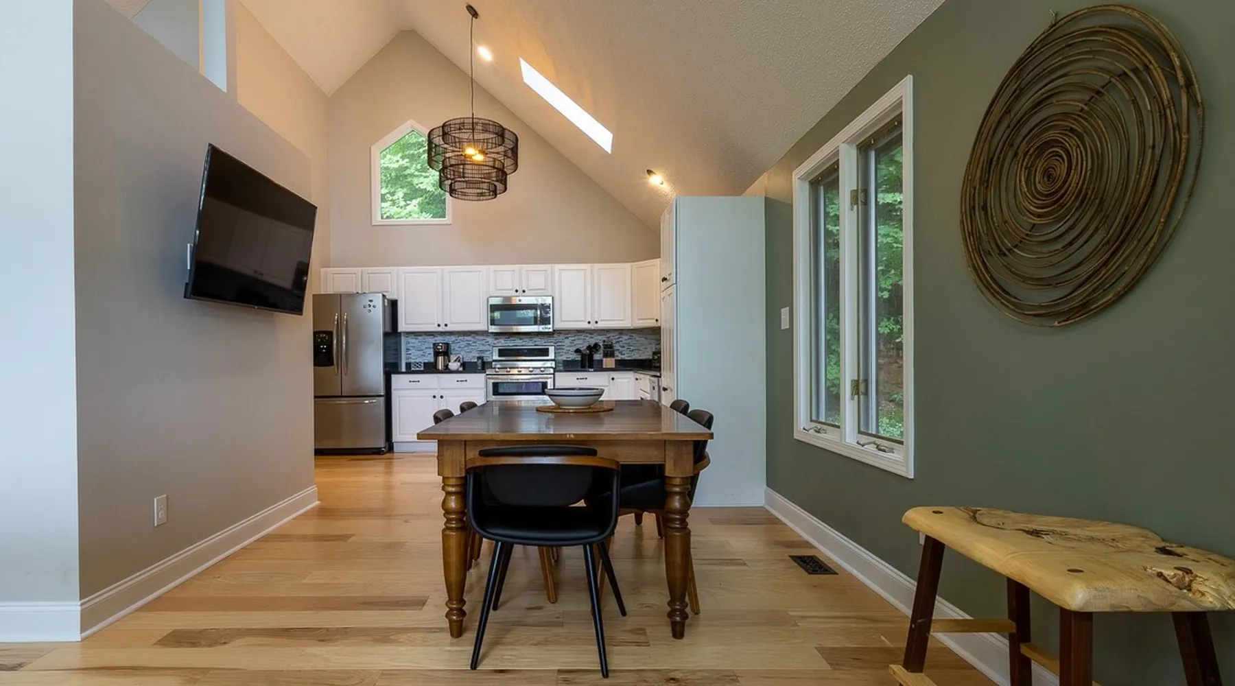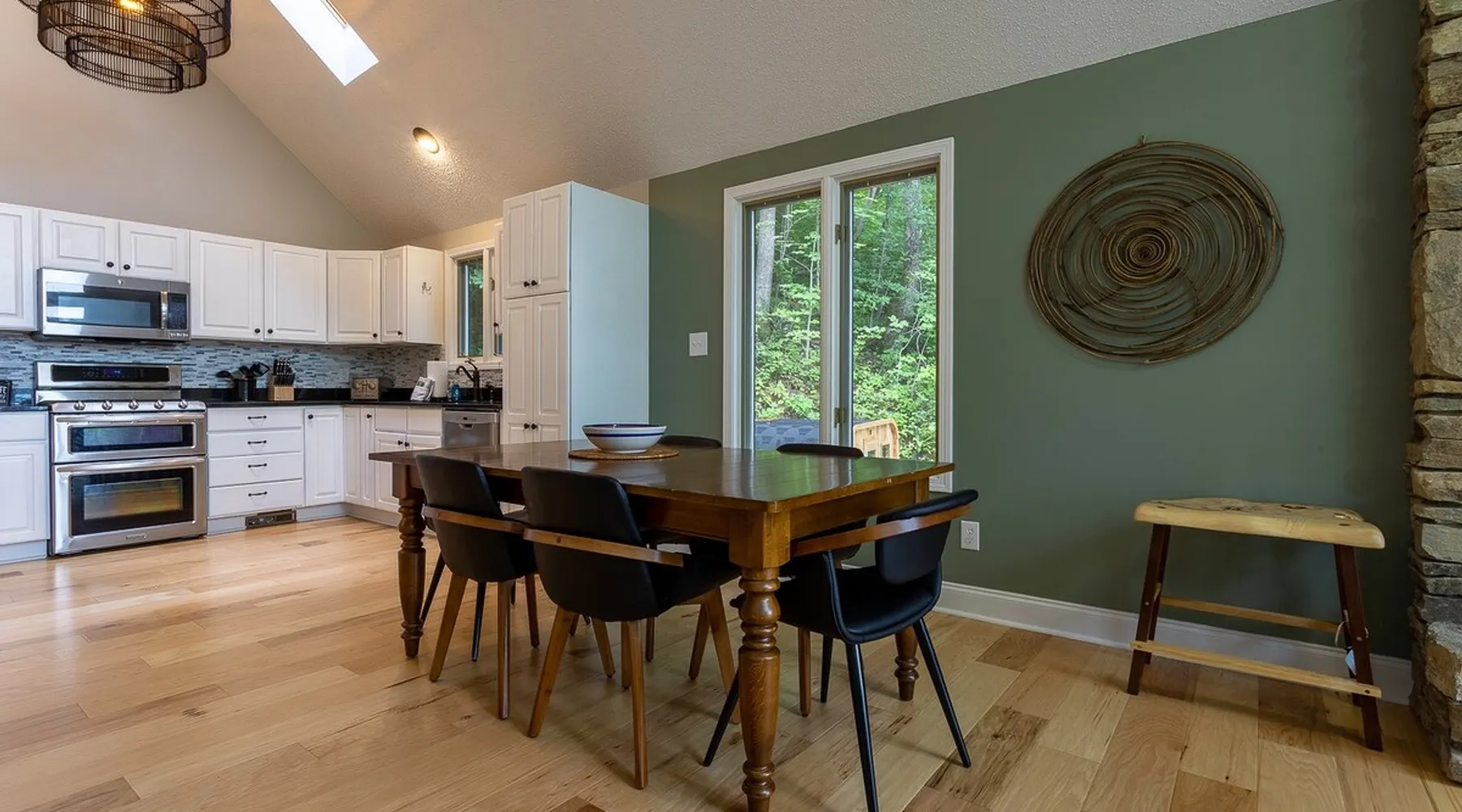 Views & Brews has an amazing combination of fabulous views, seclusion in the midst of nature, and proximity to all Asheville has to offer. Views of Lake Julian and Mount Pisgah (and more) are available year-round. Located on 2 acres of land, there are no visible neighbors, and you’re 5 minutes to the grocery store, dining, and more! The space When entering the mountain home, you will be greeted with a wall of windows and so much natural light. The great room has a wood burning fireplace with a beautiful stone chimney. With the open floor plan, you flow right into the fully equipped kitchen and dining area where everyone will gather to enjoy your favorite dishes. The main level great room or lower-level family room provide plenty of space for all to gather or find some privacy with comfortable guest rooms to choose from. You will also have plenty of outdoor space with the large expansive deck or the terrace level patio. Pull up a chair and take in the views and mountain air, or jump in the hot tub to relax after a day of exploring. Oh, and you’ll also love the new outdoor sauna overlooking those same mountains and lake you enjoy from the deck! Bring your dog and come create your own memorable mountain experience! Exclusive Yonder Special: When you book Views & Brews you will receive a special code for discounted tickets to the Biltmore Estate! Contact Yonder for more info. Home Truths: - Sleeps in beds: 14 - Max Occupancy: 16 - There are 2 Sleeping spaces in the lower level, 1 King, 1 Queen and 1 Full (Total of 7 beds in the property) - A sleeper sofa is available in the lower level - The driveway is steep but 4WD is recommended, specifically during winter months. Driveway renovations, including new entrance, completed late summer 2022. - There is a shared access road, do not block at the base of the driveway - There are 2 Sleeping spaces in the lower level, 1 King, 1 Queen and 1 Full (Total of 7 beds in the property) - A sleeper sofa is available in the lower level - We provide linens for all beds; other occupancy will require guests providing their own linens - Internet Speed: Download - 200Mbps - Cleaning fee: We openly share our Cleaning Fees in a manner of full disclosure, as we think this is the most honest and forthright approach with respect to our guests. Our Cleaning Fees are backed by our Clean Guarantee, which reflects the highest level of standards, pristine environments for our guests, and a level of clean that surpasses any other vacation homes; we literally guarantee it! Quiet Policy: Parties, loud noise and unruly behavior are absolutely prohibited, and guests are expected to respect the peace this mountain retreat area affords. Pets: This home and property are very dog friendly, and guests are welcome to bring their "best friends" with them. There is a non-refundable Pet Fee of $130 with a limit of 2 dogs per booking party. *If additional pets are approved, additional charges will apply (This is NOT automatically added by VRBO, TripAdvisor or Airbnb, so please let us know so that we can add the fee for you) Early Check In and/or Late Check Out may be possible, depending on cleaning schedules and other reservations. If it is possible, there may be an additional fee that would be determined based on the time that you wish to check in or out and the seasonal rates. Please inquire for details regarding payment, the cancellation policy, military discounts, and trip insurance. Last Minute Bookings: Reservations made within 7 days of check-in require additional documentation before confirmation.