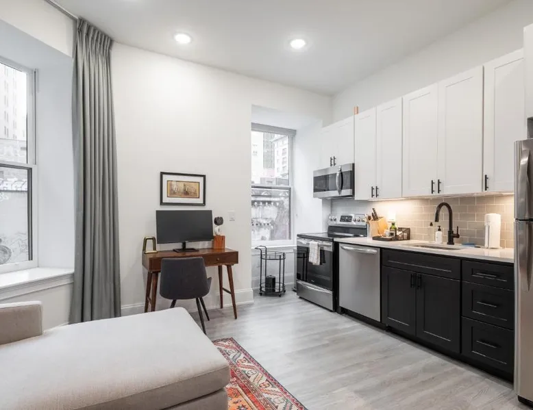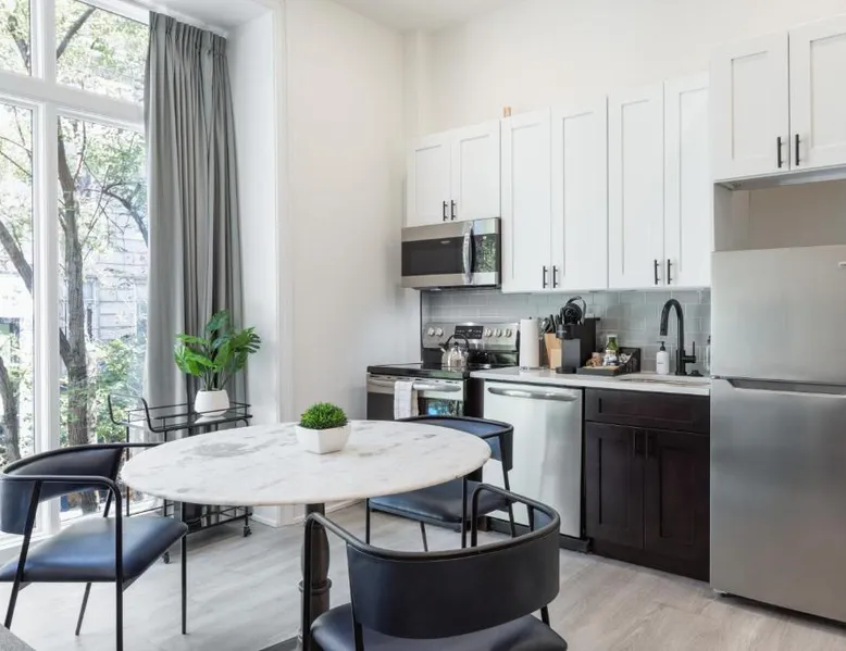 Prime City Center Location: Sosuite at French Quarters - Rittenhouse Square in Philadelphia offers a convenient location with Mutter Museum less than 0.6 mi away and the Liberty Bell 1.2 mi from the property. Philadelphia International Airport is 7.5 mi distant. Comfortable Accommodations: The aparthotel features family rooms with private bathrooms, air-conditioning, and parquet floors. Each unit includes a kitchen with a refrigerator, microwave, dishwasher, and stovetop. Additional amenities include a balcony with city views, sofa bed, and work desk. Convenient Facilities: Guests benefit from free WiFi, private and express check-in and check-out services, a elevator, and a washing machine. The property also offers a dining table, TV, and a seating area. Nearby Attractions: Nearby attractions include the Barnes Foundation, Philadelphia Museum of Art, and an ice-skating rink. The University of Pennsylvania and Philadelphia Zoo are 4 and 3.1 mi away respectively. This air-conditioned apartment consists of 1 living room, 1 separate bedroom and 1 bathroom with a shower. In the well-fitted kitchen, guests will find a stovetop, a refrigerator, a dishwasher and kitchenware. The apartment features parquet floors, a seating area with a flat-screen TV, a washing machine, a tea and coffee maker, as well as a wardrobe. The unit offers 1 bed.