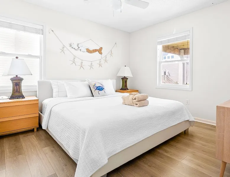 🌊 "Surf Landing" in the heart of Topsail Island 📍 Steps to Surf City restaurants & shops 🏖️ Beach access just across the street 🛏️ 2 King bedrooms for ultimate comfort 🌅 3 decks with ocean & sunset views 🚿 Outdoor hot/cold enclosed shower 📍 Located in the desirable S-Curve of Surf City 🧺 Linens, towels & extras included ✨ NEW for 2025! Renovated kitchen + 2 large dining tables on the back deck (seats 10+) The space Welcome to Surf Landing—your launchpad for the perfect Surf City vacation! 🏖️ If location is everything, then Surf Landing has it all. Our 5-bedroom, dog-friendly beach house sits right across the street from super easy beach access (yes, that close!) and is just steps to every local favorite—coffee shops, ice cream, restaurants, shopping, the pier... you name it, you're a flip-flop stroll away. No driving, no hassle, just vacation mode on. ☕ Need a morning latte? Walk to The Daily Grind. 🍩 Craving donuts? Daybreak is around the corner. 🌮 Taco run? Shaka Taco is 0.2 miles away. 🐢 Something for the kids? The Touch Tank Aquarium is a short stroll. 🍤 Dinner plans? Walk to Beauchaine’s, Daddy Mac’s, or Buddy’s. 🛍️ Forgot sunscreen? Surf City Gifts & 50 South Surf Shop are practically next door. 🧂 Seafood night in? Topsail Steamer (as seen on Shark Tank!) is on the same block. Inside, the house is clean, comfy, and fully stocked so you can actually relax. No running to the store for paper towels or dish soap—we’ve got all the essentials (plus beach towels, chairs, toys, and more). Your beds will be made, fresh towels will be waiting, and the only thing you'll need to pack is your swimsuit and sunscreen. 🏡 Whether you're here for beach days, pier walks, seafood feasts, or sunset cocktails, Surf Landing puts you in the center of it all—and we’ve made sure your stay is as easy and enjoyable as possible. Book now and get ready to park the car and forget it—you won’t need it again! 🐶 We would love to host your dogs! Add your pets to your guest count, and your pet fee is already included in your quote. (Sorry, no cats due to allergies.) Dogs are welcome on the beach in Surf City, and you will see many people dining outside with their dogs at the local restaurants. 🌟 What Our Guests Are Saying 🌟 "This was truly the best beach house we've stayed at in our 10+ years of coming to Surf City!! The location couldn't be better." – Chloe, Durham, NC "So close to the beach and walkable to so many fun things. Clean, great communication, calm and friendly beach... we can’t wait to come back!" – Mary, Apex, NC "Had everything we needed for a beach day—chairs, toys, a wagon—and it was all right there. We didn’t pack a thing!" – Kimberly, Roxboro, NC "Steps to the beach, walkable to coffee, tacos, donuts, and more—this location can't be beat." – Josh, Rochester, NY "Krisha’s home was immaculate, spacious, and so well stocked. Even had dog bowls waiting for us!" – Kim, Albuquerque, NM "The beach was practically across the street, and we walked to donuts and ice cream every day. Our kids were in heaven." – Jamie, Virginia Beach, VA "We’ve stayed in Surf City for years, and this house was hands-down our favorite. Krisha thought of everything." – Kate, NJ "The home was beautiful, comfortable, and a perfect location for a relaxing vacation. We immediately felt at home." – Vanessa, Chapel Hill, NC "The decks were perfect for coffee and wine with ocean sounds in the background. It truly felt like vacation." – Patricia, MD "Krisha saved our trip—so quick to respond, so kind, and the house was just as described. We’ll absolutely book again." – Jamie, VA Guest access We use a smart lock on the entry door and the door to the garage. You'll receive your personal code for these locks a few days before arrival. Other things to note 🛏️ Sleeping arrangements: 2 King bedrooms (1 w/ ensuite + deck access) 2 Queen bedrooms 1 cozy bunk room (great for kids!) 3 full bathrooms Sleeps 10 comfortably 🌅 Three decks to choose from—two with ocean and pier views, and one out back with seating for 10+ for sunset views over the Surf City bridge (plus a gas grill ready for your burgers or fresh catch). 🧼 Need to clean off sandy feet? Our enclosed outdoor shower with hot/cold water has you covered. 📄 Rental Agreement Required A signed rental agreement is required to complete your booking at Surf Landing. We will send the agreement after your reservation is confirmed on AirBNB, and it must be signed within 48 hours to retain your booking. What’s in the Agreement? The agreement outlines important details including: -Property address, guest/pet count, and total fees -Check-in/check-out times and house-specific rules (e.g., no smoking, minimum age, no parties) -Cancellation policy -Guest responsibilities, occupancy limits, and conditions for eviction -Waivers for use of amenities -Legal disclaimers and North Carolina rental law compliance This helps protect both you and us and ensures a smooth stay. Please feel free to ask any questions before booking!