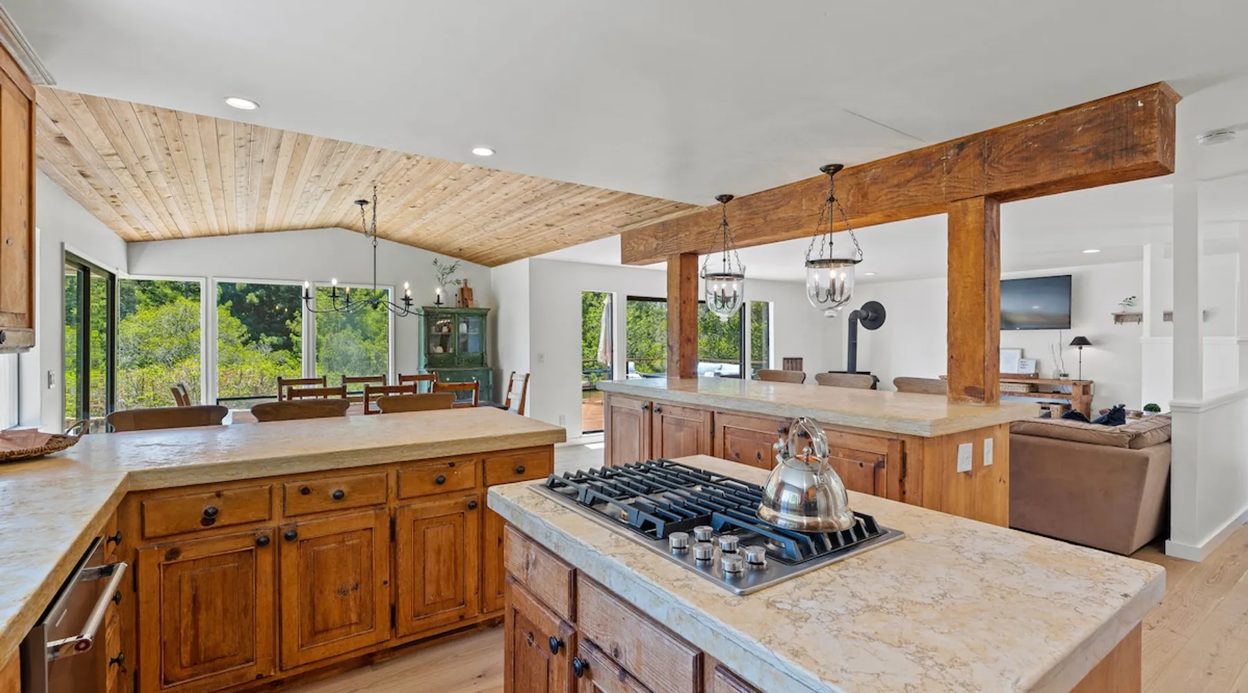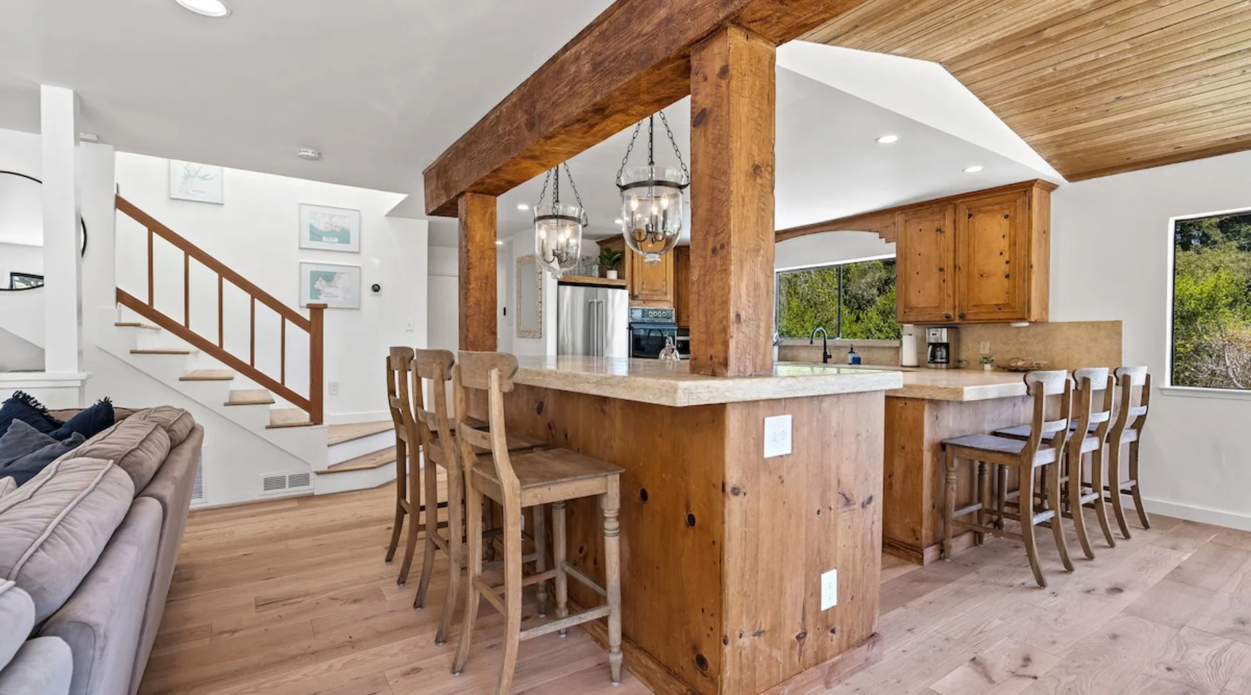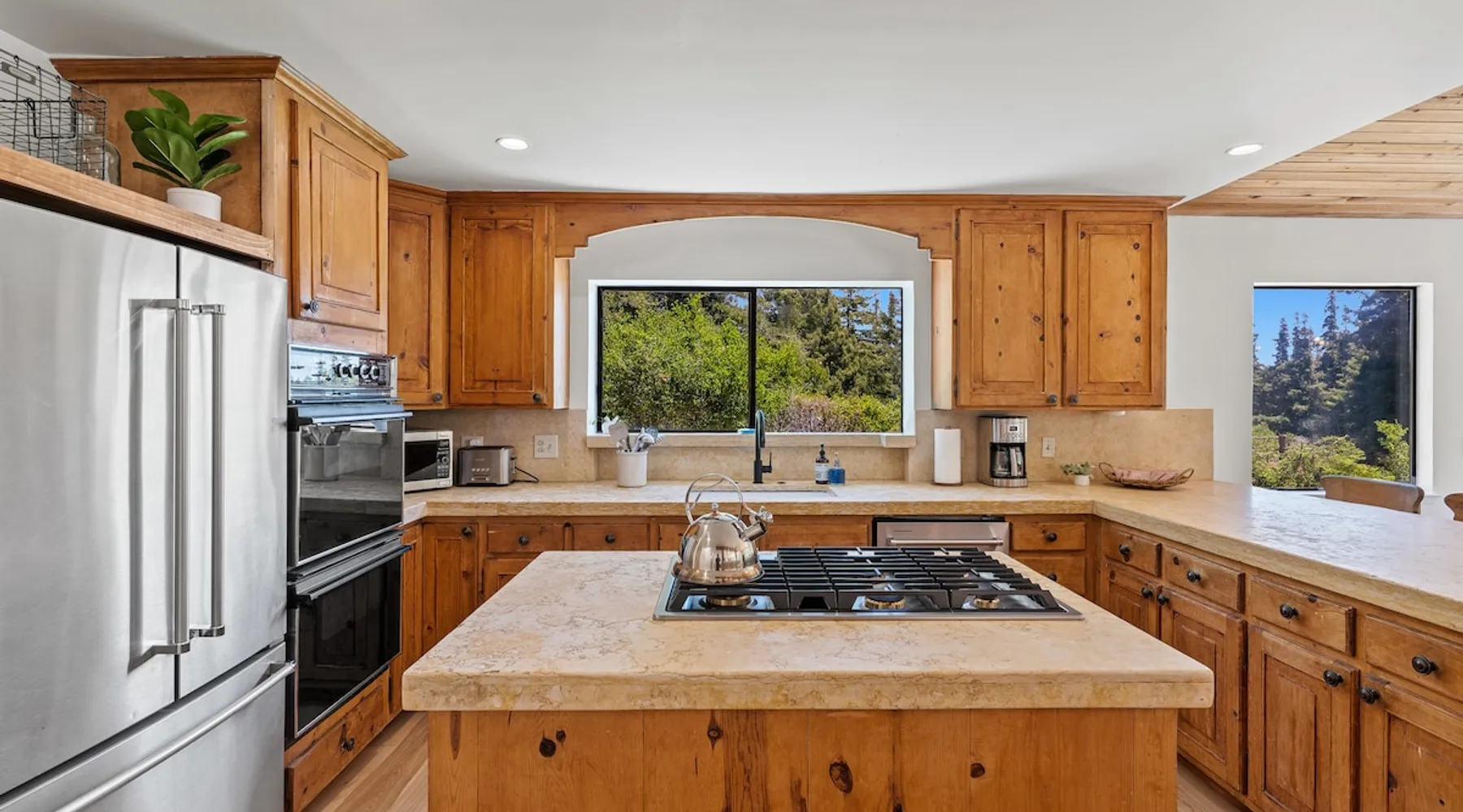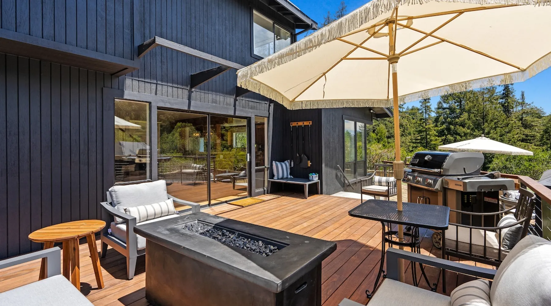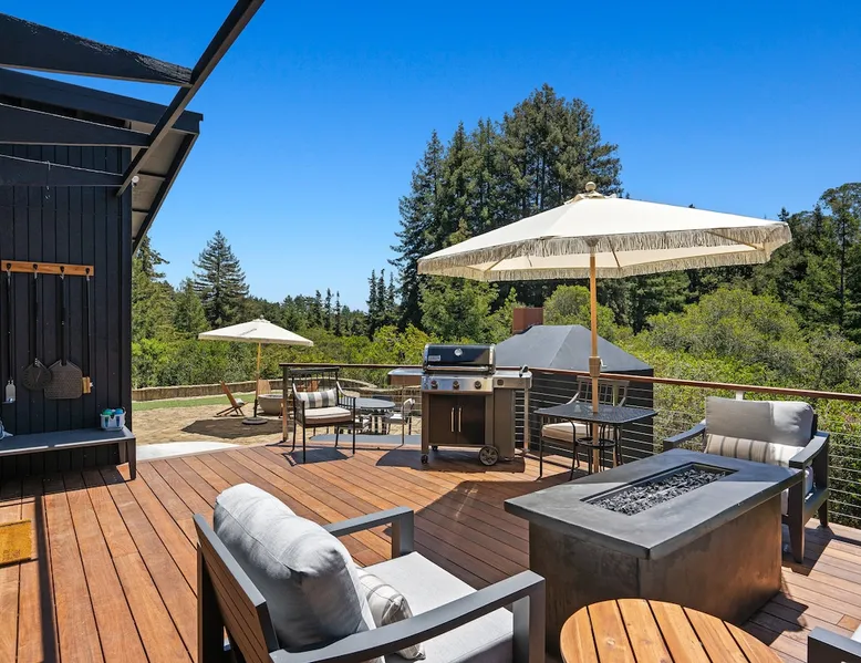 Experience a luxurious Airbnb escape, gracefully perched atop a vast 4-acre mountaintop oasis, just 1.4 miles from some of California's finest beaches and renowned surf breaks. Tucked away in what is arguably the most exclusive neighborhood in all of Santa Cruz, this elegant escape offers the perfect balance of convenience and tranquility, with Capitola, Soquel, and Aptos mere moments away. Immerse yourself in adventure with pristine beaches, top-tier mountain bike trails, delectable restaurants The space Experience a one-of-a-kind retreat where modern luxury seamlessly blends with old-world charm. This premier 4-bedroom, 3-bath home sleeps up to 11 and offers an exceptional mix of timeless elegance and contemporary comfort. Perfect for entertaining, the open indoor living space flows effortlessly into a stunning outdoor area, creating a harmonious connection between inside and out. Step inside to discover imported Jerusalem stone, hand-carved furniture, and custom cabinetry, paired with fresh modern tile and fixtures throughout. Every detail reflects a balance of sophistication and warmth. Wake up to breathtaking Sierra mountain-like views that transport you to a forest escape, all while being less than two miles from world-class beaches and legendary surf breaks. Outside, unwind in style with a lounge area, dining space, pizza oven, corn hole, and hammocks—perfect for relaxation or making memories with loved ones. This is more than a stay; it’s an experience where newness meets timeless beauty. Cancellations or modifications to your reservation must be made no later than 3 pm PST, 1 week (7 days) prior to the arrival date. Any cancellations or modifications within 1 week of the arrival date or no-shows will be charged the entire reserved stay (room + tax). All refunds are subject to 3% processing fee Pet fee $200 Other things to note For outdoor enthusiasts, this home is a gateway to adventure with the world-class mountain bike trails of the Forest of Nisene Marks State Park practically next door. Just minutes away, this lush redwood haven offers miles of exhilarating singletrack and flowing trails, drawing riders from around the globe, while hikers and runners will love the serene, shaded paths winding through towering trees and past historic logging sites—perfect for a peaceful trek or an invigorating trail run amidst stunning natural beauty!" "From the forest to the sea, you’re also steps from some of the world’s best waves, stretching from Capitola’s beginner-friendly breaks to the legendary surf spots of Pleasure Point. Whether you’re a seasoned surfer or eager to catch your first wave, we’ve got you covered with a couple of complimentary surfboards included for your stay—dive into the Santa Cruz surf scene and ride the Pacific like a local!