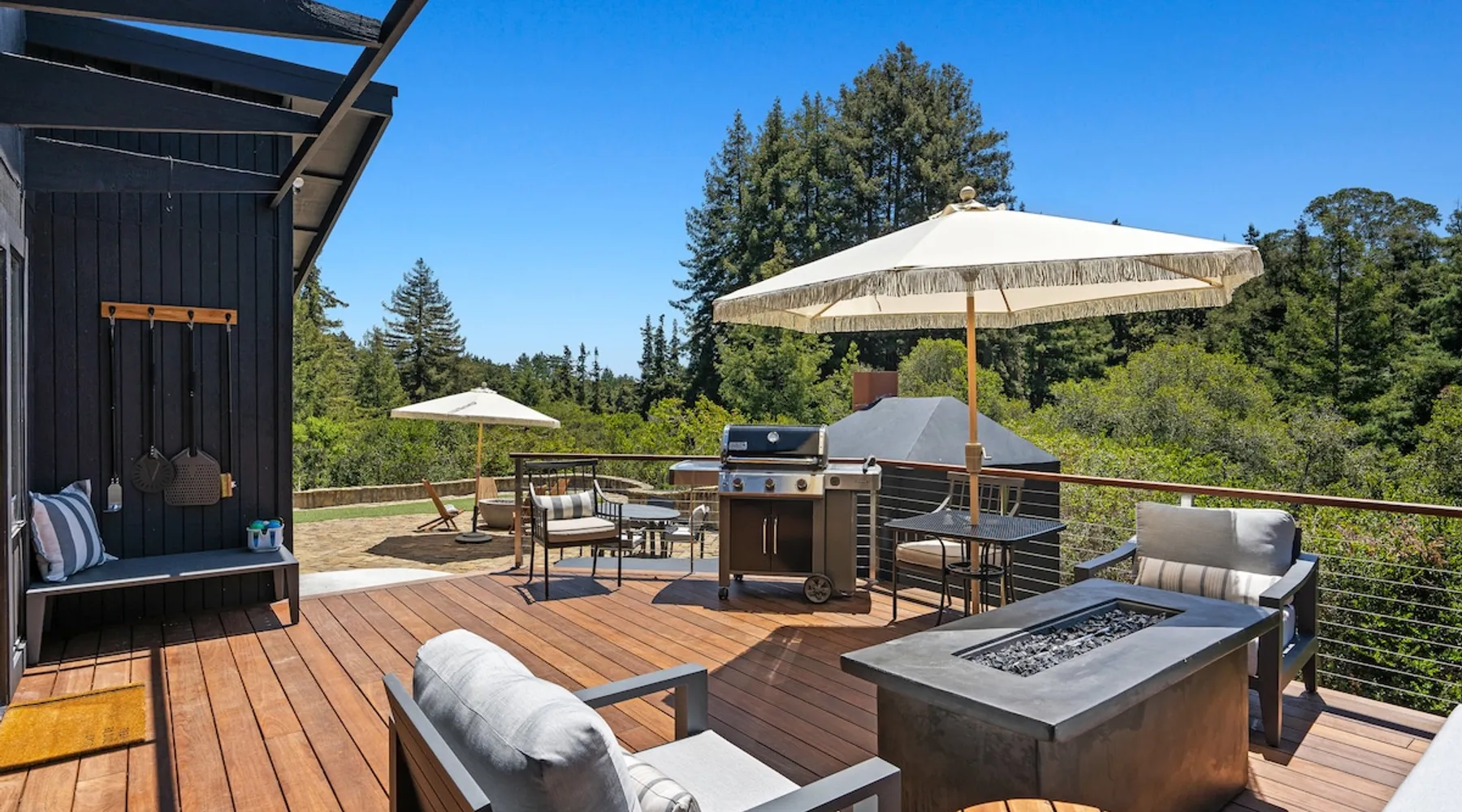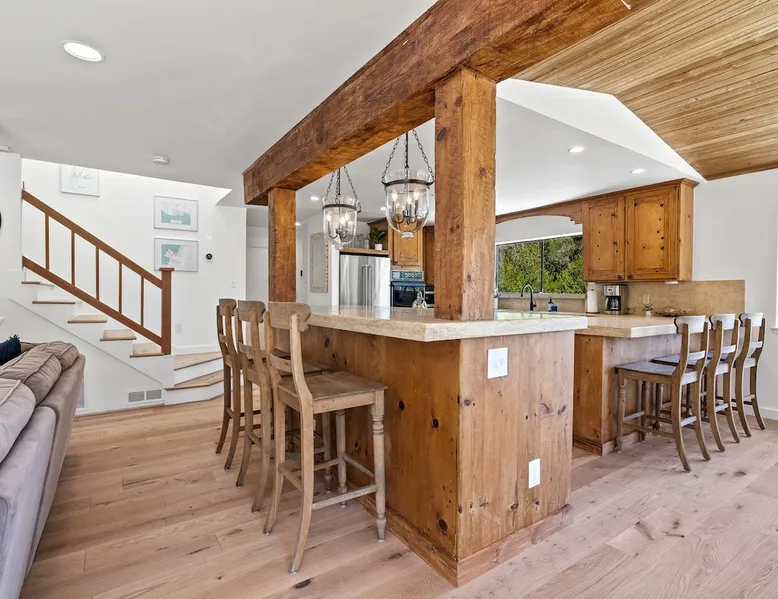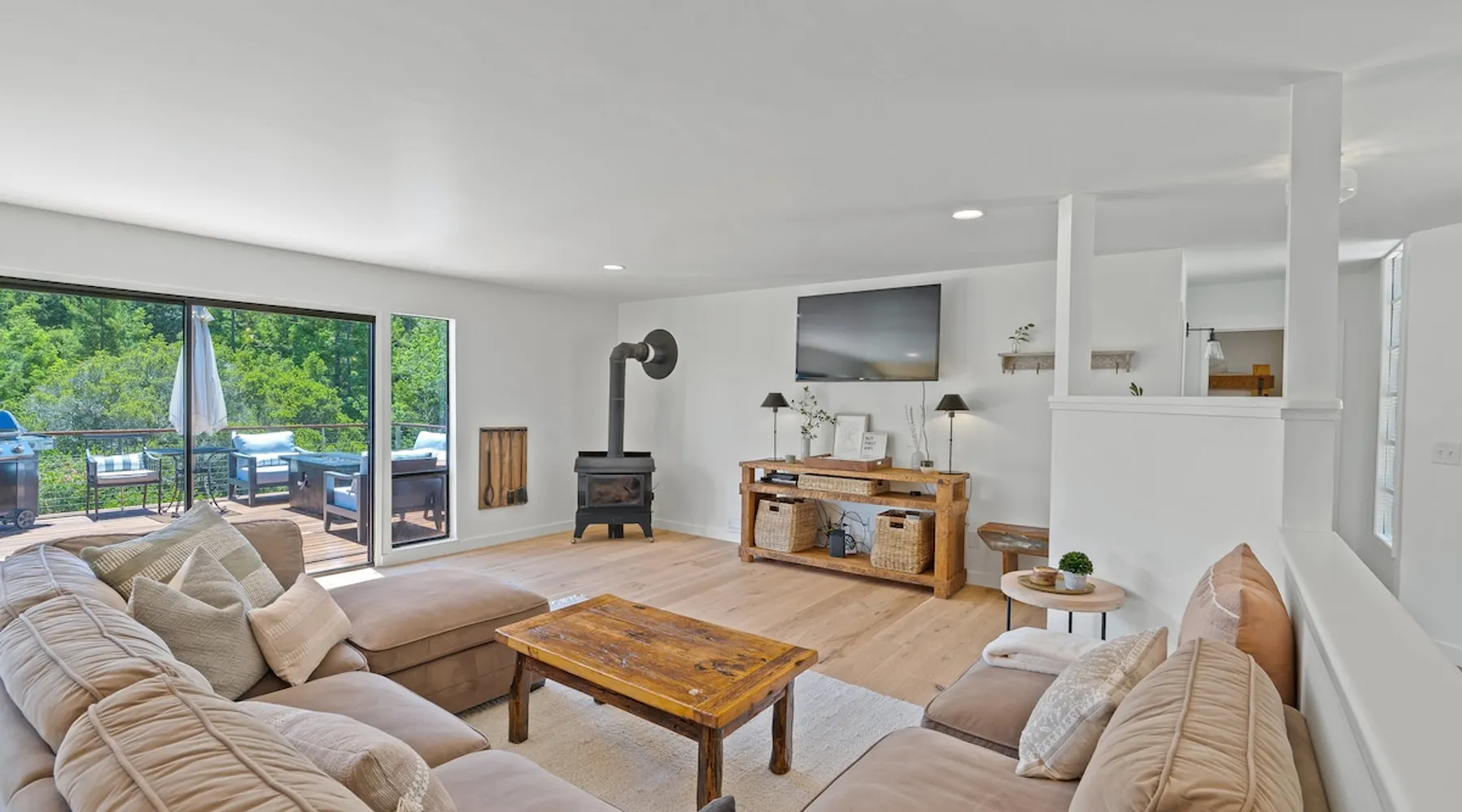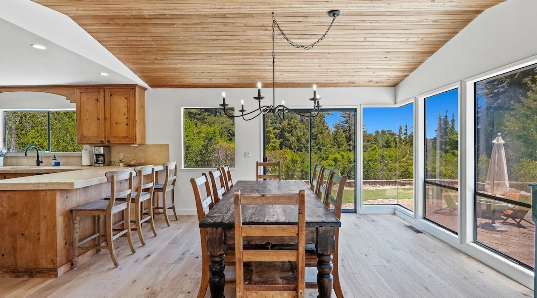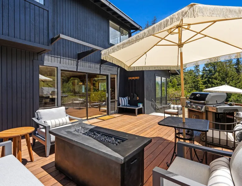 Experience a luxurious Airbnb escape, gracefully perched atop a vast 4-acre mountaintop oasis, just 1.4 miles from some of California's finest beaches and renowned surf breaks. Tucked away in what is arguably the most exclusive neighborhood in all of Santa Cruz, this elegant escape offers the perfect balance of convenience and tranquility, with Capitola, Soquel, and Aptos mere moments away. Immerse yourself in adventure with pristine beaches, top-tier mountain bike trails, delectable restaurants The space Experience a one-of-a-kind retreat where modern luxury seamlessly blends with old-world charm. This premier 4-bedroom, 3-bath home sleeps up to 11 and offers an exceptional mix of timeless elegance and contemporary comfort. Perfect for entertaining, the open indoor living space flows effortlessly into a stunning outdoor area, creating a harmonious connection between inside and out. Step inside to discover imported Jerusalem stone, hand-carved furniture, and custom cabinetry, paired with fresh modern tile and fixtures throughout. Every detail reflects a balance of sophistication and warmth. Wake up to breathtaking Sierra mountain-like views that transport you to a forest escape, all while being less than two miles from world-class beaches and legendary surf breaks. Outside, unwind in style with a lounge area, dining space, pizza oven, corn hole, and hammocks—perfect for relaxation or making memories with loved ones. This is more than a stay; it’s an experience where newness meets timeless beauty. Cancellations or modifications to your reservation must be made no later than 3 pm PST, 1 week (7 days) prior to the arrival date. Any cancellations or modifications within 1 week of the arrival date or no-shows will be charged the entire reserved stay (room + tax). All refunds are subject to 3% processing fee Pet fee $200 Other things to note For outdoor enthusiasts, this home is a gateway to adventure with the world-class mountain bike trails of the Forest of Nisene Marks State Park practically next door. Just minutes away, this lush redwood haven offers miles of exhilarating singletrack and flowing trails, drawing riders from around the globe, while hikers and runners will love the serene, shaded paths winding through towering trees and past historic logging sites—perfect for a peaceful trek or an invigorating trail run amidst stunning natural beauty!" "From the forest to the sea, you’re also steps from some of the world’s best waves, stretching from Capitola’s beginner-friendly breaks to the legendary surf spots of Pleasure Point. Whether you’re a seasoned surfer or eager to catch your first wave, we’ve got you covered with a couple of complimentary surfboards included for your stay—dive into the Santa Cruz surf scene and ride the Pacific like a local!