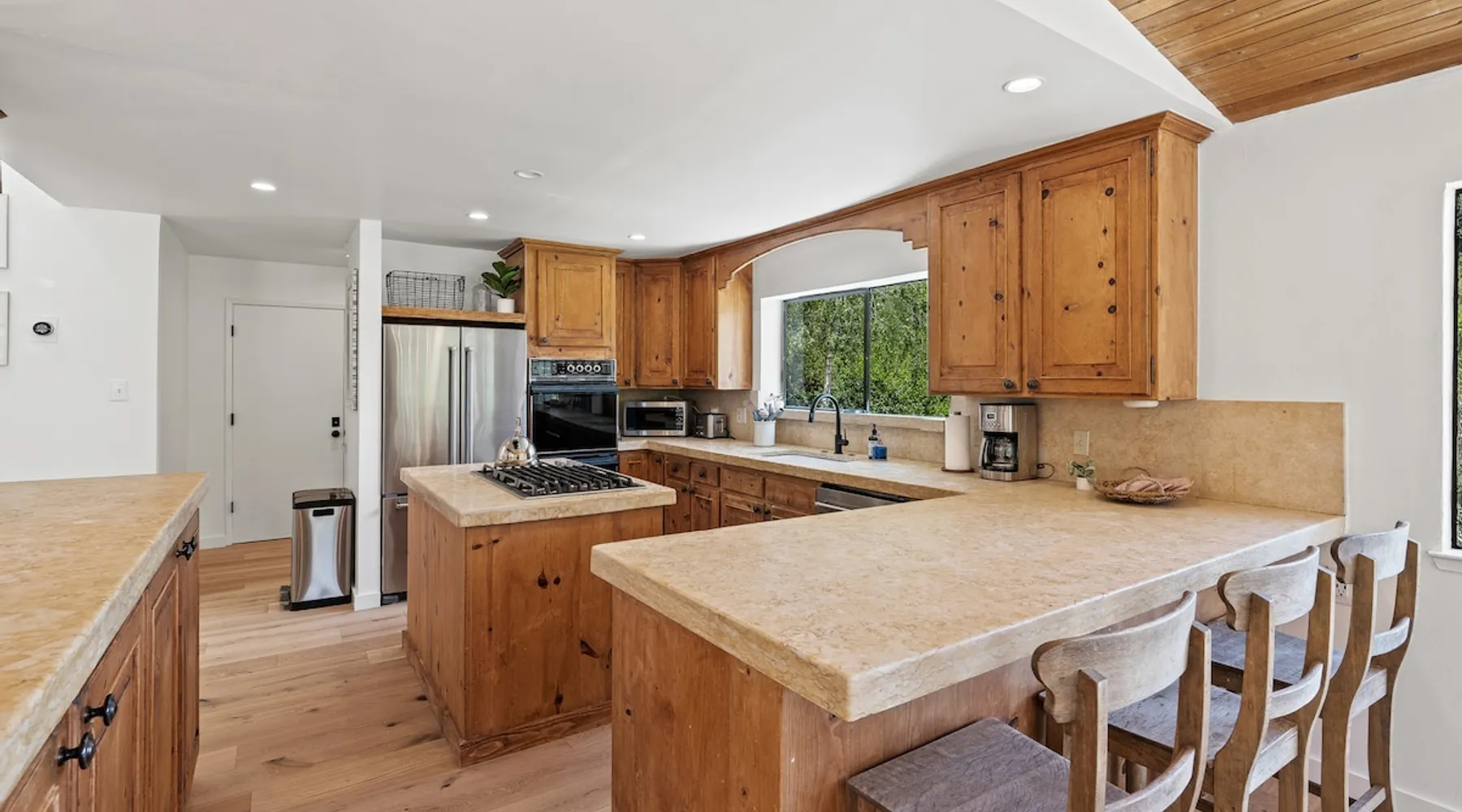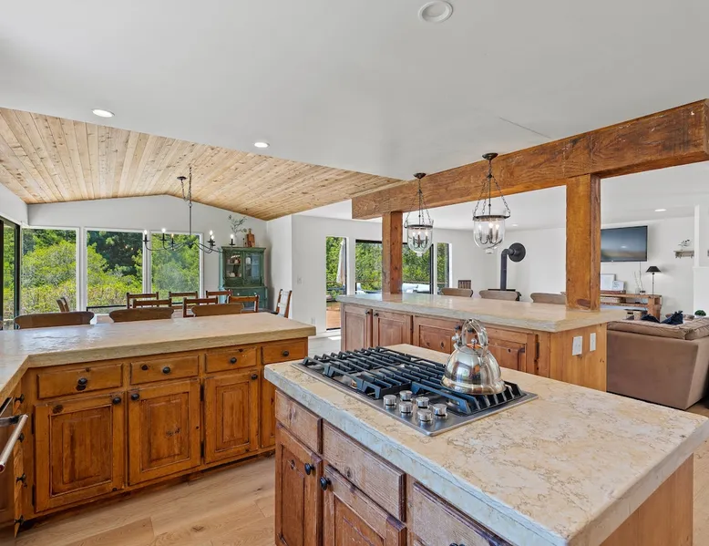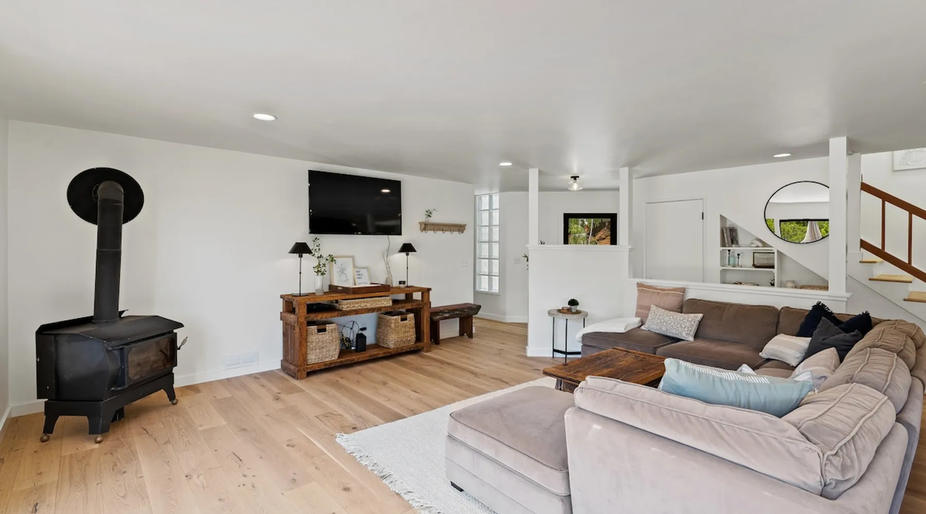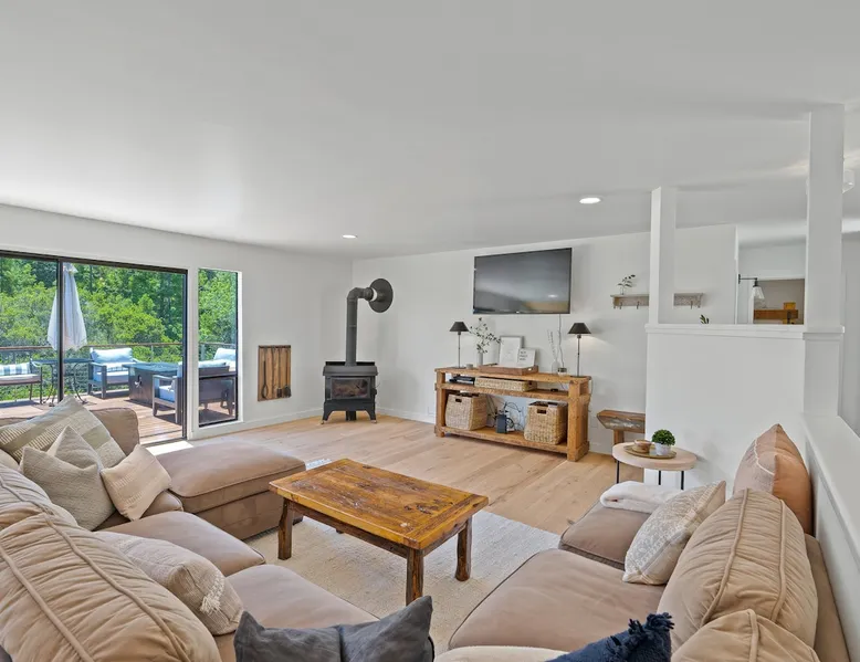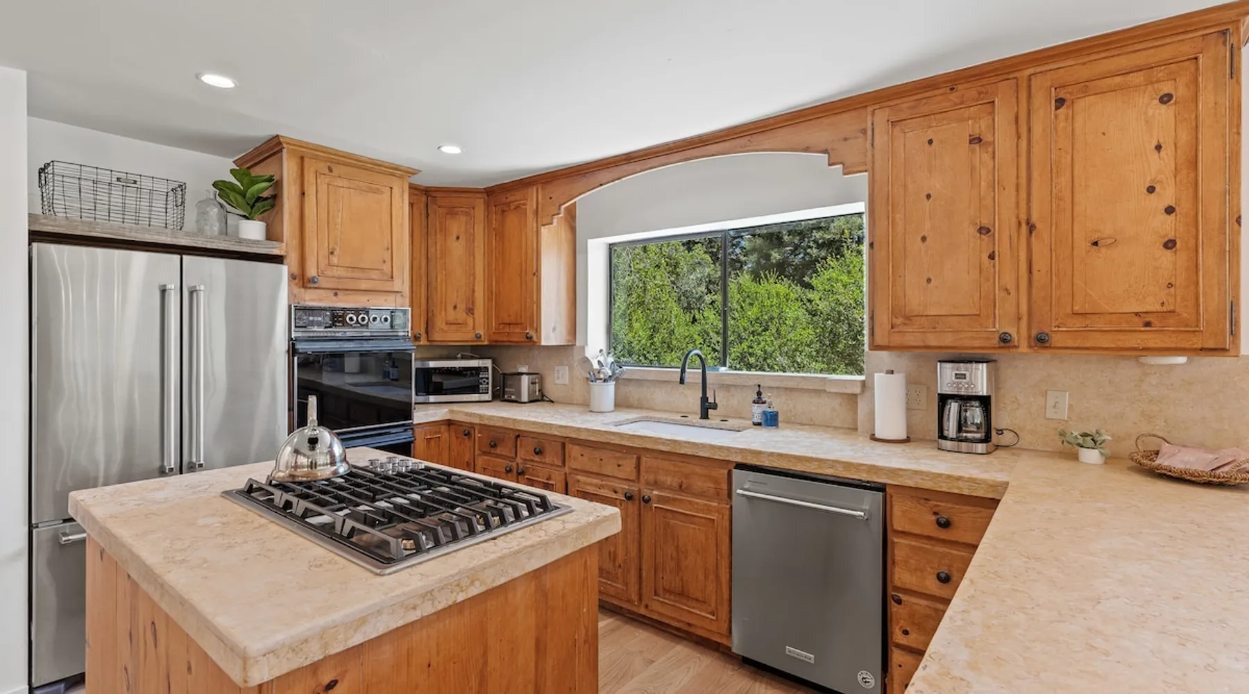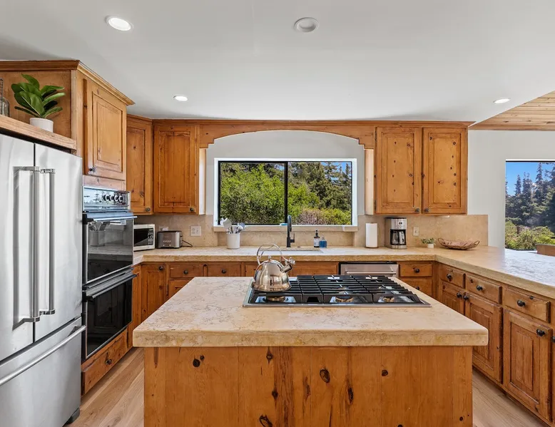 Experience a luxurious Airbnb escape, gracefully perched atop a vast 4-acre mountaintop oasis, just 1.4 miles from some of California's finest beaches and renowned surf breaks. Tucked away in what is arguably the most exclusive neighborhood in all of Santa Cruz, this elegant escape offers the perfect balance of convenience and tranquility, with Capitola, Soquel, and Aptos mere moments away. Immerse yourself in adventure with pristine beaches, top-tier mountain bike trails, delectable restaurants The space Experience a one-of-a-kind retreat where modern luxury seamlessly blends with old-world charm. This premier 4-bedroom, 3-bath home sleeps up to 11 and offers an exceptional mix of timeless elegance and contemporary comfort. Perfect for entertaining, the open indoor living space flows effortlessly into a stunning outdoor area, creating a harmonious connection between inside and out. Step inside to discover imported Jerusalem stone, hand-carved furniture, and custom cabinetry, paired with fresh modern tile and fixtures throughout. Every detail reflects a balance of sophistication and warmth. Wake up to breathtaking Sierra mountain-like views that transport you to a forest escape, all while being less than two miles from world-class beaches and legendary surf breaks. Outside, unwind in style with a lounge area, dining space, pizza oven, corn hole, and hammocks—perfect for relaxation or making memories with loved ones. This is more than a stay; it’s an experience where newness meets timeless beauty. Cancellations or modifications to your reservation must be made no later than 3 pm PST, 1 week (7 days) prior to the arrival date. Any cancellations or modifications within 1 week of the arrival date or no-shows will be charged the entire reserved stay (room + tax). All refunds are subject to 3% processing fee Pet fee $200 Other things to note For outdoor enthusiasts, this home is a gateway to adventure with the world-class mountain bike trails of the Forest of Nisene Marks State Park practically next door. Just minutes away, this lush redwood haven offers miles of exhilarating singletrack and flowing trails, drawing riders from around the globe, while hikers and runners will love the serene, shaded paths winding through towering trees and past historic logging sites—perfect for a peaceful trek or an invigorating trail run amidst stunning natural beauty!" "From the forest to the sea, you’re also steps from some of the world’s best waves, stretching from Capitola’s beginner-friendly breaks to the legendary surf spots of Pleasure Point. Whether you’re a seasoned surfer or eager to catch your first wave, we’ve got you covered with a couple of complimentary surfboards included for your stay—dive into the Santa Cruz surf scene and ride the Pacific like a local!
