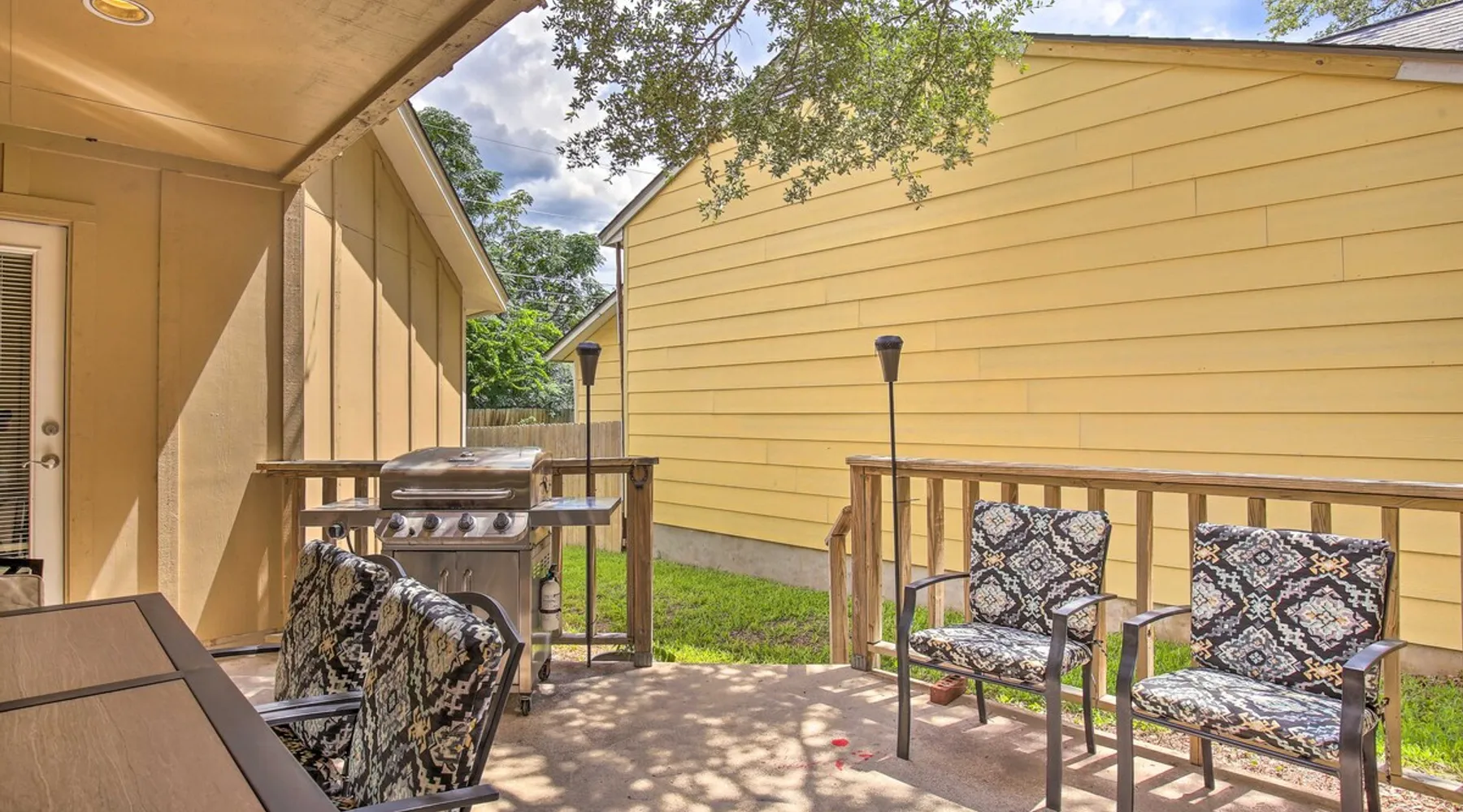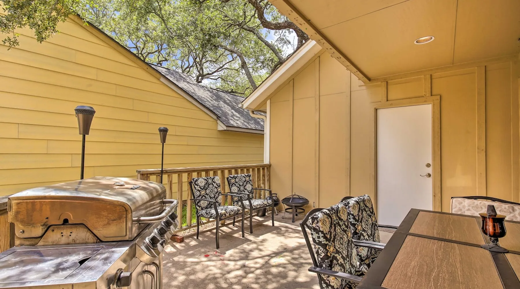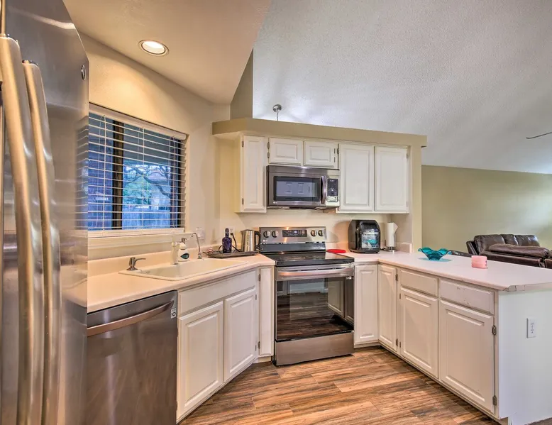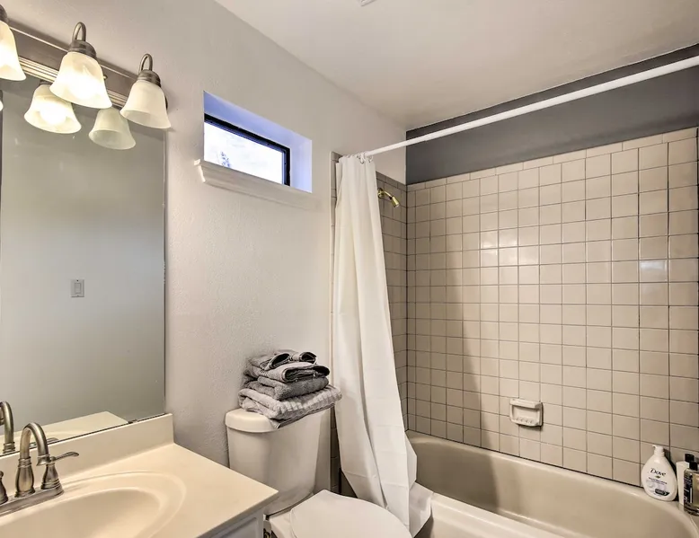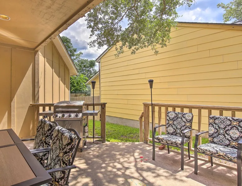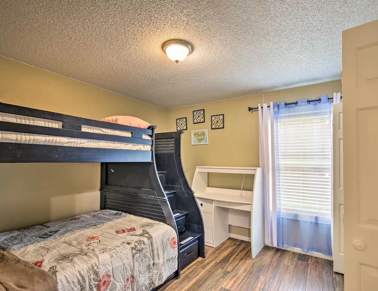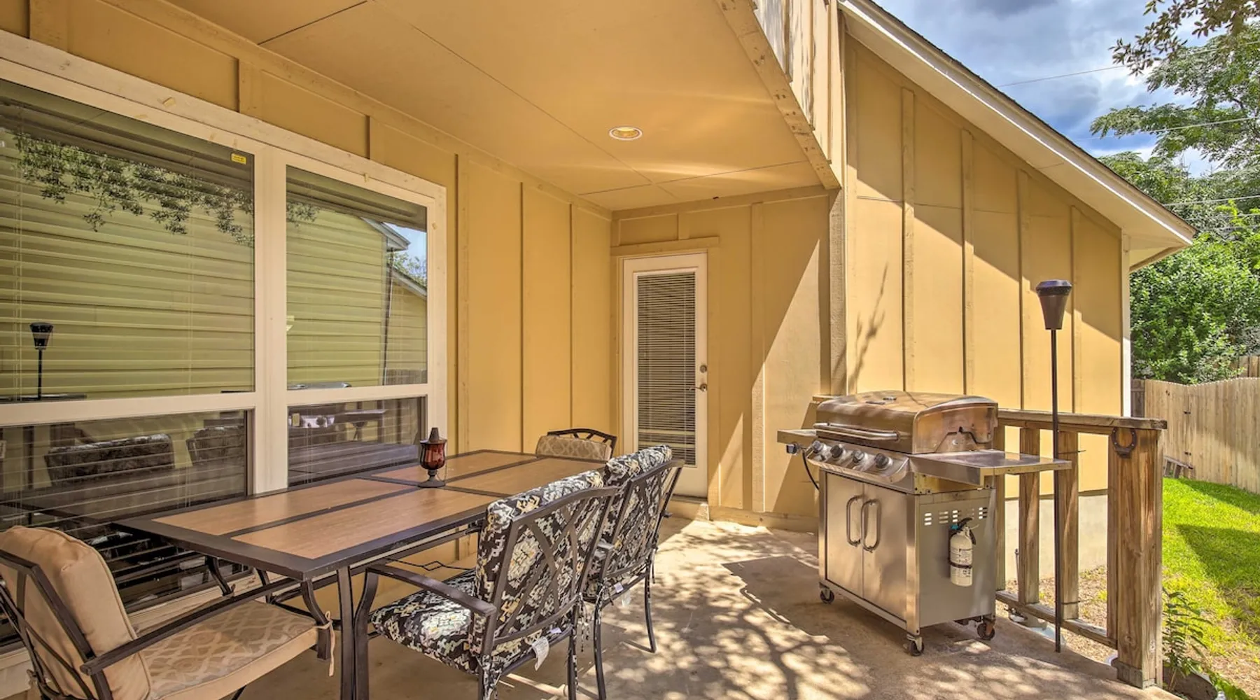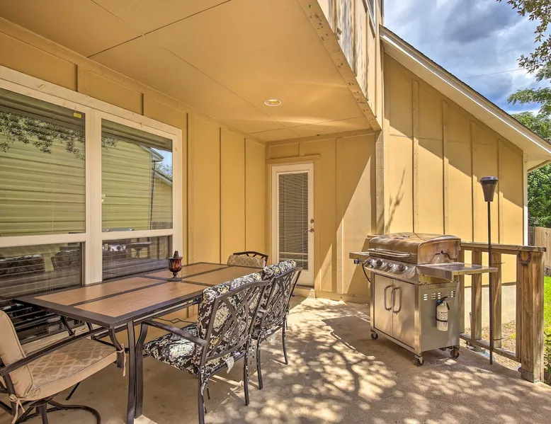 Highlighted by its prime location just 30 miles outside of San Antonio, this lovely home is perfect for your next stay in beautiful Boerne, Texas! This 3-bedroom, 2-bathroom vacation rental features WiFi, a fully equipped kitchen, and a fenced yard for your furry friend. From hiking at Boerne Lake to shopping in the Hill Country Mile District, you’ll have easy access to activities for the whole family! After a day of exploring, you can fire up the grill for dinner and get cozy by the Smart TV. The space Pet Friendly w/ Fee | Gas Grill | Complimentary Kayaks & Life Vests | ~30 Mi to San Antonio Bedroom 1: Full Bed | Bedroom 2: 2 Full Beds | Bedroom 3: Twin/Full Bunk Bed | Additional Sleeping: Crib INDOOR LIVING: Smart TV, family dining table, laptop-friendly work area, books OUTDOOR LIVING: Covered back porch, fenced yard, outdoor dining area, rocking chairs KITCHEN: Cooking basics, stainless steel appliances, dishwasher, stove/oven, microwave, coffee maker, toaster, air fryer, electric kettle GENERAL: Free WiFi, linens/towels, washer/dryer, complimentary toiletries, central air conditioning, ceiling fans, high chair, laundry detergent, iron/board, clothes hangers, hair dryer, trash bags/paper towels FAQ: 1 step required to access, 1 bedroom & 1 full bathroom on 1st floor, 1 exterior security camera (outward facing), pet fee (paid pre-trip) PARKING: Driveway (1 vehicle), RV parking, free street parking Guest access Guests will have access to the entire property via self check-in Other things to note - No smoking - Pet friendly w/ $50 fee (+ fees and taxes) - No events, parties, or large gatherings - Additional fees and taxes may apply - Photo ID may be required upon check-in - NOTE: The property requires only 1 step to access with a bedroom and a full bathroom on the 1st floor, but an interior flight of stairs is required to access the upstairs bedrooms and bathrooms - NOTE: Your safety matters. This property features a doorbell security camera on the front entrance. The camera is outward facing and does not look into interior spaces. The camera records video and sound when activated by motion
