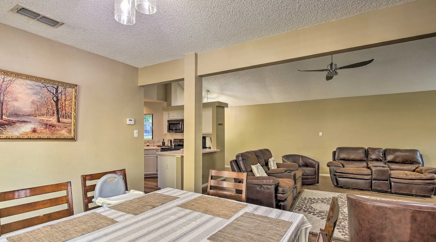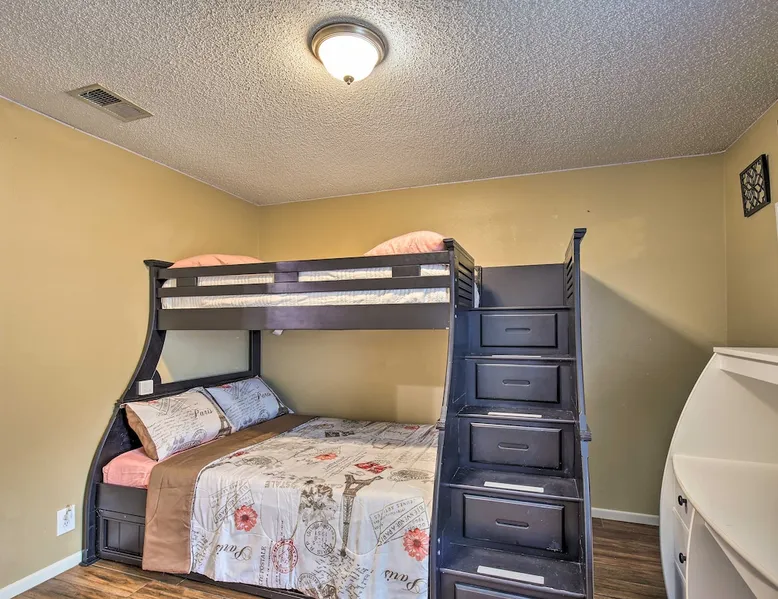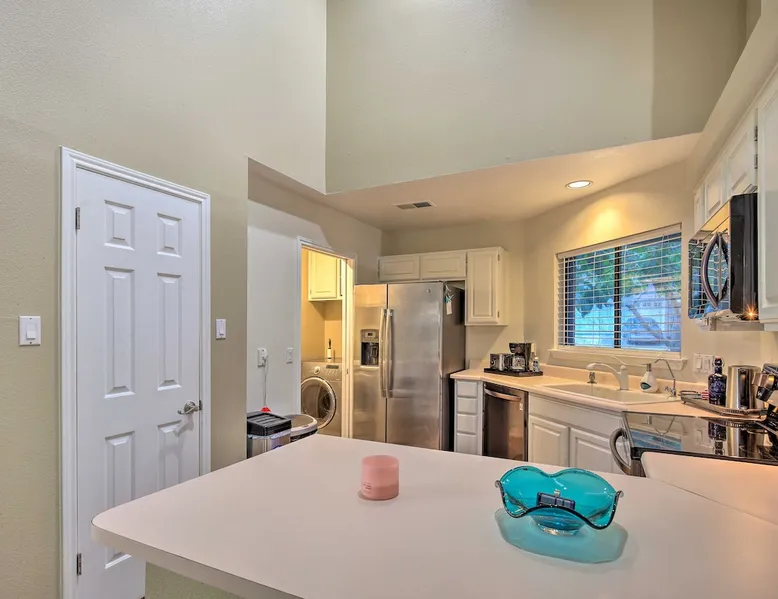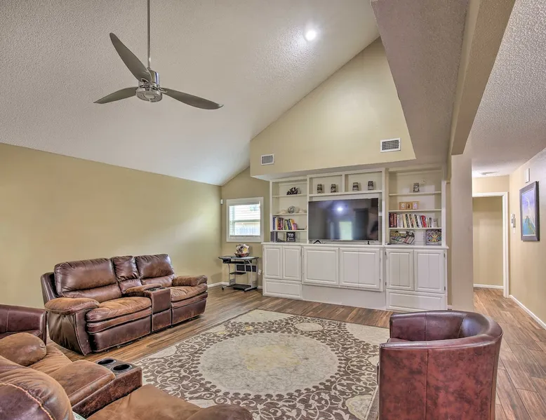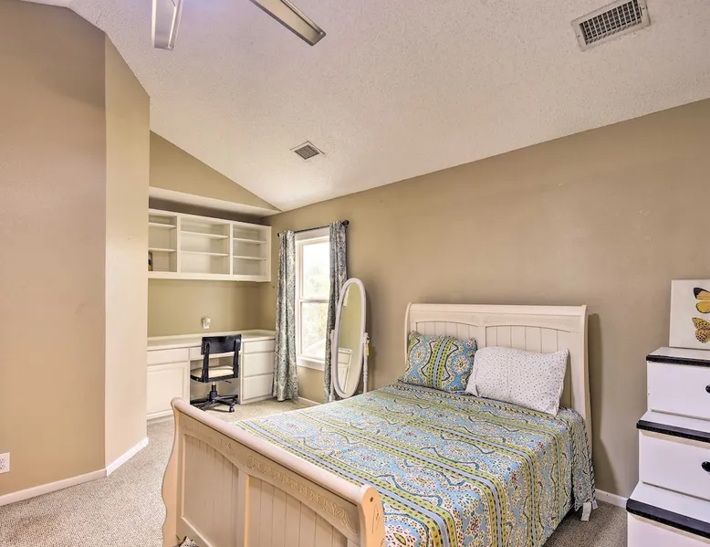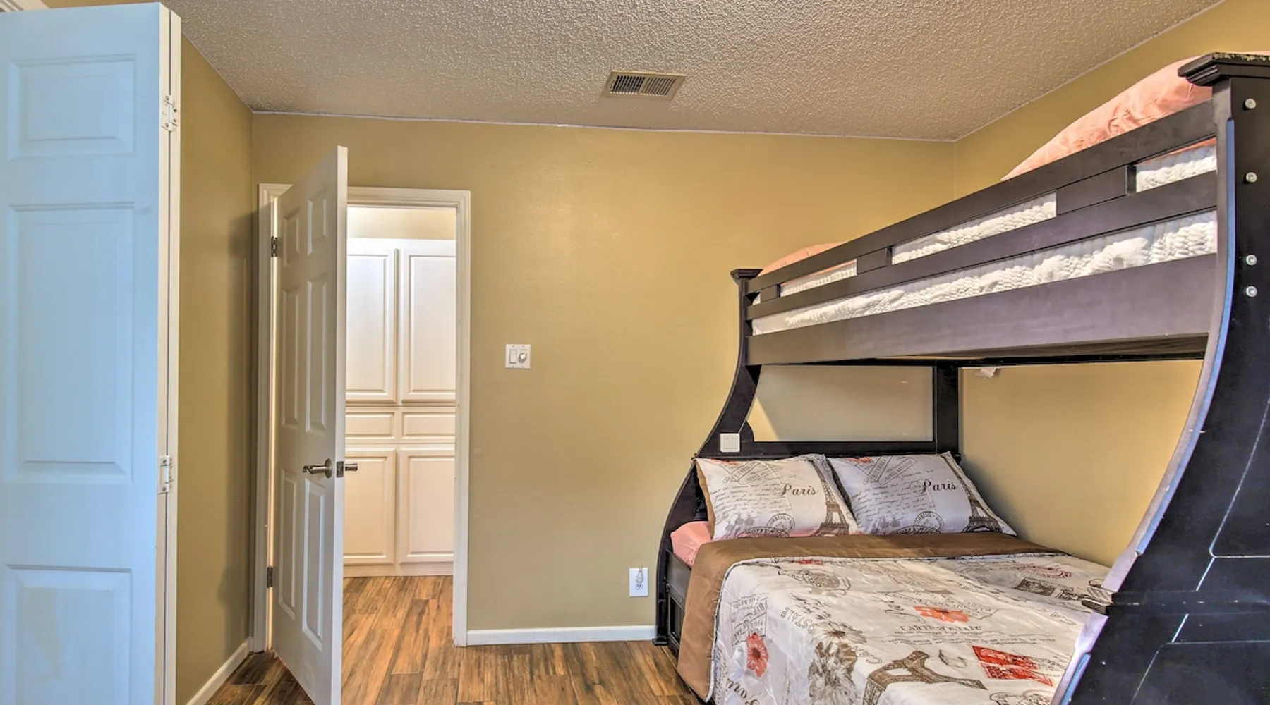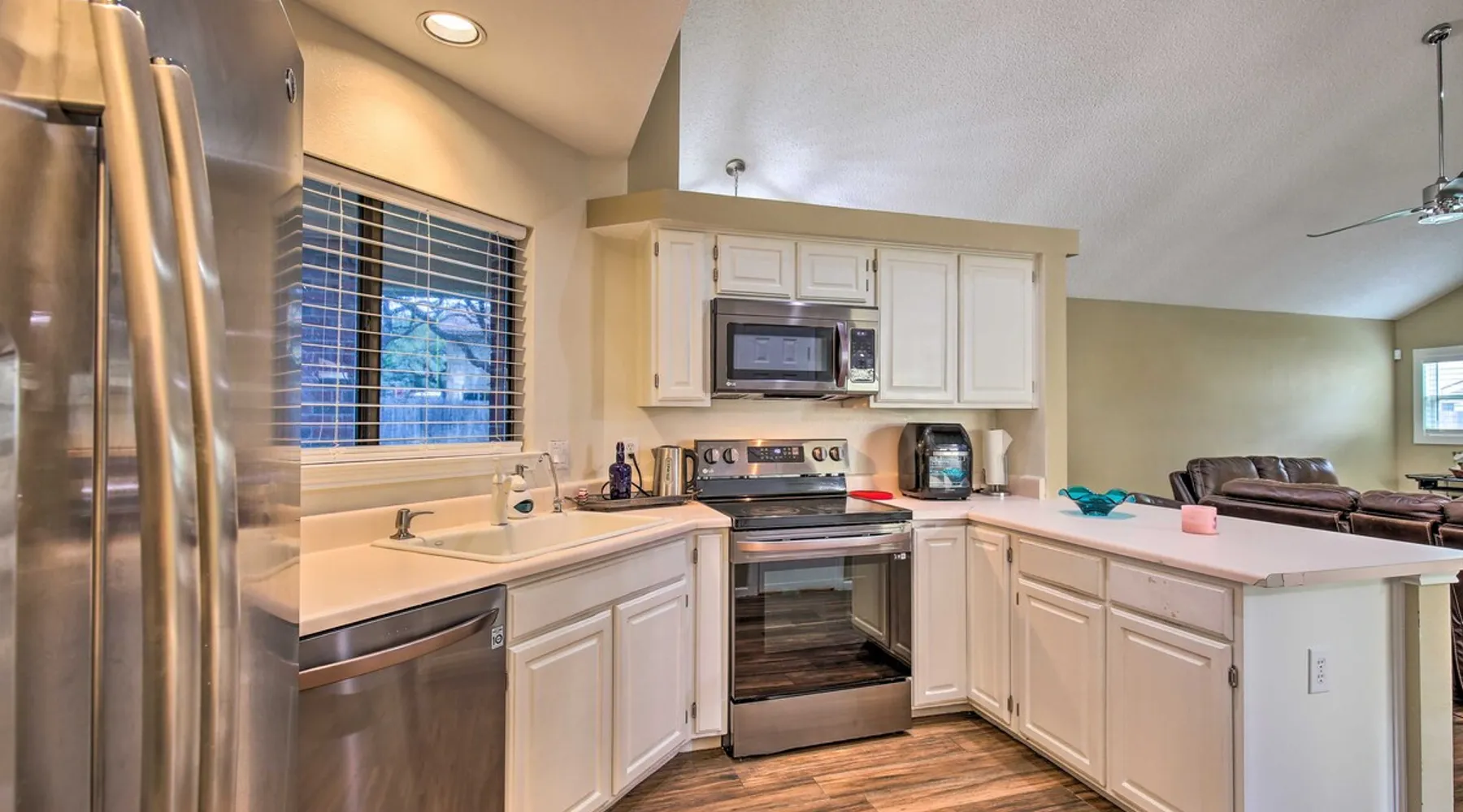 Highlighted by its prime location just 30 miles outside of San Antonio, this lovely home is perfect for your next stay in beautiful Boerne, Texas! This 3-bedroom, 2-bathroom vacation rental features WiFi, a fully equipped kitchen, and a fenced yard for your furry friend. From hiking at Boerne Lake to shopping in the Hill Country Mile District, you’ll have easy access to activities for the whole family! After a day of exploring, you can fire up the grill for dinner and get cozy by the Smart TV. The space Pet Friendly w/ Fee | Gas Grill | Complimentary Kayaks & Life Vests | ~30 Mi to San Antonio Bedroom 1: Full Bed | Bedroom 2: 2 Full Beds | Bedroom 3: Twin/Full Bunk Bed | Additional Sleeping: Crib INDOOR LIVING: Smart TV, family dining table, laptop-friendly work area, books OUTDOOR LIVING: Covered back porch, fenced yard, outdoor dining area, rocking chairs KITCHEN: Cooking basics, stainless steel appliances, dishwasher, stove/oven, microwave, coffee maker, toaster, air fryer, electric kettle GENERAL: Free WiFi, linens/towels, washer/dryer, complimentary toiletries, central air conditioning, ceiling fans, high chair, laundry detergent, iron/board, clothes hangers, hair dryer, trash bags/paper towels FAQ: 1 step required to access, 1 bedroom & 1 full bathroom on 1st floor, 1 exterior security camera (outward facing), pet fee (paid pre-trip) PARKING: Driveway (1 vehicle), RV parking, free street parking Guest access Guests will have access to the entire property via self check-in Other things to note - No smoking - Pet friendly w/ $50 fee (+ fees and taxes) - No events, parties, or large gatherings - Additional fees and taxes may apply - Photo ID may be required upon check-in - NOTE: The property requires only 1 step to access with a bedroom and a full bathroom on the 1st floor, but an interior flight of stairs is required to access the upstairs bedrooms and bathrooms - NOTE: Your safety matters. This property features a doorbell security camera on the front entrance. The camera is outward facing and does not look into interior spaces. The camera records video and sound when activated by motion