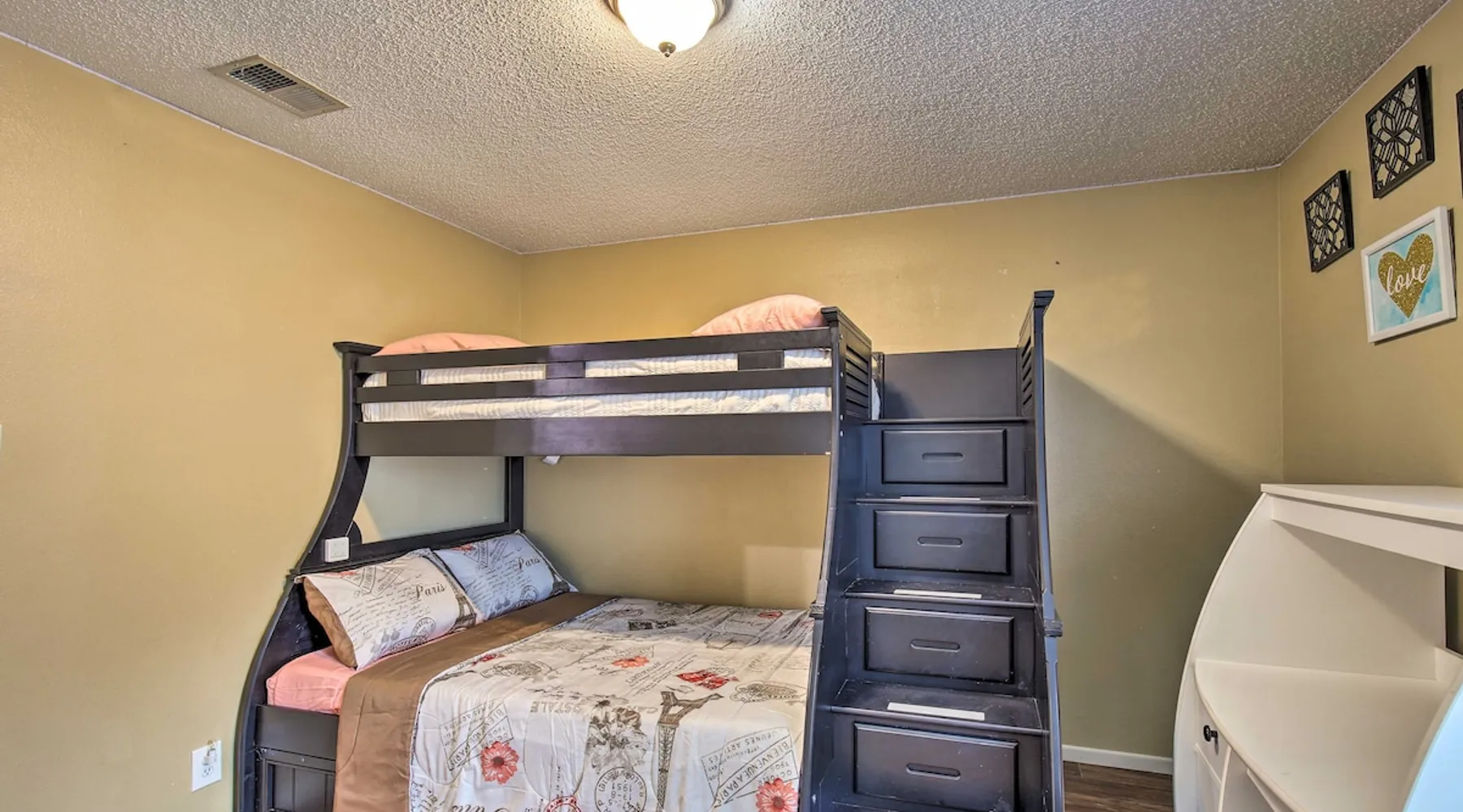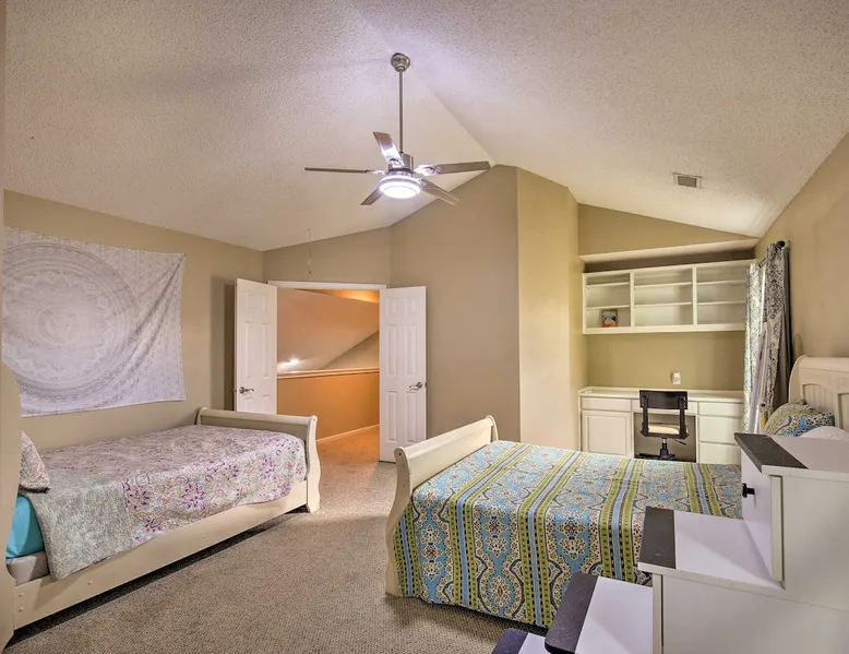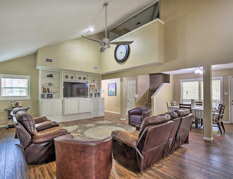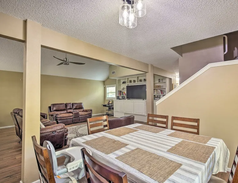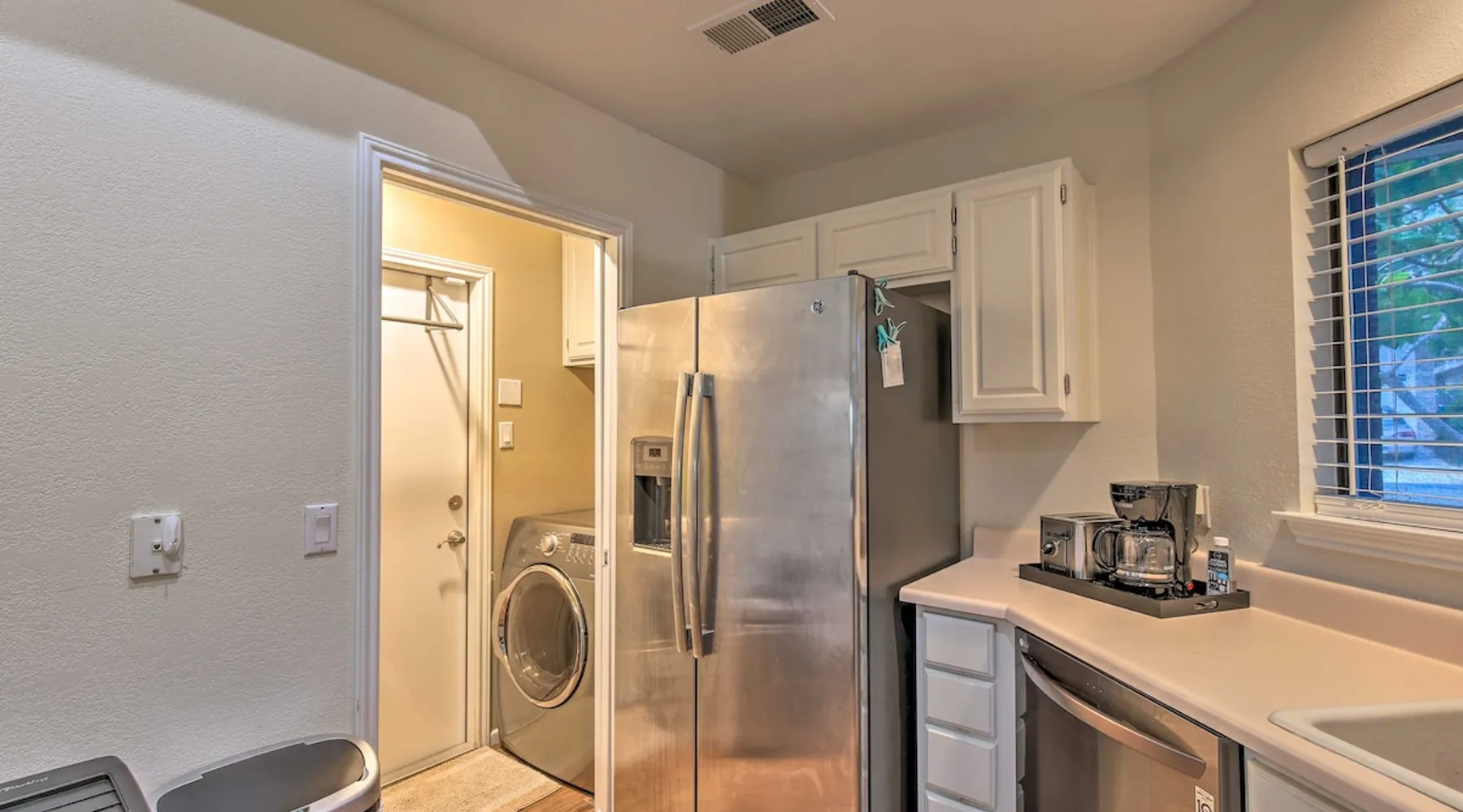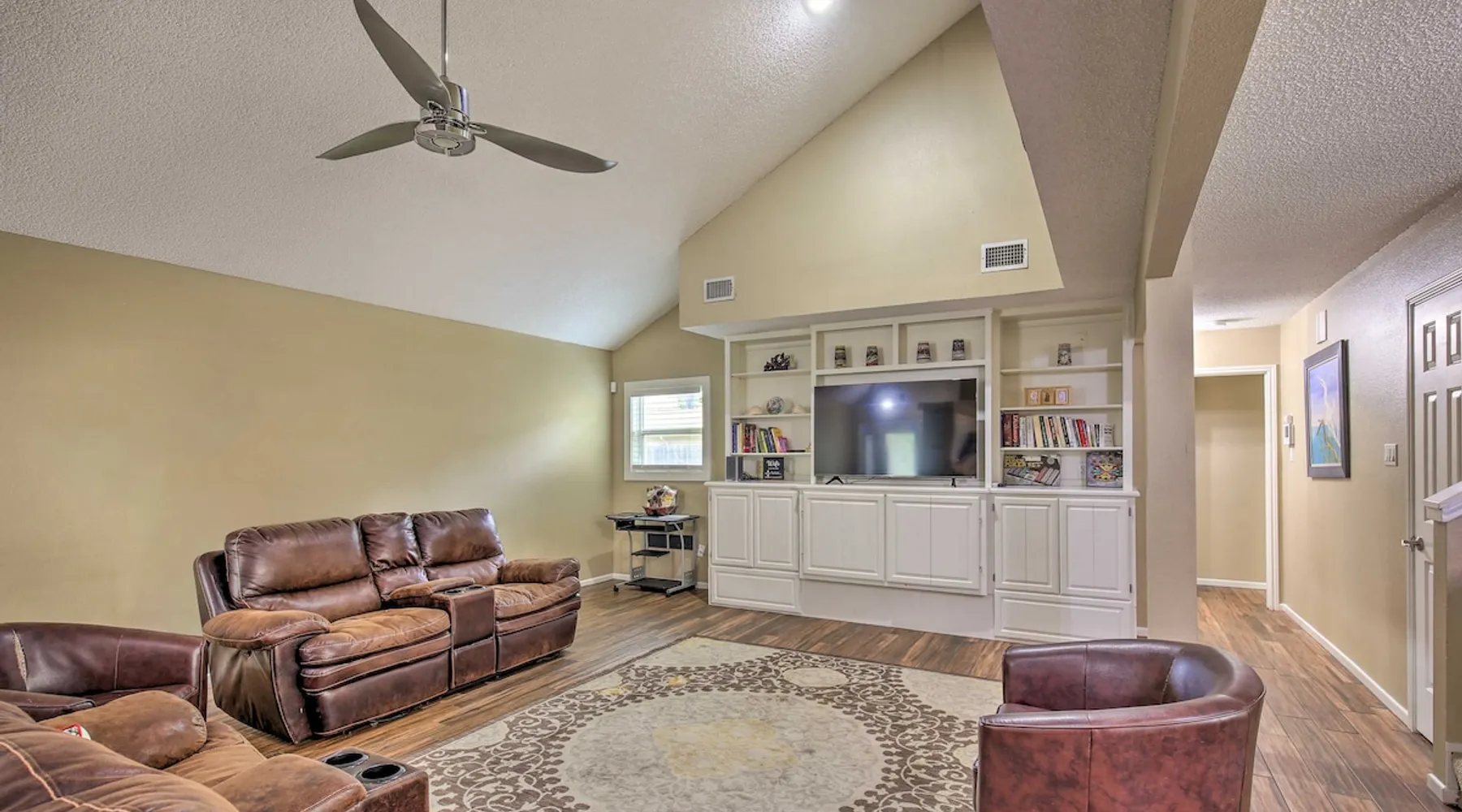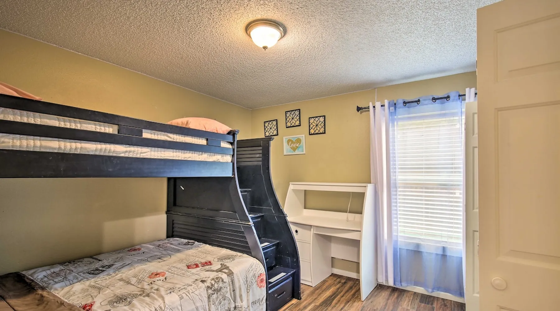 Highlighted by its prime location just 30 miles outside of San Antonio, this lovely home is perfect for your next stay in beautiful Boerne, Texas! This 3-bedroom, 2-bathroom vacation rental features WiFi, a fully equipped kitchen, and a fenced yard for your furry friend. From hiking at Boerne Lake to shopping in the Hill Country Mile District, you’ll have easy access to activities for the whole family! After a day of exploring, you can fire up the grill for dinner and get cozy by the Smart TV. The space Pet Friendly w/ Fee | Gas Grill | Complimentary Kayaks & Life Vests | ~30 Mi to San Antonio Bedroom 1: Full Bed | Bedroom 2: 2 Full Beds | Bedroom 3: Twin/Full Bunk Bed | Additional Sleeping: Crib INDOOR LIVING: Smart TV, family dining table, laptop-friendly work area, books OUTDOOR LIVING: Covered back porch, fenced yard, outdoor dining area, rocking chairs KITCHEN: Cooking basics, stainless steel appliances, dishwasher, stove/oven, microwave, coffee maker, toaster, air fryer, electric kettle GENERAL: Free WiFi, linens/towels, washer/dryer, complimentary toiletries, central air conditioning, ceiling fans, high chair, laundry detergent, iron/board, clothes hangers, hair dryer, trash bags/paper towels FAQ: 1 step required to access, 1 bedroom & 1 full bathroom on 1st floor, 1 exterior security camera (outward facing), pet fee (paid pre-trip) PARKING: Driveway (1 vehicle), RV parking, free street parking Guest access Guests will have access to the entire property via self check-in Other things to note - No smoking - Pet friendly w/ $50 fee (+ fees and taxes) - No events, parties, or large gatherings - Additional fees and taxes may apply - Photo ID may be required upon check-in - NOTE: The property requires only 1 step to access with a bedroom and a full bathroom on the 1st floor, but an interior flight of stairs is required to access the upstairs bedrooms and bathrooms - NOTE: Your safety matters. This property features a doorbell security camera on the front entrance. The camera is outward facing and does not look into interior spaces. The camera records video and sound when activated by motion
