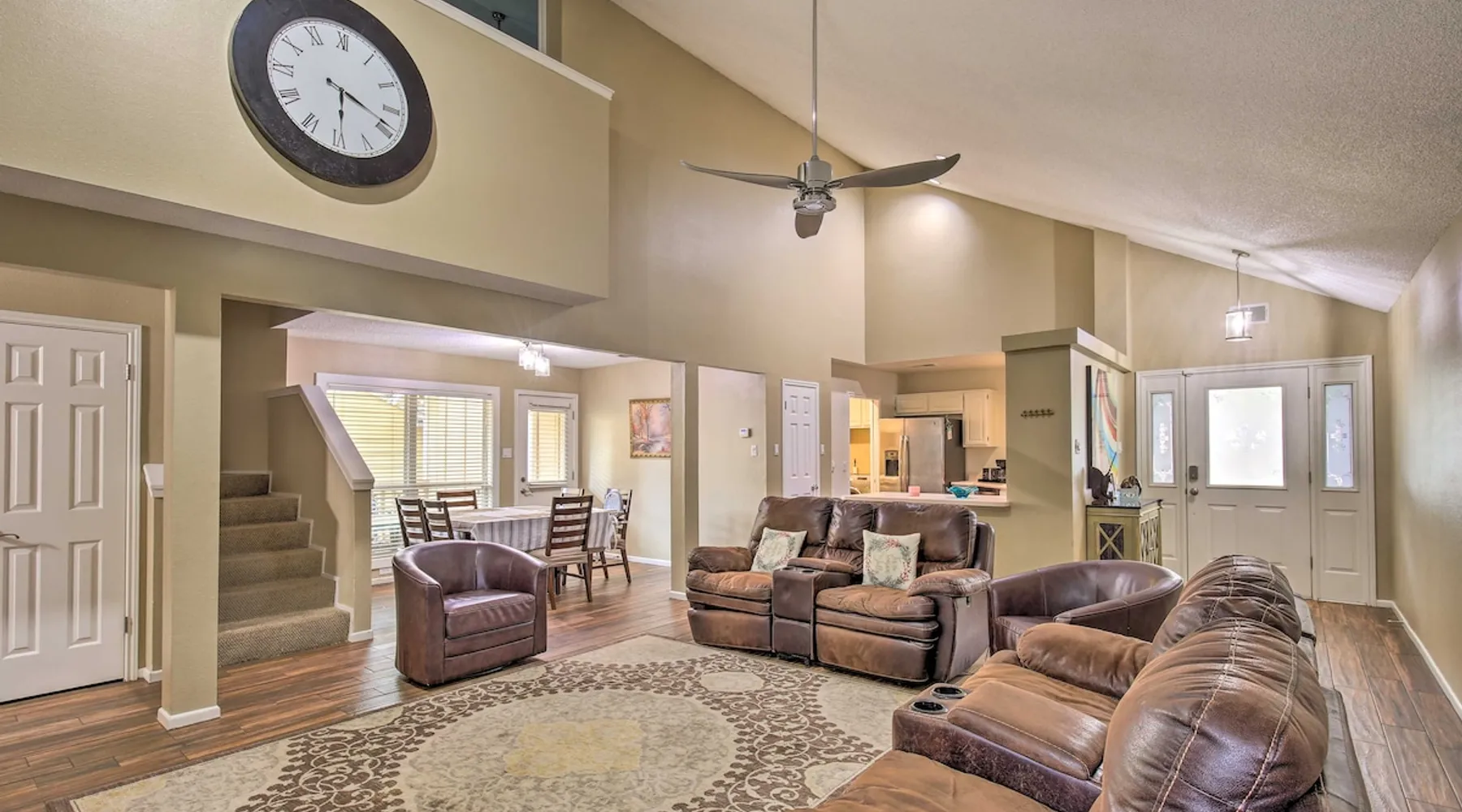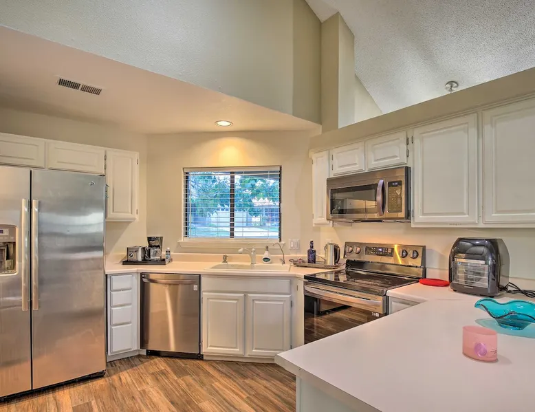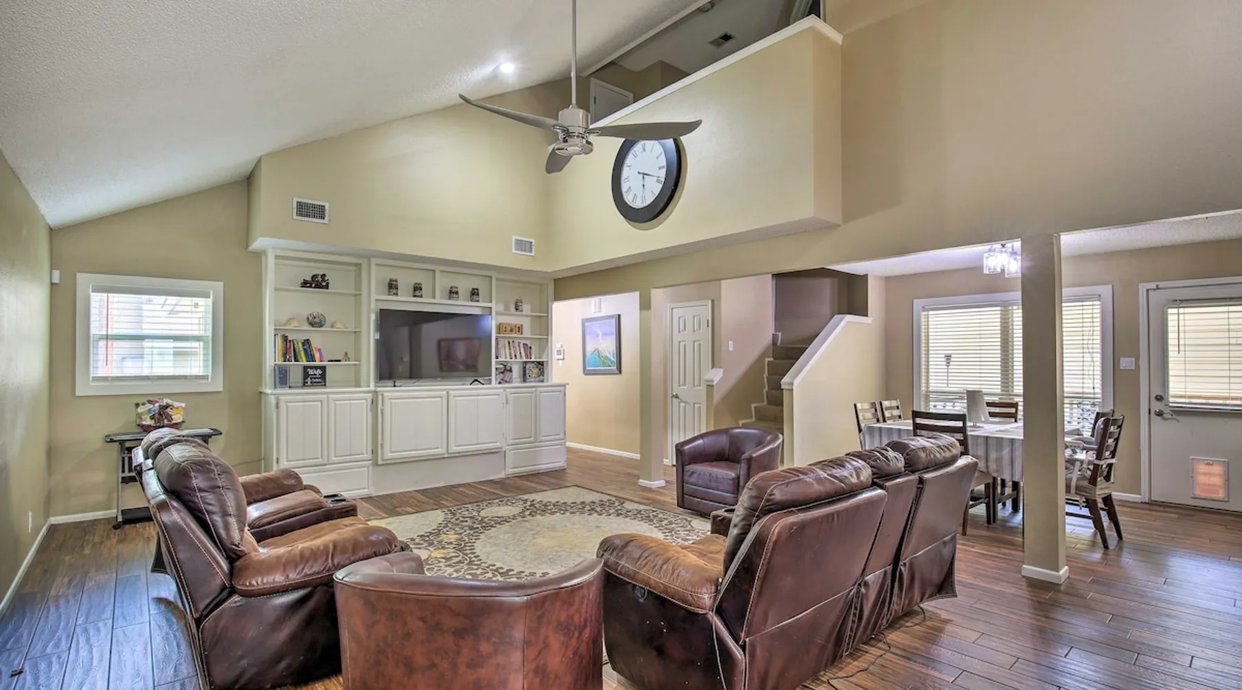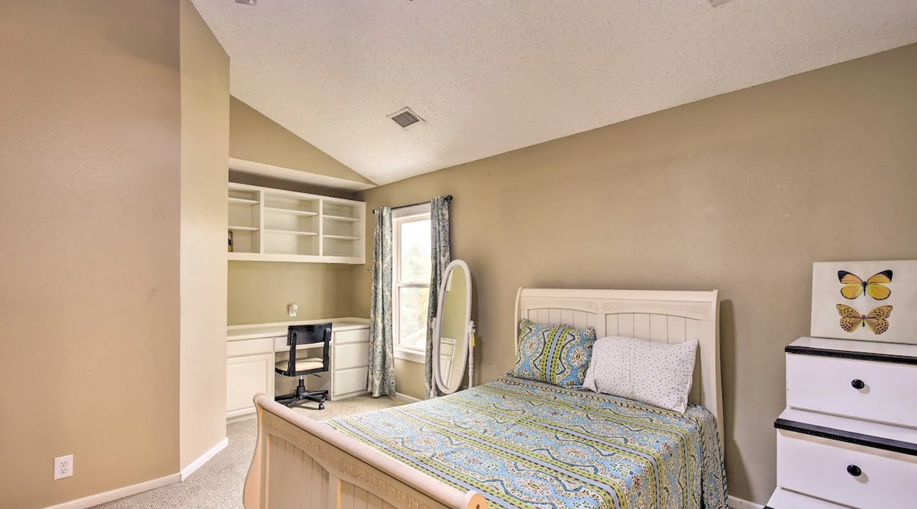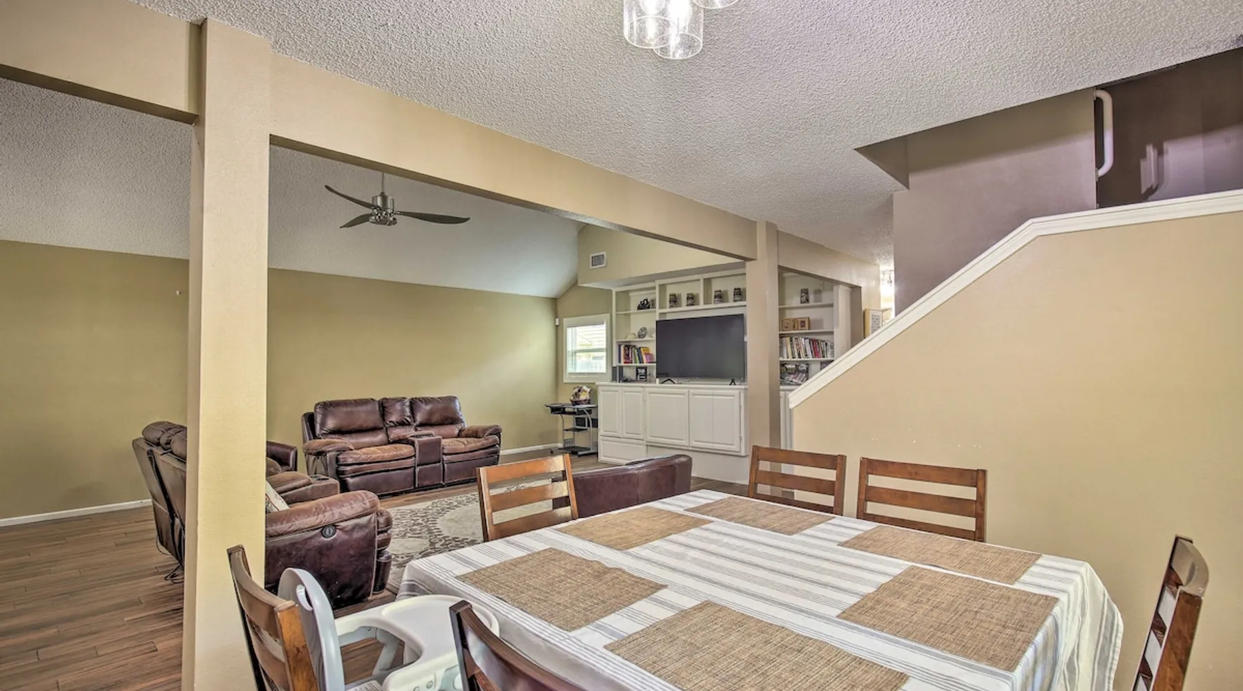 Highlighted by its prime location just 30 miles outside of San Antonio, this lovely home is perfect for your next stay in beautiful Boerne, Texas! This 3-bedroom, 2-bathroom vacation rental features WiFi, a fully equipped kitchen, and a fenced yard for your furry friend. From hiking at Boerne Lake to shopping in the Hill Country Mile District, you’ll have easy access to activities for the whole family! After a day of exploring, you can fire up the grill for dinner and get cozy by the Smart TV. The space Pet Friendly w/ Fee | Gas Grill | Complimentary Kayaks & Life Vests | ~30 Mi to San Antonio Bedroom 1: Full Bed | Bedroom 2: 2 Full Beds | Bedroom 3: Twin/Full Bunk Bed | Additional Sleeping: Crib INDOOR LIVING: Smart TV, family dining table, laptop-friendly work area, books OUTDOOR LIVING: Covered back porch, fenced yard, outdoor dining area, rocking chairs KITCHEN: Cooking basics, stainless steel appliances, dishwasher, stove/oven, microwave, coffee maker, toaster, air fryer, electric kettle GENERAL: Free WiFi, linens/towels, washer/dryer, complimentary toiletries, central air conditioning, ceiling fans, high chair, laundry detergent, iron/board, clothes hangers, hair dryer, trash bags/paper towels FAQ: 1 step required to access, 1 bedroom & 1 full bathroom on 1st floor, 1 exterior security camera (outward facing), pet fee (paid pre-trip) PARKING: Driveway (1 vehicle), RV parking, free street parking Guest access Guests will have access to the entire property via self check-in Other things to note - No smoking - Pet friendly w/ $50 fee (+ fees and taxes) - No events, parties, or large gatherings - Additional fees and taxes may apply - Photo ID may be required upon check-in - NOTE: The property requires only 1 step to access with a bedroom and a full bathroom on the 1st floor, but an interior flight of stairs is required to access the upstairs bedrooms and bathrooms - NOTE: Your safety matters. This property features a doorbell security camera on the front entrance. The camera is outward facing and does not look into interior spaces. The camera records video and sound when activated by motion