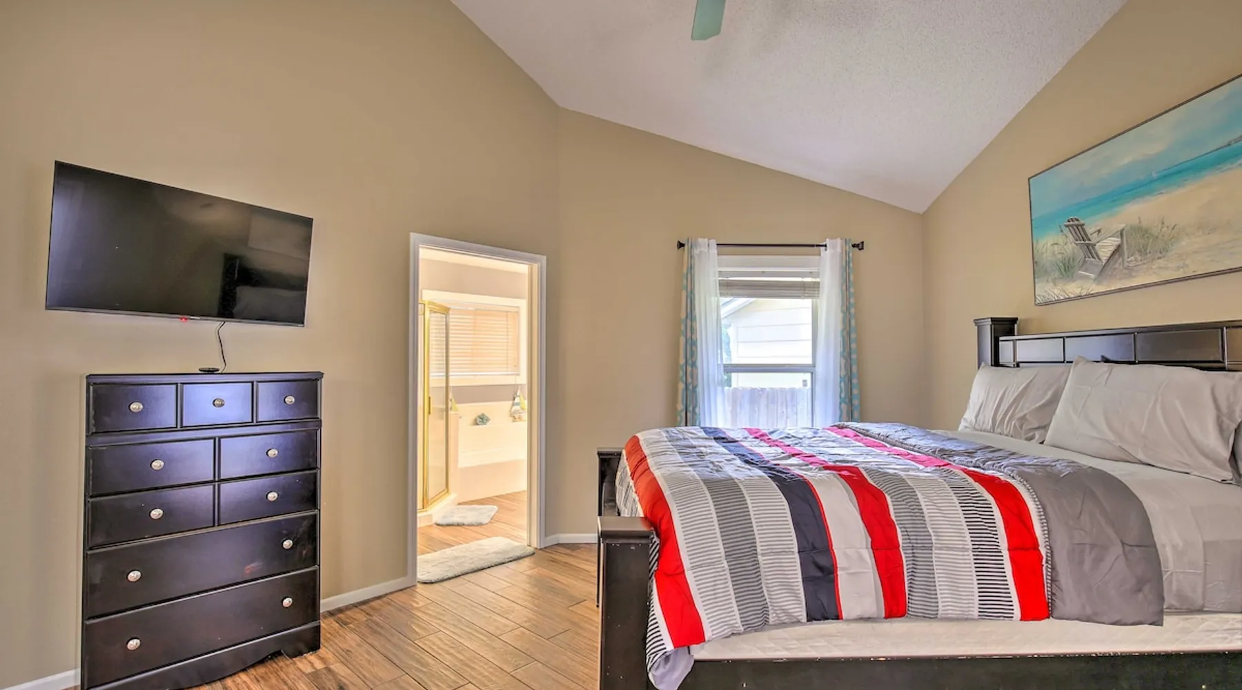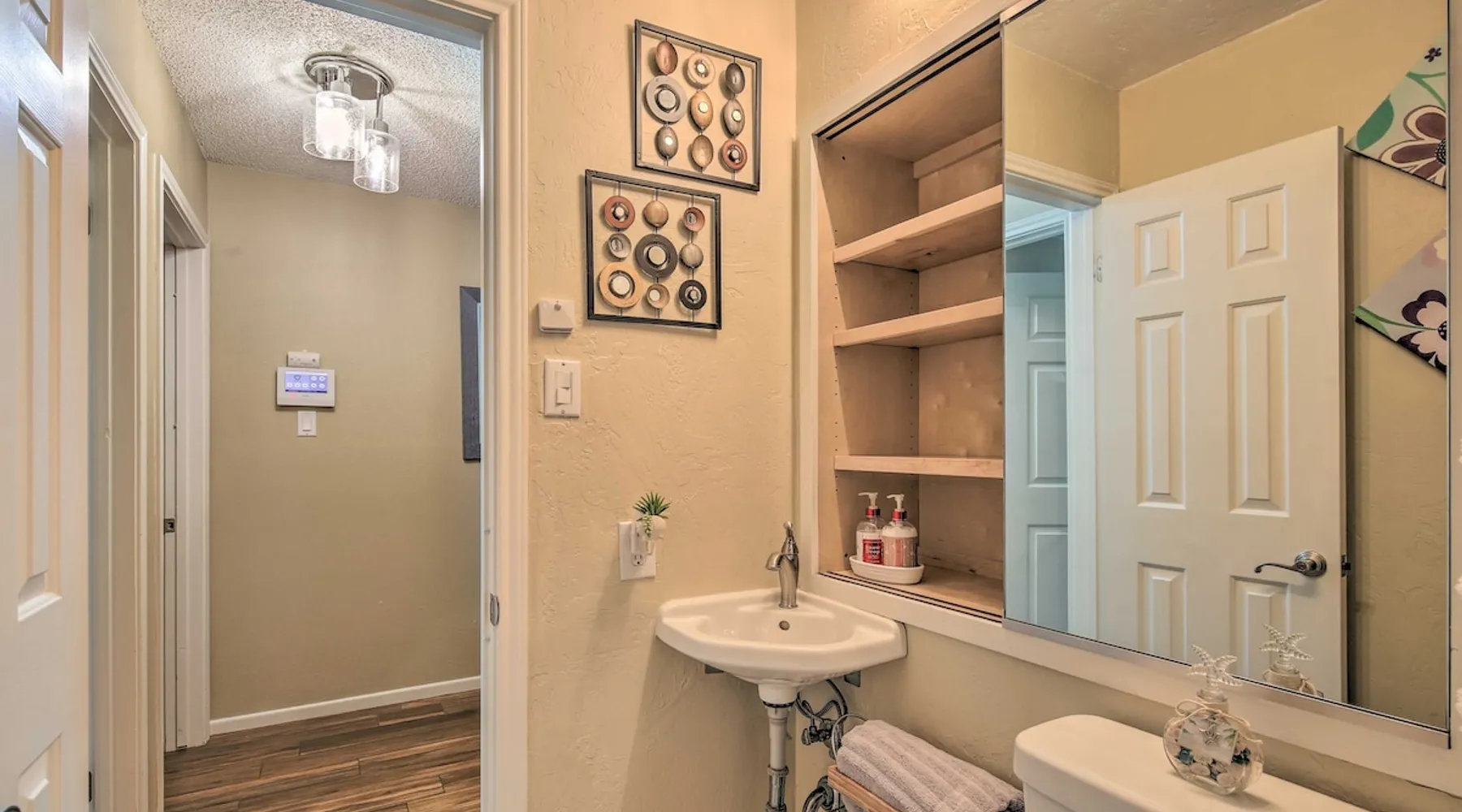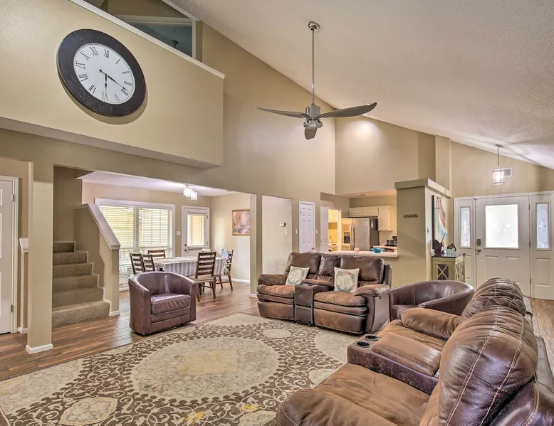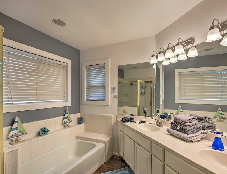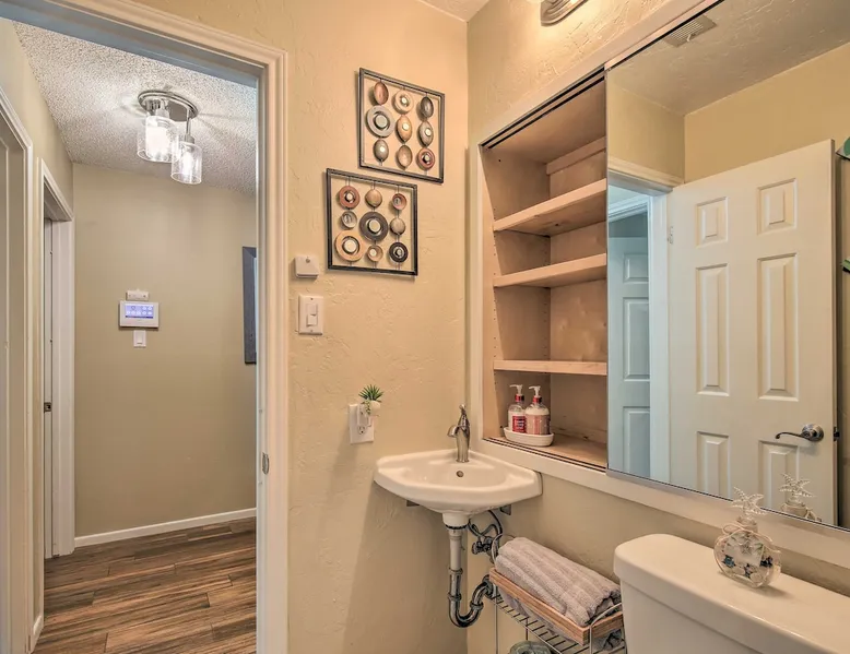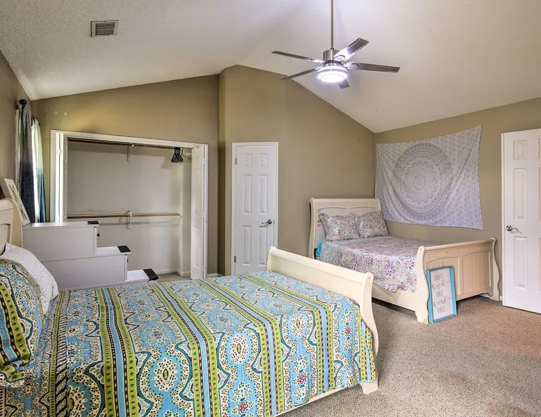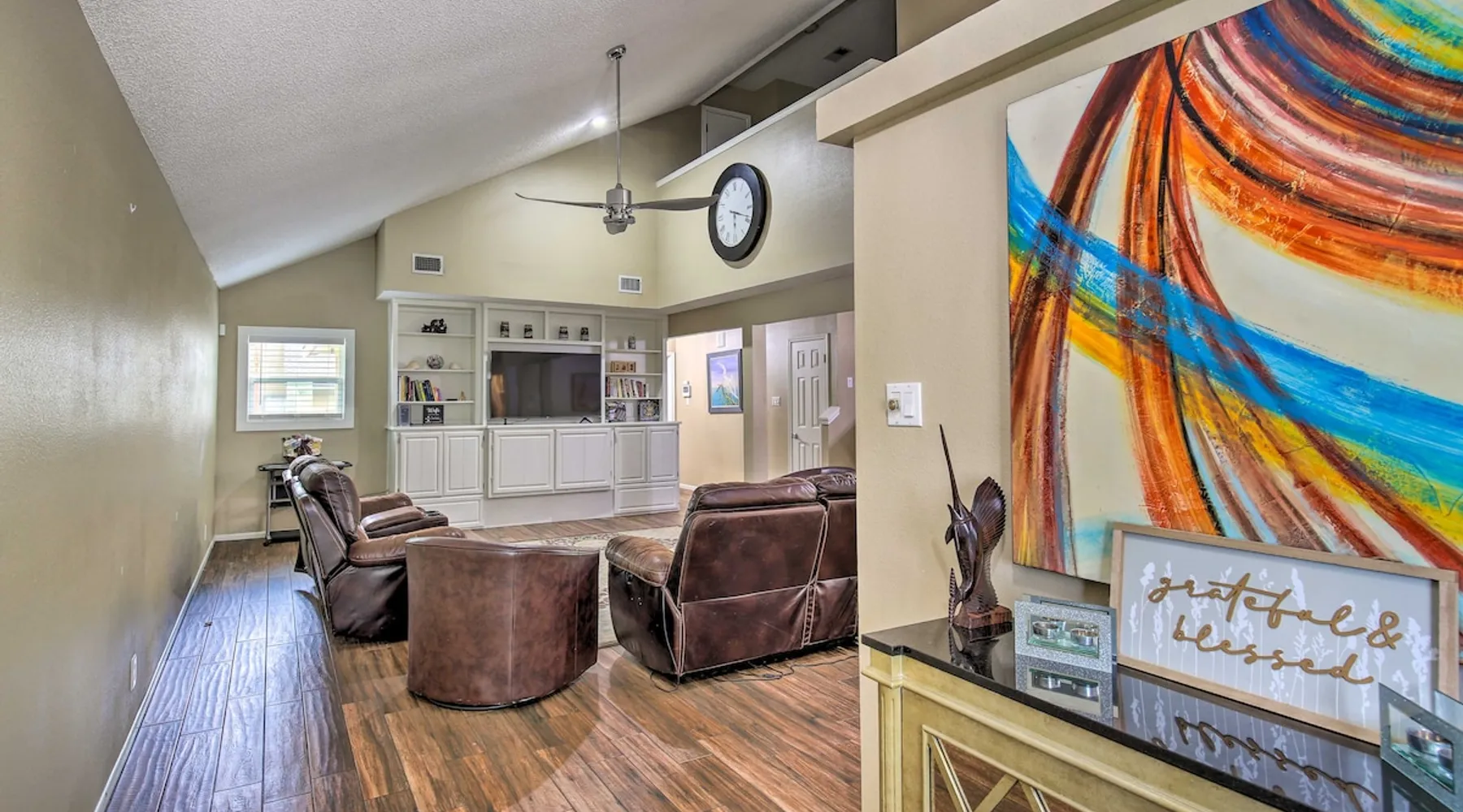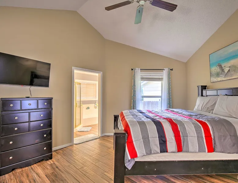 Highlighted by its prime location just 30 miles outside of San Antonio, this lovely home is perfect for your next stay in beautiful Boerne, Texas! This 3-bedroom, 2-bathroom vacation rental features WiFi, a fully equipped kitchen, and a fenced yard for your furry friend. From hiking at Boerne Lake to shopping in the Hill Country Mile District, you’ll have easy access to activities for the whole family! After a day of exploring, you can fire up the grill for dinner and get cozy by the Smart TV. The space Pet Friendly w/ Fee | Gas Grill | Complimentary Kayaks & Life Vests | ~30 Mi to San Antonio Bedroom 1: Full Bed | Bedroom 2: 2 Full Beds | Bedroom 3: Twin/Full Bunk Bed | Additional Sleeping: Crib INDOOR LIVING: Smart TV, family dining table, laptop-friendly work area, books OUTDOOR LIVING: Covered back porch, fenced yard, outdoor dining area, rocking chairs KITCHEN: Cooking basics, stainless steel appliances, dishwasher, stove/oven, microwave, coffee maker, toaster, air fryer, electric kettle GENERAL: Free WiFi, linens/towels, washer/dryer, complimentary toiletries, central air conditioning, ceiling fans, high chair, laundry detergent, iron/board, clothes hangers, hair dryer, trash bags/paper towels FAQ: 1 step required to access, 1 bedroom & 1 full bathroom on 1st floor, 1 exterior security camera (outward facing), pet fee (paid pre-trip) PARKING: Driveway (1 vehicle), RV parking, free street parking Guest access Guests will have access to the entire property via self check-in Other things to note - No smoking - Pet friendly w/ $50 fee (+ fees and taxes) - No events, parties, or large gatherings - Additional fees and taxes may apply - Photo ID may be required upon check-in - NOTE: The property requires only 1 step to access with a bedroom and a full bathroom on the 1st floor, but an interior flight of stairs is required to access the upstairs bedrooms and bathrooms - NOTE: Your safety matters. This property features a doorbell security camera on the front entrance. The camera is outward facing and does not look into interior spaces. The camera records video and sound when activated by motion