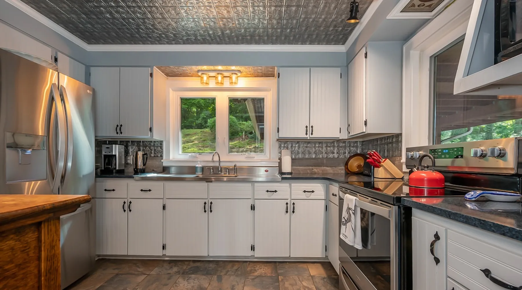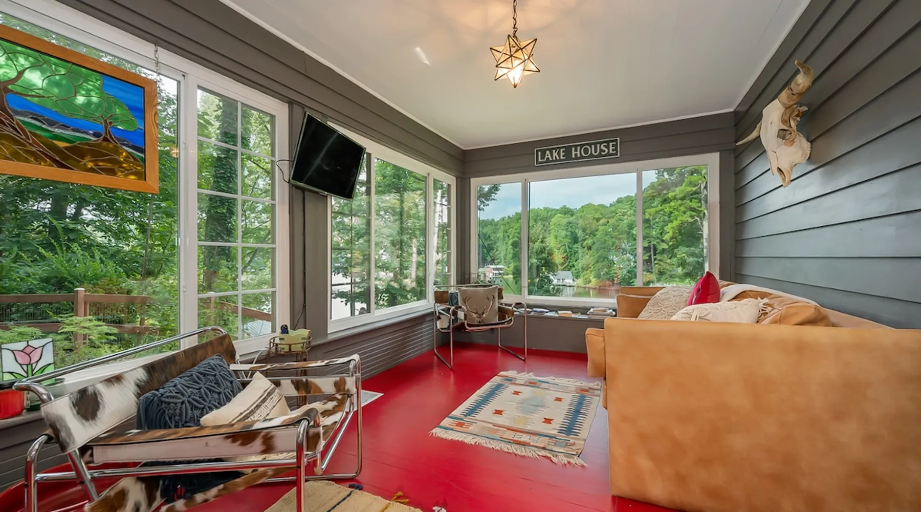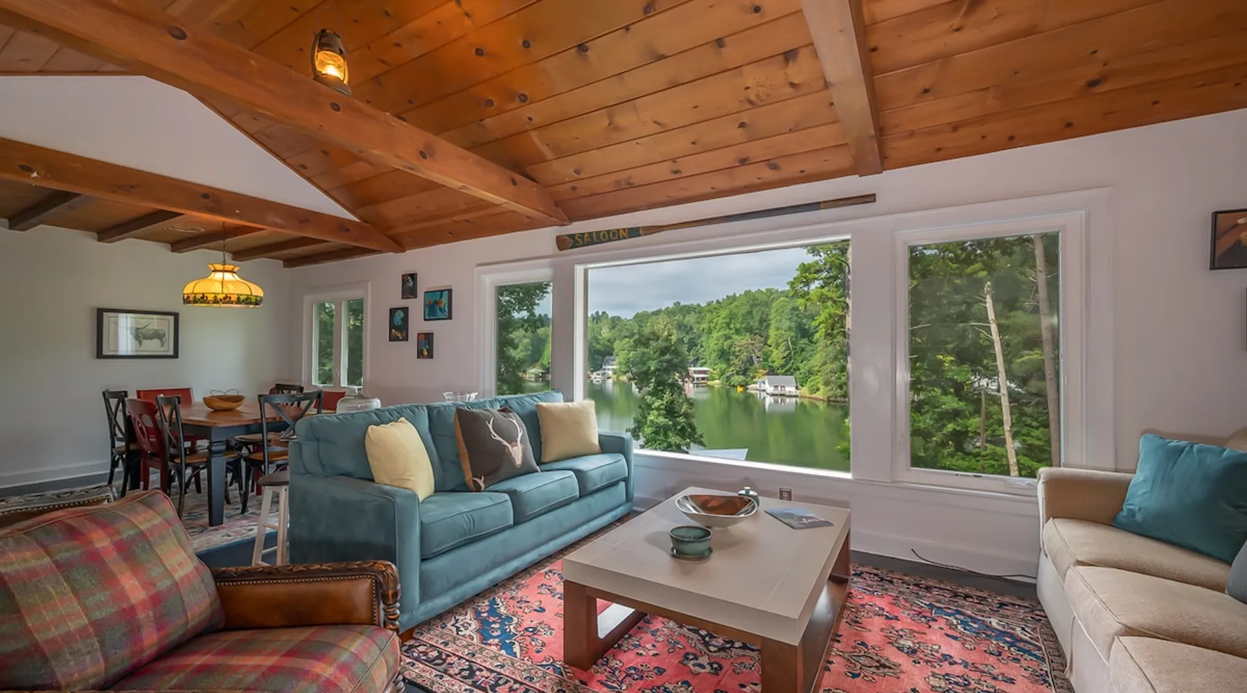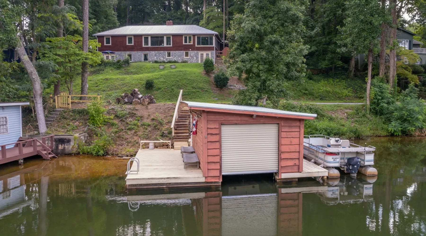 Introducing The Red Baron! Enjoy mountain lake life in one of Lake Lanier's original 1950s cottages, located on 100-feet of waterfront space. With several modern updates, you will feel right at home during your lake vacation! Easy access to vibrant villages of Tryon and Landrum, where you can enjoy shopping and dining! The space Upon entering the cottage, you’ll see original hardwood floors throughout, with furnishings and décor that are welcoming and comfortable. The combined living/dining room has an amazing picture window overlooking the lake and a big dining room table with seating for 8. The adorable classic cottage kitchen, with a tin ceiling, has stainless steel appliances and equipped to make all your favorite meals. The lower level has another family room, with large sofa and a second kitchen with a stove and a fridge. More dining space with 4 bar stools and an outdoor dining table for 4 with views of the lake. There are plenty of other spaces to gather! Step into the sunroom to take in more charming views of the lake, sit out by the fire pit and fenced in yard for the dogs and a lower level patio overlooking Lake Lanier! You will not be disappointed with The Red Baron for your lakeside getaway in the Mountains! Exclusive Special: When you book The Red Baron you will receive a special code for discounted tickets to the Biltmore Estate! Home Truths: - Sleeps in beds: 10 - Max Occupancy: 10 - Additional sleeping quarters with two twin beds - Semi-private sleeping area with twin bunks - There is not a dishwasher - Only property owners are allowed to have boats on the lake however, kayaks and paddle boards are permitted. - We provide linens for all beds; other occupancy will require guests providing their own linens - Internet Speed: Spectrum 5G - Cleaning fee: We openly share our Cleaning Fees in a manner of full disclosure, as we think this is the most honest and forthright approach with respect to our guests. Our Cleaning Fees are backed by our Clean Guarantee, which reflects the highest level of standards, pristine environments for our guests, and a level of clean that surpasses any other vacation homes; we literally guarantee it! Quiet Policy: Please note that the home/estate property is located in a quiet community. Parties, loud noise and unruly behavior are absolutely prohibited, and guests are expected to respect the neighbors and the peace this mountain retreat area affords. Pets: This home is dog friendly, and guests are welcome to bring their "best friends" with them. There is a non-refundable Pet Fee of $130 with a limit of 2 dogs per booking party. Early Check In and/or Late Check Out may be possible, depending on cleaning schedules and other reservations. If it is possible, there may be an additional fee that would be determined based on the time that you wish to check in or out and the seasonal rates. Please inquire for details regarding payment, the cancellation policy, military discounts, and trip insurance. Note: Reservations over 30 days are subject for review prior to acceptance. A separate rental agreement will be required for 90+ day stays. Last Minute Bookings: Reservations made within 7 days of check-in require additional documentation before confirmation.