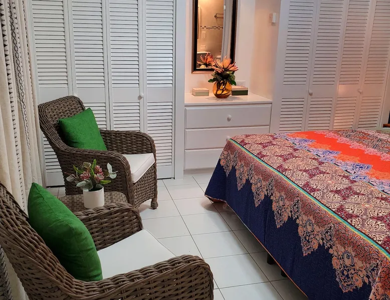 Welcome to "The Dream" , a newly renovated apt/condo in the popular St. Lawrence Gap, but.. on the quiet end. There are only 3 other units in a gated complex giving you a private feel. Enjoy a shared pool and laundry. With only a 2 minute walk to 3 beaches, restaurants, night life, and shopping, you will absolutely make wonderful memories. This unit is minutes from Oistins known for their famous fish fry Fridays, Worthing, Hastings Boardwalk and Bridgetown. Walking is easy. Taxis are close. The space As you enter into our gated complex, you will be surrounded by lush tropical foliage. Our unit is on the ground floor and is great for those with mobility challenges. The pool is steps away from our door. As you enter into our apartment, you will find it to be bright, beachy and modern with an open floor concept. There is a smart TV for your viewing pleasure. Our two bedrooms are beautifully decorated with comfortable beds, ample closets and dresser space. The master has an en-suite bathroom and seating area. The second bedroom has two twin beds that can be converted into a king bed. Both bathrooms have been fully redone with walk in showers . We have a full kitchen, dining area and outdoor dining on the patio along with outdoor dinnerware. We are steps away to the beach, a host of restaurants and close to all attractions on the south coast. You will feel at peace and relaxed in our space. There are only 3 other units so you will feel private . Everyone is friendly. We just want you to be aware that the pool is not gated nor does it have a lifeguard . Parents/guardians must ensure the safety of the children in their party in or around the pool area at all times. Guests are responsible for their safety around the pool and areas surrounding the pool. Glass bottles, glasses of any kind are forbidden in pool area. For your safety, we have an alarm system as well as a non audio video camera at the front door entrance. To ensure the comfort and privacy of all guests on the premises. No parties or loud music are allowed. For the privacy and safety of all on the property, only registered guests are allowed to overnight. We STRONGLY advise against inviting "new friends"/strangers onto the property. This is for your safety, other guests safety and the safety of owners, staff and vendors. We are not liable. Cigarette smoking is permitted on the patio only, not in the apartment or by the pool. A $500 USD cleaning fee will be charged if you smoke inside of the unit. Drugs, vaping of any kind are not permitted. Marijuana is illegal in Barbados. You will be reported to the local authorities. No weapons are permitted. You will be reported to local authorities. We do not share items between apartment unless authorized by the condo owner. please do not take items from our apartment to another and do not take items from other apartments. No pets are permitted. Quiet hours 10pm-7am. Guest access Shared pool, lounge chairs, and shared guest laundry . We do not share items from any other condo unit. Please do not bring their items or leave our items in any other unit. Other things to note Late check possible based on availability. Fee may be incurred.